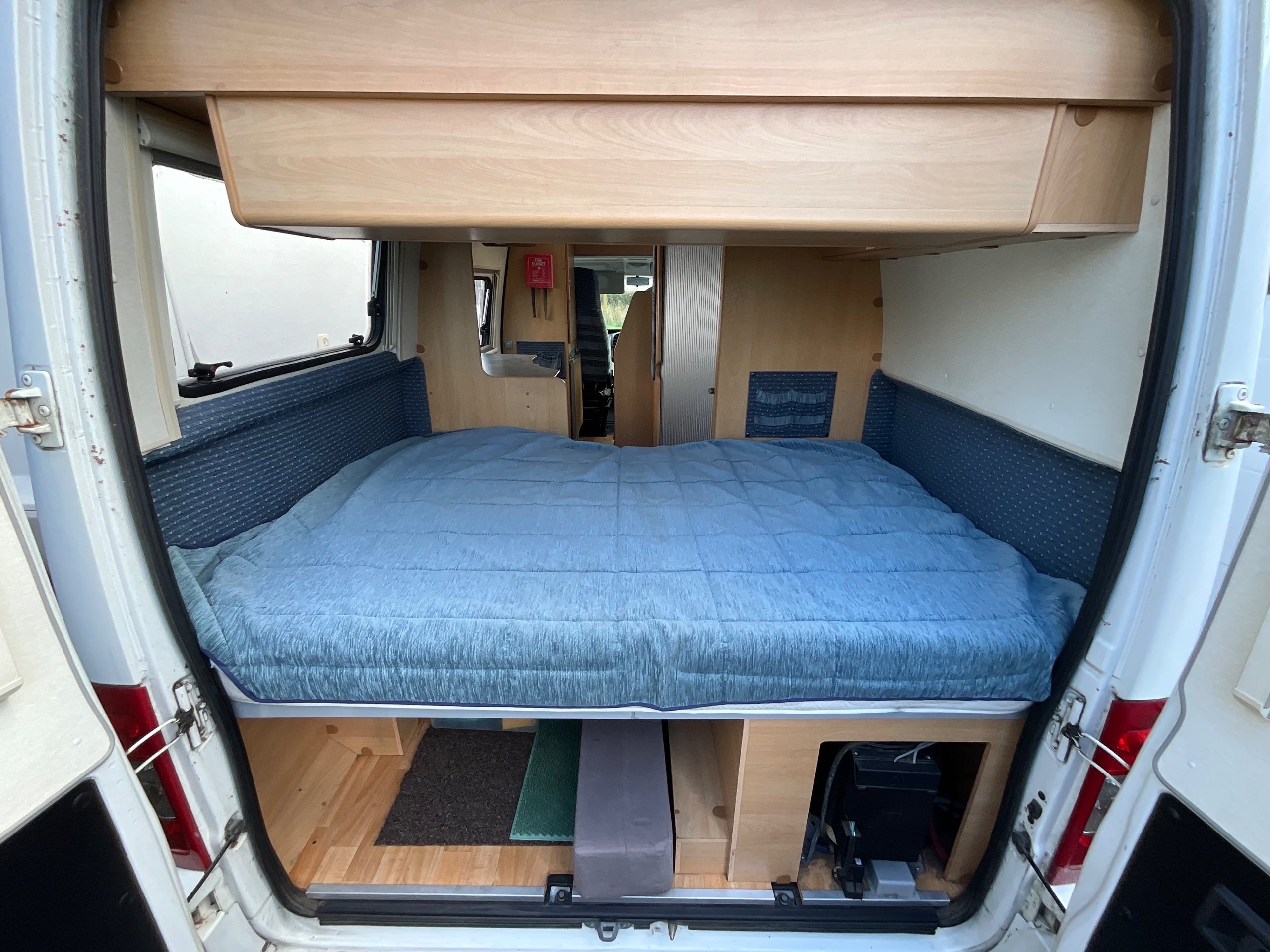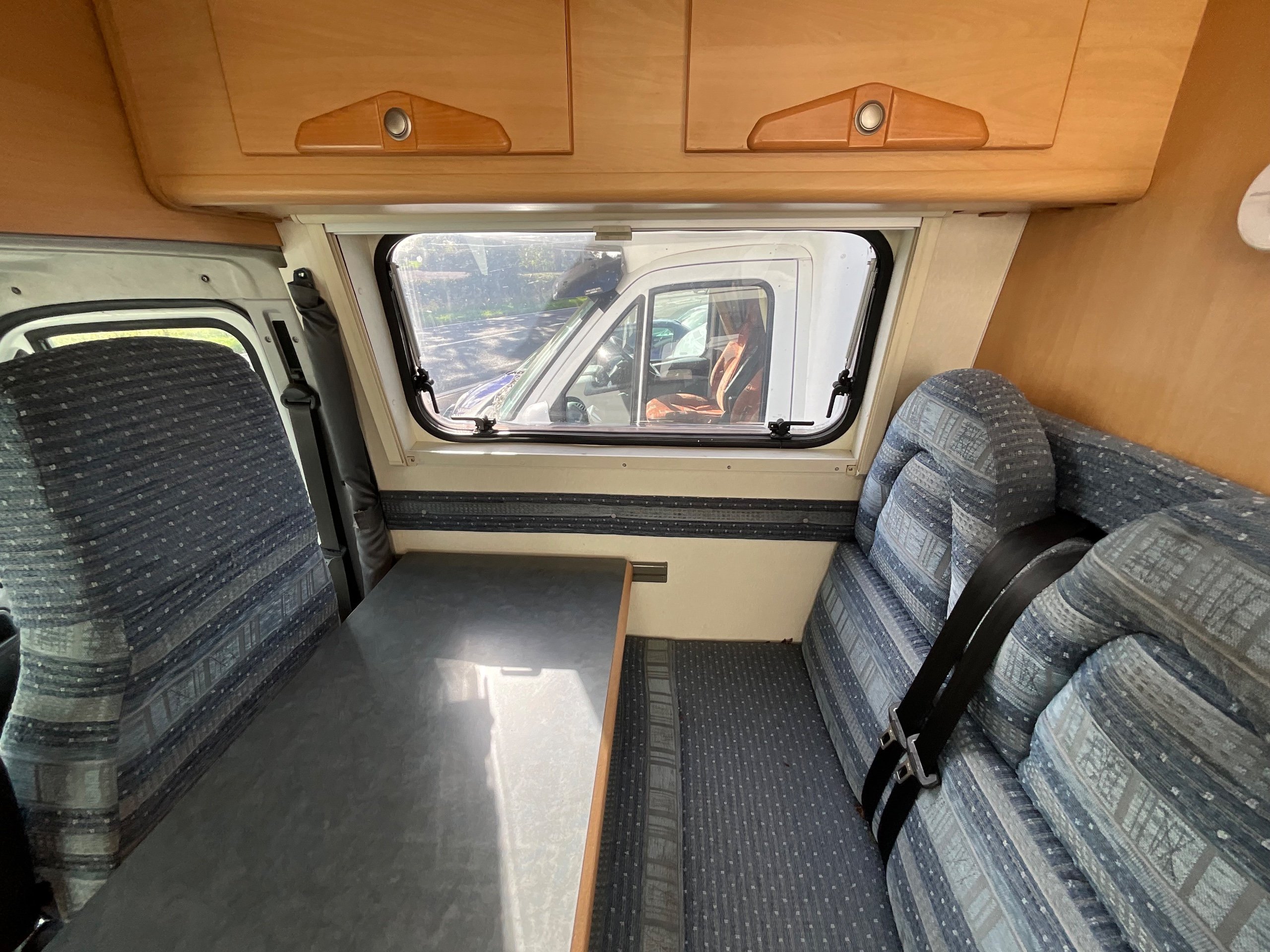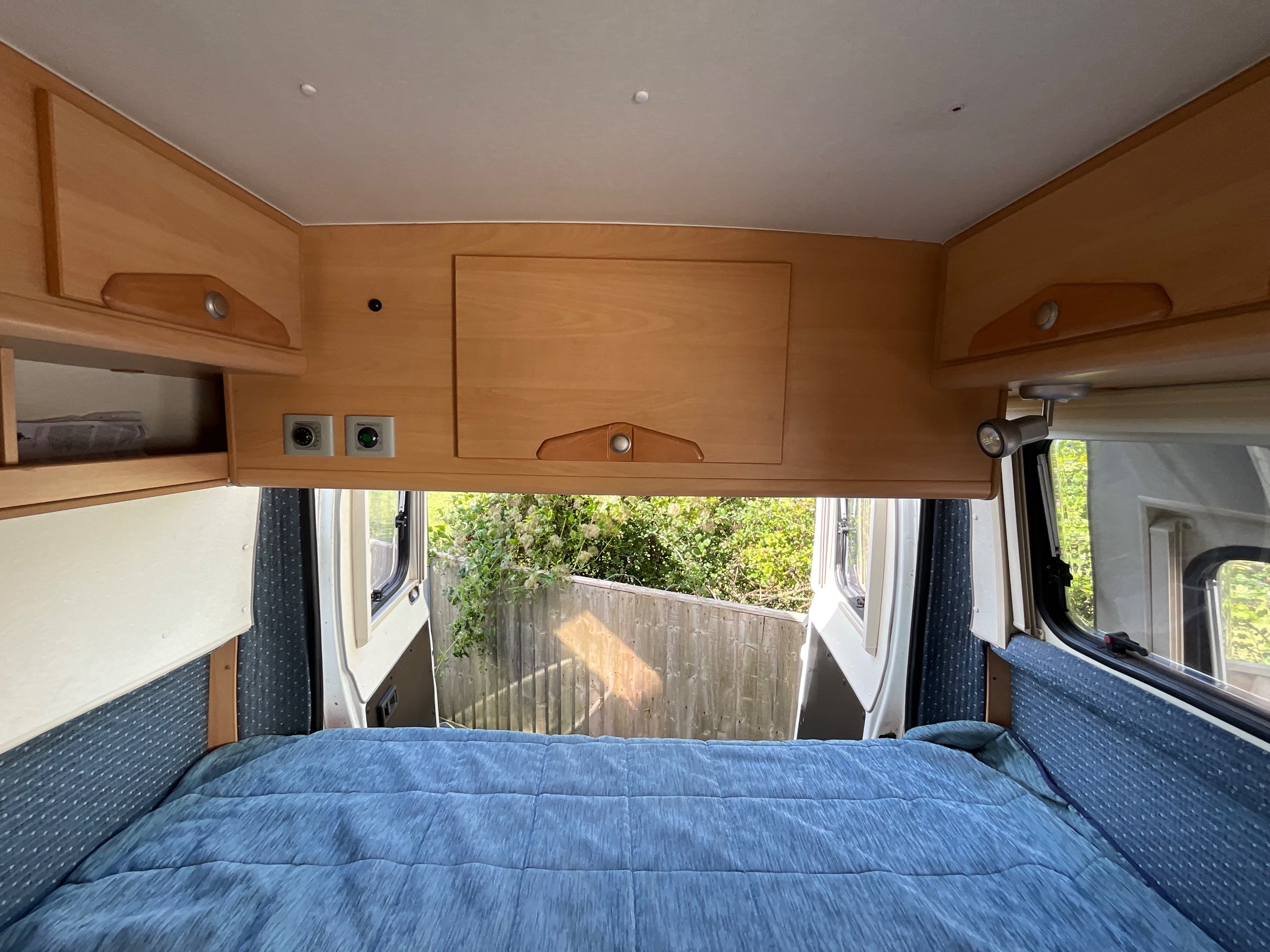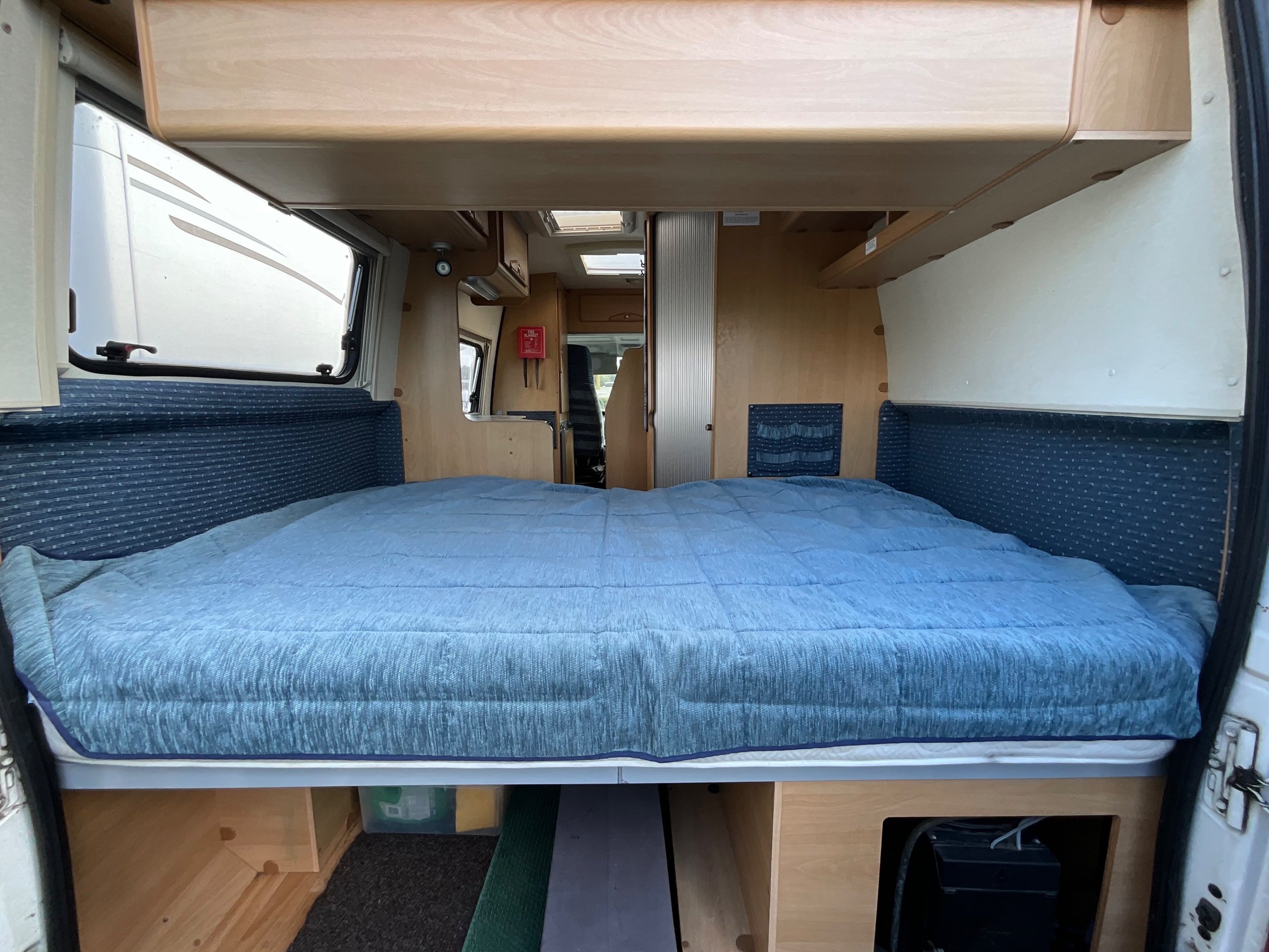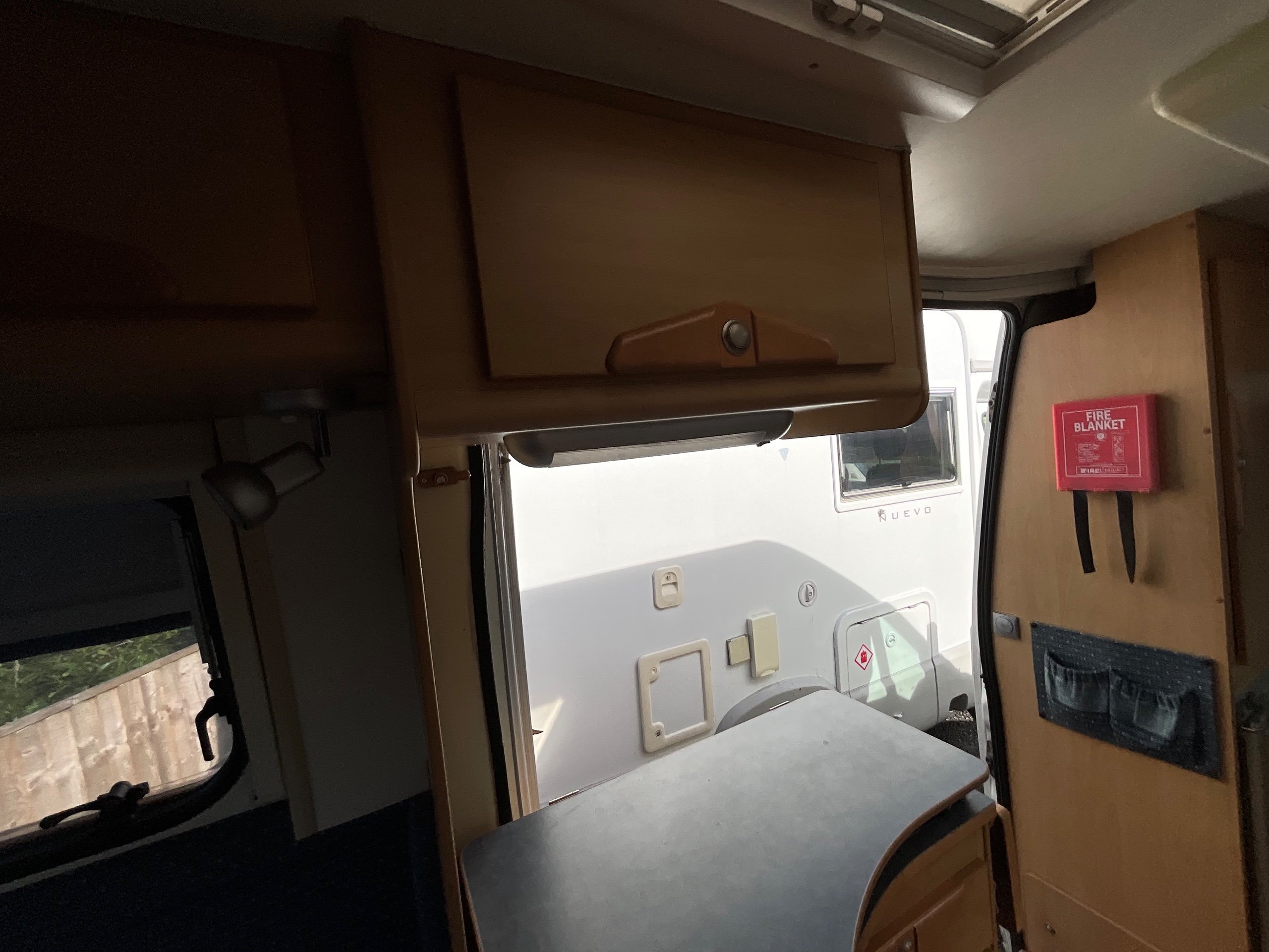 This Adria twin has the ability to sleep 3 and travel with 4 people full belted in. The Adria twin is a 3 Berth motorhome, with a rear fixed transverse bed layout offering plenty of storage underneath plus comfort with a proper Mattress. The central area offers flexible options of two forward facing seats (With inertia seat belts for travelling) with a table. This area then can be transformed into a dinette area with the use of the two swivel seats in the front cab to further enhance this area. Above the cab is a little storage