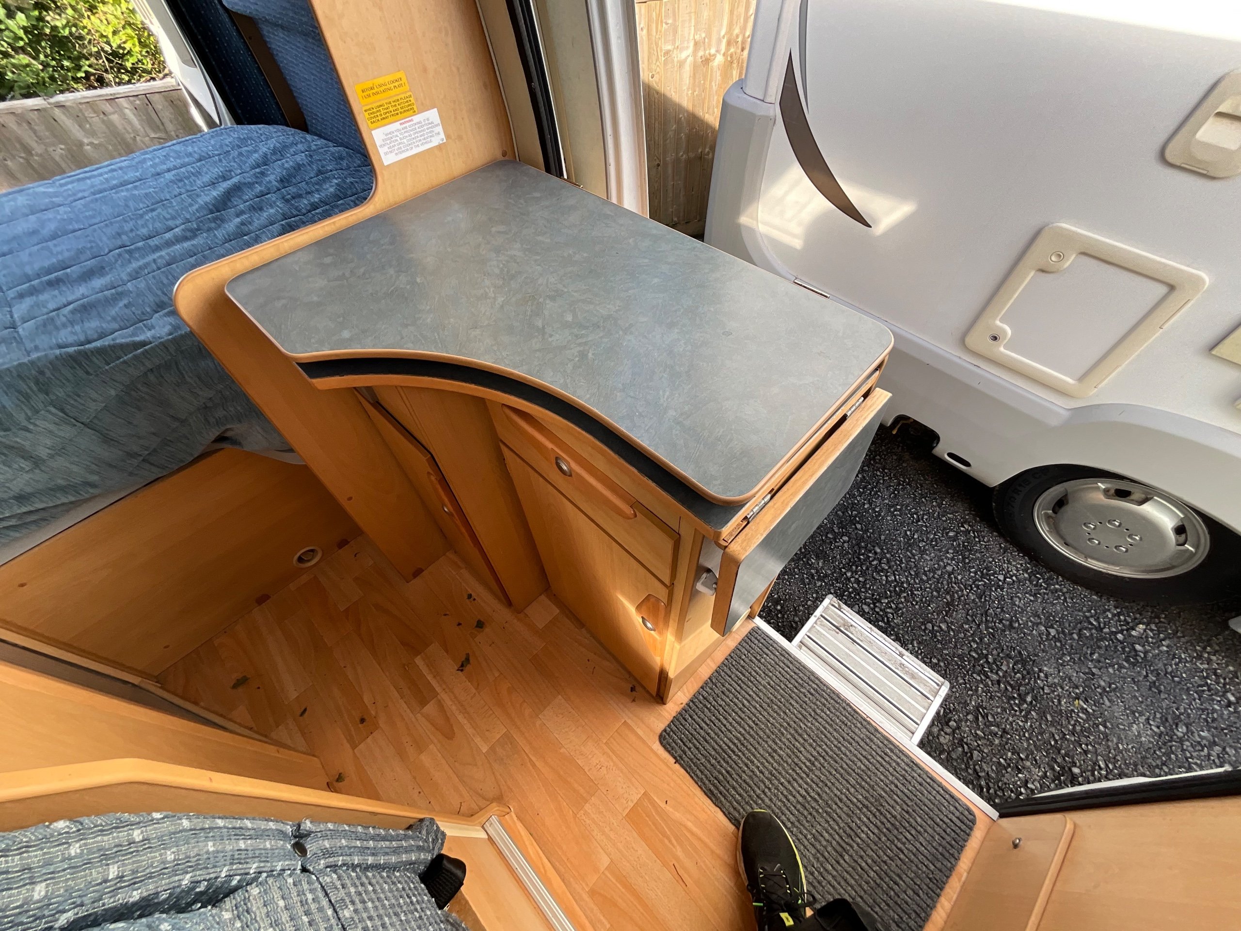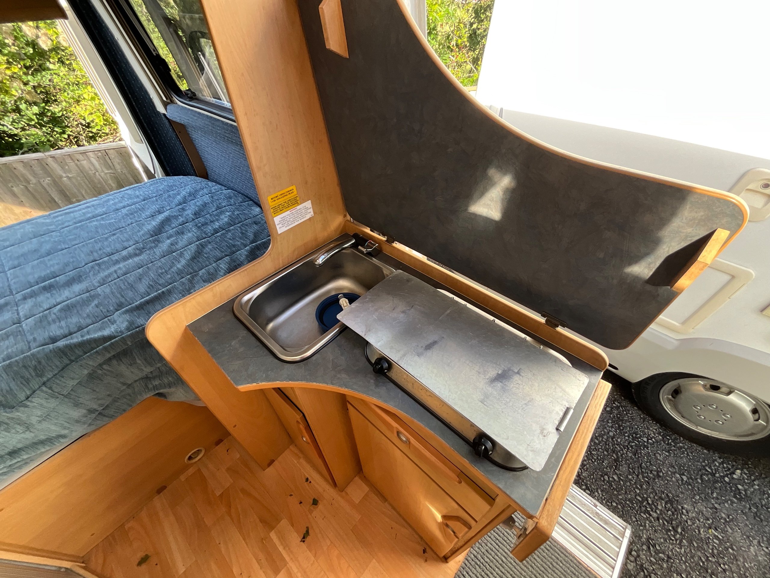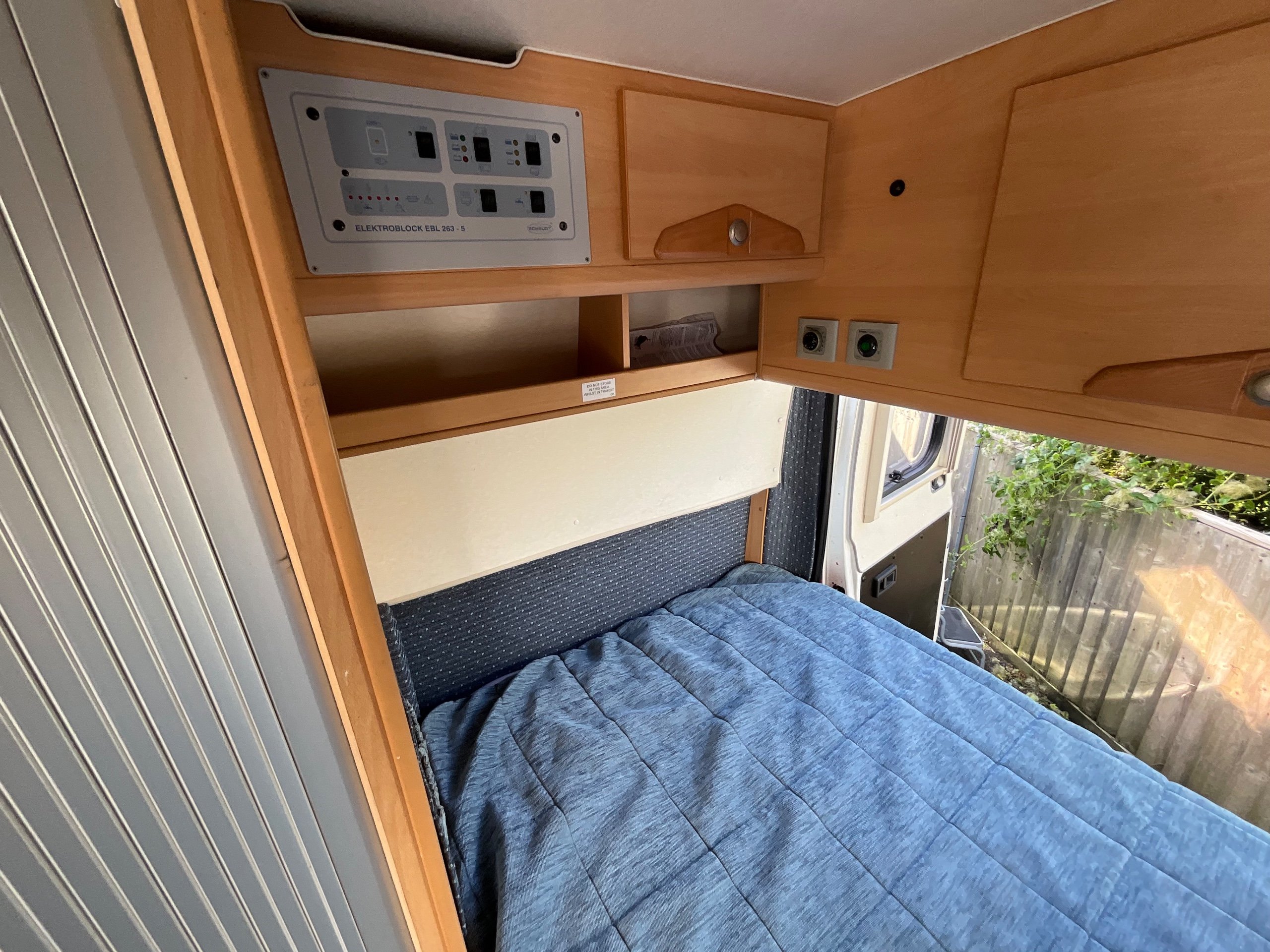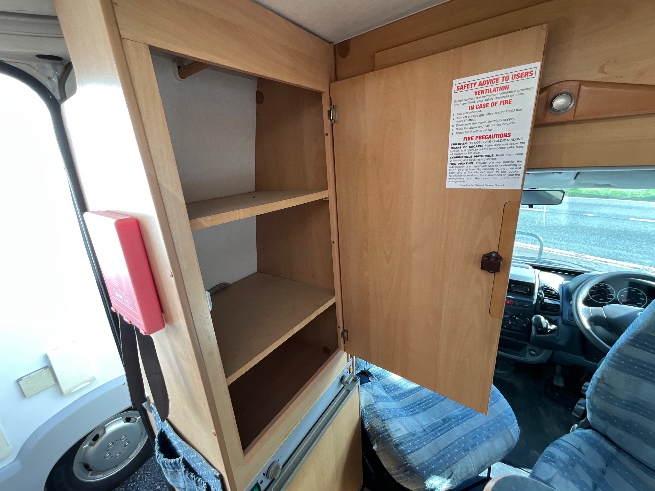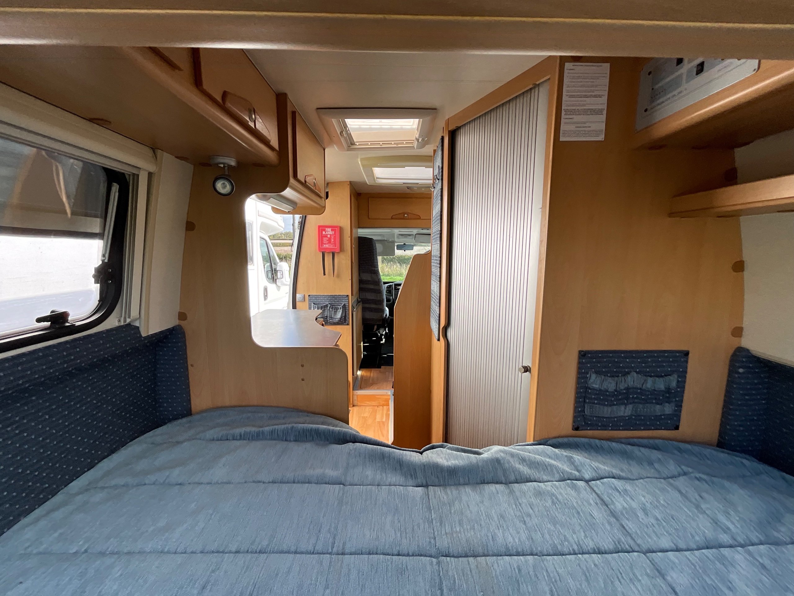 This Adria twin has the ability to sleep 3 and travel with 4 people full belted in. The Adria twin is a 3 Berth motorhome, with a rear fixed transverse bed layout offering plenty of storage underneath plus comfort with a proper Mattress. The central area offers flexible options of two forward facing seats (With inertia seat belts for travelling) with a table. This area then can be transformed into a dinette area with the use of the two swivel seats in the front cab to further enhance this area. Above the cab is a little storage
