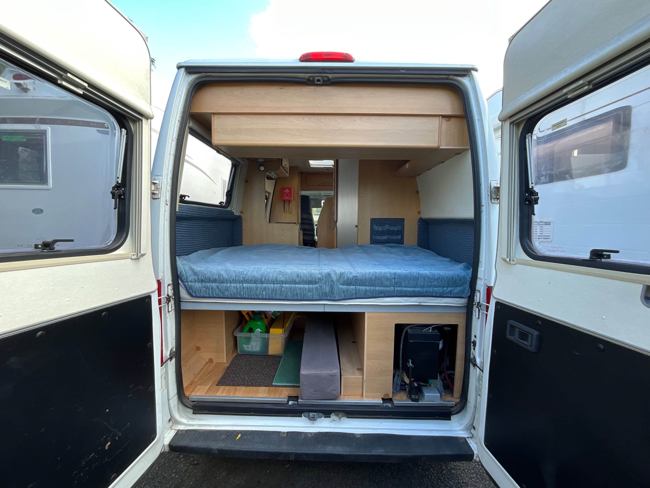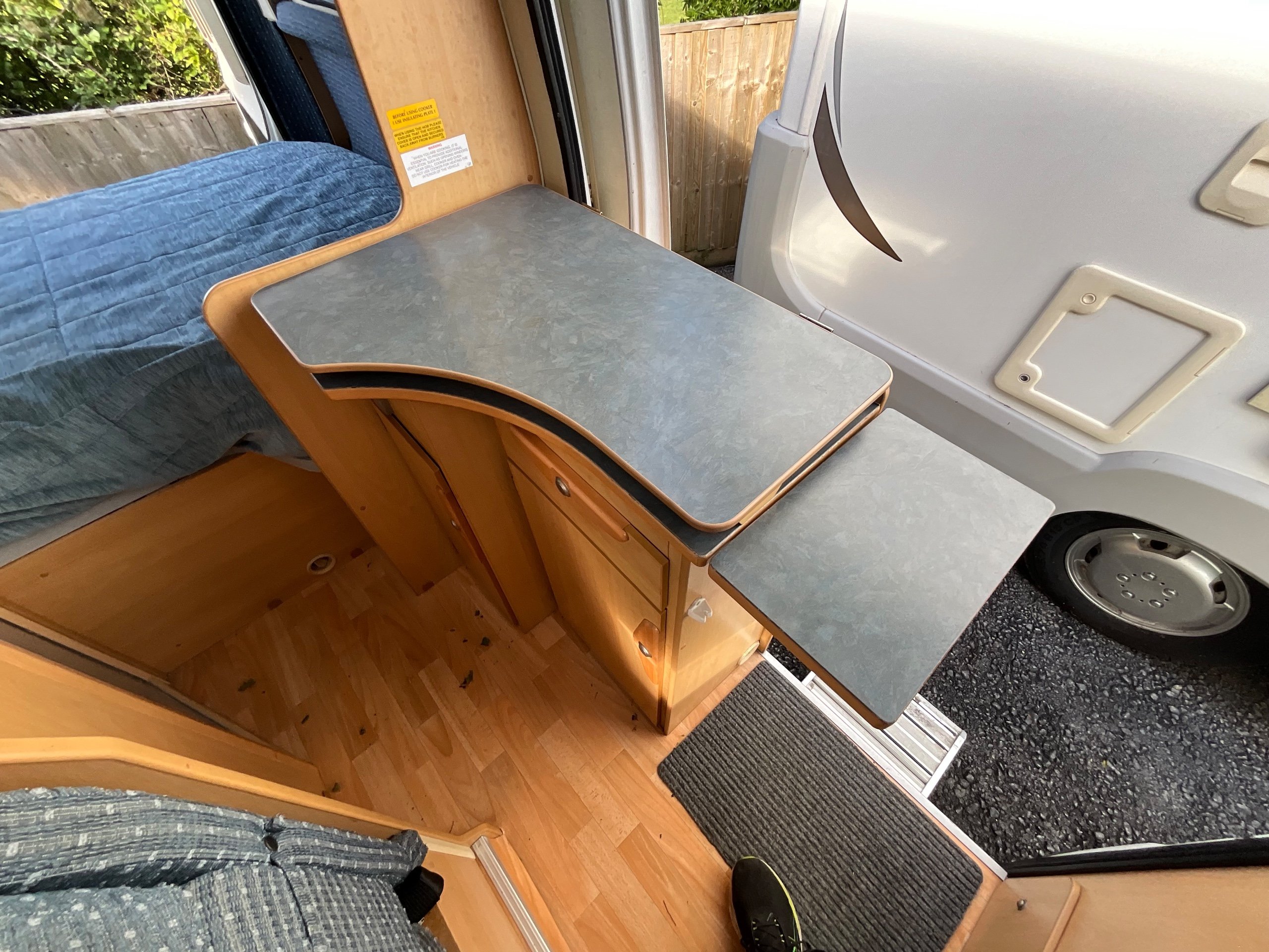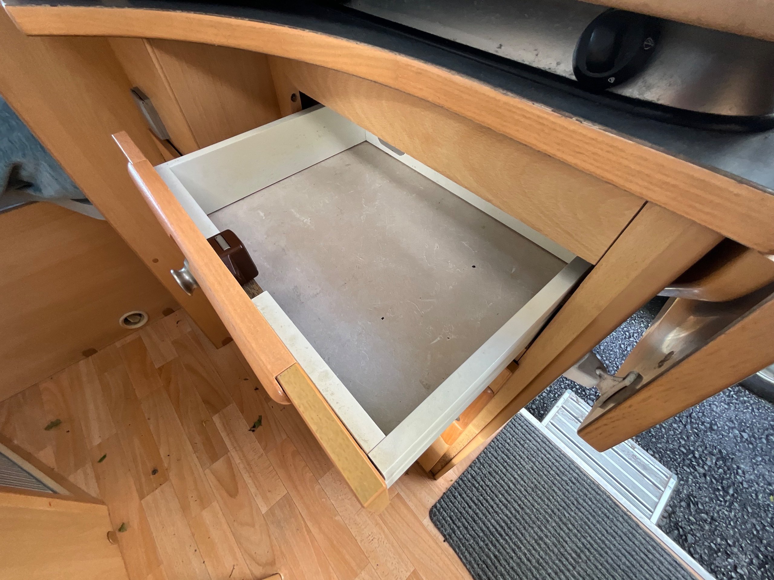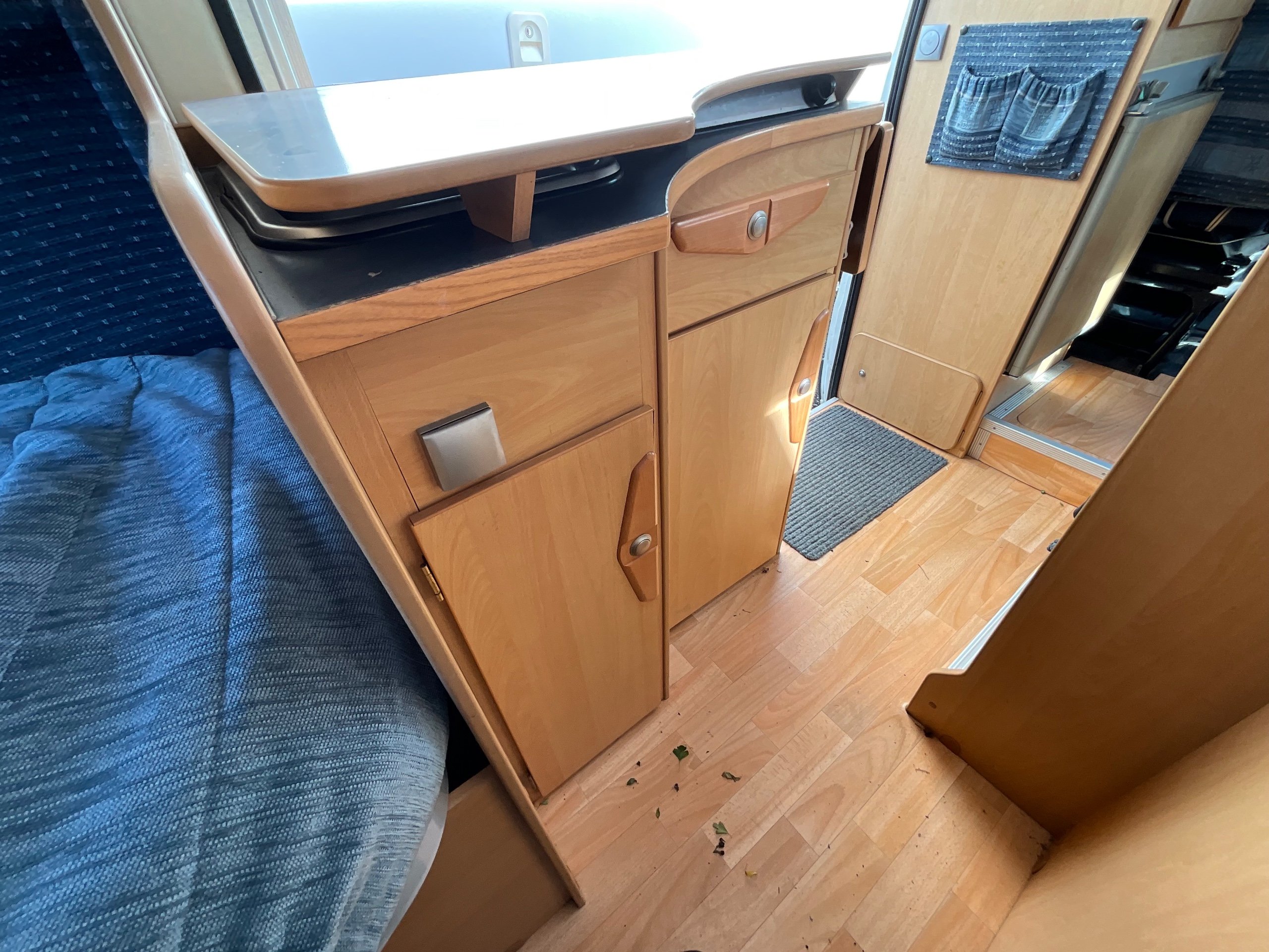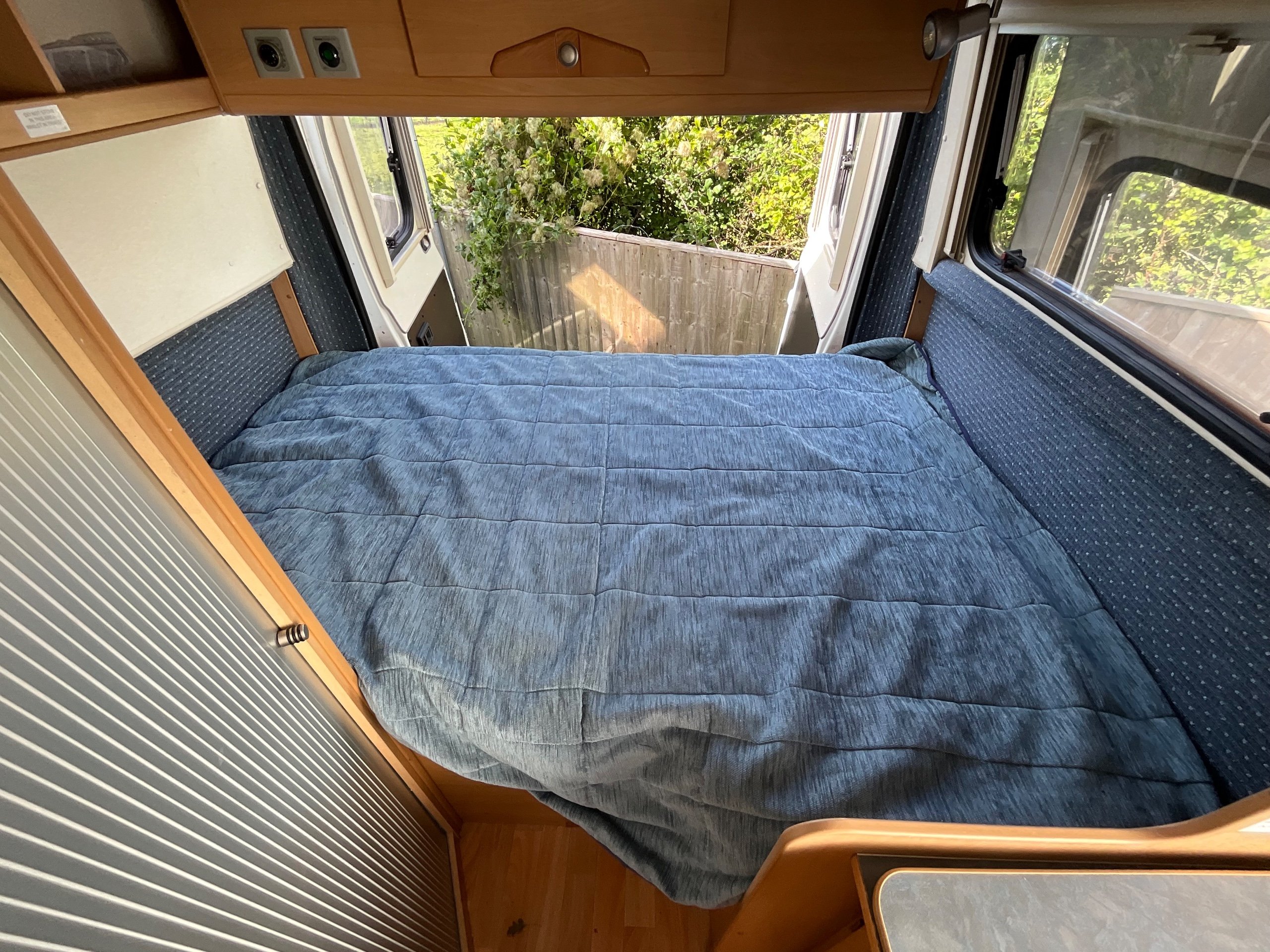 This Adria twin has the ability to sleep 3 and travel with 4 people full belted in. The Adria twin is a 3 Berth motorhome, with a rear fixed transverse bed layout offering plenty of storage underneath plus comfort with a proper Mattress. The central area offers flexible options of two forward facing seats (With inertia seat belts for travelling) with a table. This area then can be transformed into a dinette area with the use of the two swivel seats in the front cab to further enhance this area. Above the cab is a little storage