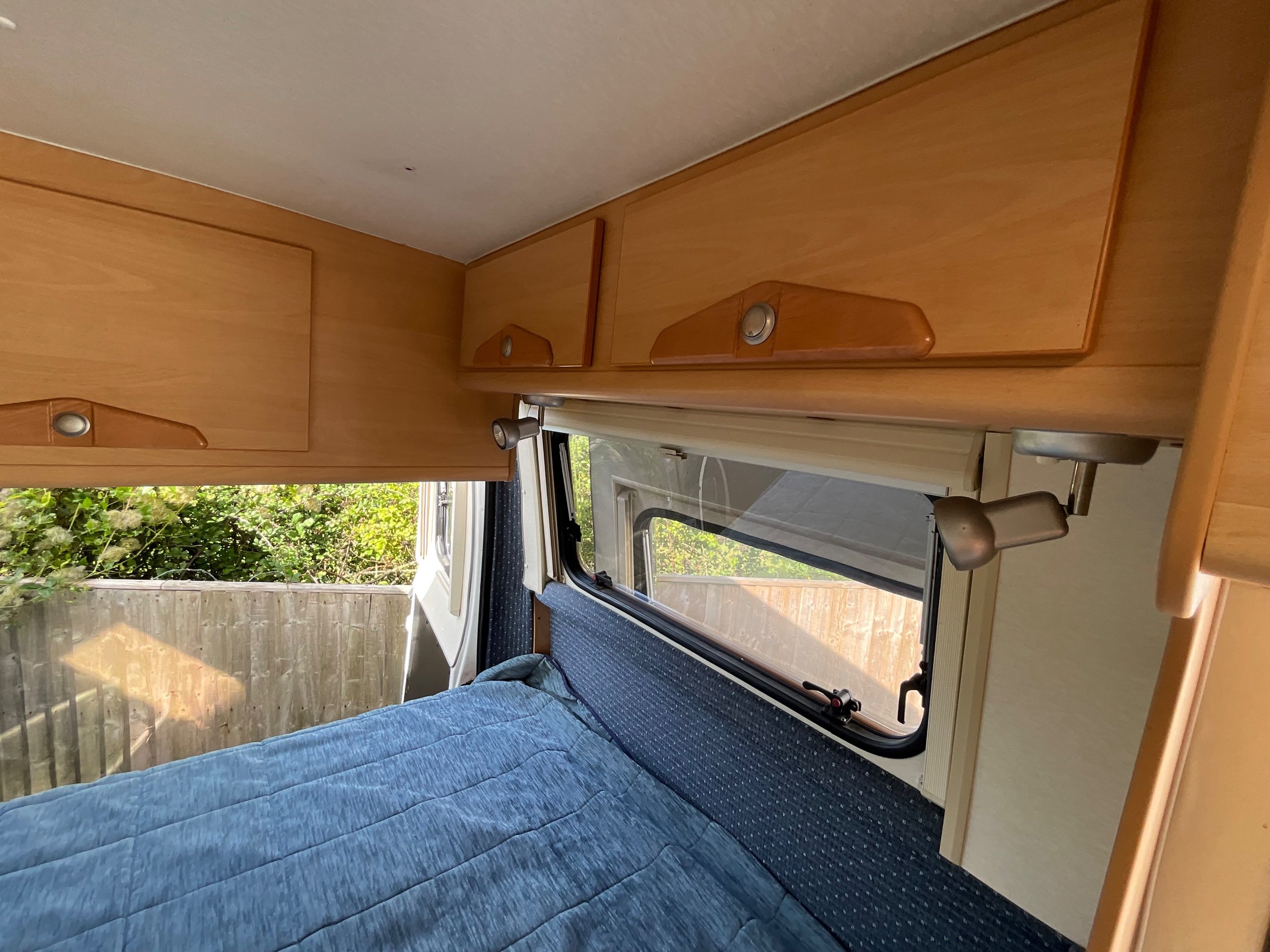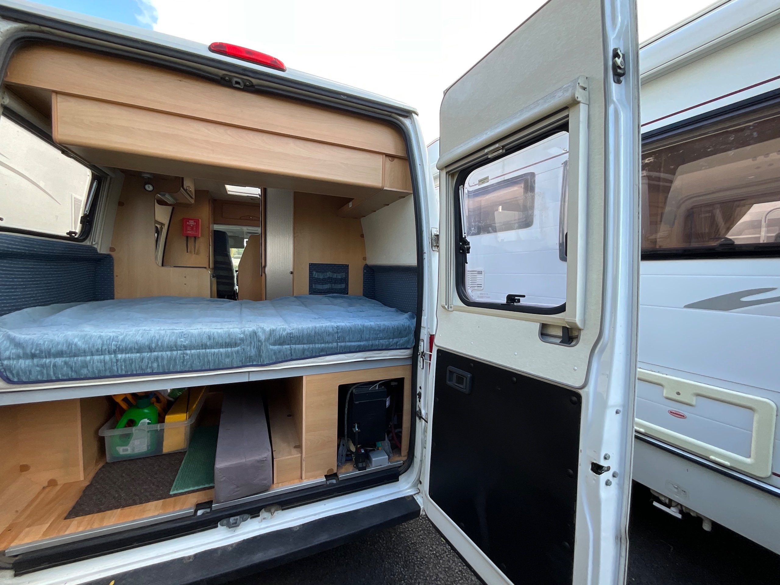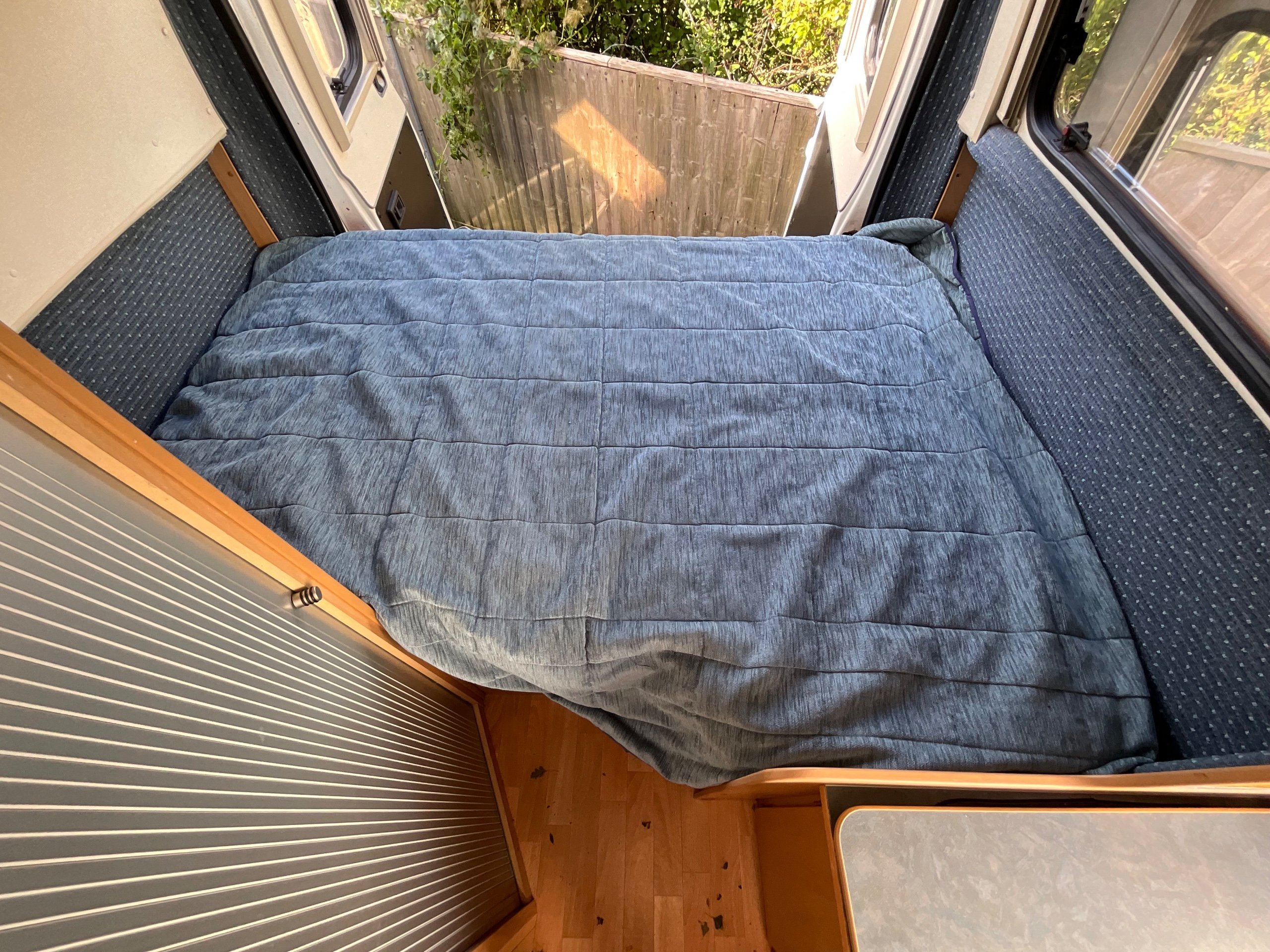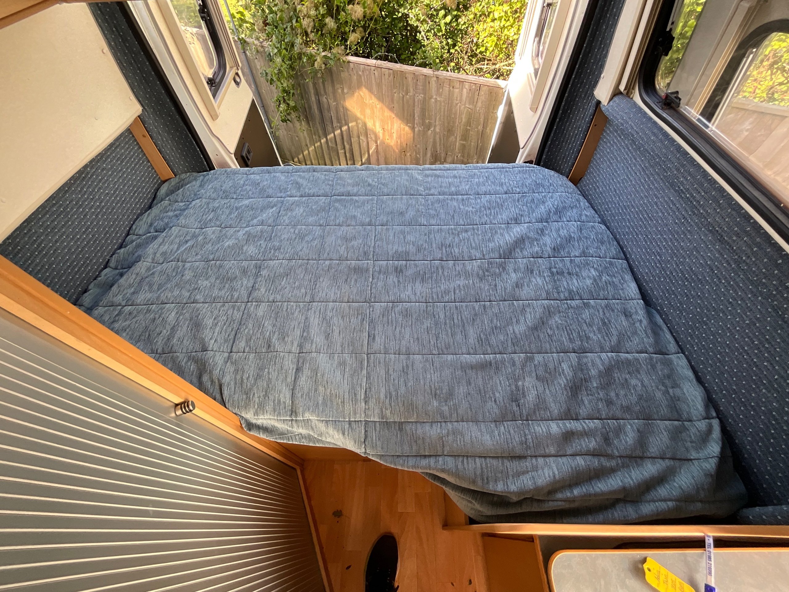 This Adria twin has the ability to sleep 3 and travel with 4 people full belted in. The Adria twin is a 3 Berth motorhome, with a rear fixed transverse bed layout offering plenty of storage underneath plus comfort with a proper Mattress. The central area offers flexible options of two forward facing seats (With inertia seat belts for travelling) with a table. This area then can be transformed into a dinette area with the use of the two swivel seats in the front cab to further enhance this area. Above the cab is a little storage