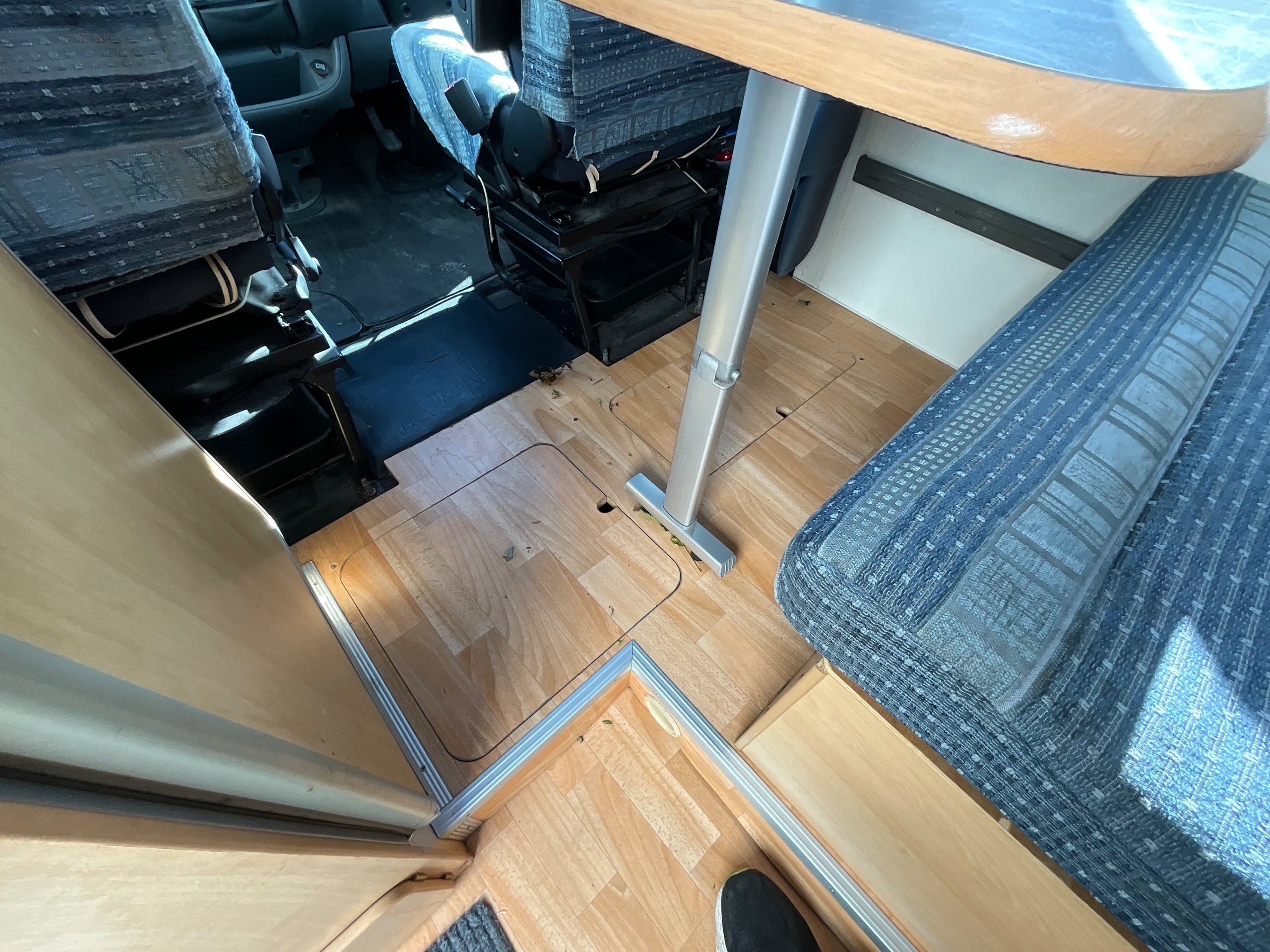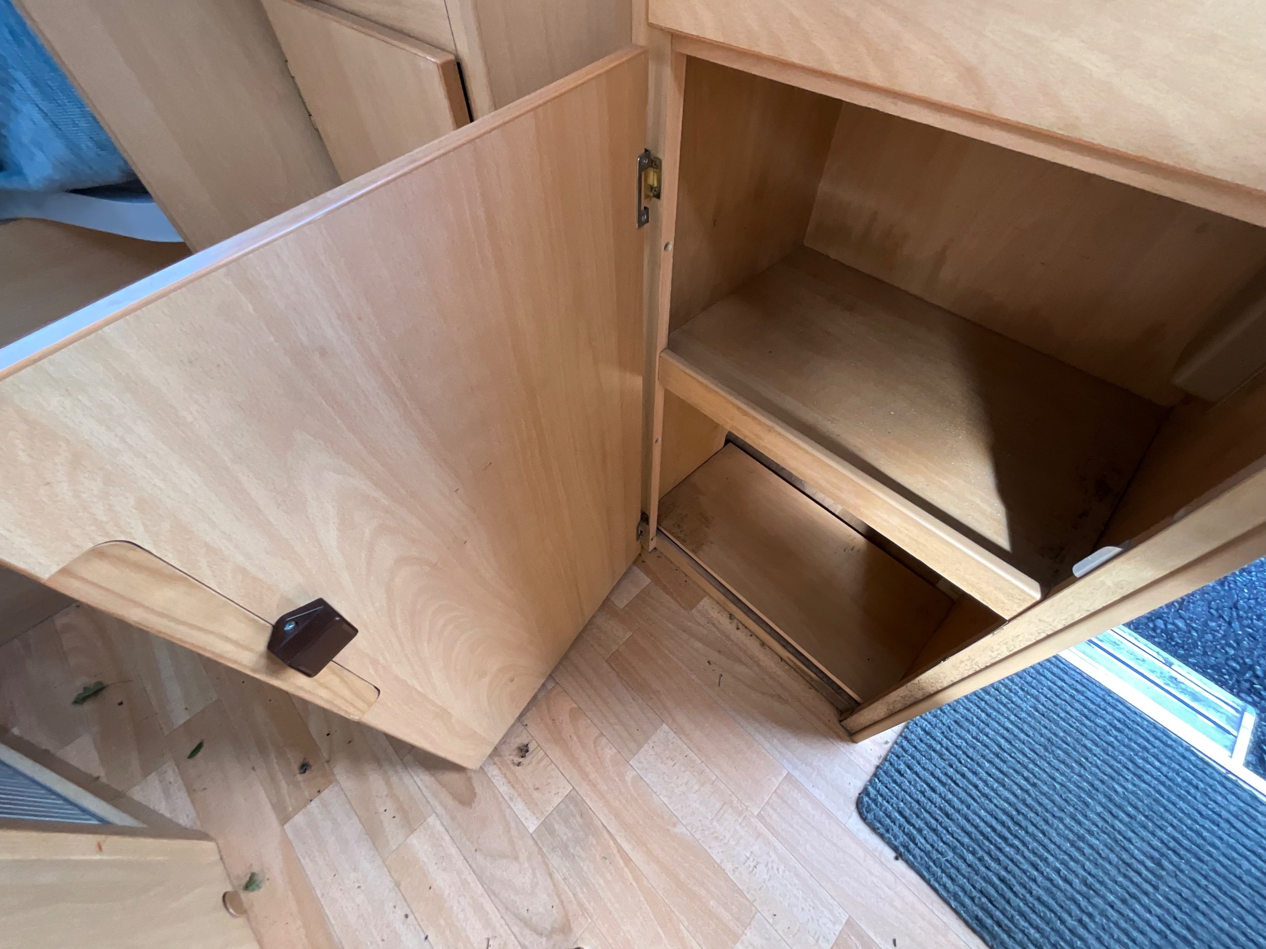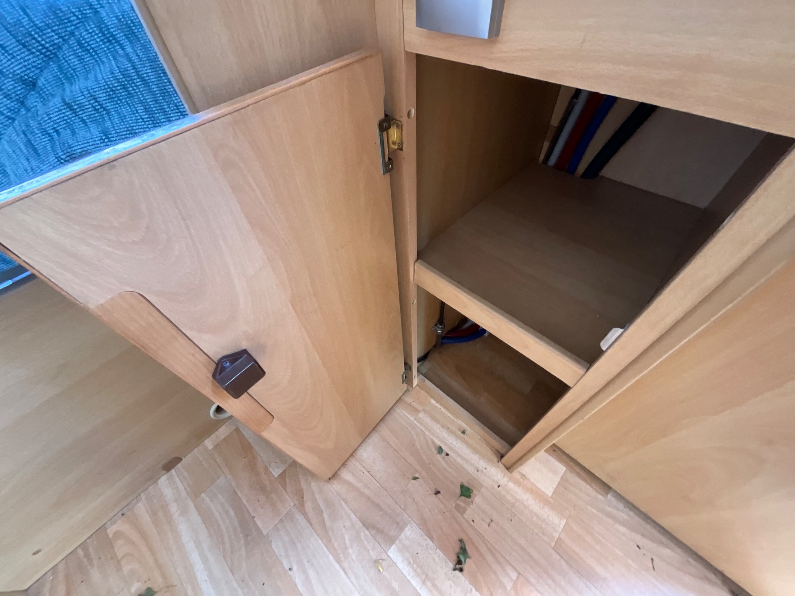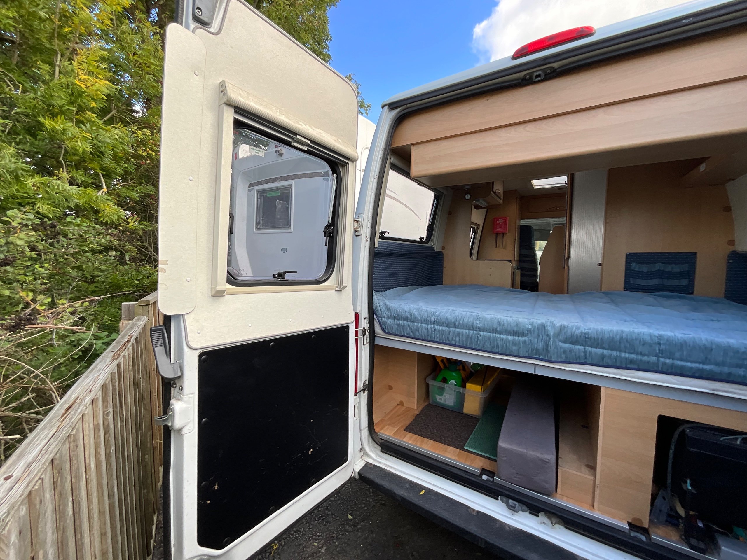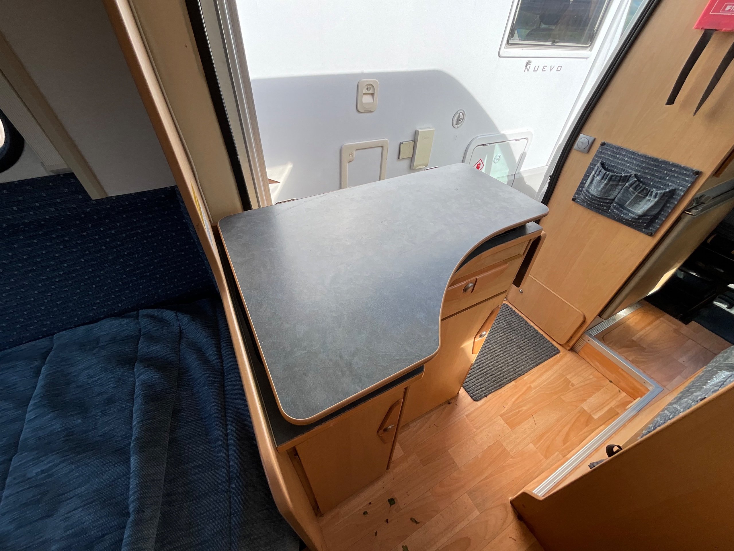 This Adria twin has the ability to sleep 3 and travel with 4 people full belted in. The Adria twin is a 3 Berth motorhome, with a rear fixed transverse bed layout offering plenty of storage underneath plus comfort with a proper Mattress. The central area offers flexible options of two forward facing seats (With inertia seat belts for travelling) with a table. This area then can be transformed into a dinette area with the use of the two swivel seats in the front cab to further enhance this area. Above the cab is a little storage