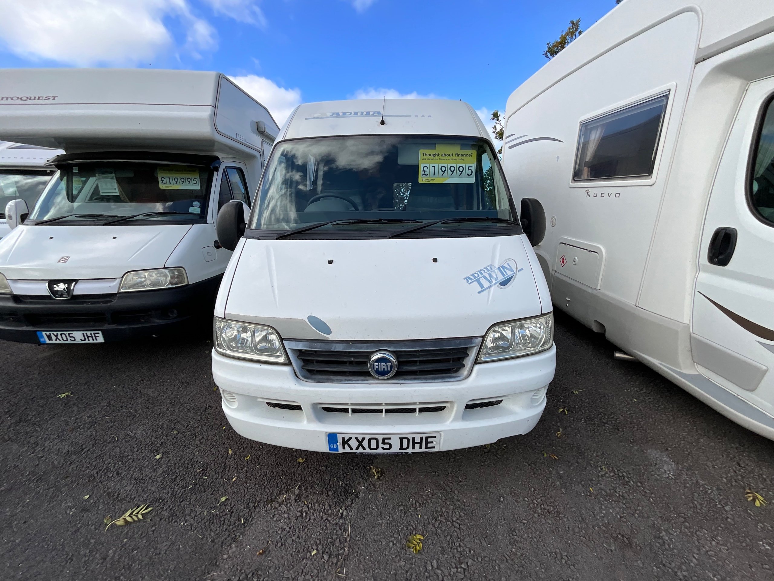 Adria Twin, Fiat Ducato, 2005 / 05 plate, 2.3 JTD engine, with 65,000 Miles, and is a 3 Berth.