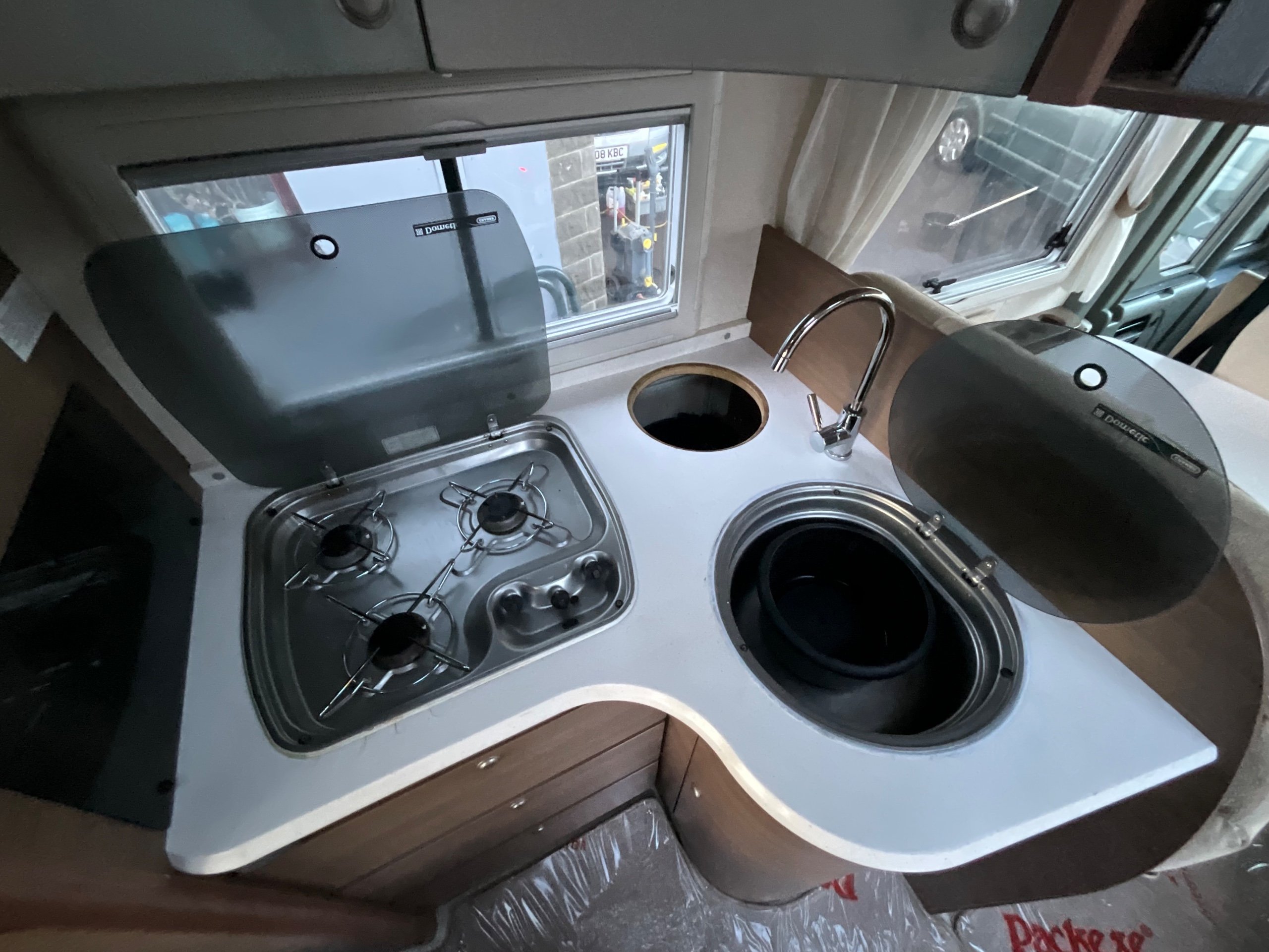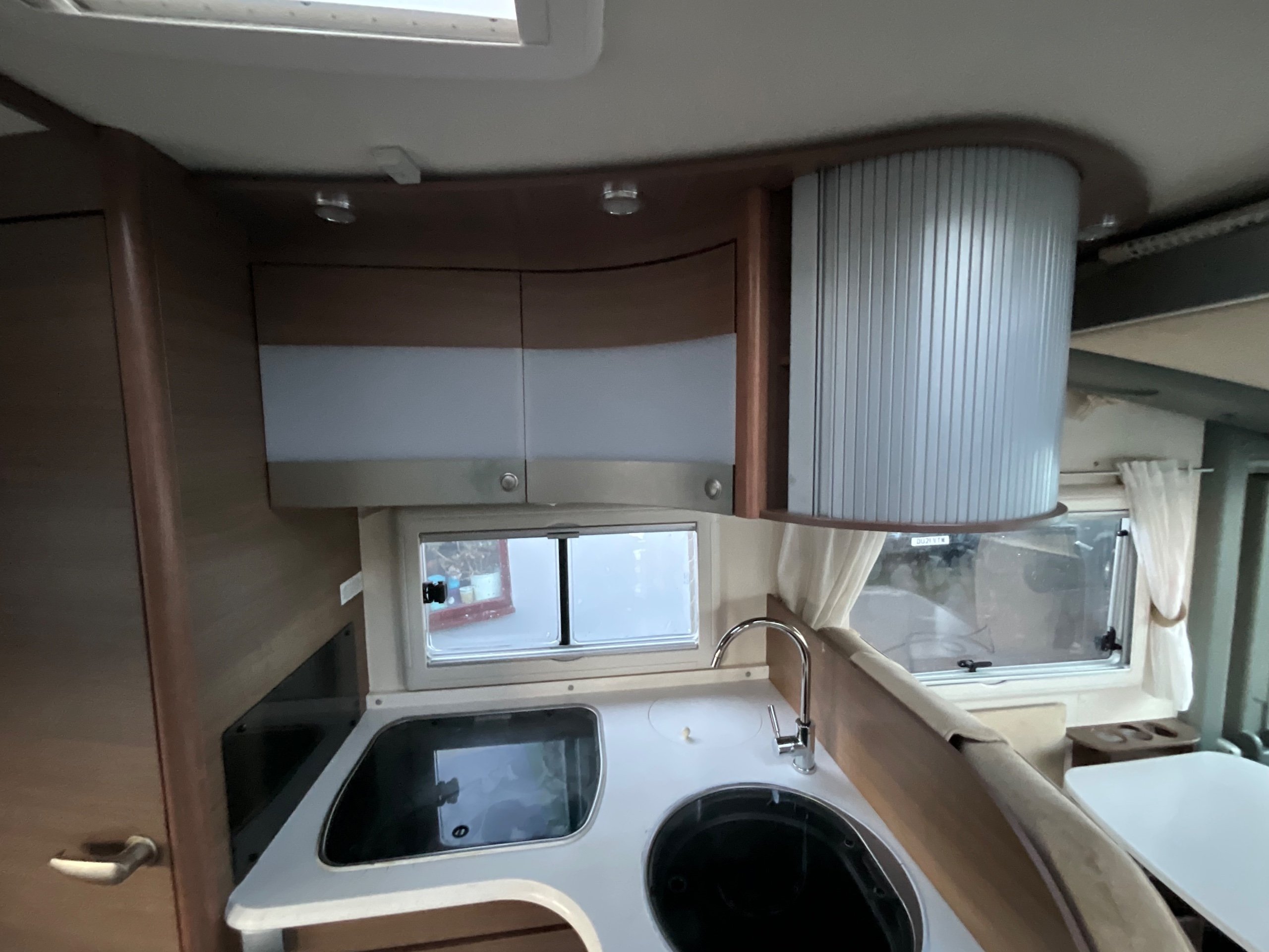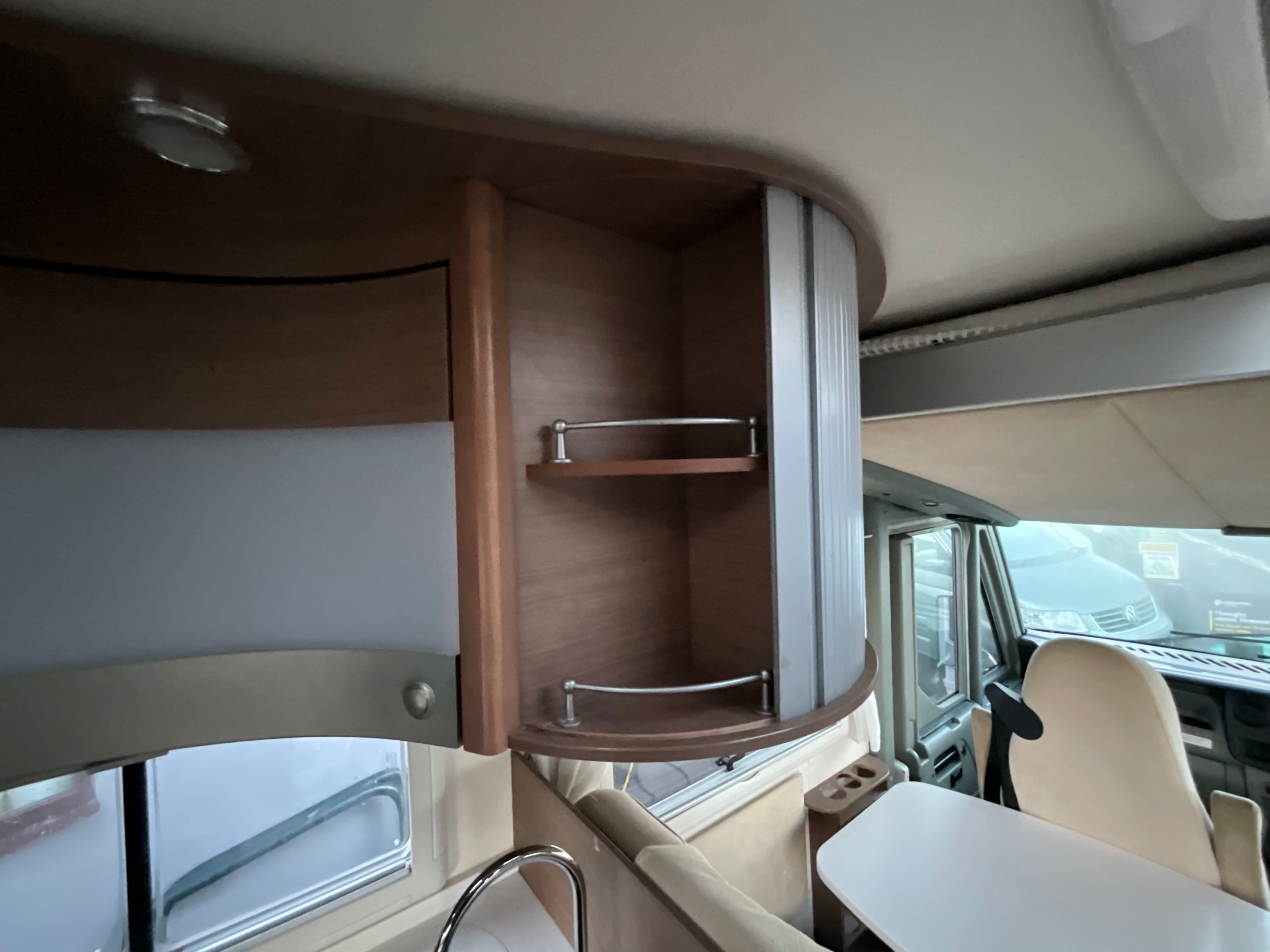 Adria Vision i677SP is a beautifully constructed and exceptionally insulated Motorhome in construction. The light-coloured wood and cream/white neutral furnishings lend itself to a modern feel of space and openness. All the comforts that you would expect with 3 Gas Hobs, Gas Grill & Oven, 3-way Fridge with separate freezer compartment, built in bins, pull out storage, sink and drainer. The bathroom is complete with basin, toilet and a separate shower cubicle.
