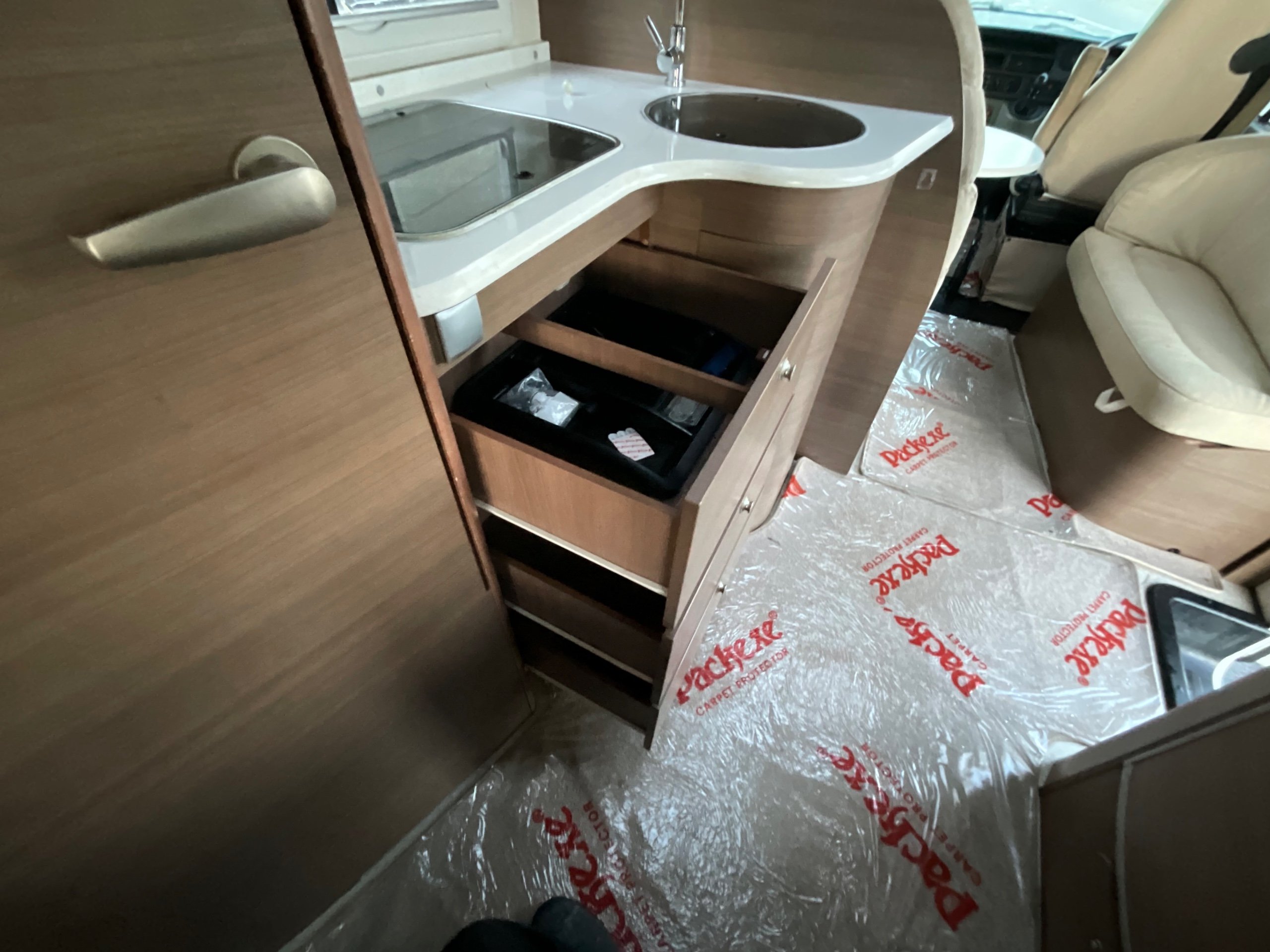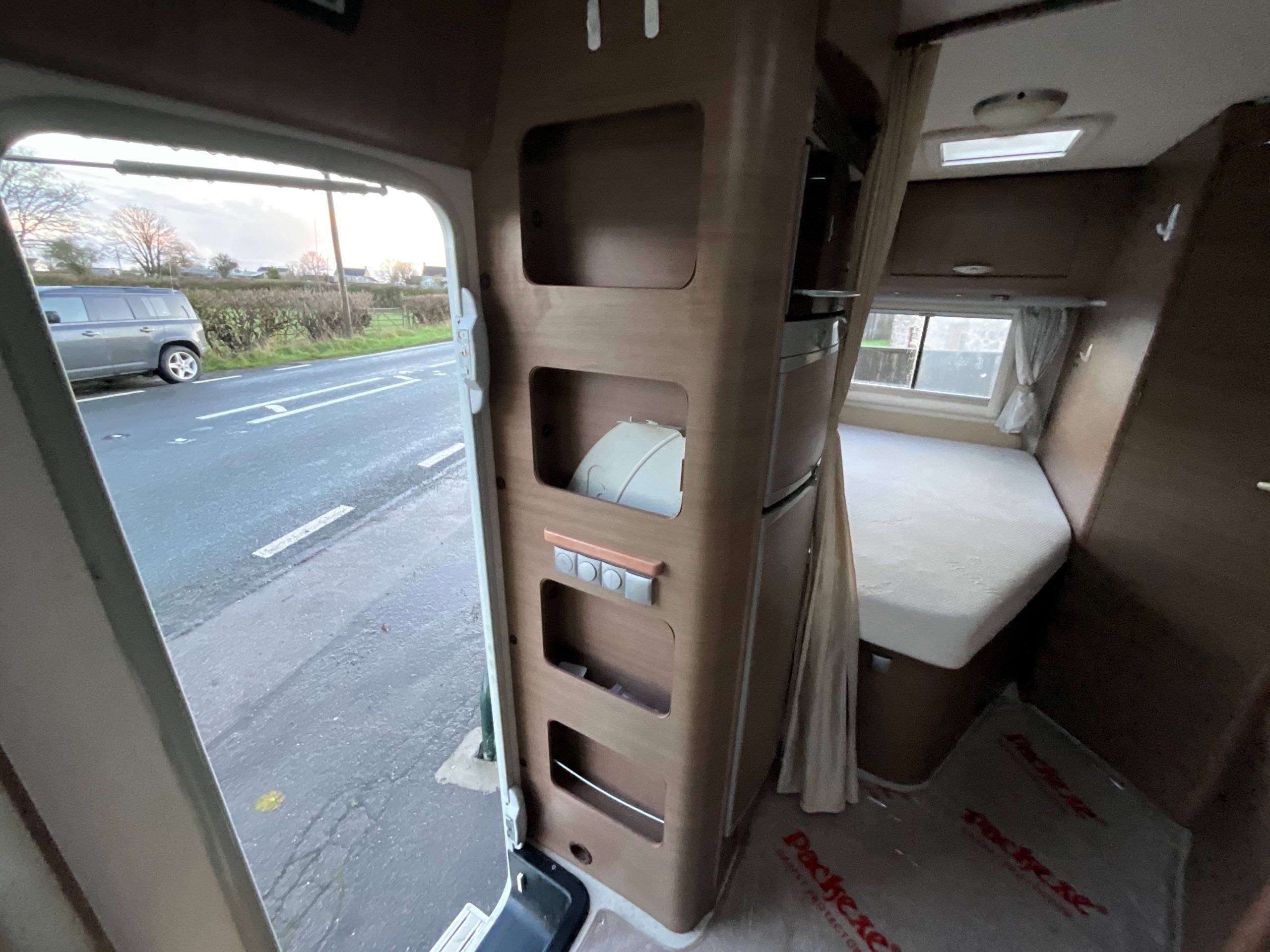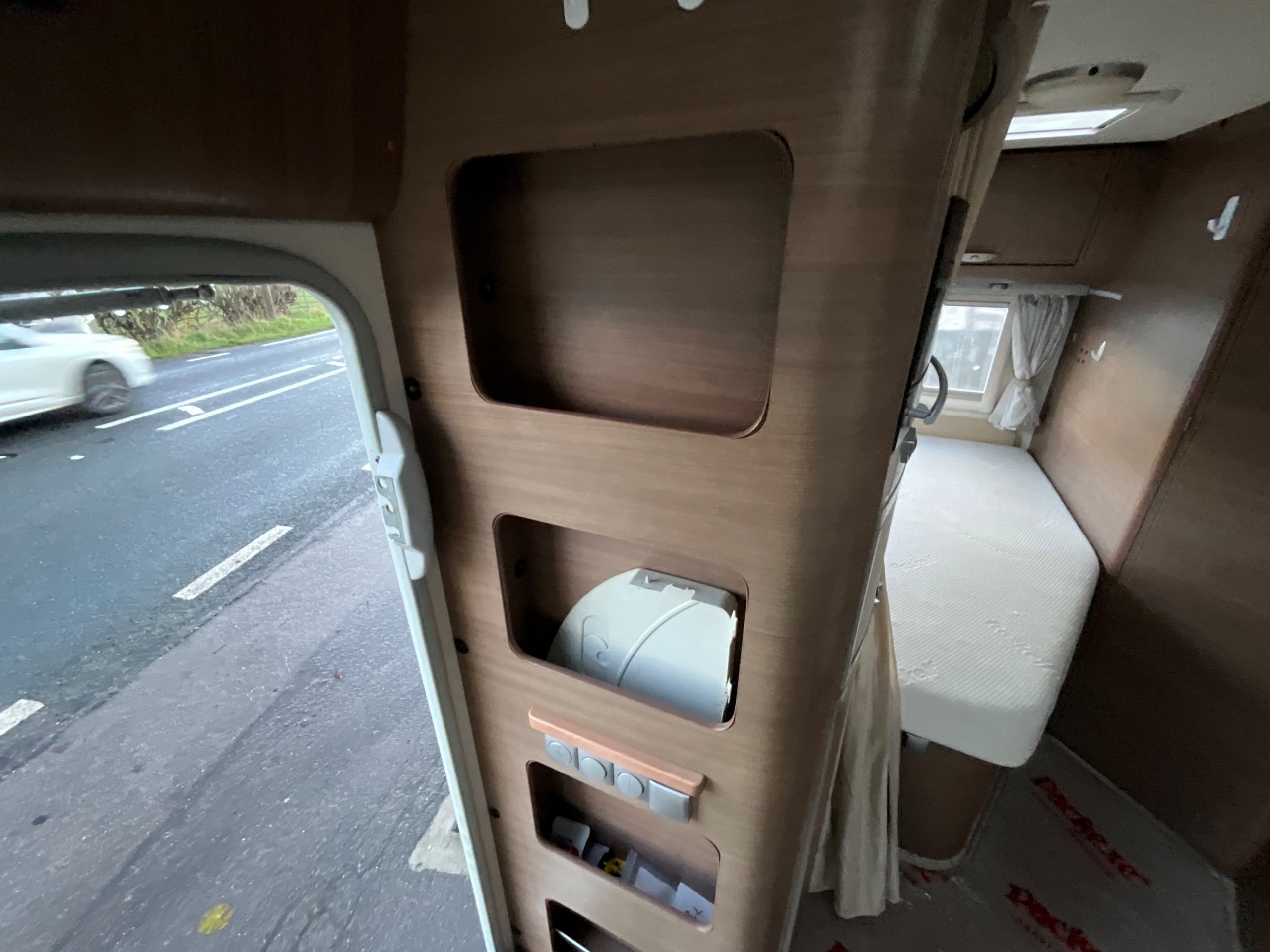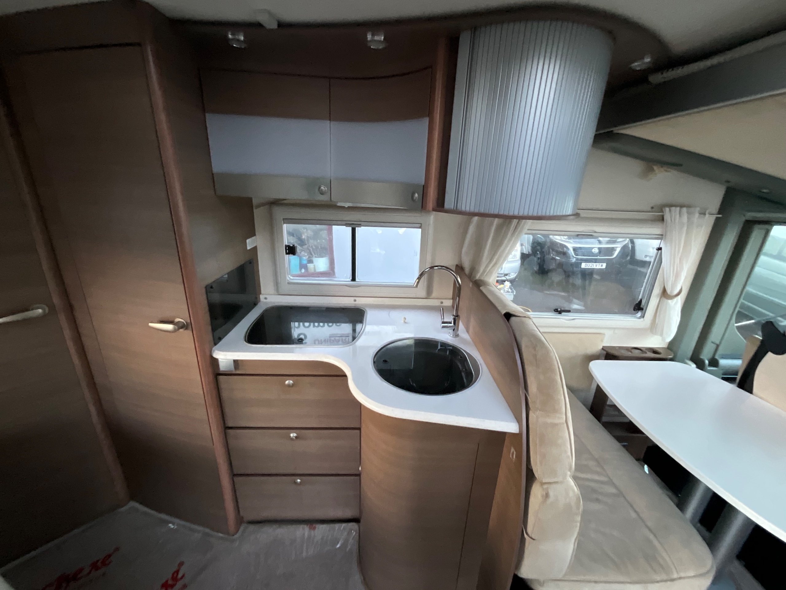 Adria Vision i677SP is a beautifully constructed and exceptionally insulated Motorhome in construction. The light-coloured wood and cream/white neutral furnishings lend itself to a modern feel of space and openness. All the comforts that you would expect with 3 Gas Hobs, Gas Grill & Oven, 3-way Fridge with separate freezer compartment, built in bins, pull out storage, sink and drainer. The bathroom is complete with basin, toilet and a separate shower cubicle.