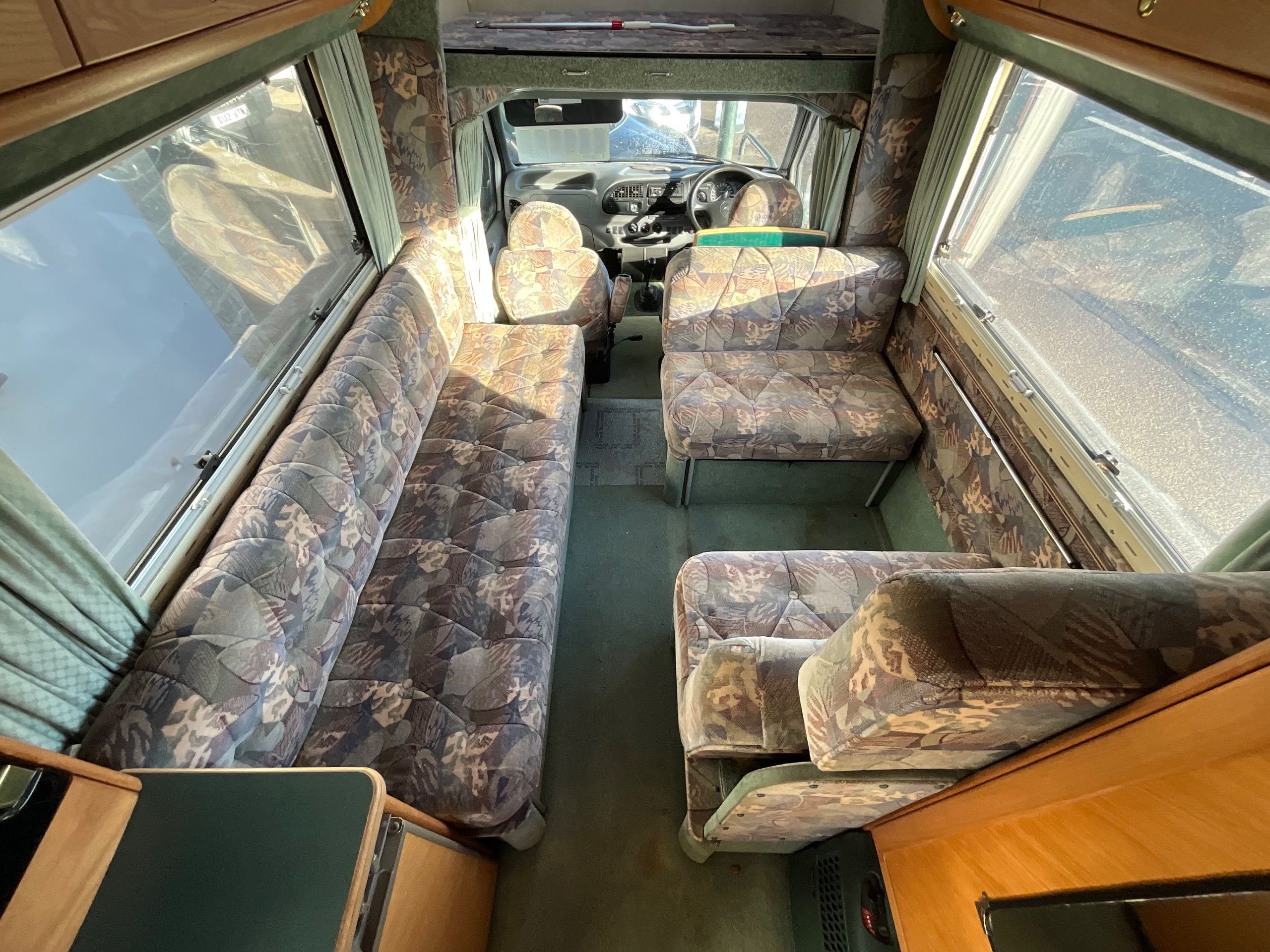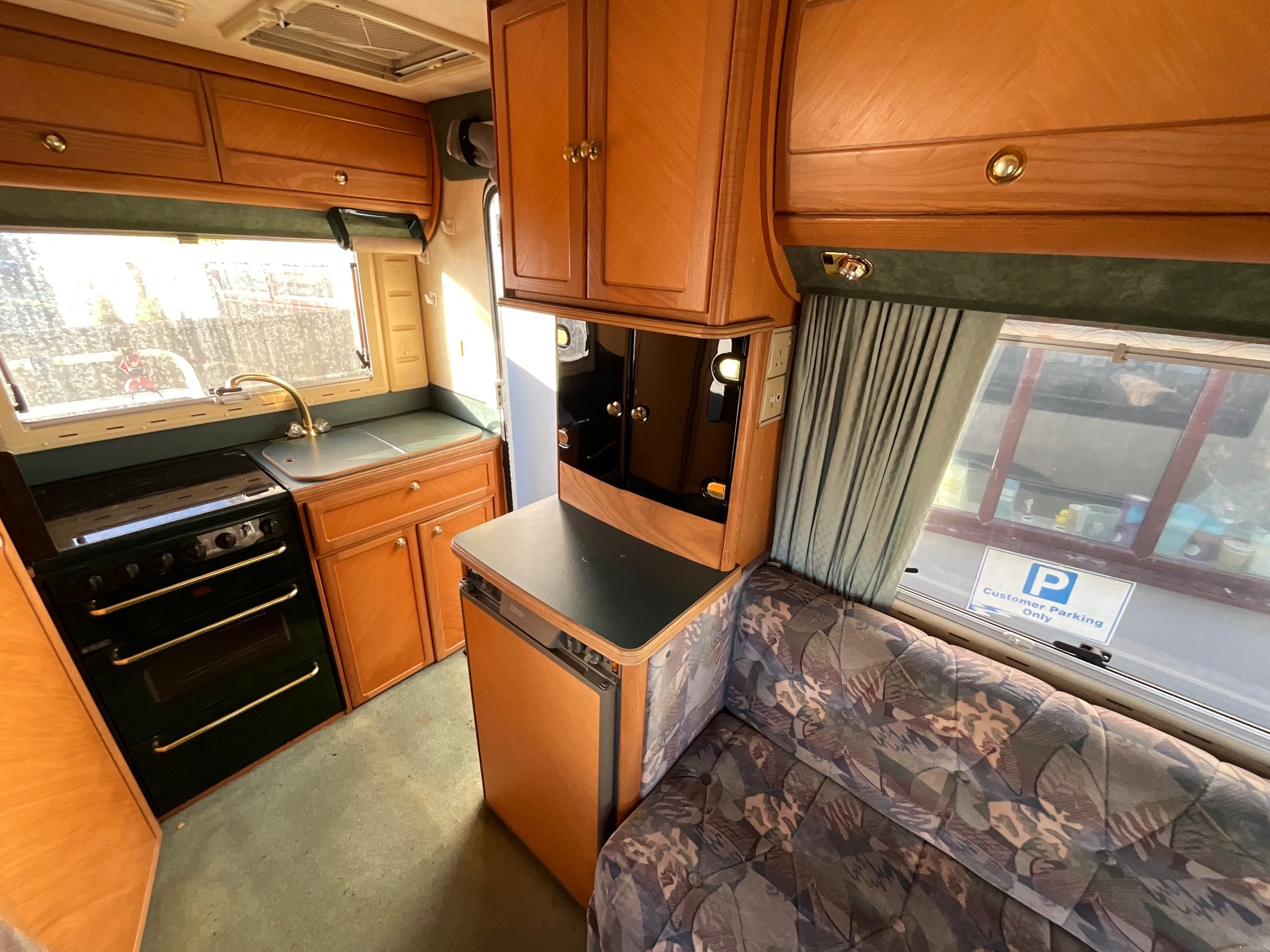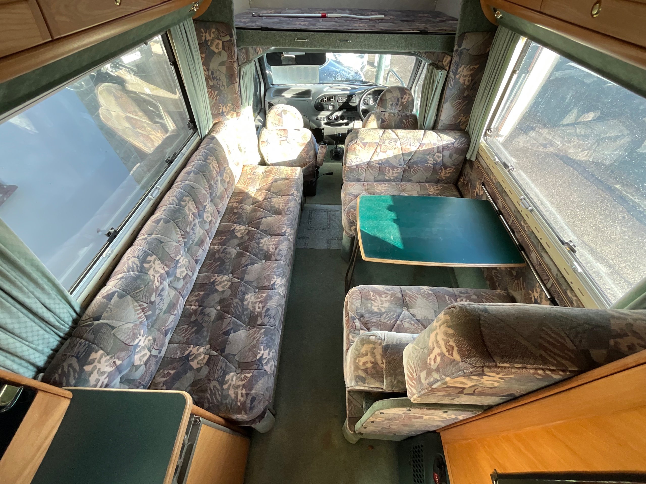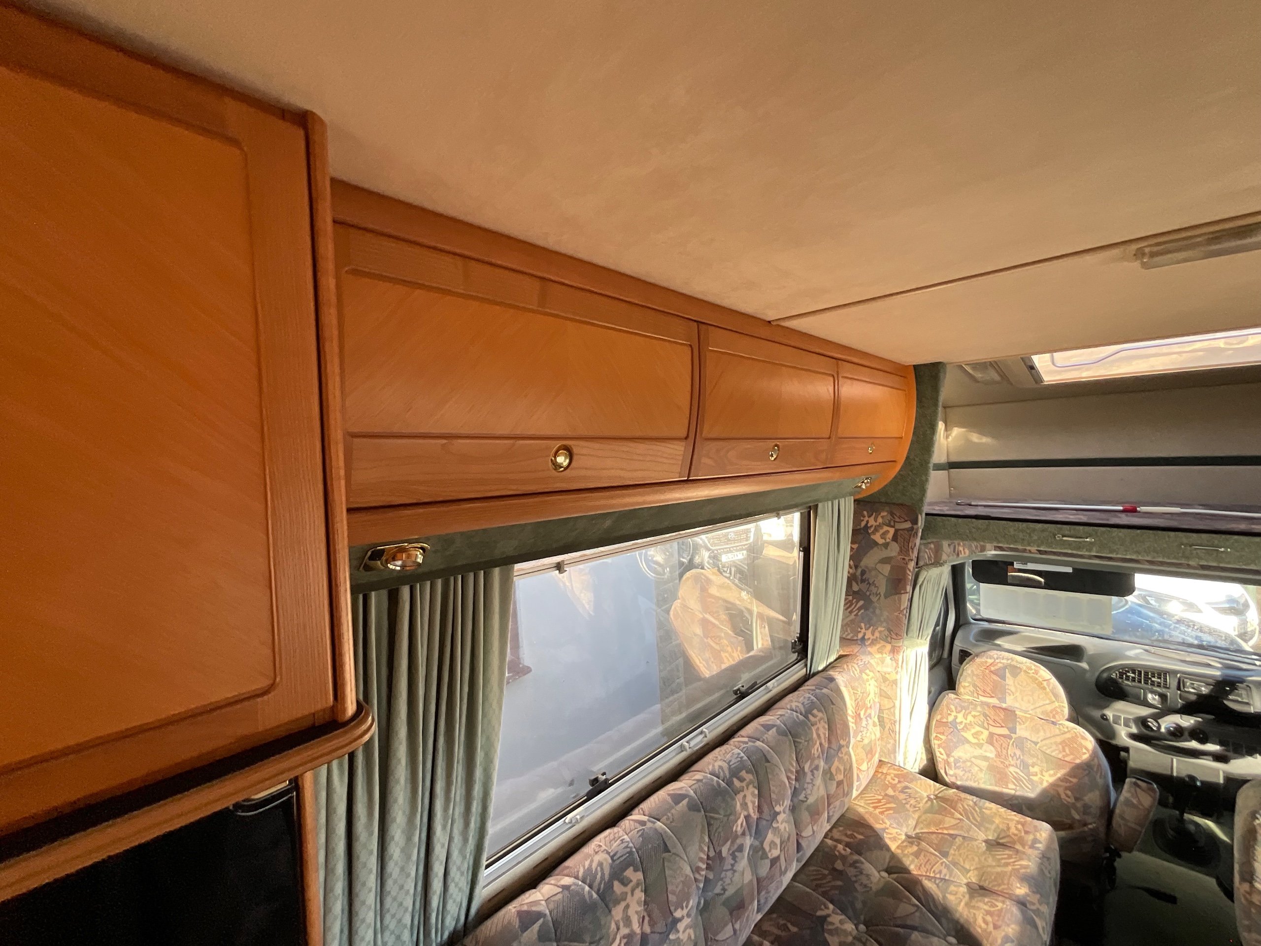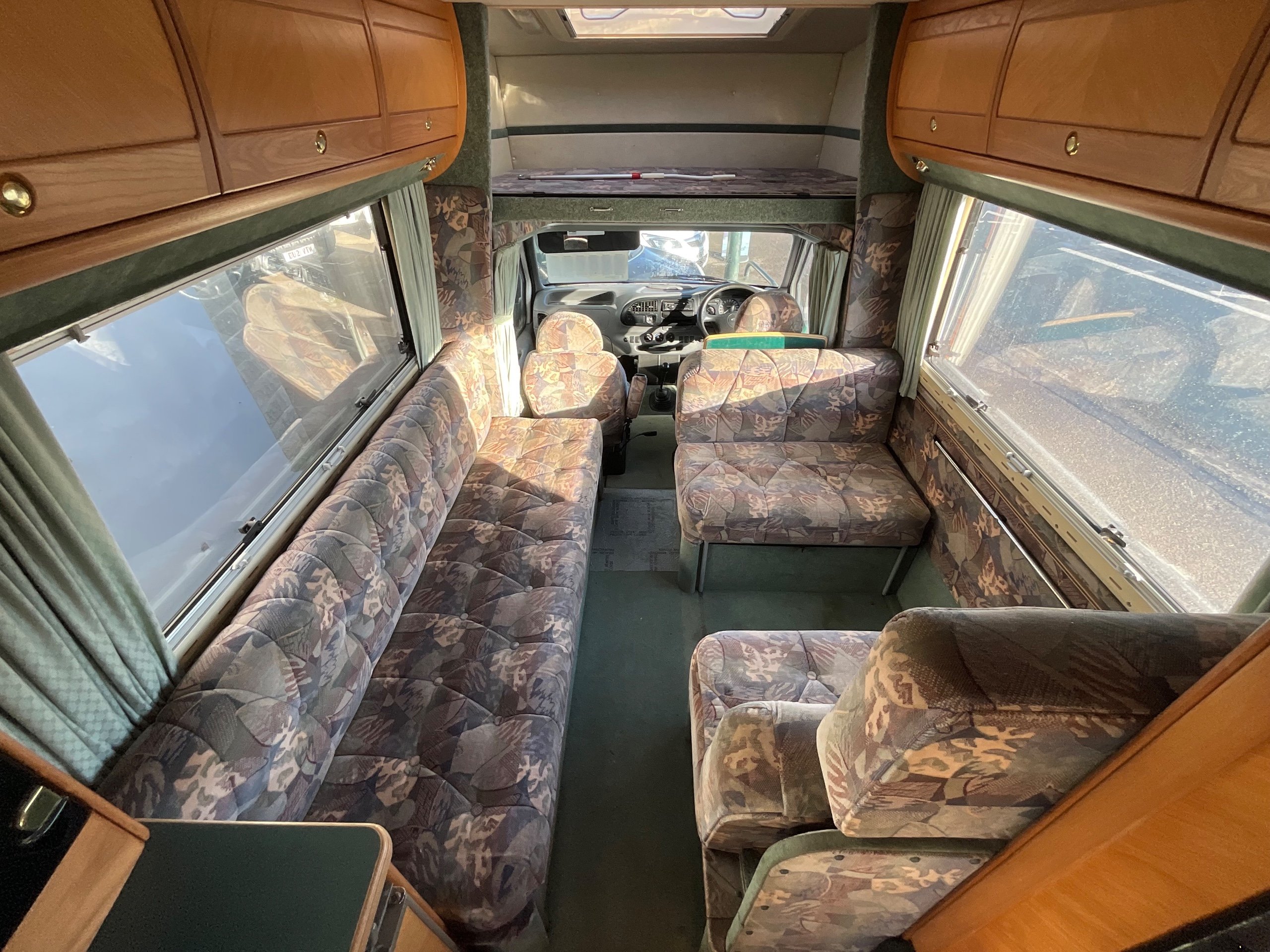 The Auto-sleeper Pollensa offers versatile seating when touring. The long settee makes into a single bed as you see it, the dinette has the benefit of being a small double bed or you can make the whole lounge area a massive queen size double bed for sleeping. The large overhead cab is also an additional double bed, allowing for adults to sleep up there or a good area for storage.