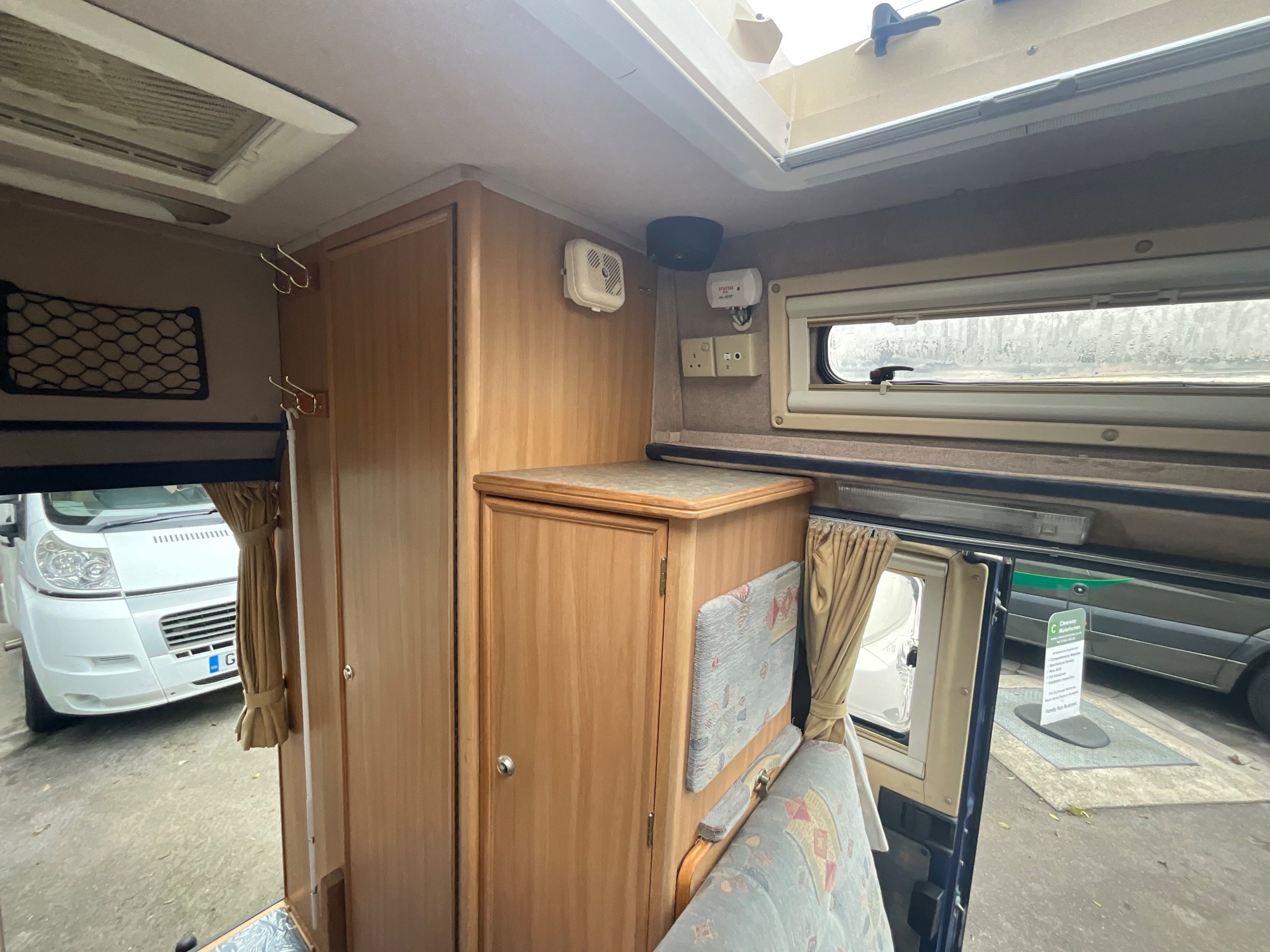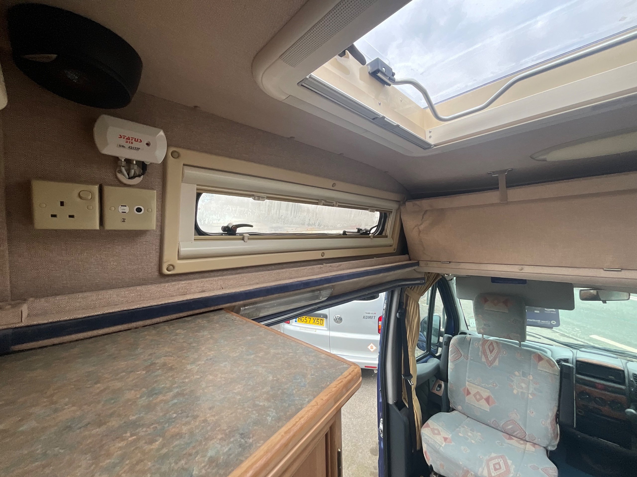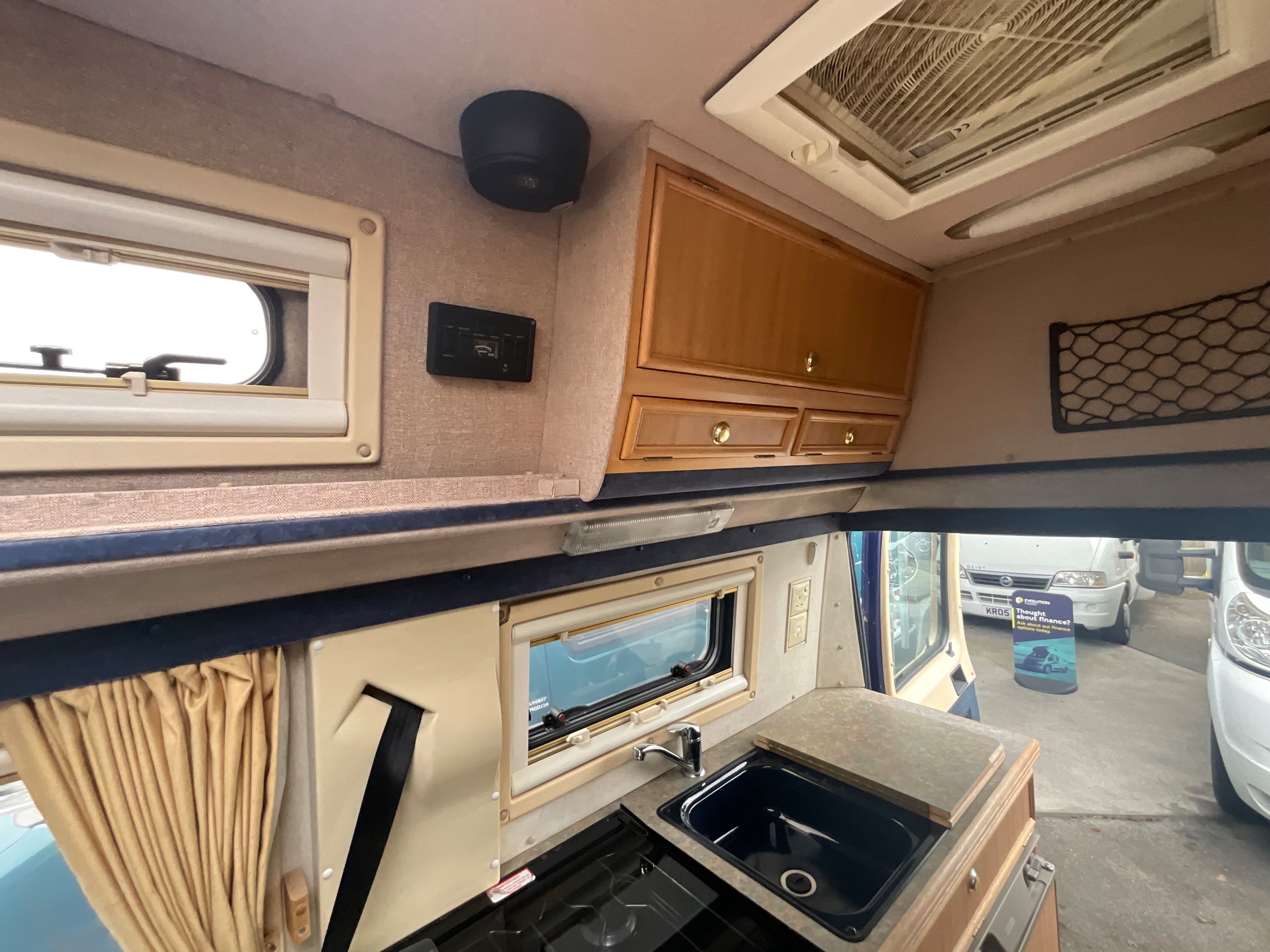 Although it’s a 4 Berth it is within the confines of a Peugeot Talbot van allowing for easy driving as well as the use of an every day vehicle, it makes life even easier. Within the motorhome is Fresh and wastewater tanks, Diesel operated heating system, Gas / Electrical operated hot water via the well renowned Truma hot water system. The electrical hot water works when plugged in on 240V power.