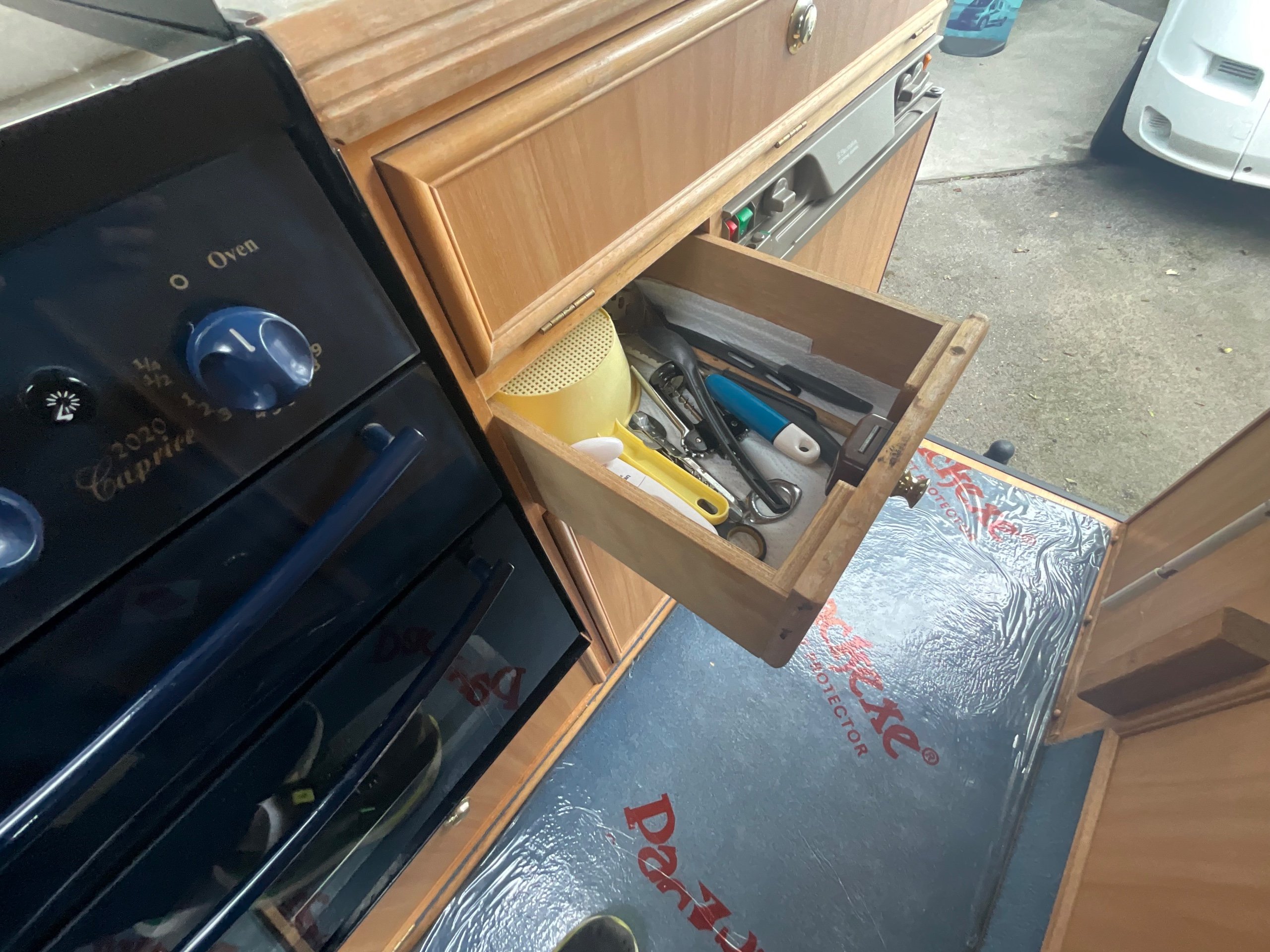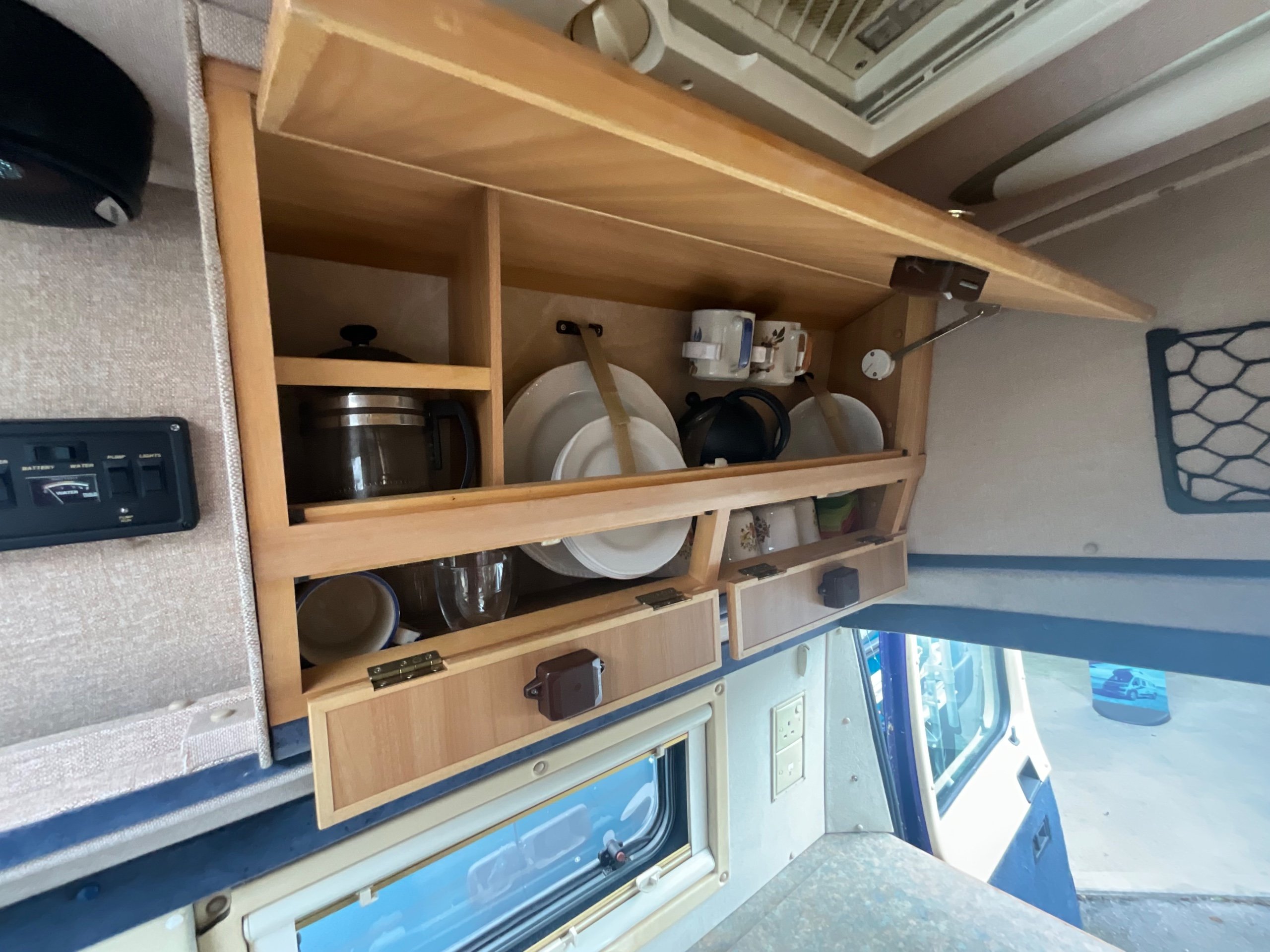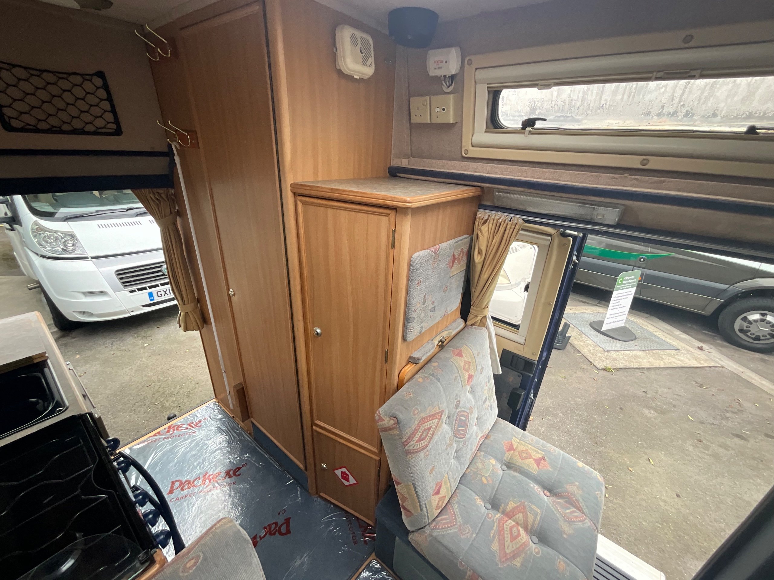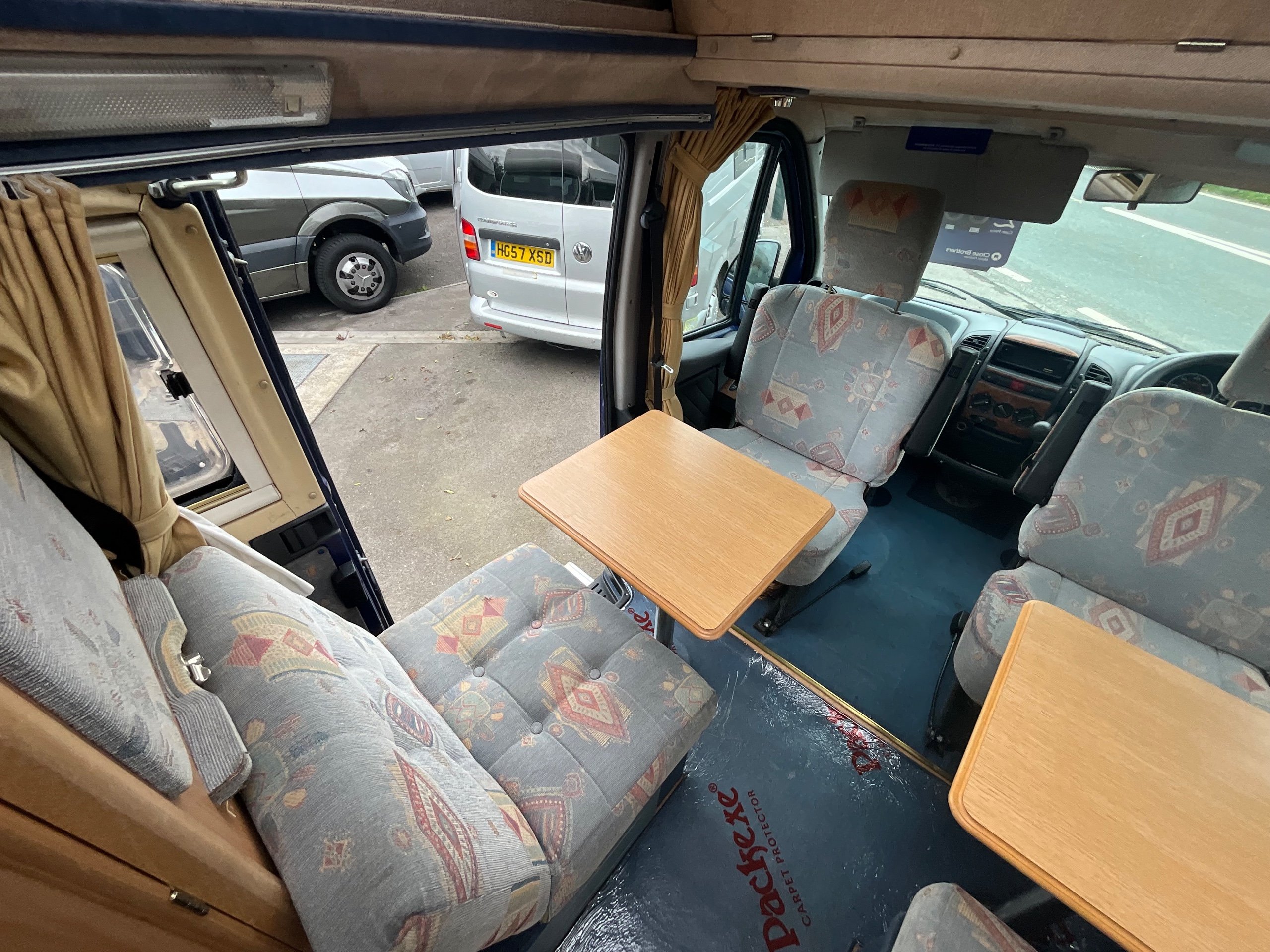 Although it’s a 4 Berth it is within the confines of a Peugeot Talbot van allowing for easy driving as well as the use of an every day vehicle, it makes life even easier. Within the motorhome is Fresh and wastewater tanks, Diesel operated heating system, Gas / Electrical operated hot water via the well renowned Truma hot water system. The electrical hot water works when plugged in on 240V power.
