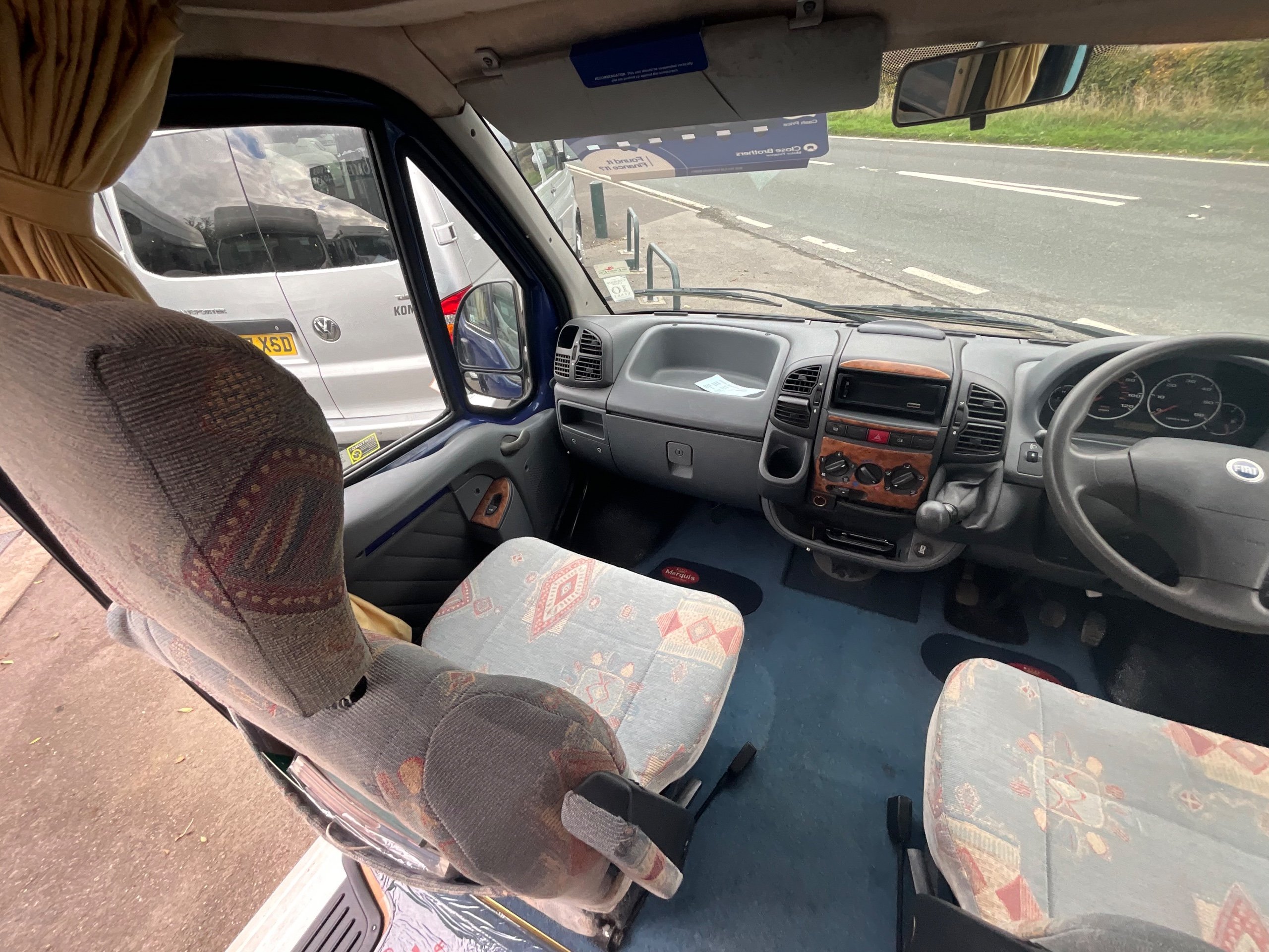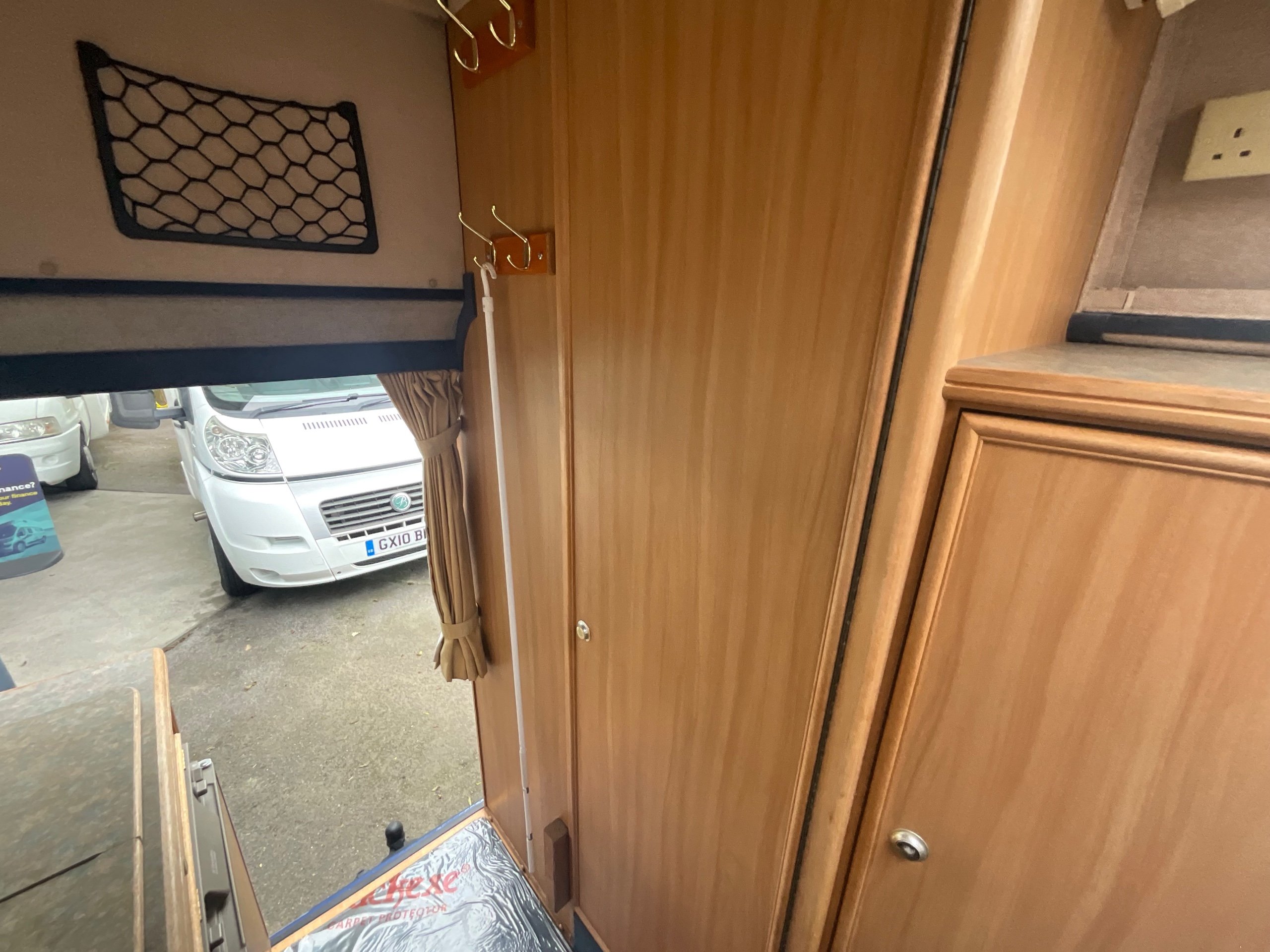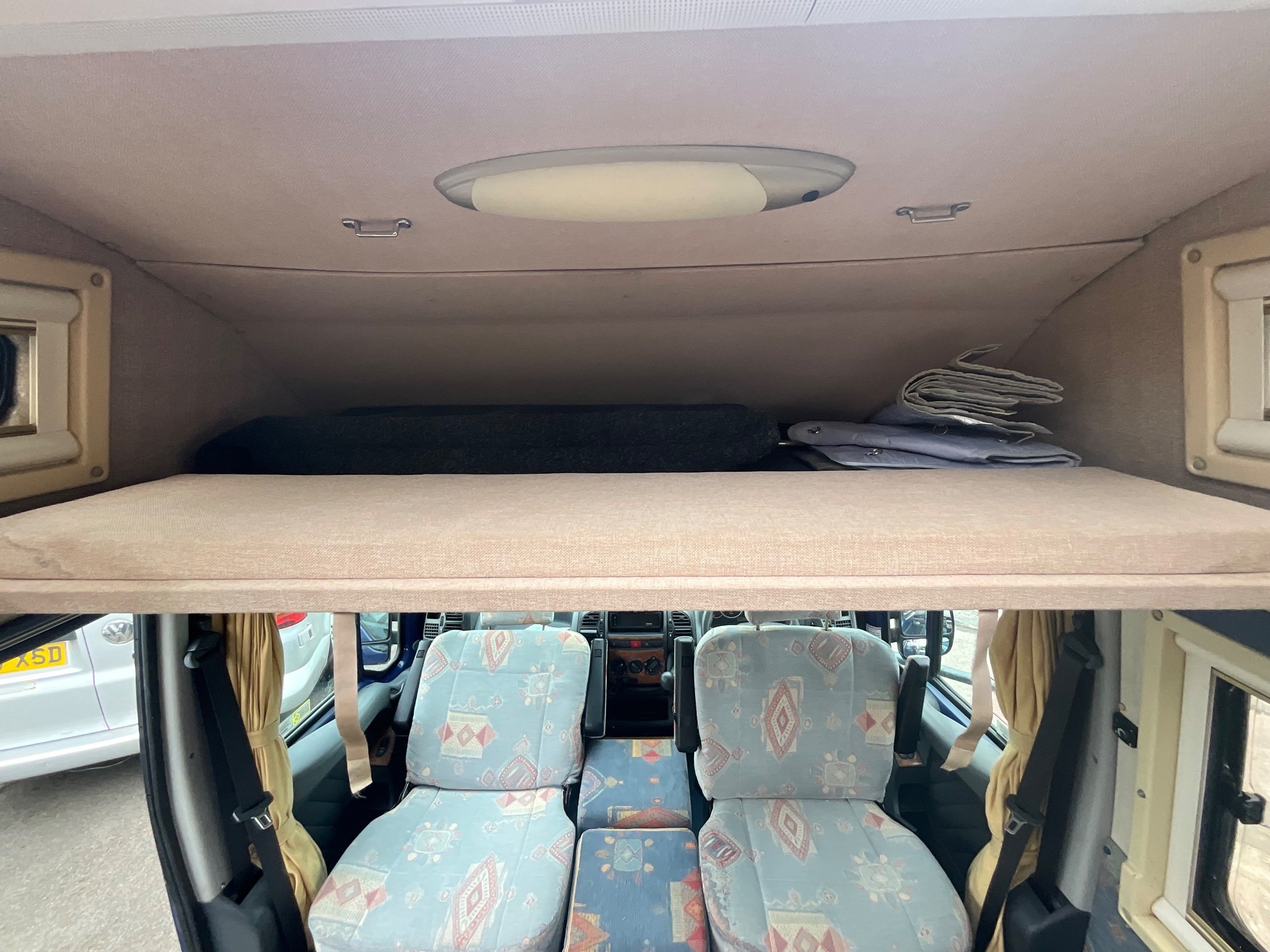 Auto-sleepers Marquis Sussex is 4 Berth, 4 Seat belts with twin rear forward facing seats (with one seat having capabilities of forming a bench seat on the opposite side to the sliding door) to use while touring (with the drivers & passenger front seats working on swivel mechanisms). With a Bathroom towards the back of the vehicle (on right hand side) and kitchen along the other side. There is also another double bed (can also be a storage area) in the over head cab.