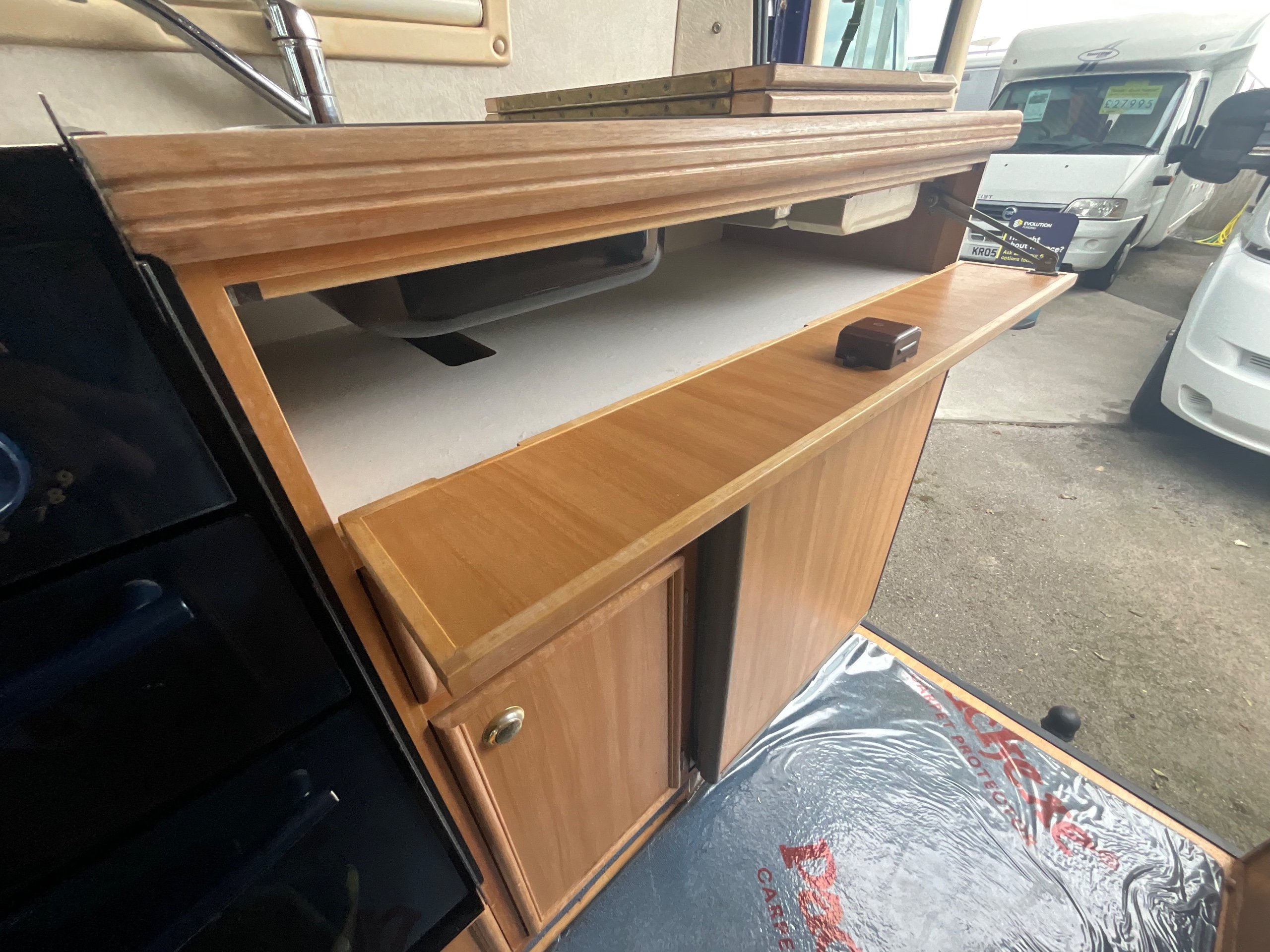 The Auto-sleepers Marquis Sussex is of stunning quality with exceptional upholstery and cushions. This offers extreme comfort when touring. Inside is all the quality of an Auto-sleepers, which is evident everywhere. The twin forward facing seats area make a double bed or two single beds, with the other double bed in the roof of the motorhome. With a good sized bathroom/washroom at the rear which includes wash basin, shower and cassette toilet. The kitchen opposite is fully equipped with 3-way fridge, sink with drainer, extra work surface, 3 Gas hobs and a Full Gas Grill & Oven.