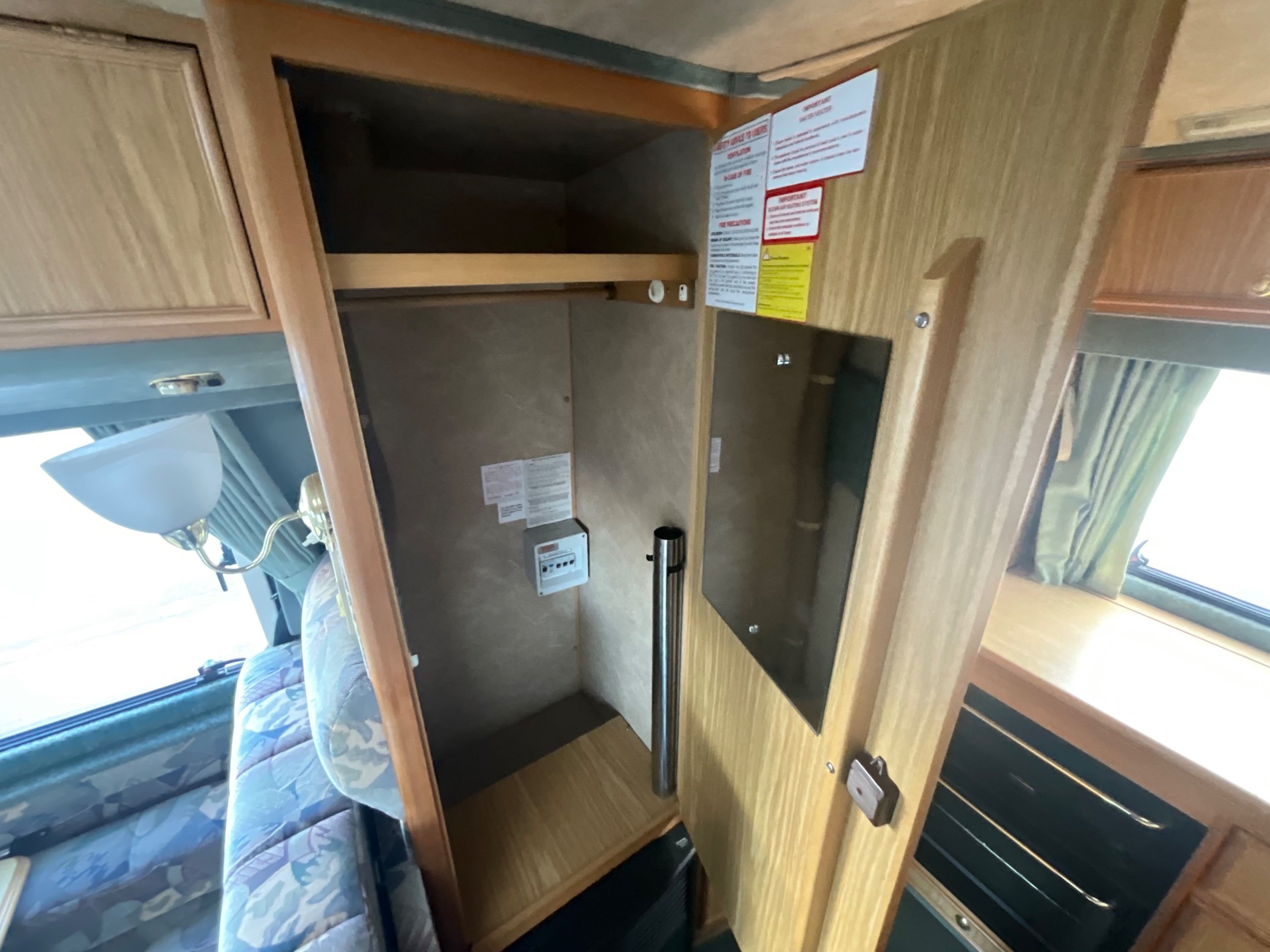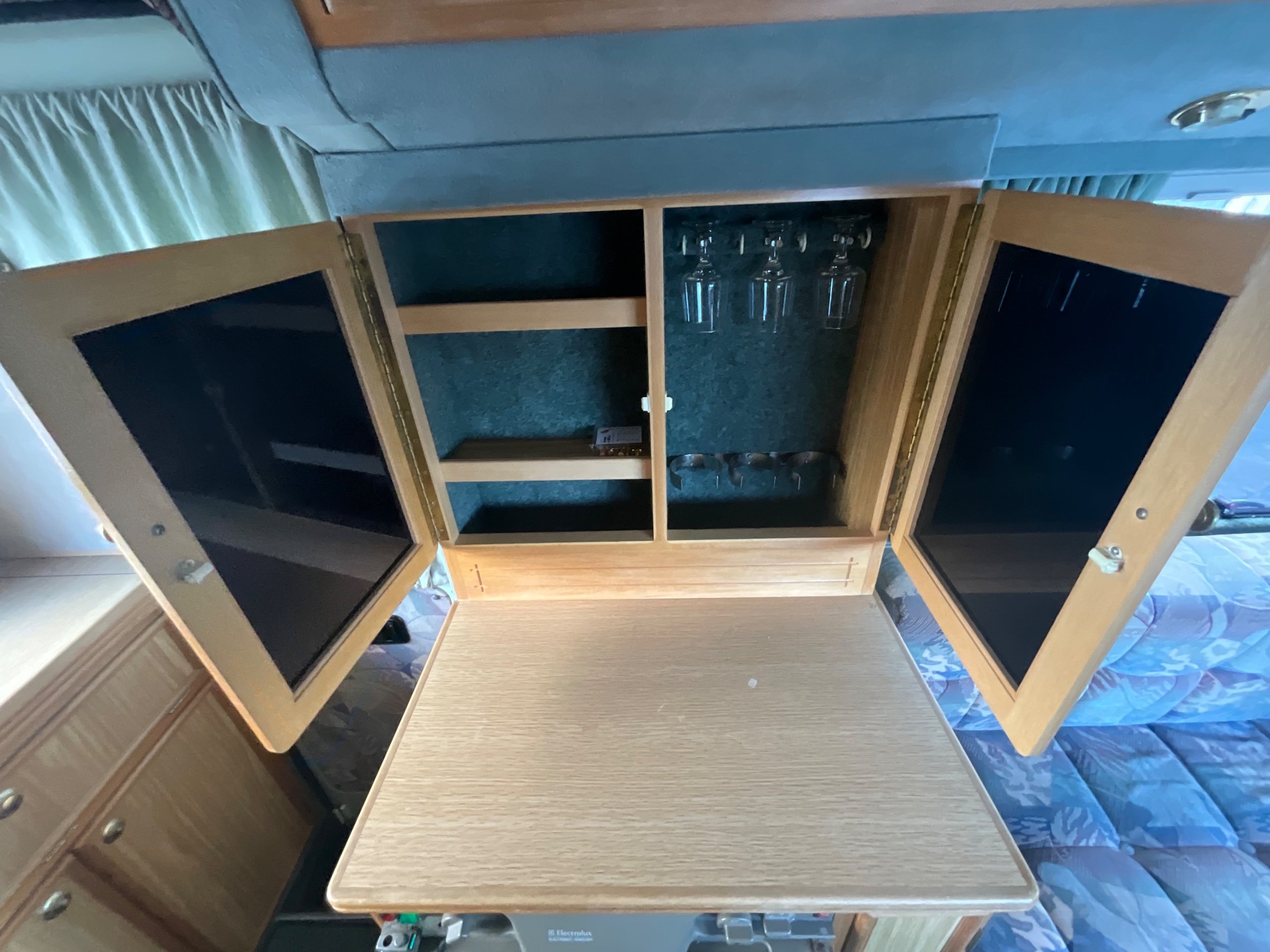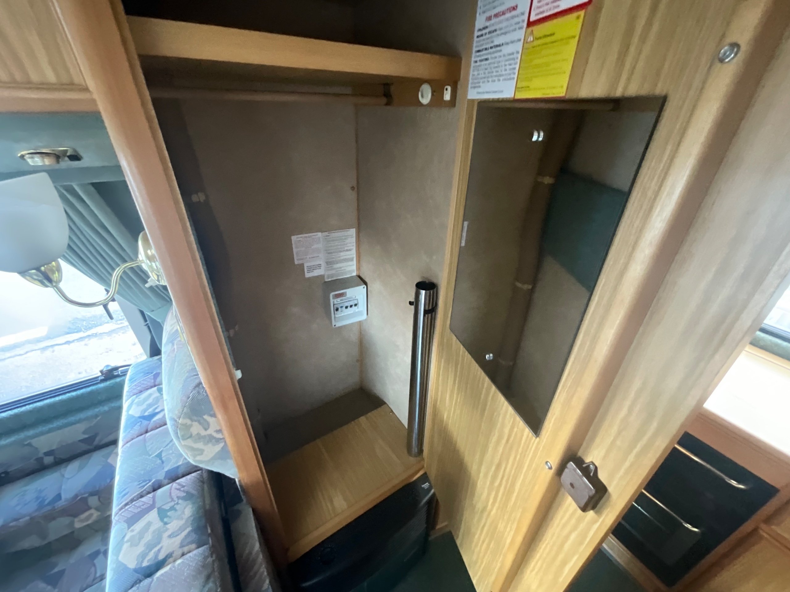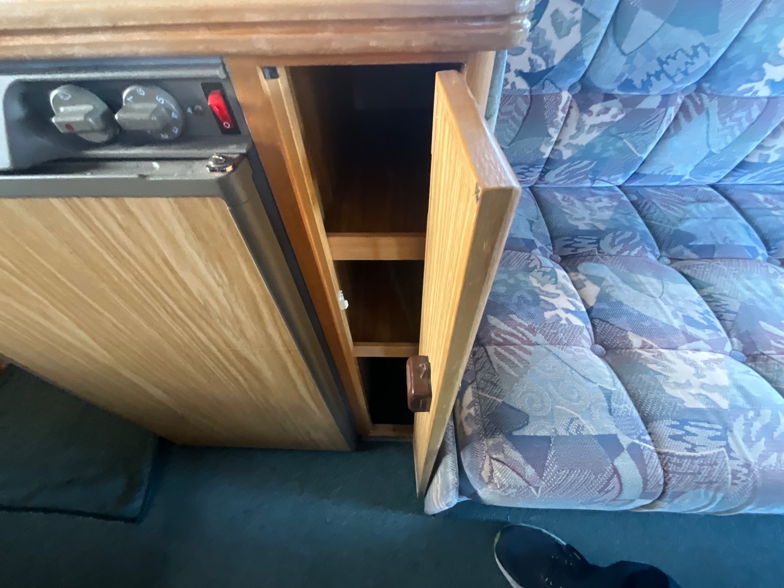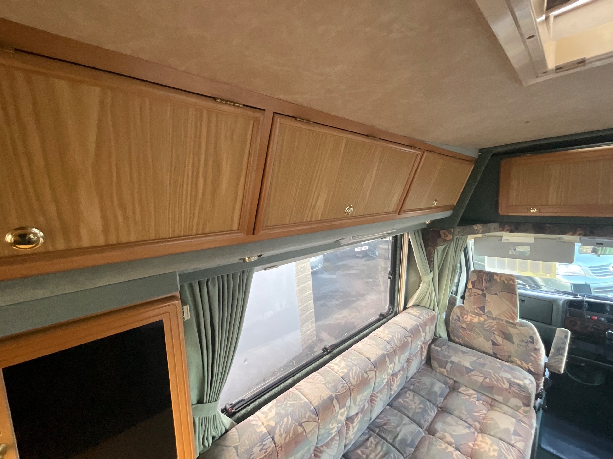For the sleeping arrangement the bench seat forms one large single bed over 6ft in length with the dinette forming the other single bed, with both front seating sliding forwards to further enhance the single beds length. Alternatively this area can form into a large double bed. The overhead cab area offers storage or forms another double bed.