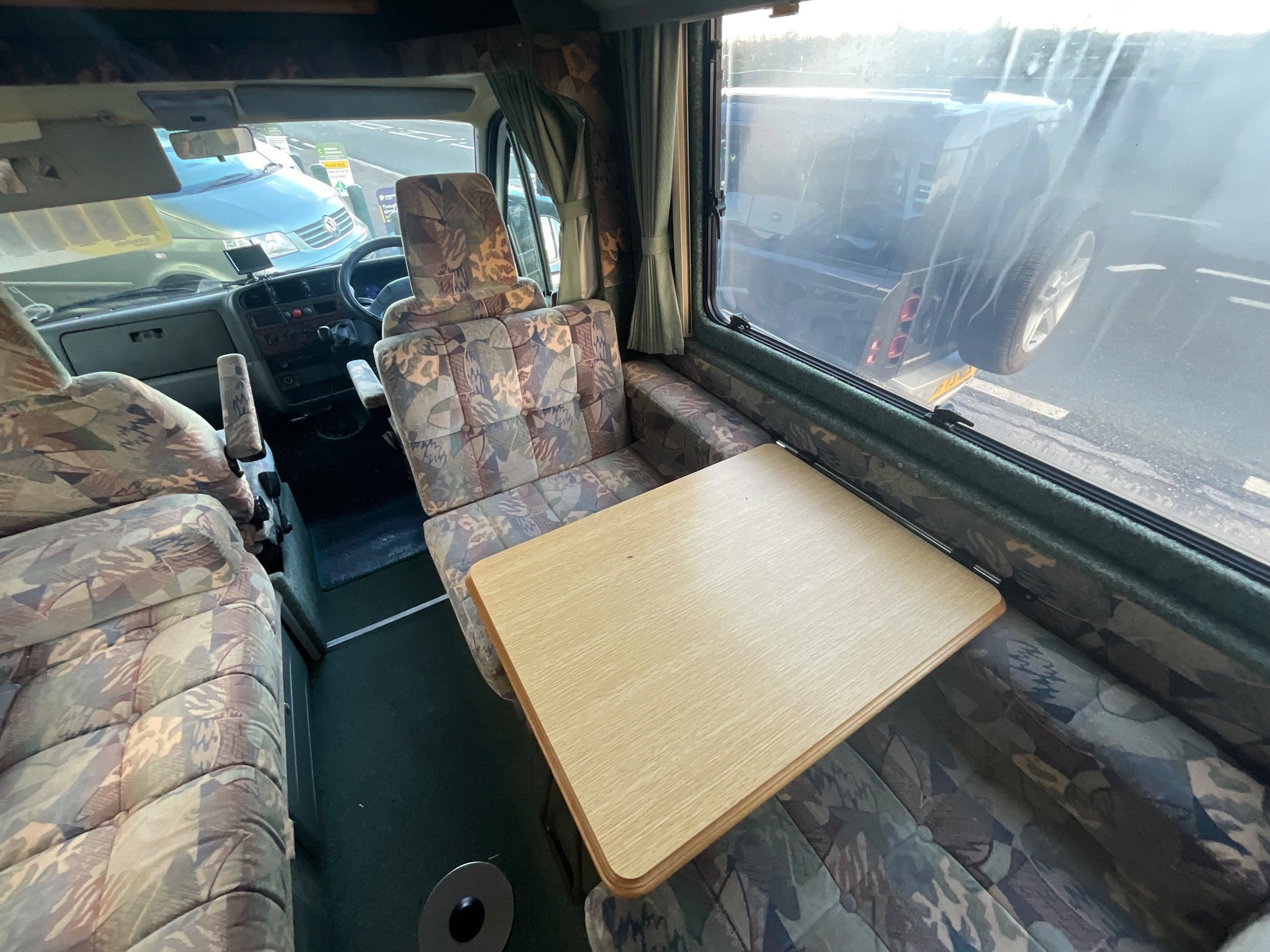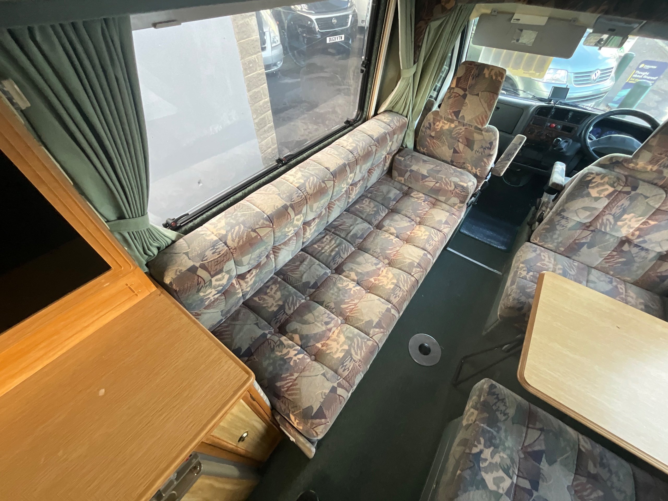 Auto-sleeper Talisman is a 4/5 Berth motorhome which towards the back is a rear kitchen and Bathroom complete with a shower, hand basin and toilet with the kitchen to the side of bathroom separated by a door at the rear of the motorhome. Then towards the front, you have the lounge offering flexible options of a large single bench seat and a small dinette on the other (with extra seat belts) for a large seating area. So, this motorhome can travel with 3 people fully belted in as well as a singular lap belt fitted as well on the backward facing seat.