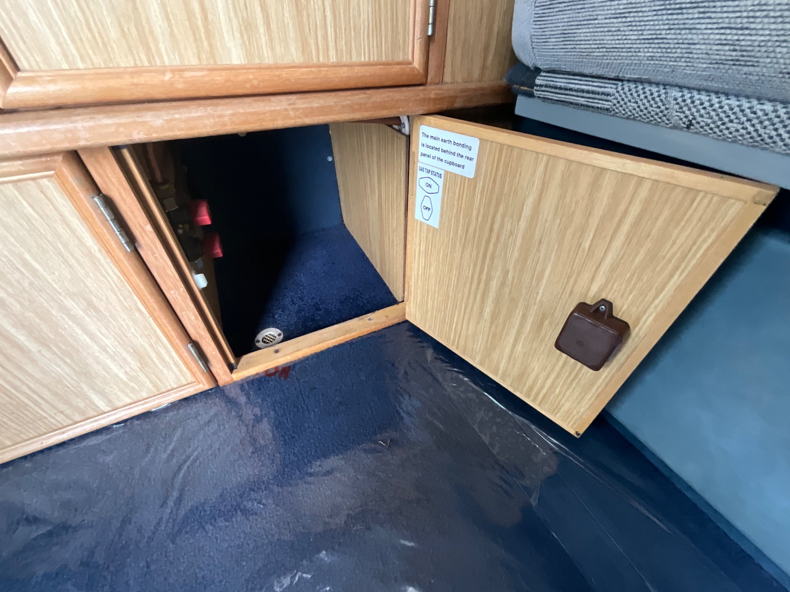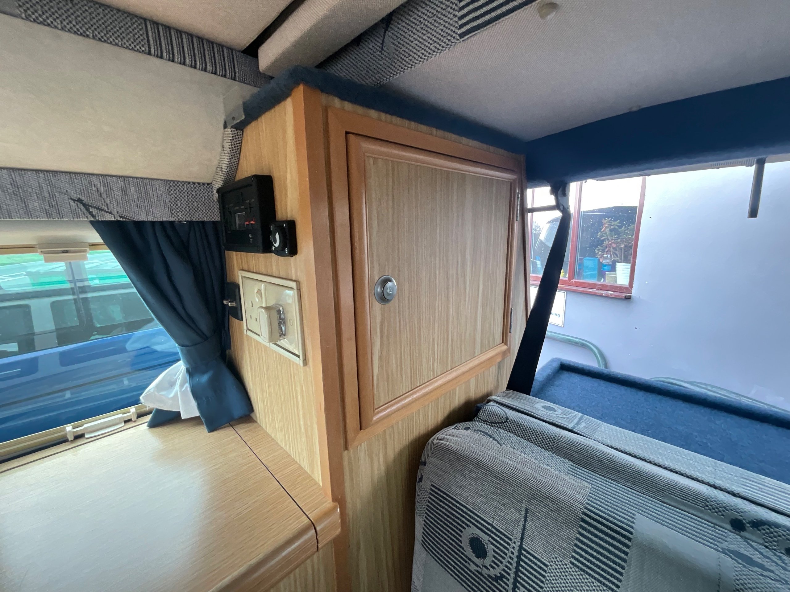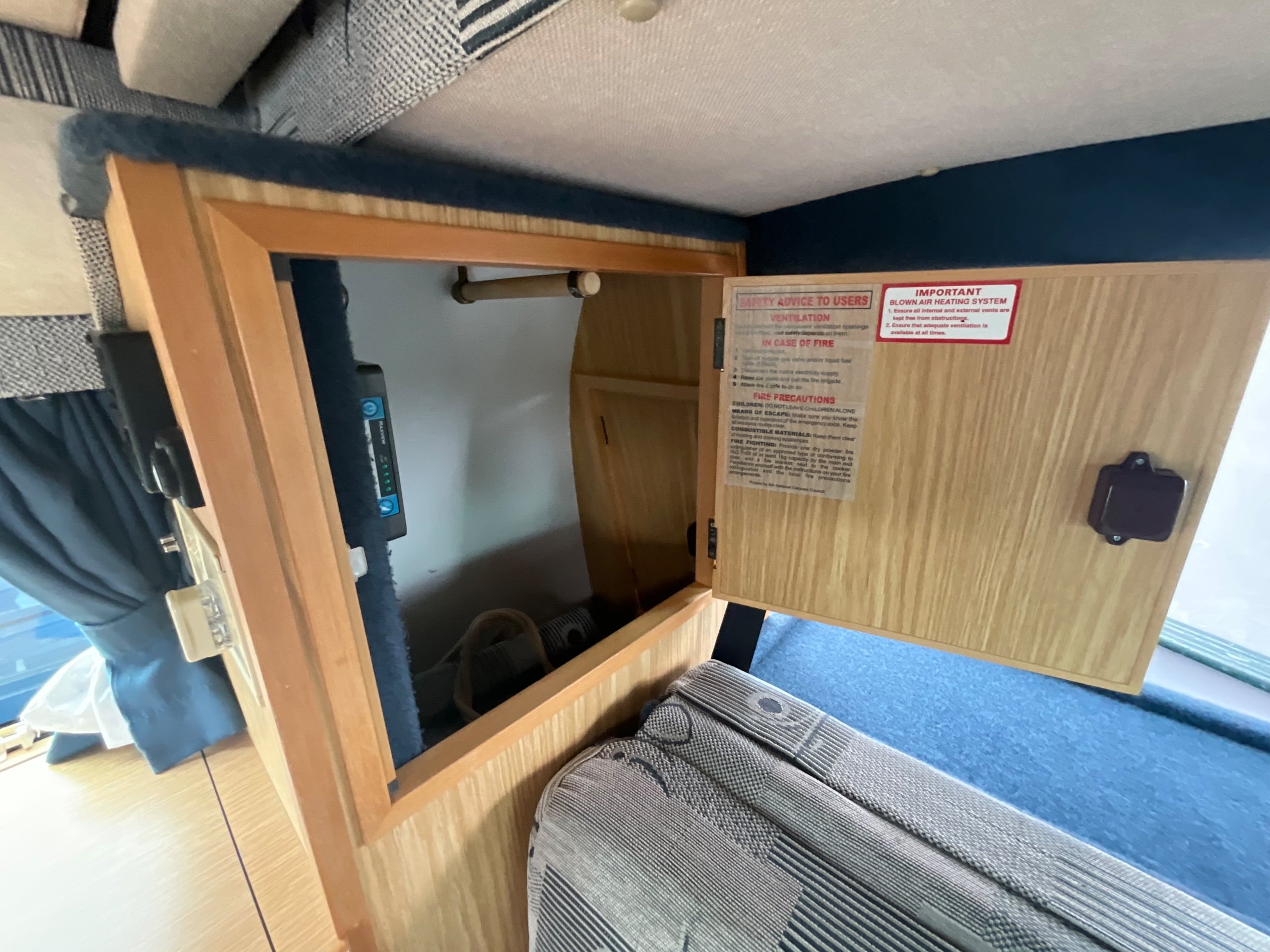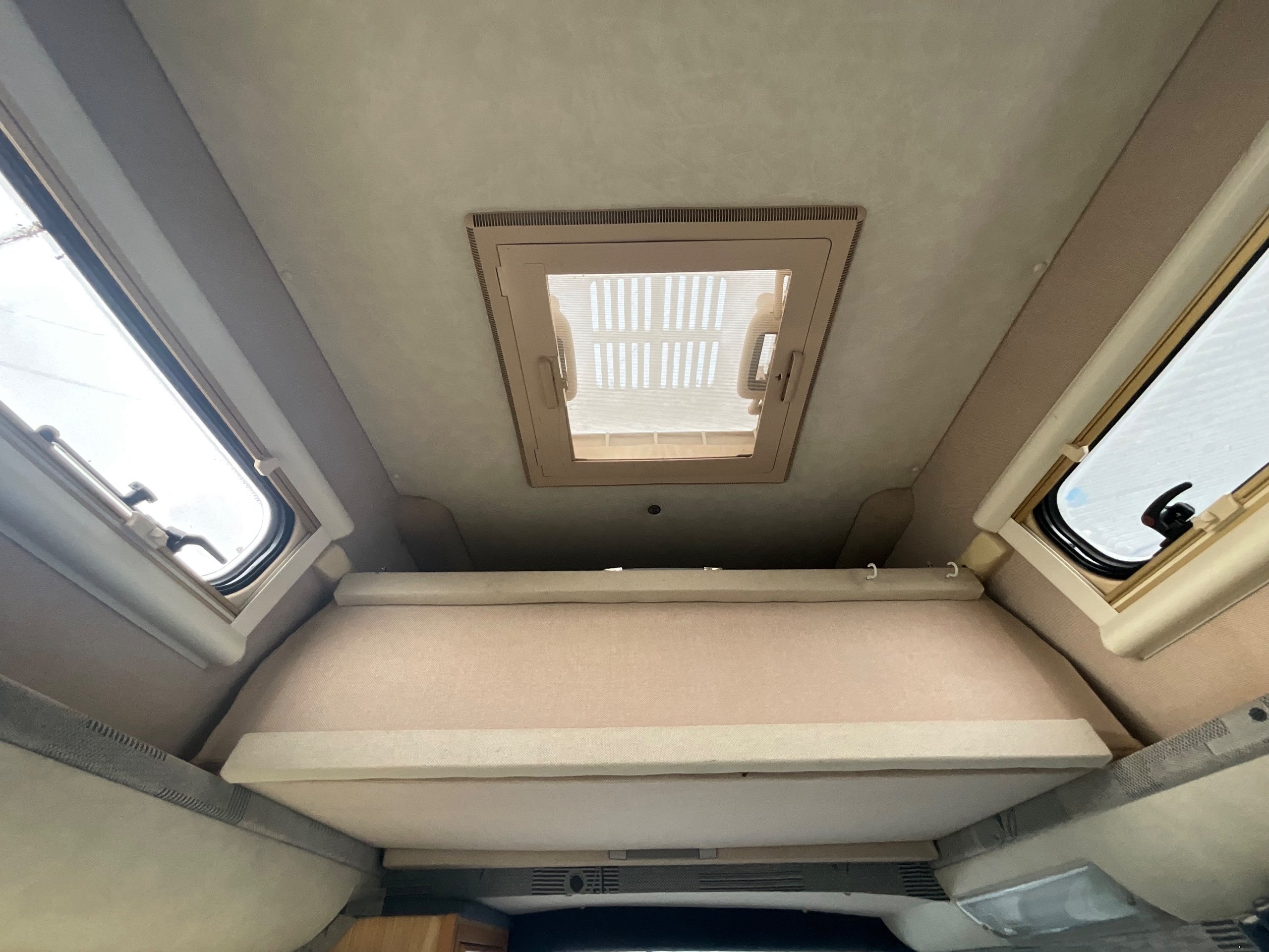 Auto-sleepers Trident 4 Berth, bench seat to the rear with two forward facing seats belts to use while touring or an as lounge area / bed. There is also another smaller double bed in the roof for sleeping or storage.