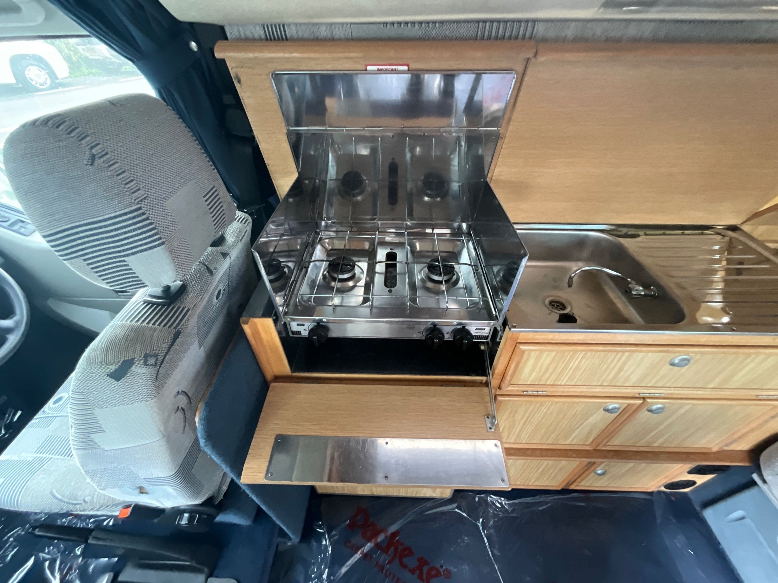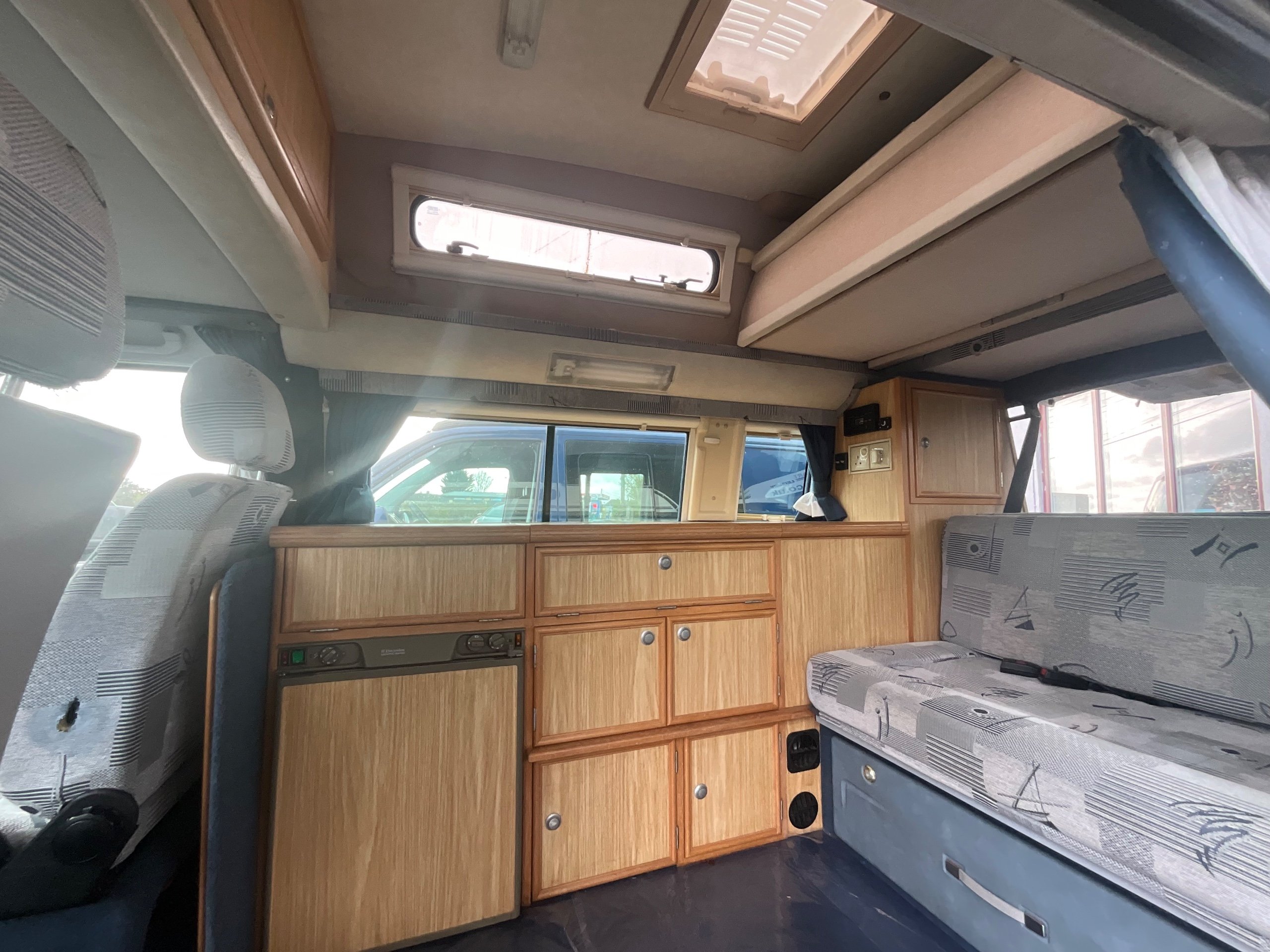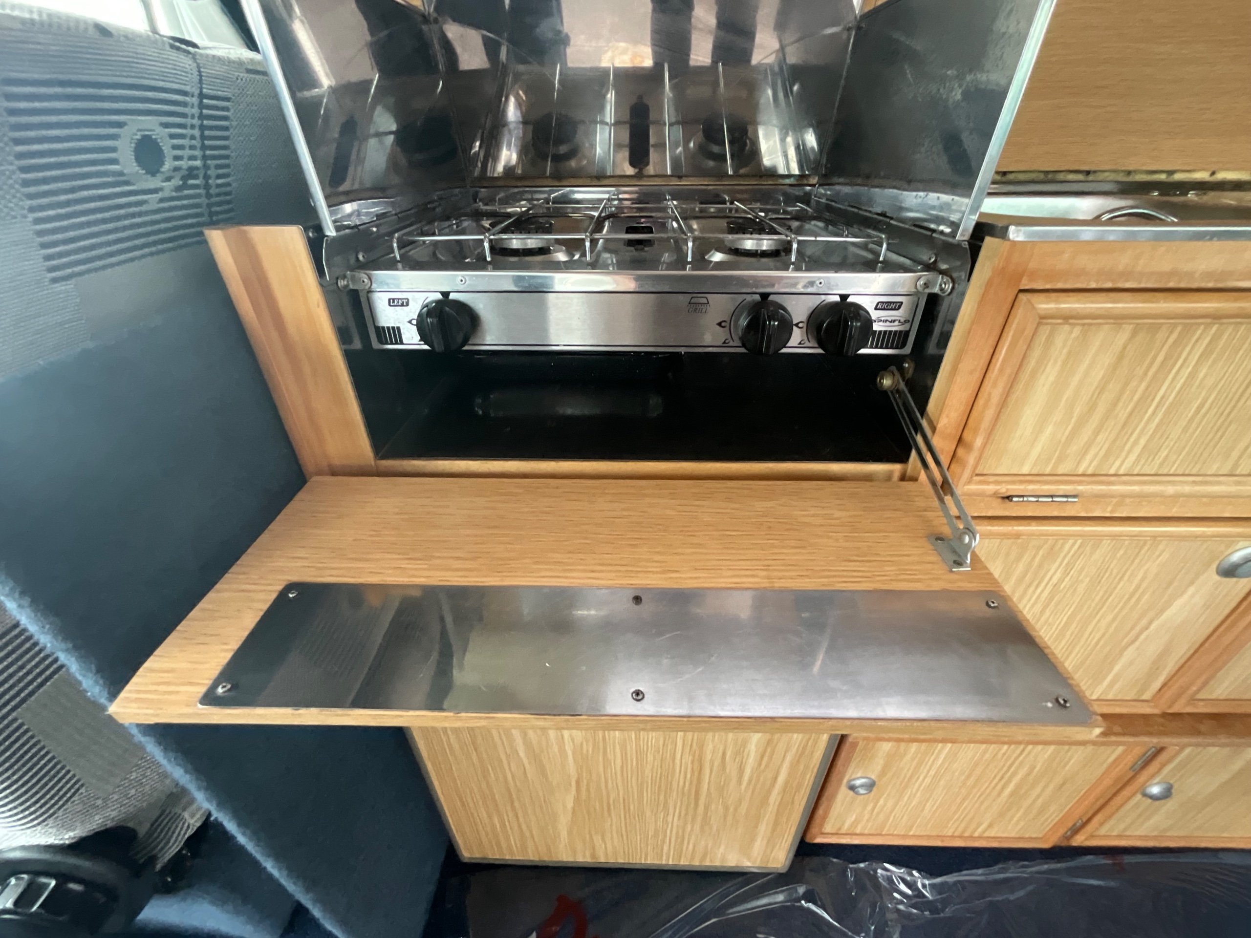 Although it’s a 4 Berth it is within the confines of a T4 Volkswagen van allowing for easy driving as well as the use of an every day vehicle, fitting into car parking spots with easy. Fresh and waste water tanks, Diesel heating system, 3-way fridge, 2 Gas hobs, Full Gas grill and a Porta - Potti.