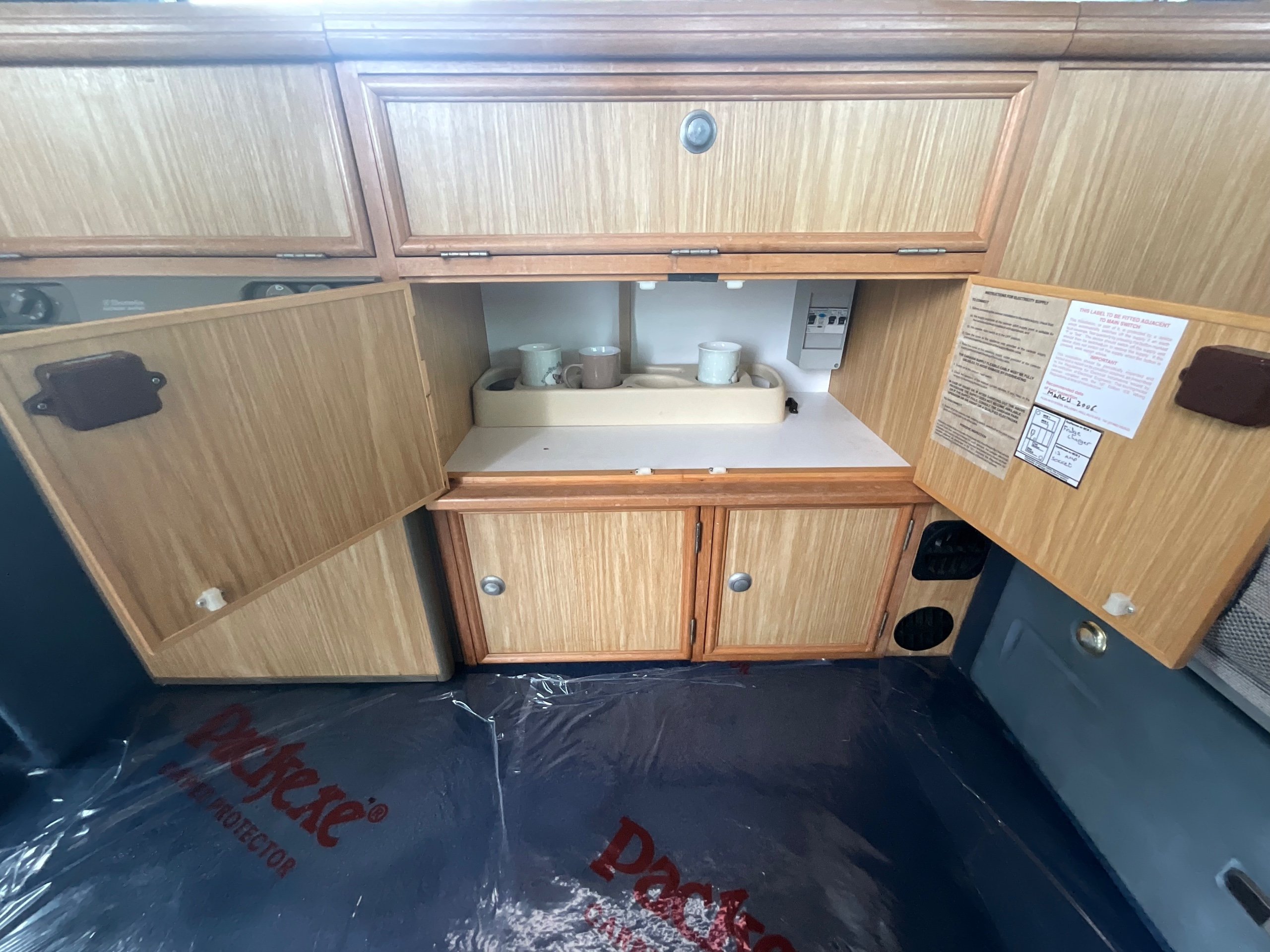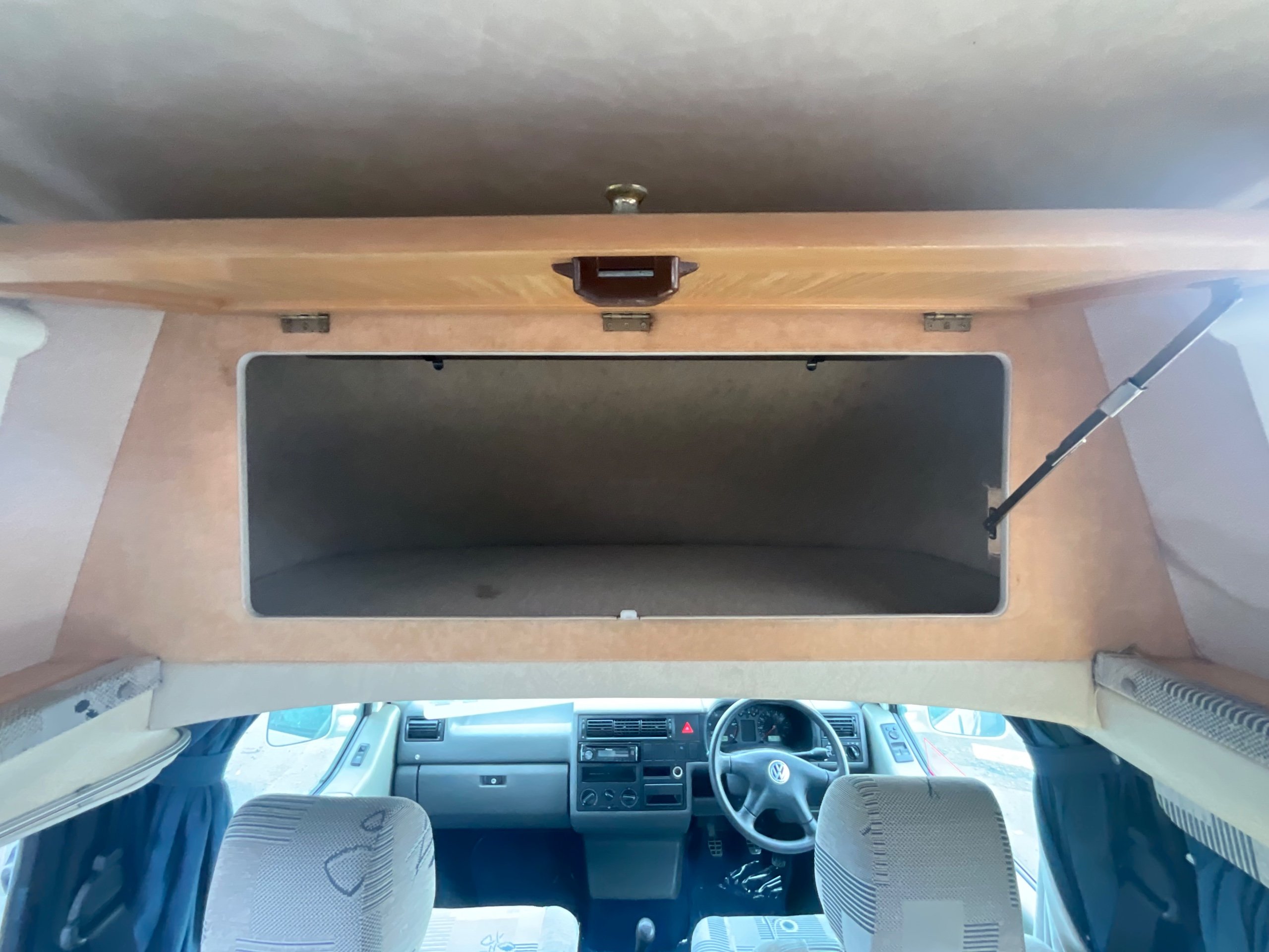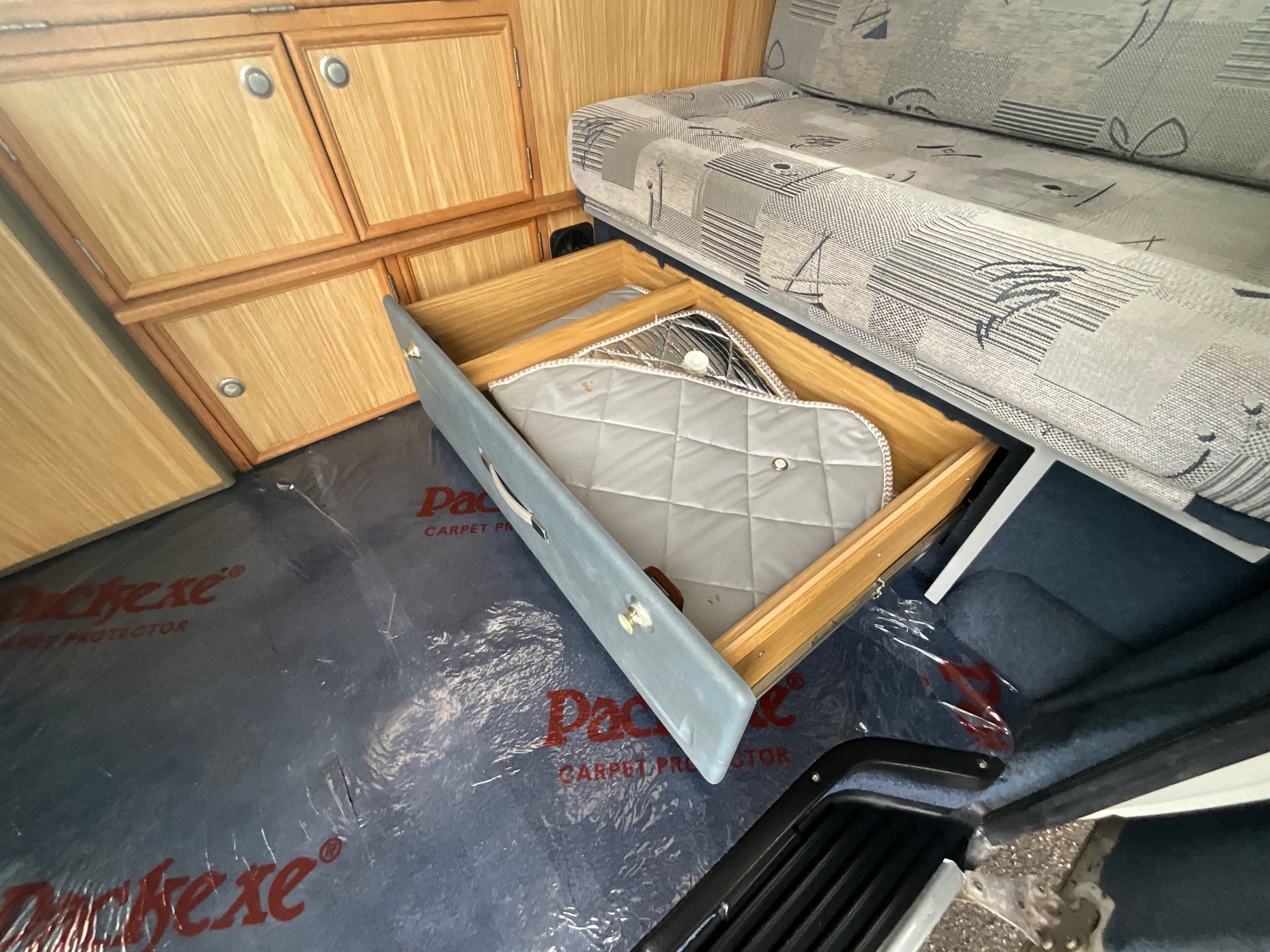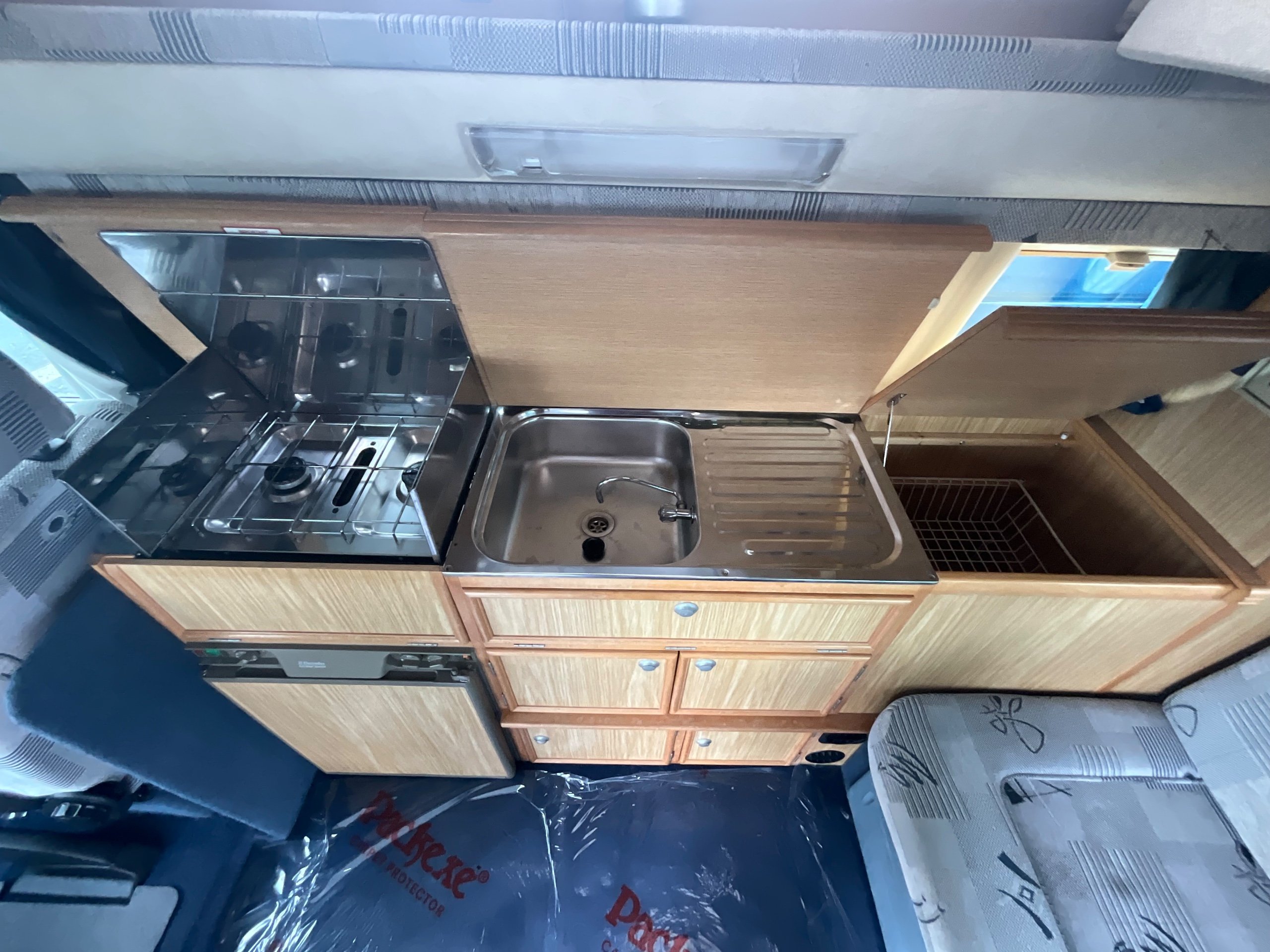 Although it’s a 4 Berth it is within the confines of a T4 Volkswagen van allowing for easy driving as well as the use of an every day vehicle, fitting into car parking spots with easy. Fresh and waste water tanks, Diesel heating system, 3-way fridge, 2 Gas hobs, Full Gas grill and a Porta - Potti.