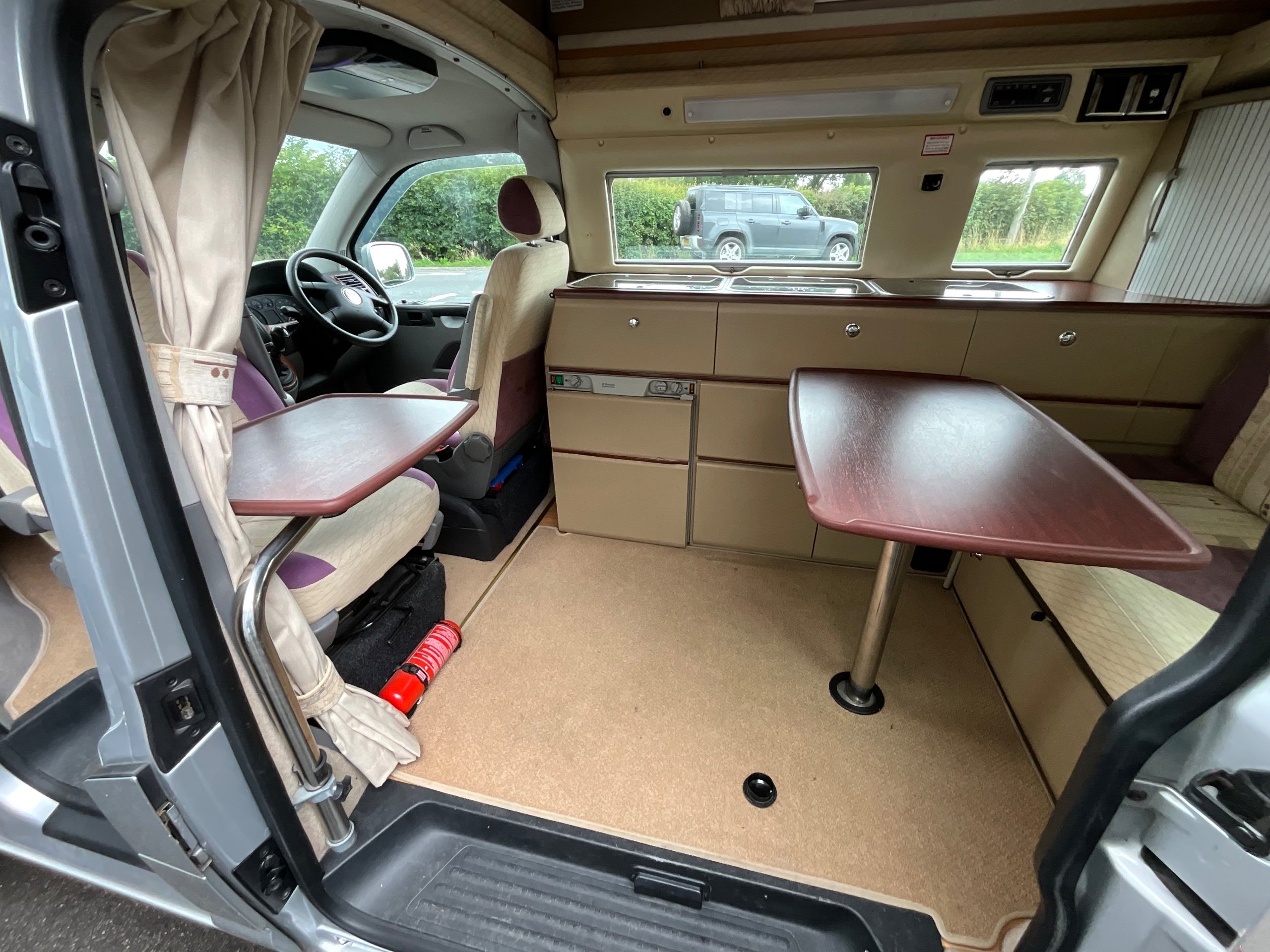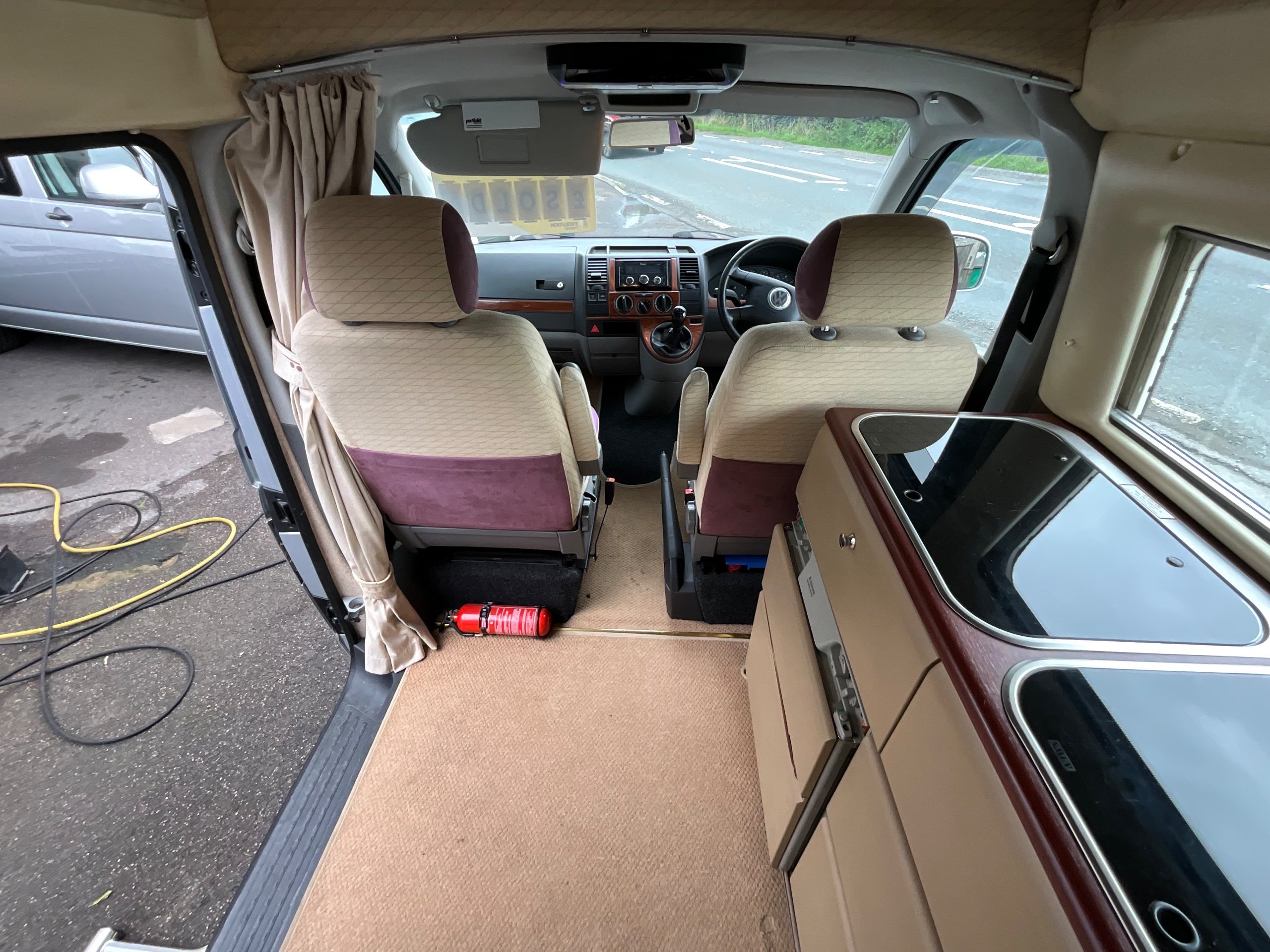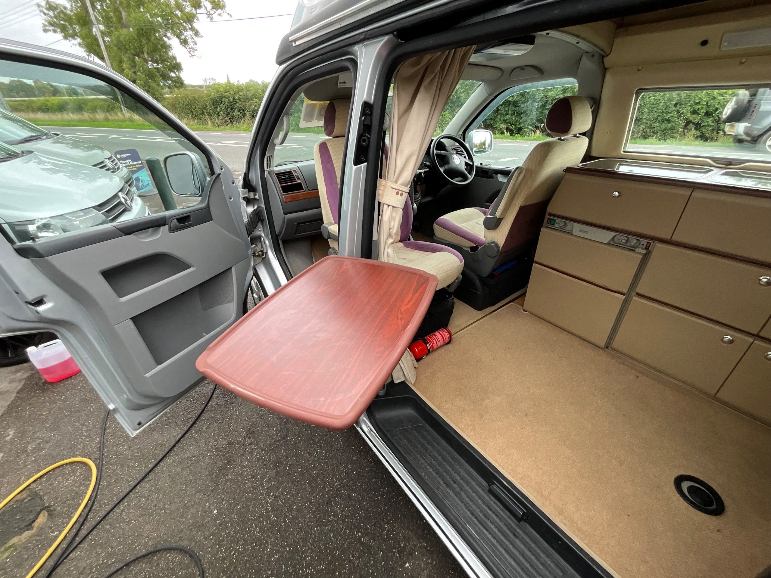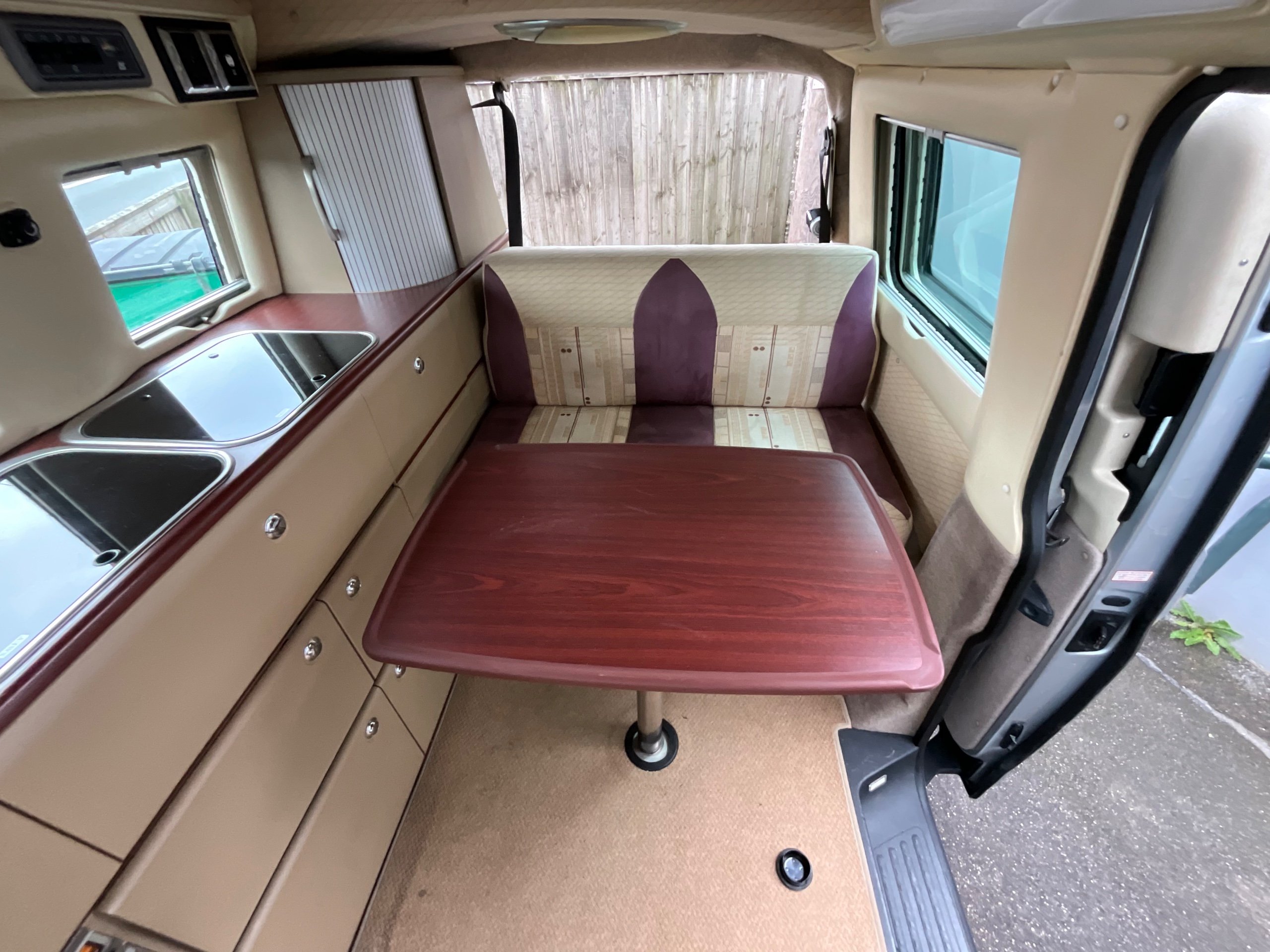 Although it’s a 4 Berth it is within the confines of a Volkswagen van allowing for easy driving as well as the use of an every day vehicle, fitting into car parking spots with easy. There is Fresh and waste water tanks, with the side kitchen having Diesel heating system, 3-way fridge, a sink with drainer, 2 Gas hobs and a Full Gas grill.