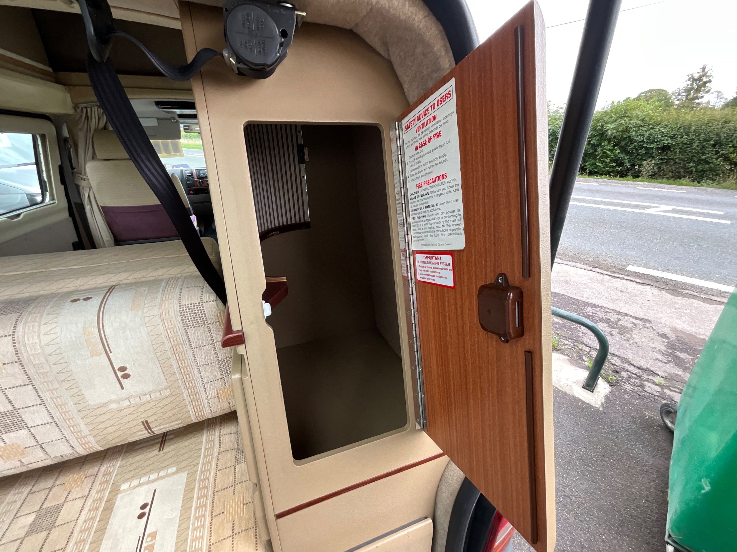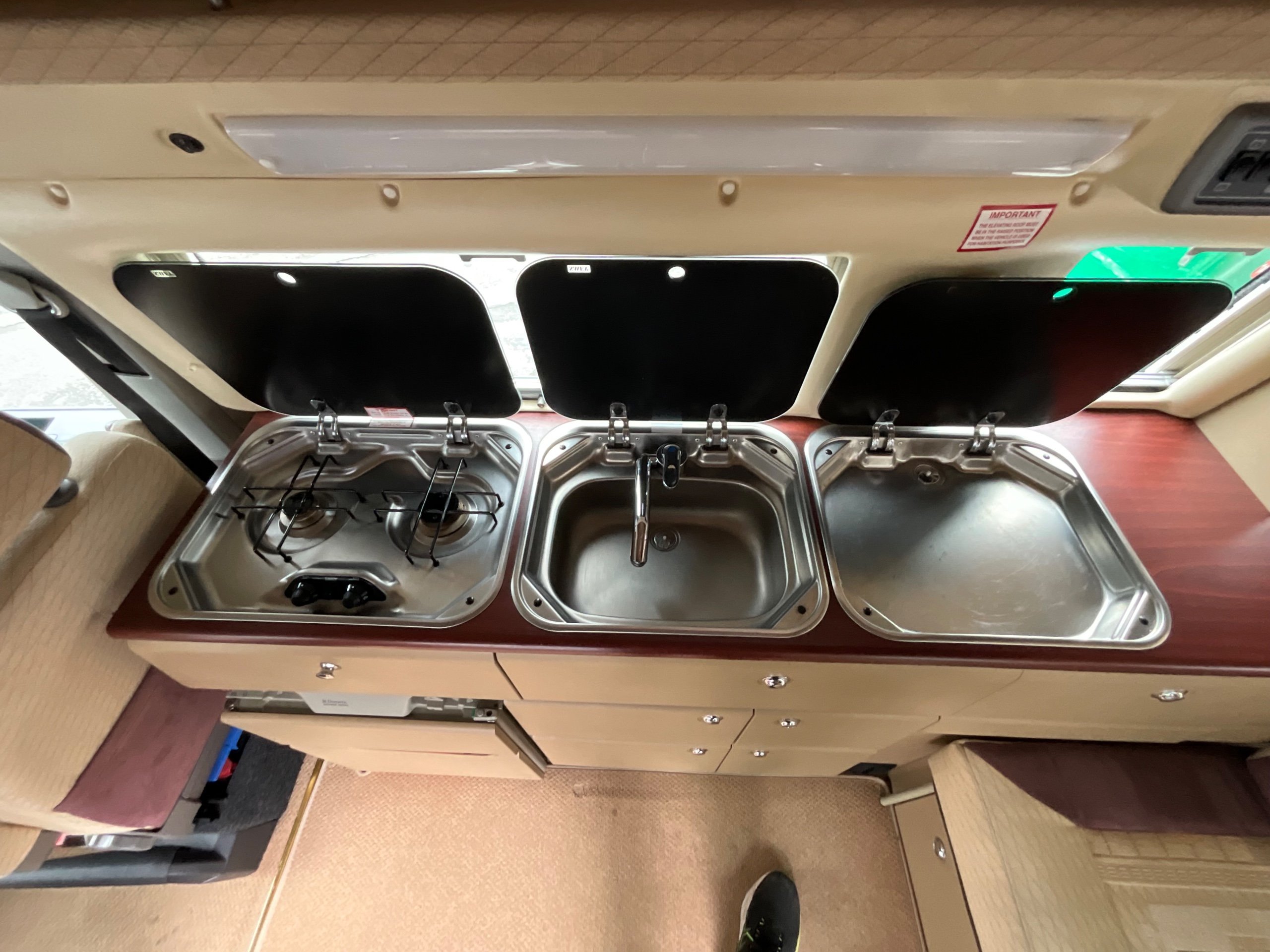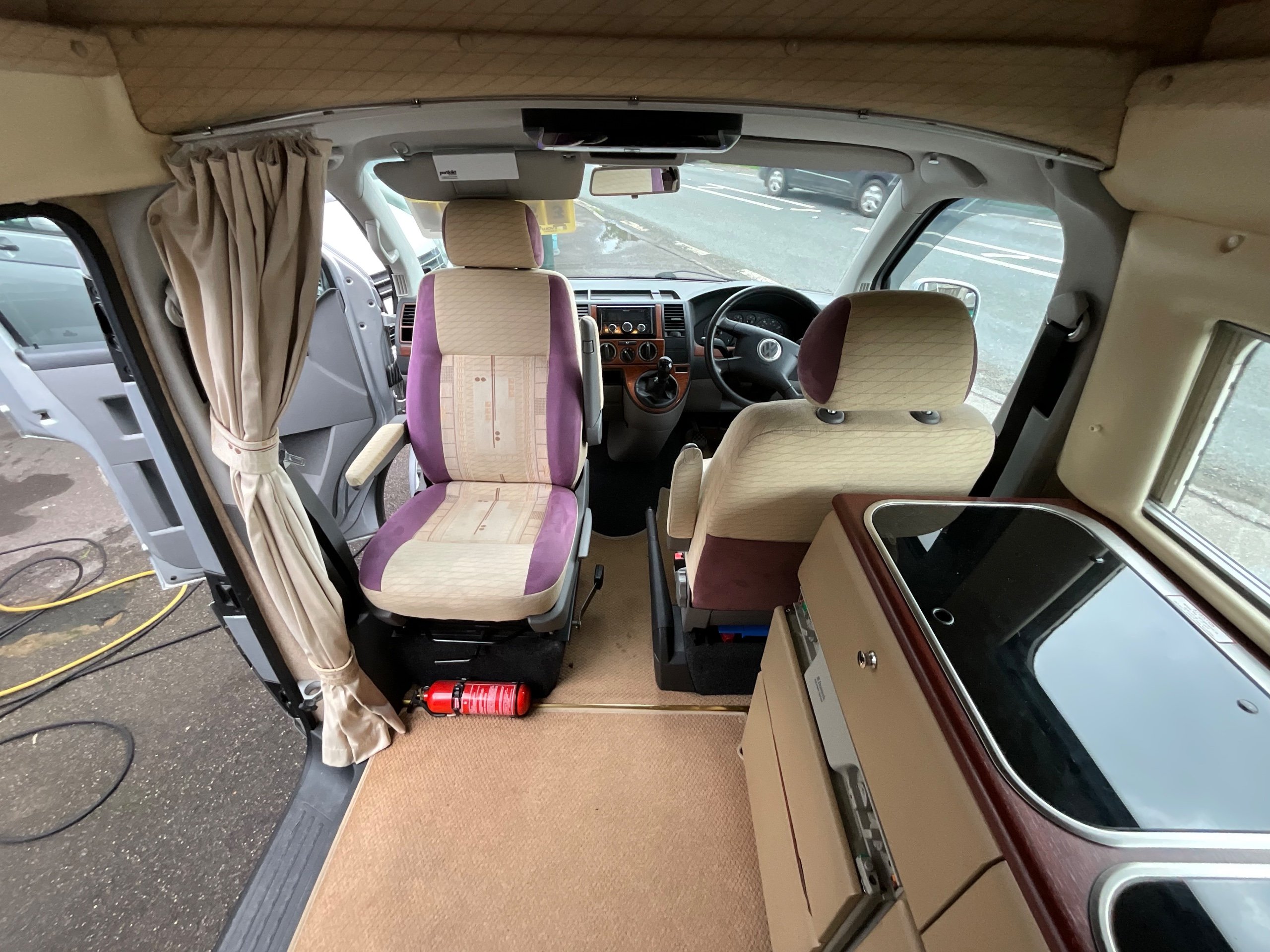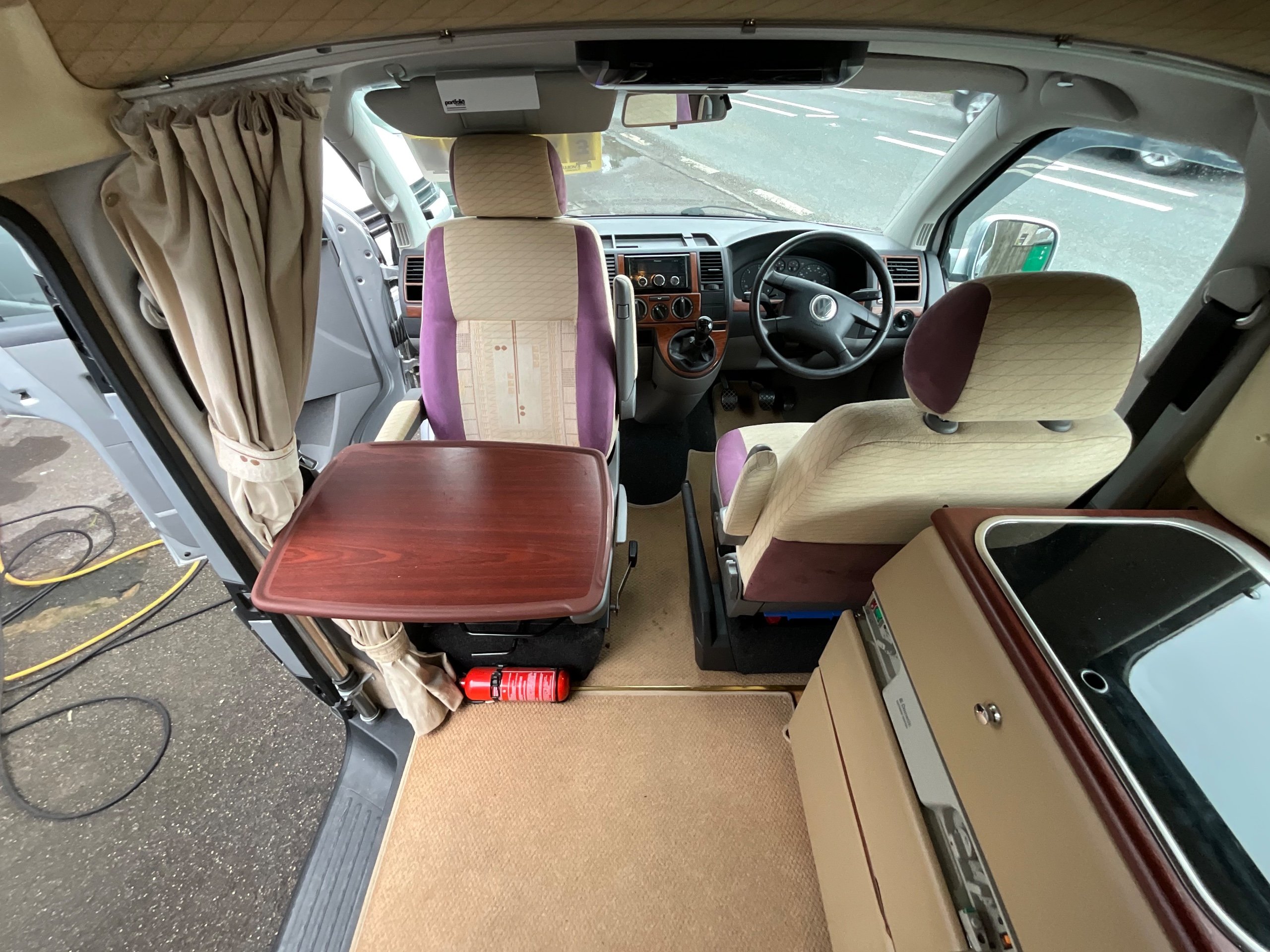 Although it’s a 4 Berth it is within the confines of a Volkswagen van allowing for easy driving as well as the use of an every day vehicle, fitting into car parking spots with easy. There is Fresh and waste water tanks, with the side kitchen having Diesel heating system, 3-way fridge, a sink with drainer, 2 Gas hobs and a Full Gas grill.