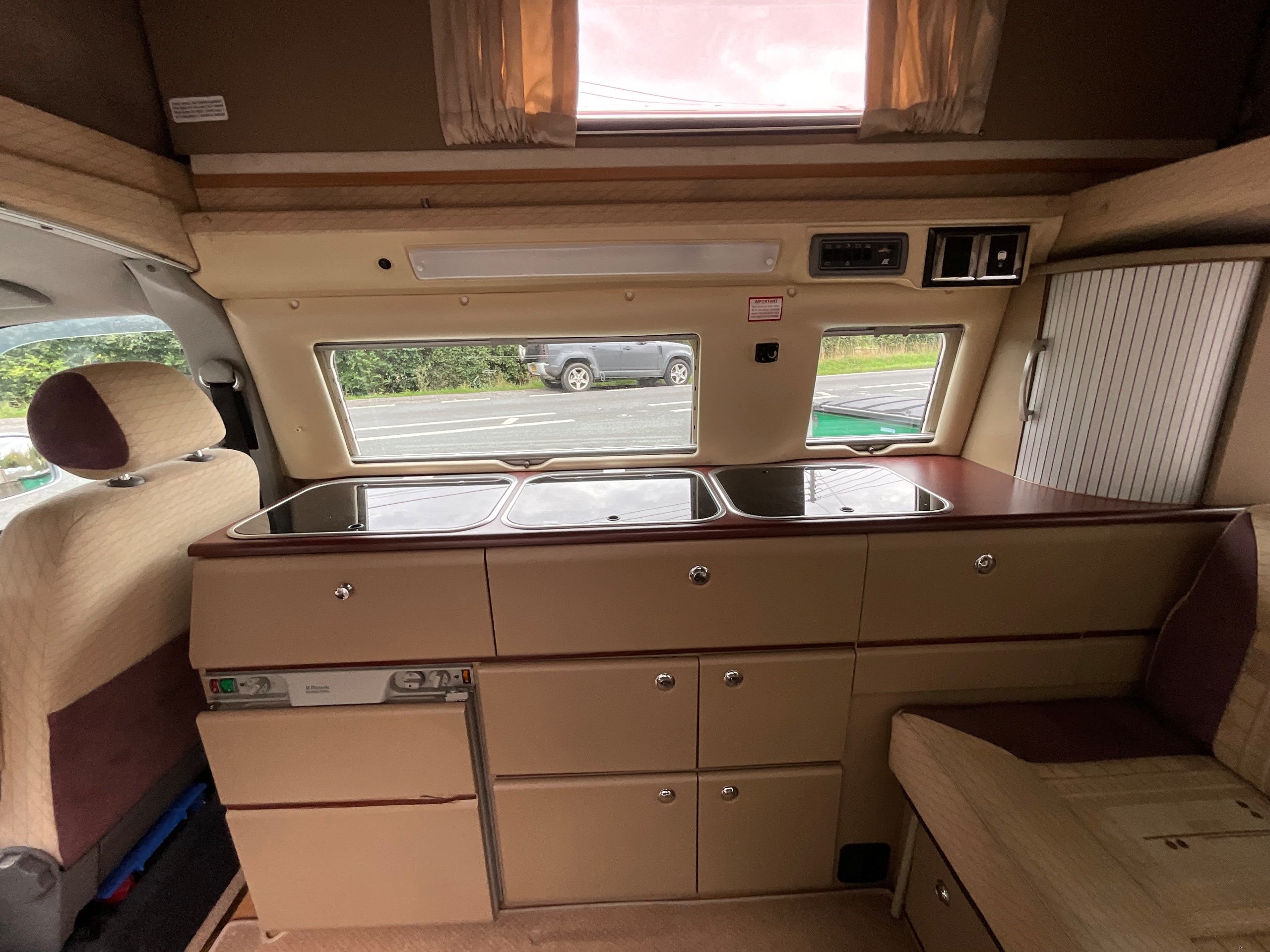 The Trooper is stunning quality with exceptional upholstery and cushions. This offers extreme comfort when touring. Inside is all the quality of an Auto-sleepers, which is evident everywhere. The bench seat area make a double bed with the classic Rock&roll bed layout inside which is over 6ft in length, with a lot of ease to make and unmake the bed. Then with the roof raising up this can then also form another double bed.