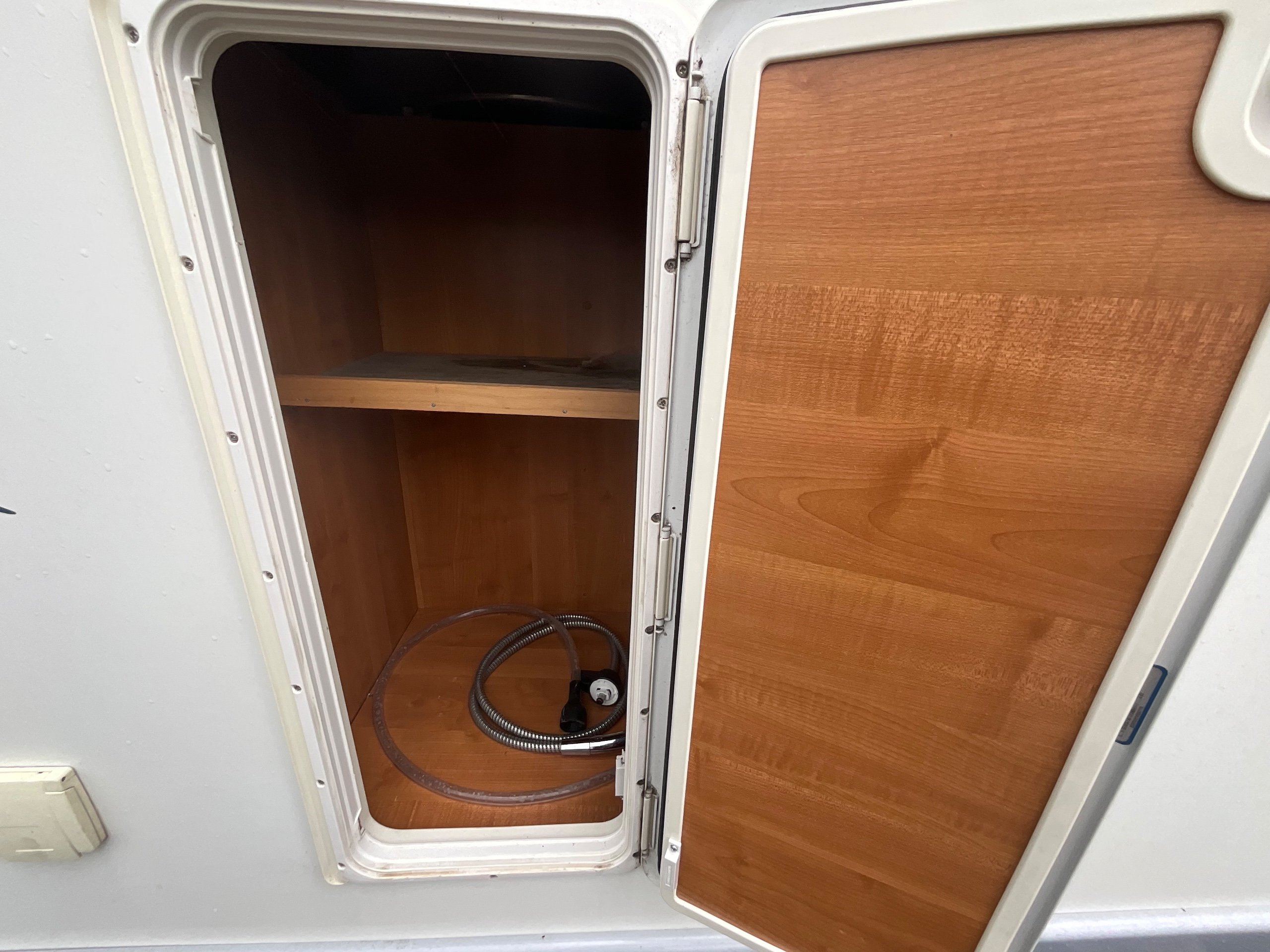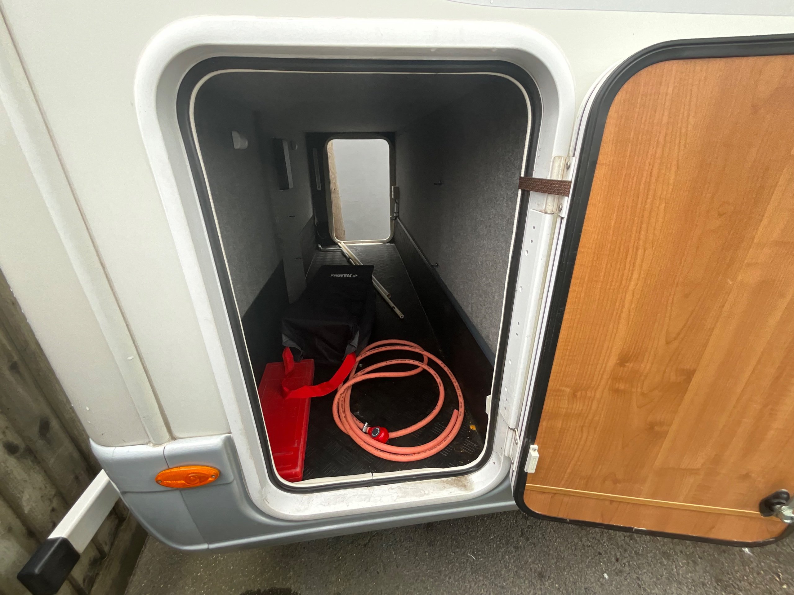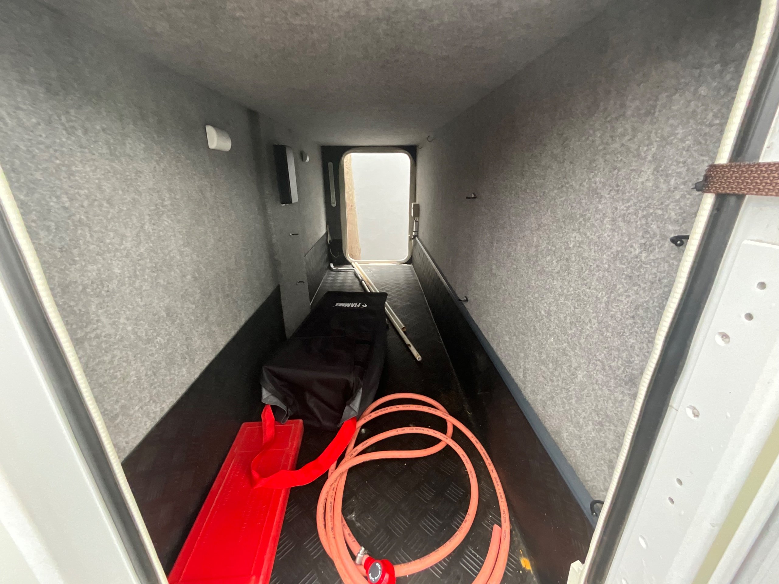 Onboard there is Fresh and wastewater tanks, Gas / Electrical operated heating and hot water via the well renowned Truma heating/ hot water system. The electrical hot water / heating element works when plugged in on 240V power. On the outside there is a garage storage area, which has plenty of storage for anything.