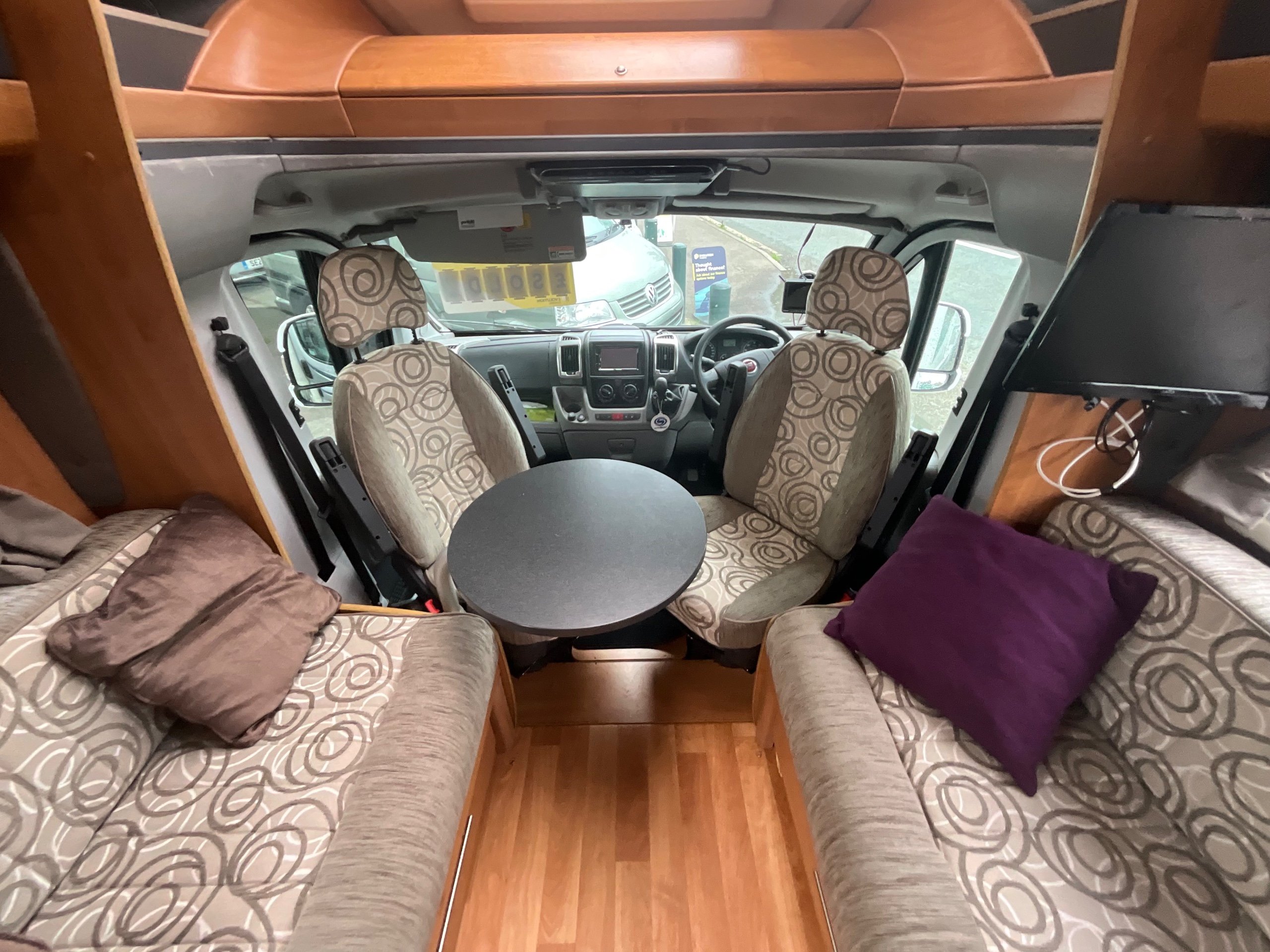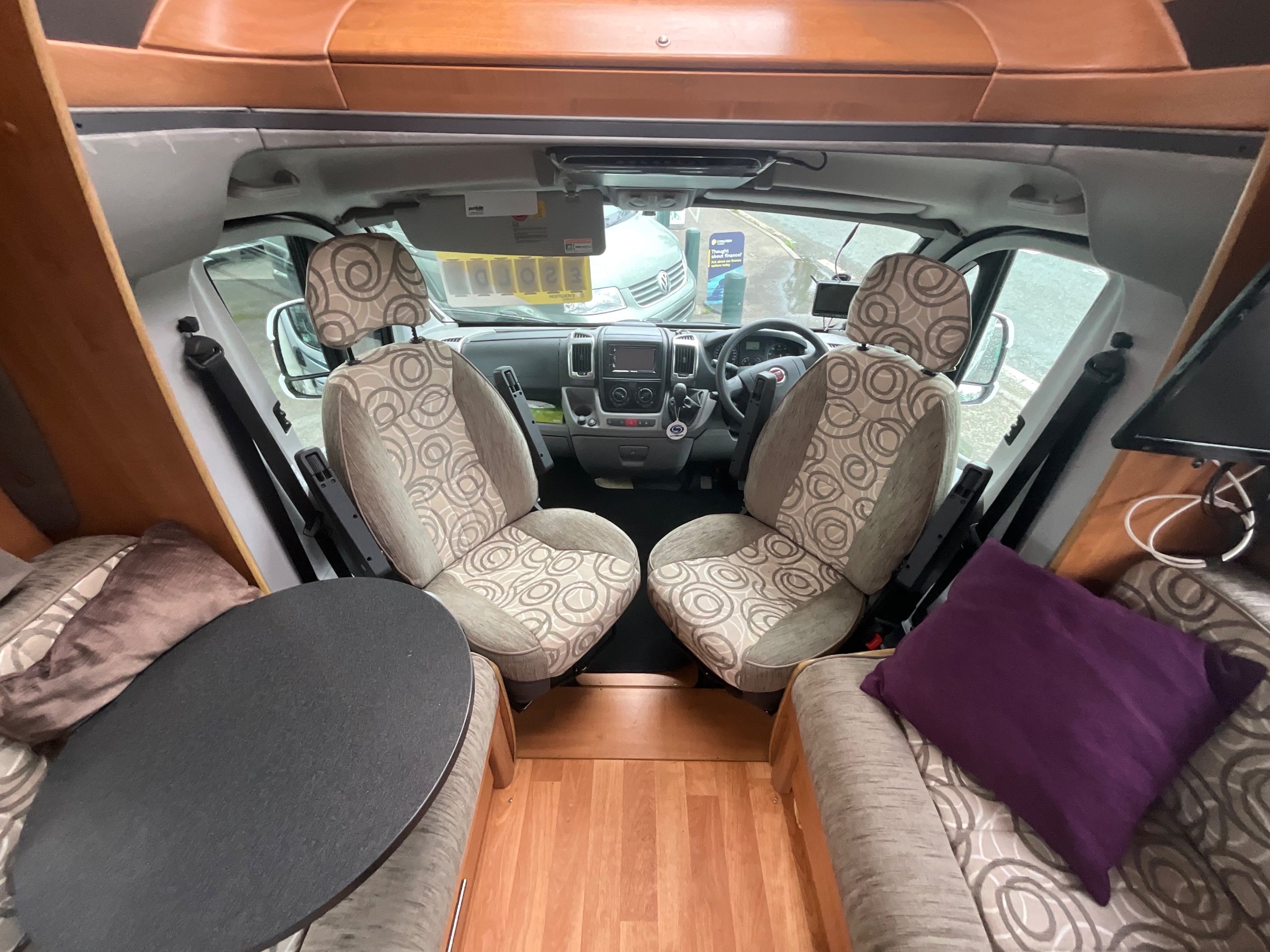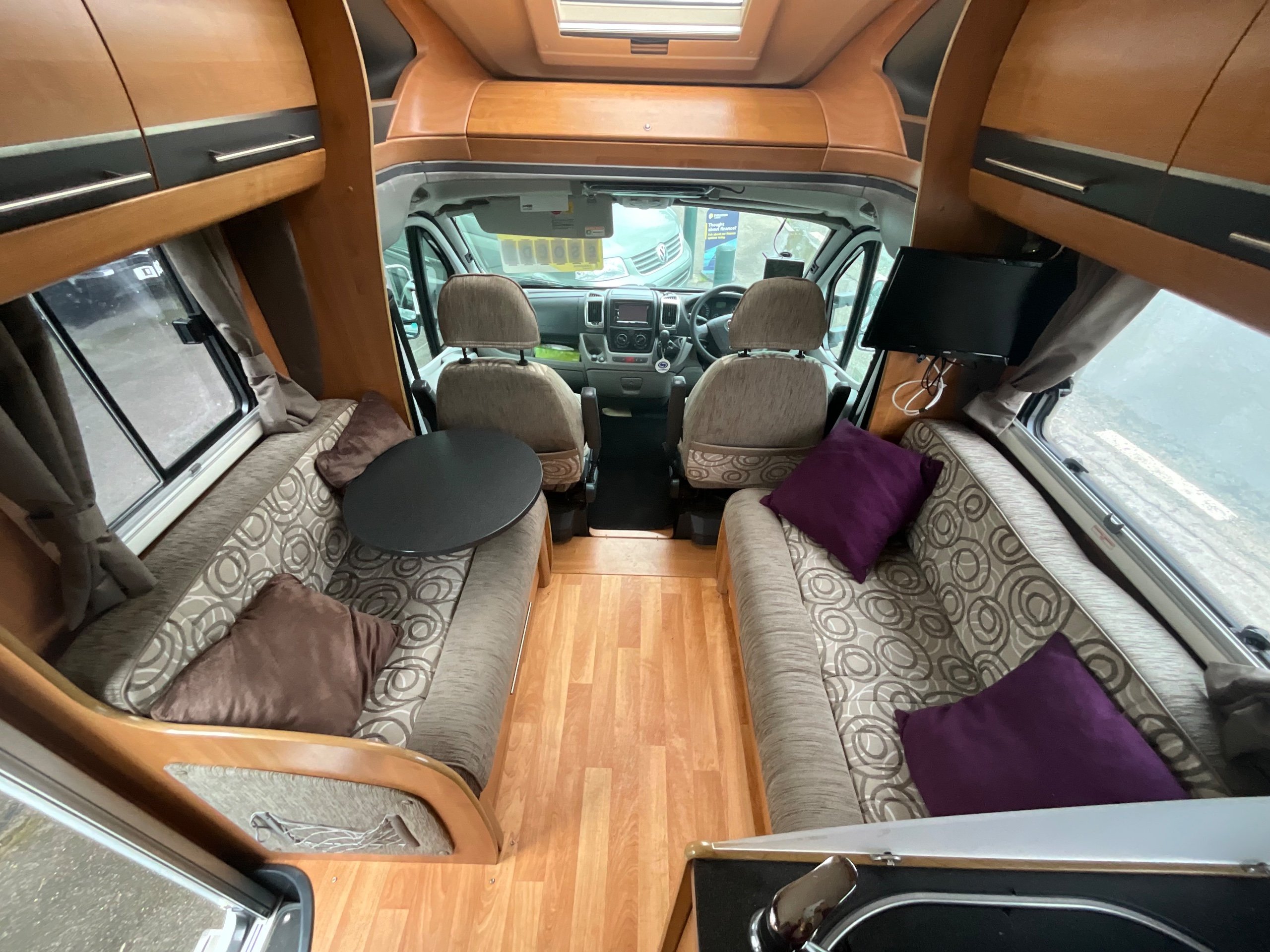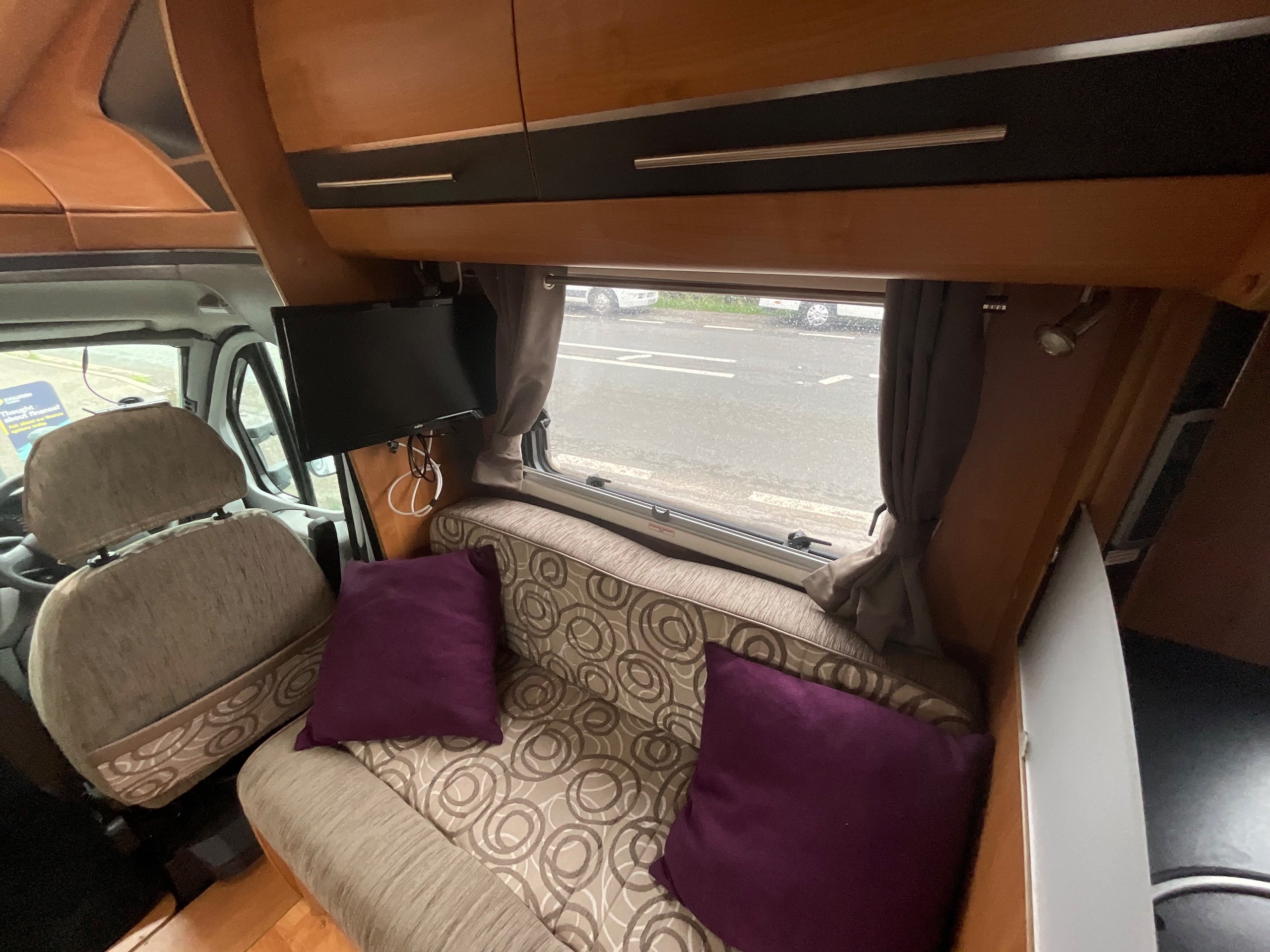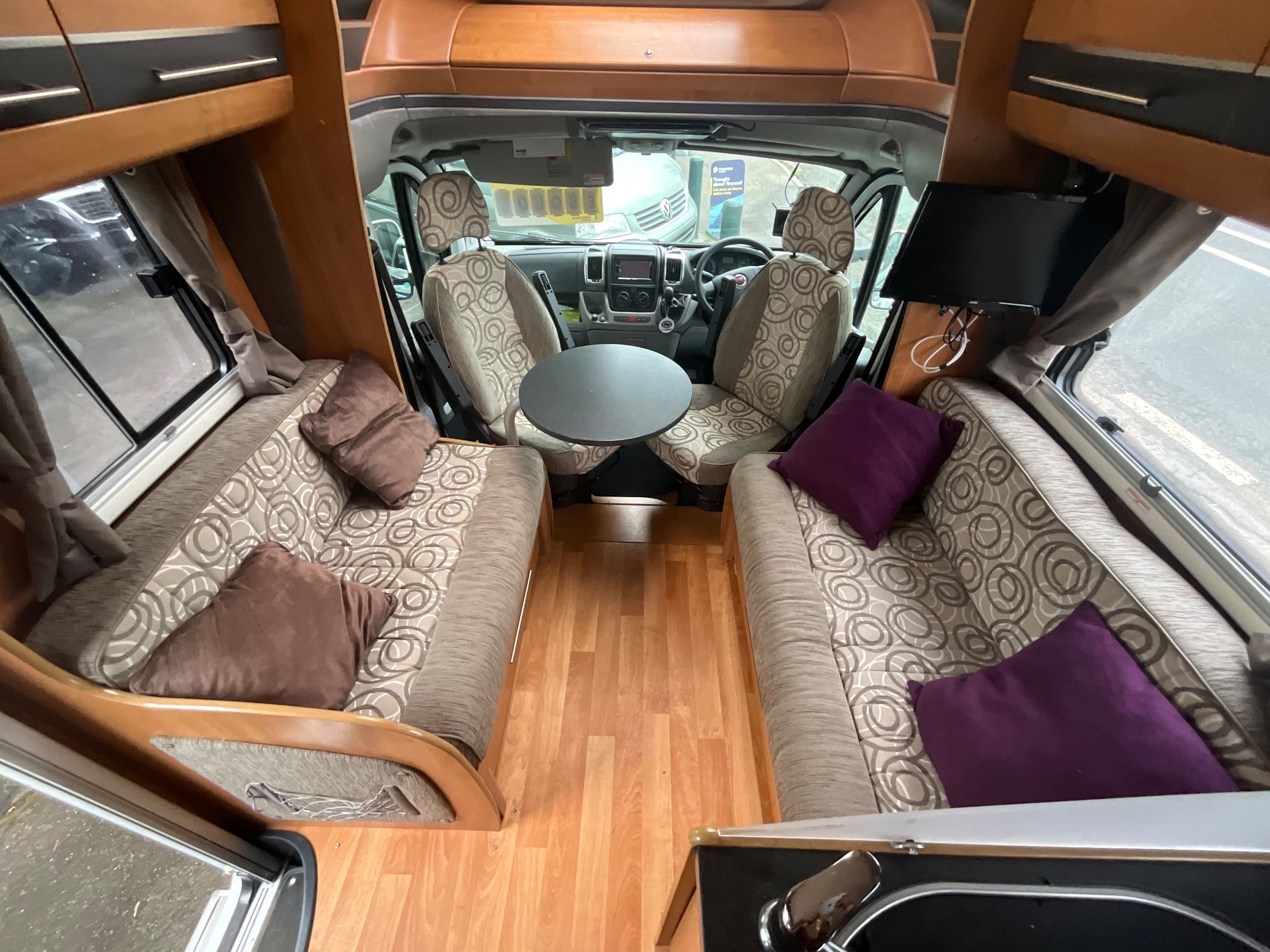 The additional extras fitted are Awning, rear ladder, Cab air-conditioning, TV aerial, Cruise control, central locking, upgraded touch radio system (Bluetooth hands free for phone, music and DAB radio), dual leisure battery system, solar panel, cobra immobiliser system, External gas BBQ Point, external shower point, Tow bar fitted (whole width of motorhome), rear ladder, 2 TV’s, and built in cab blinds.