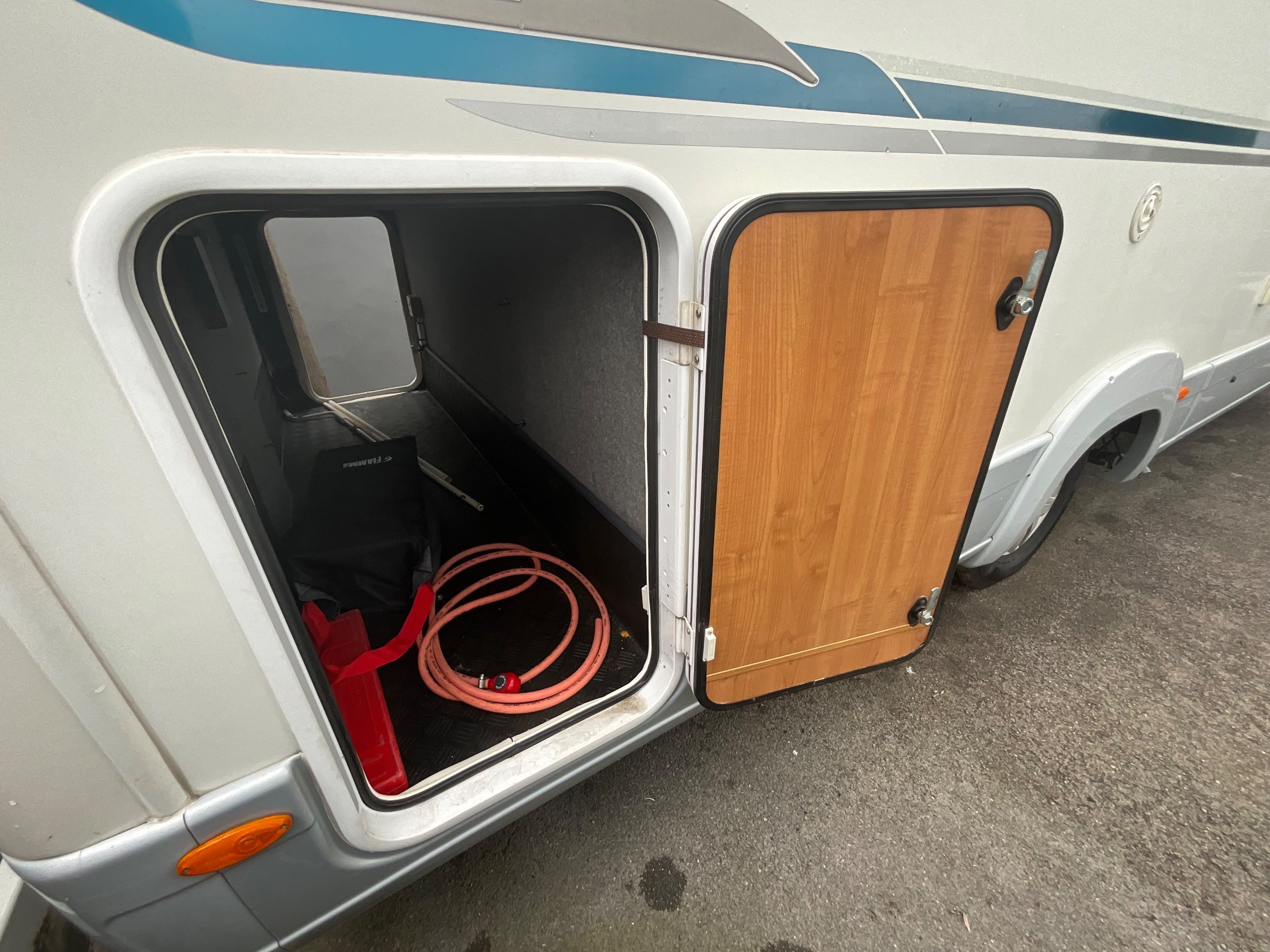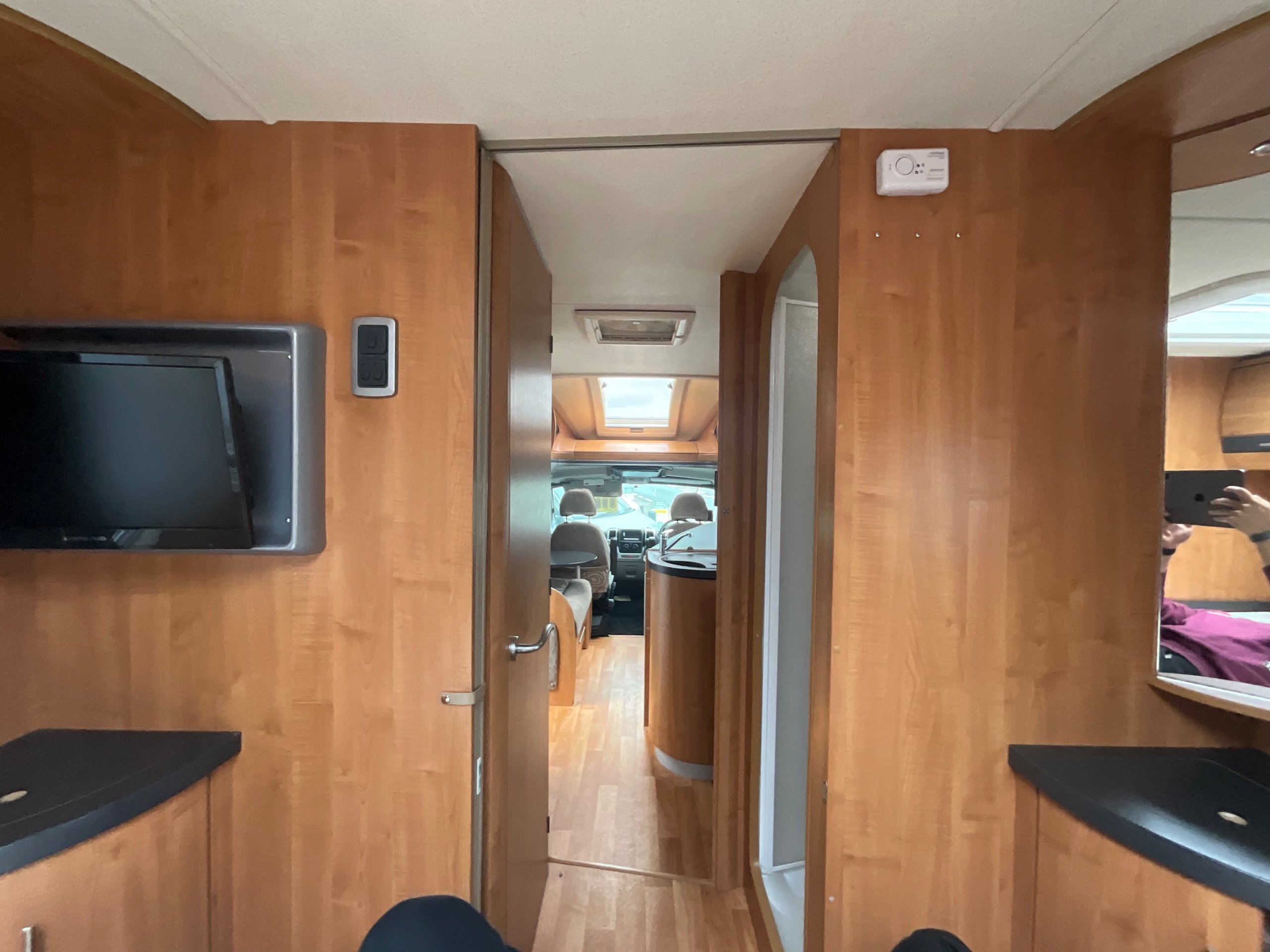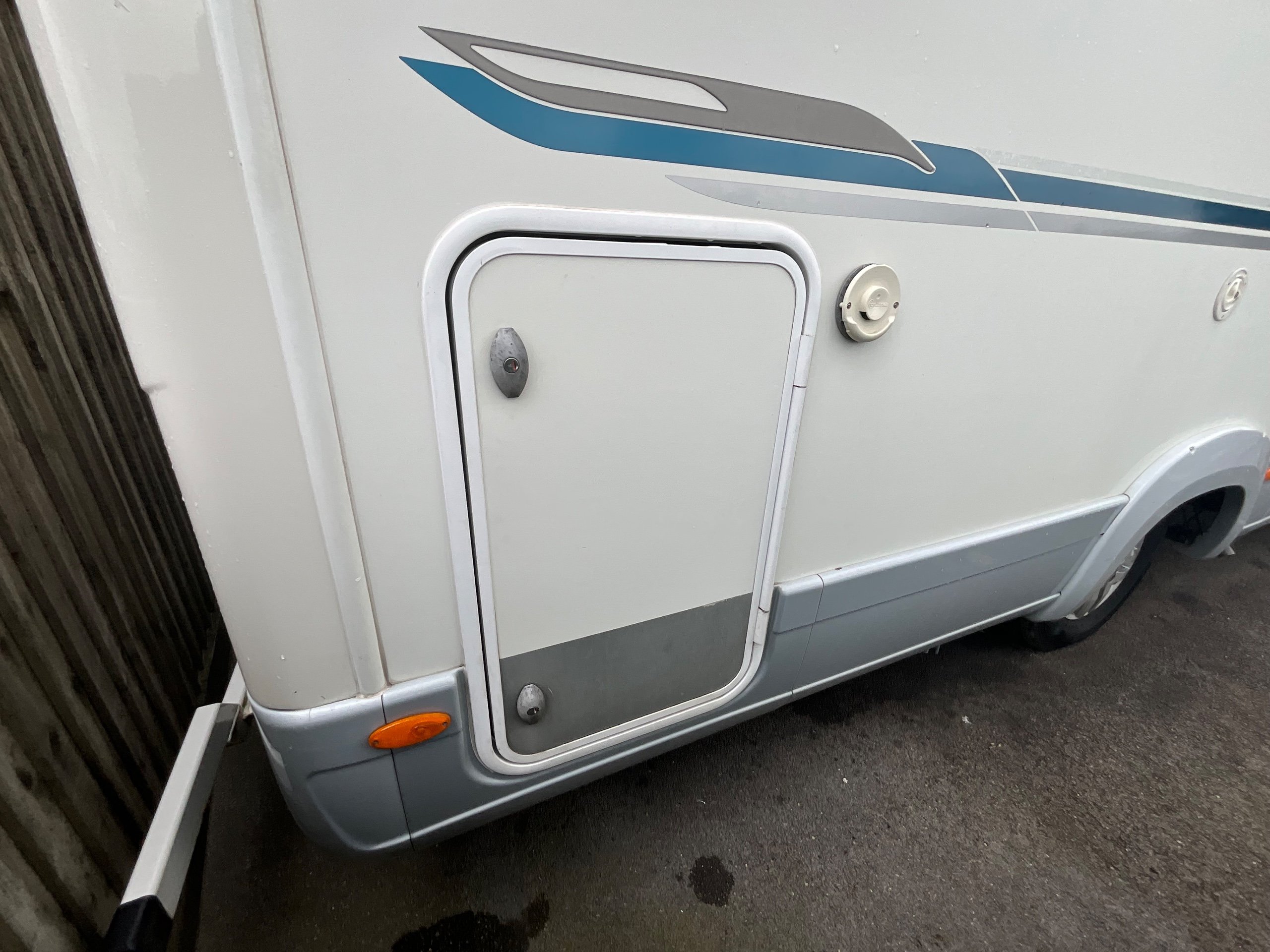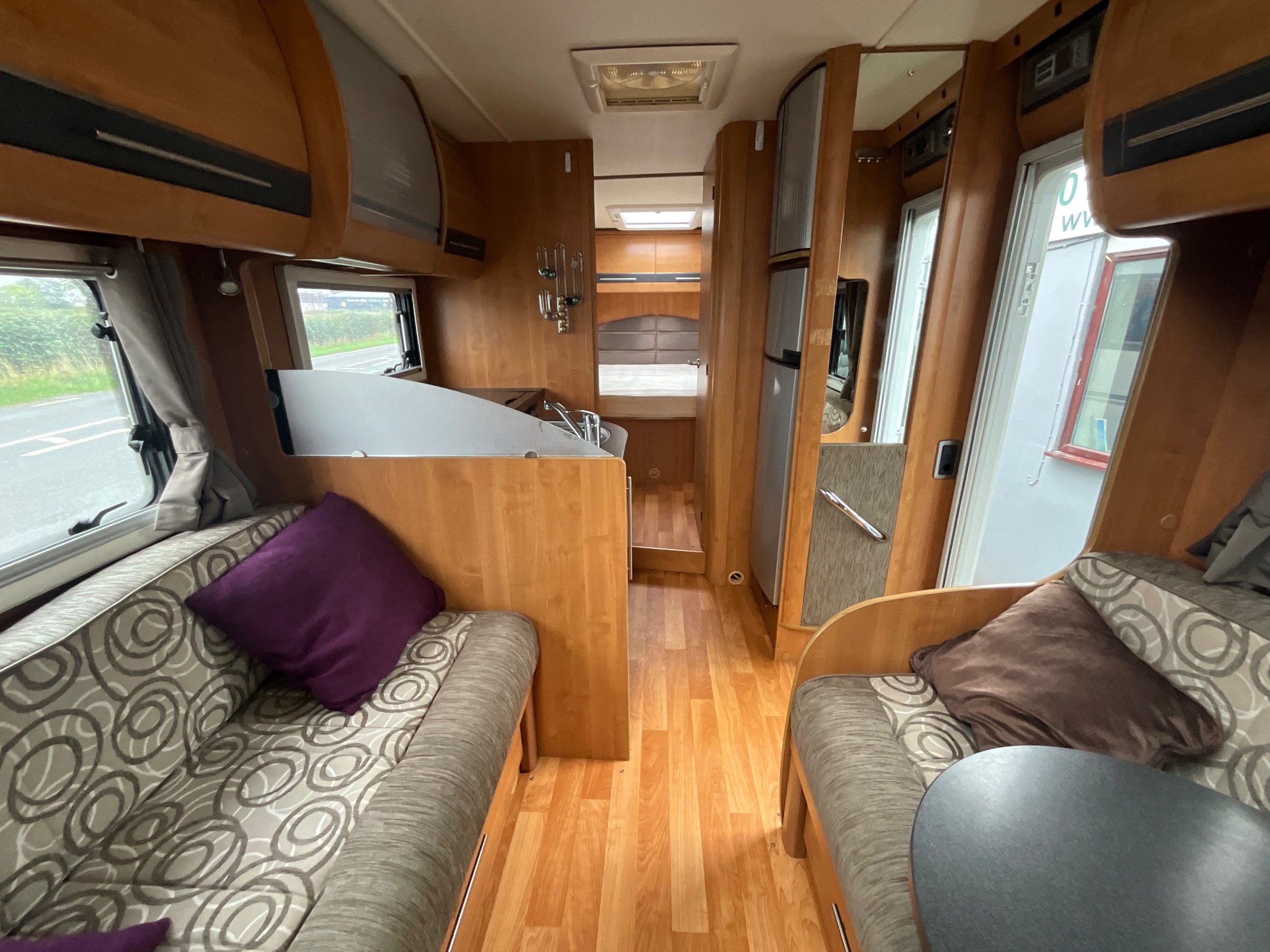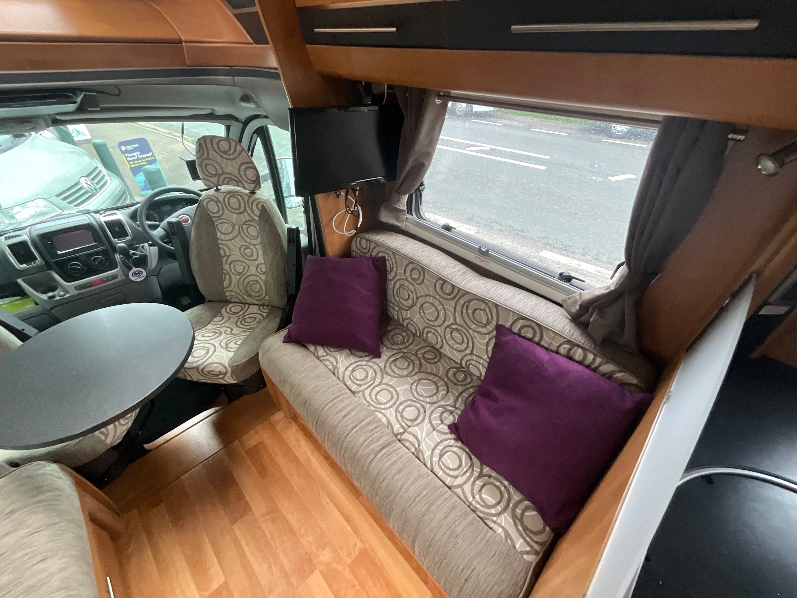 The additional extras fitted are Awning, rear ladder, Cab air-conditioning, TV aerial, Cruise control, central locking, upgraded touch radio system (Bluetooth hands free for phone, music and DAB radio), dual leisure battery system, solar panel, cobra immobiliser system, External gas BBQ Point, external shower point, Tow bar fitted (whole width of motorhome), rear ladder, 2 TV’s, and built in cab blinds.