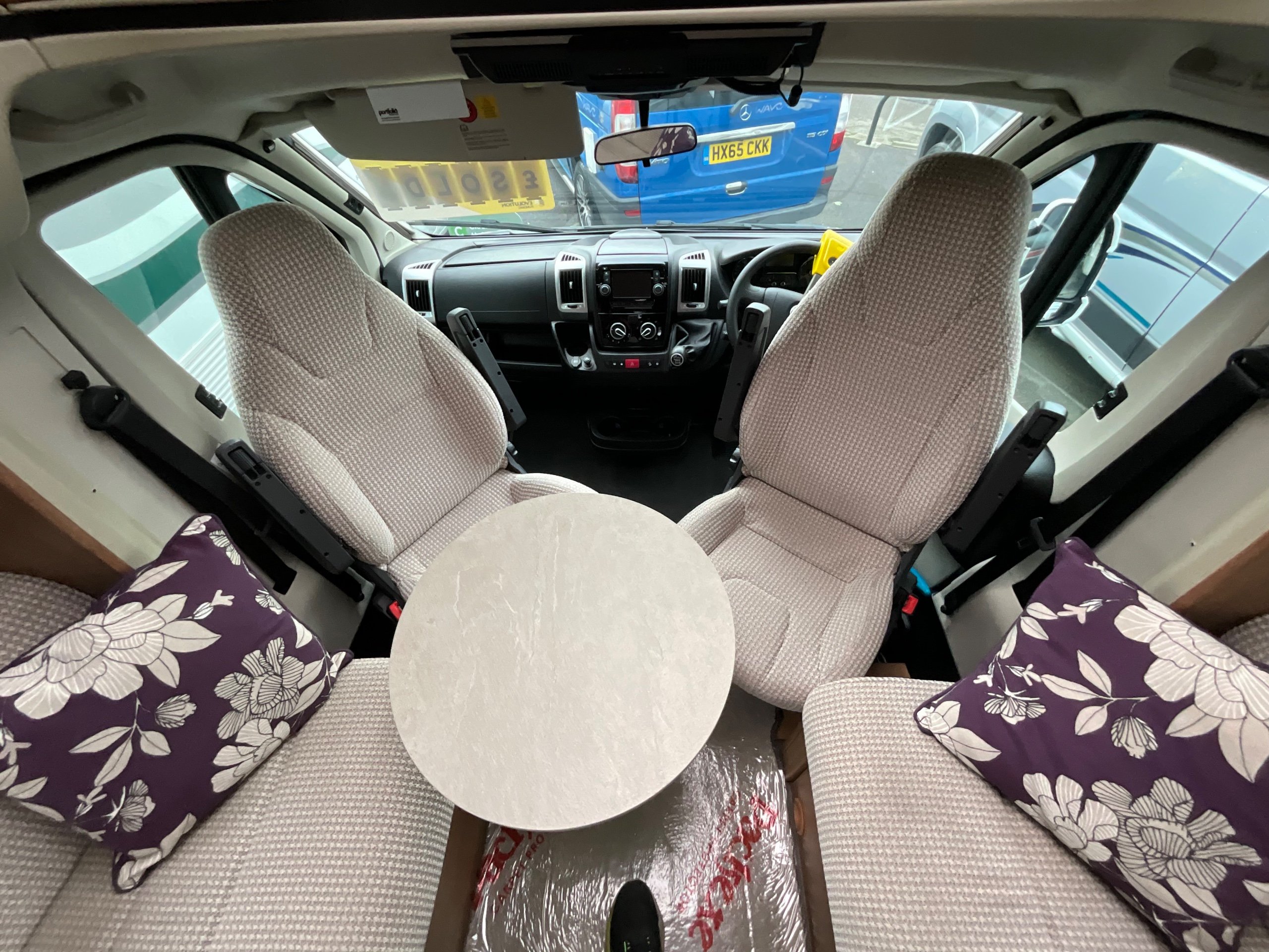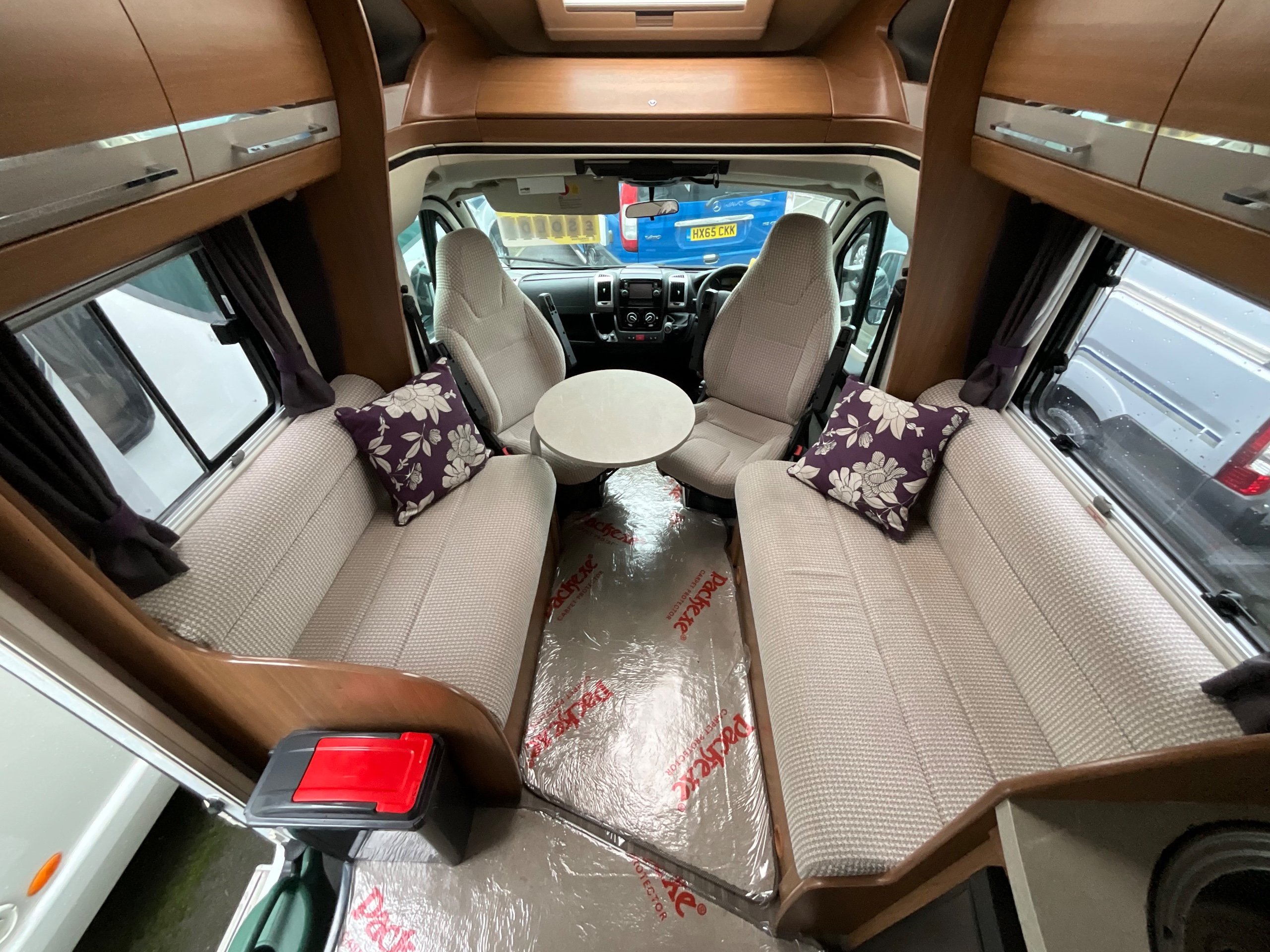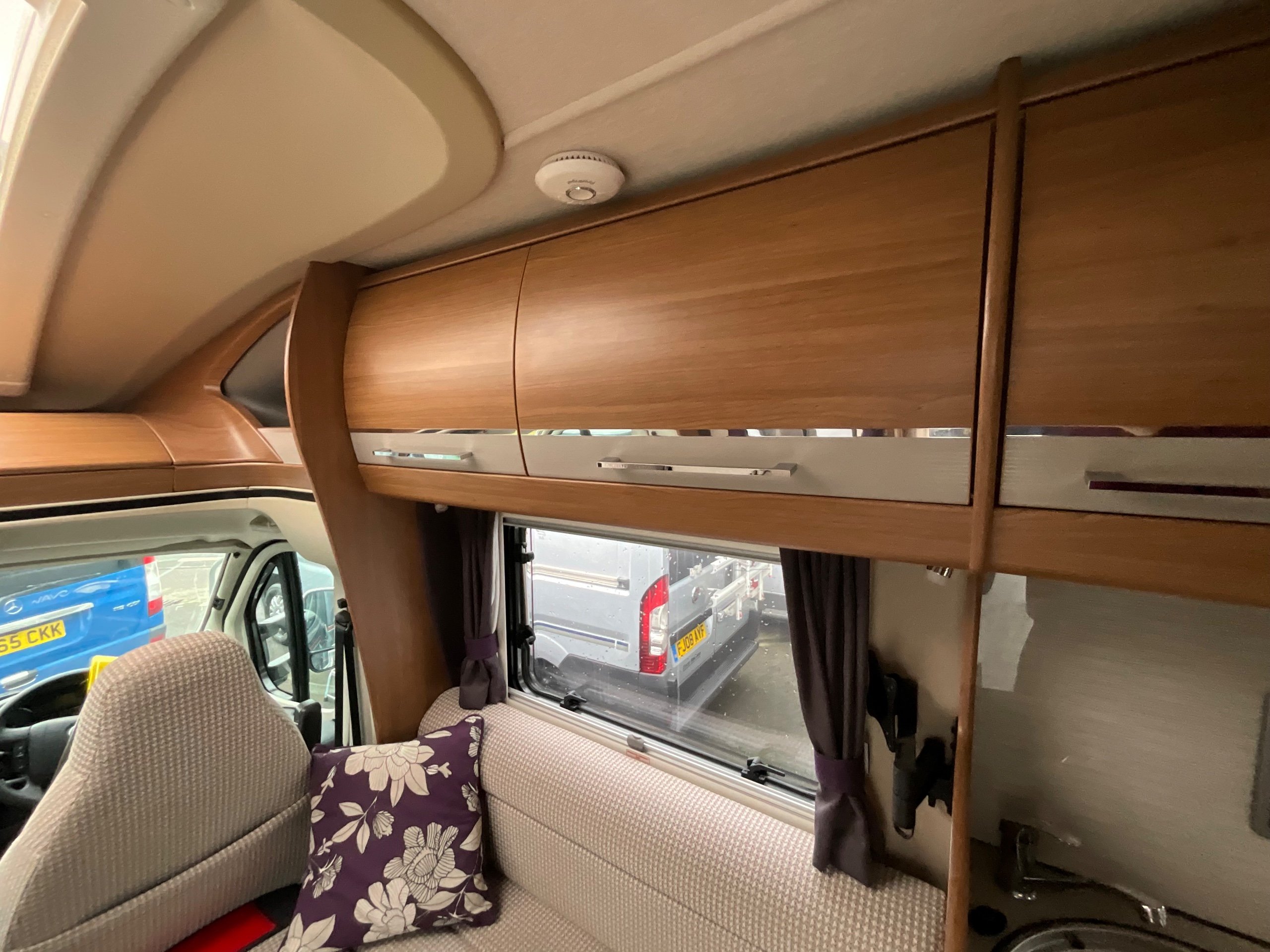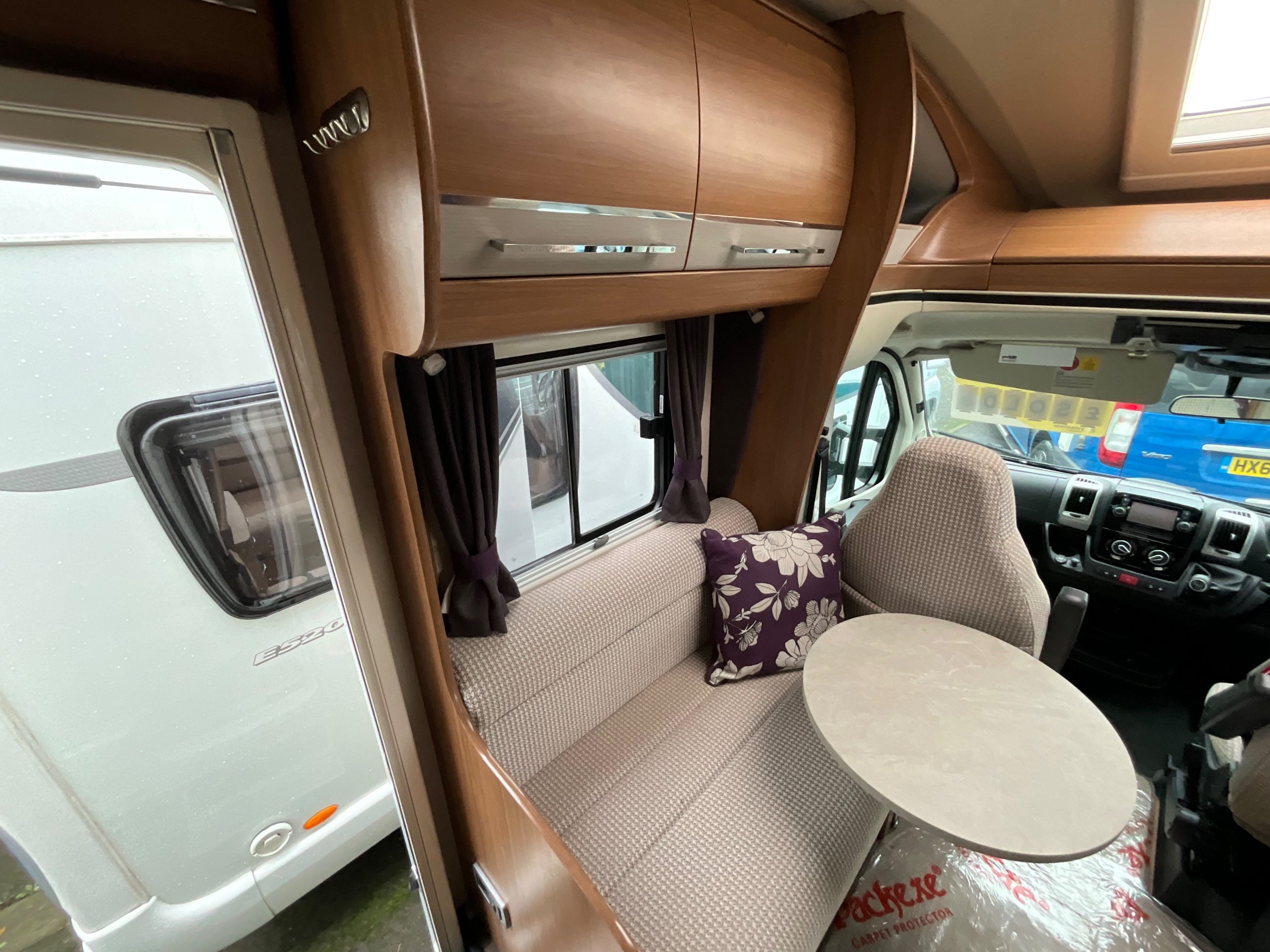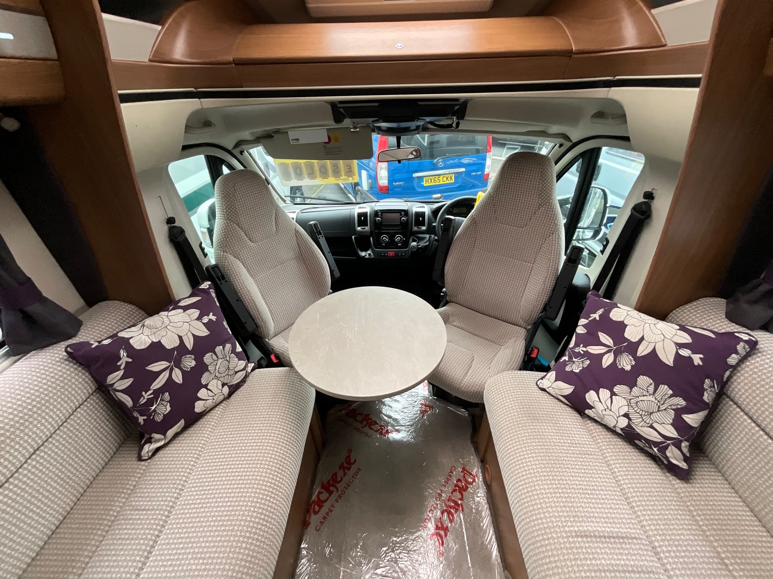 The additional extras fitted are Awning, Cab air-conditioning, TV + TV aerial, Cruise control, central locking, upgraded touch radio system (Bluetooth hands free for phone, music and DAB radio), steering wheel audio controls, microwave, extra cup holders, built in Sat Nav, solar panel, Tow bar (complete metal frame width of the motorhome) with electrics fitted, External Gas BBQ + Shower points and built in cab blinds.