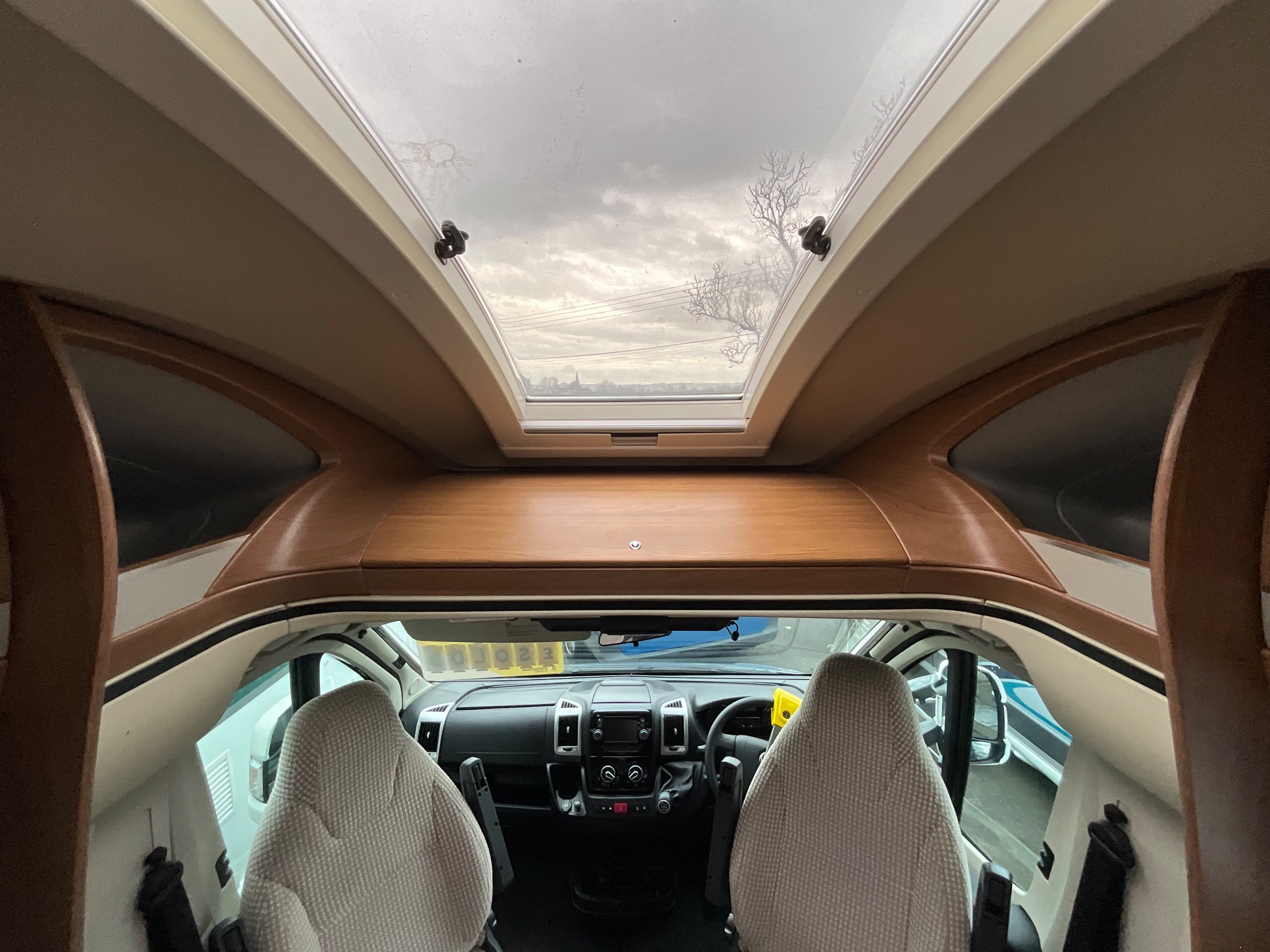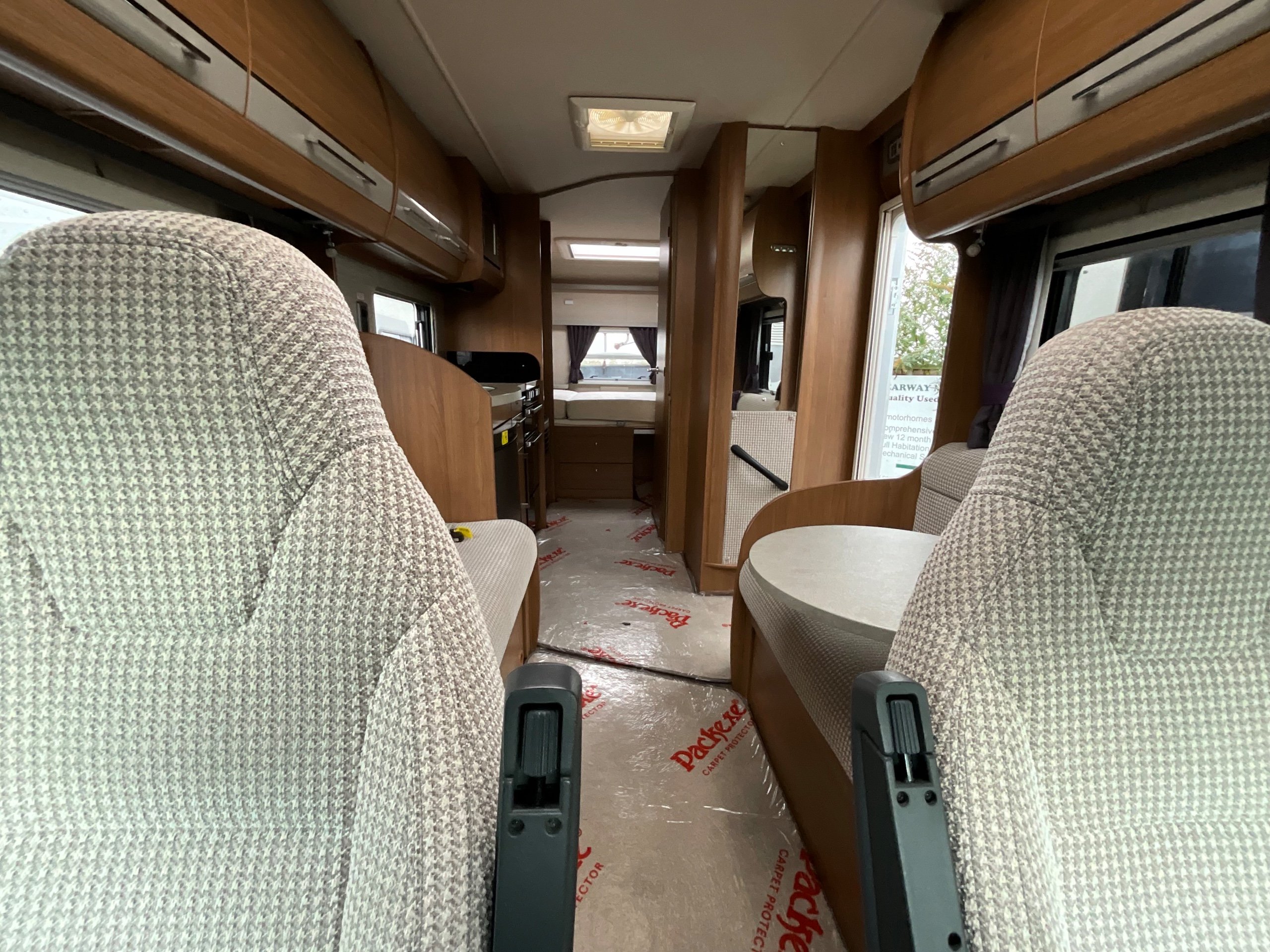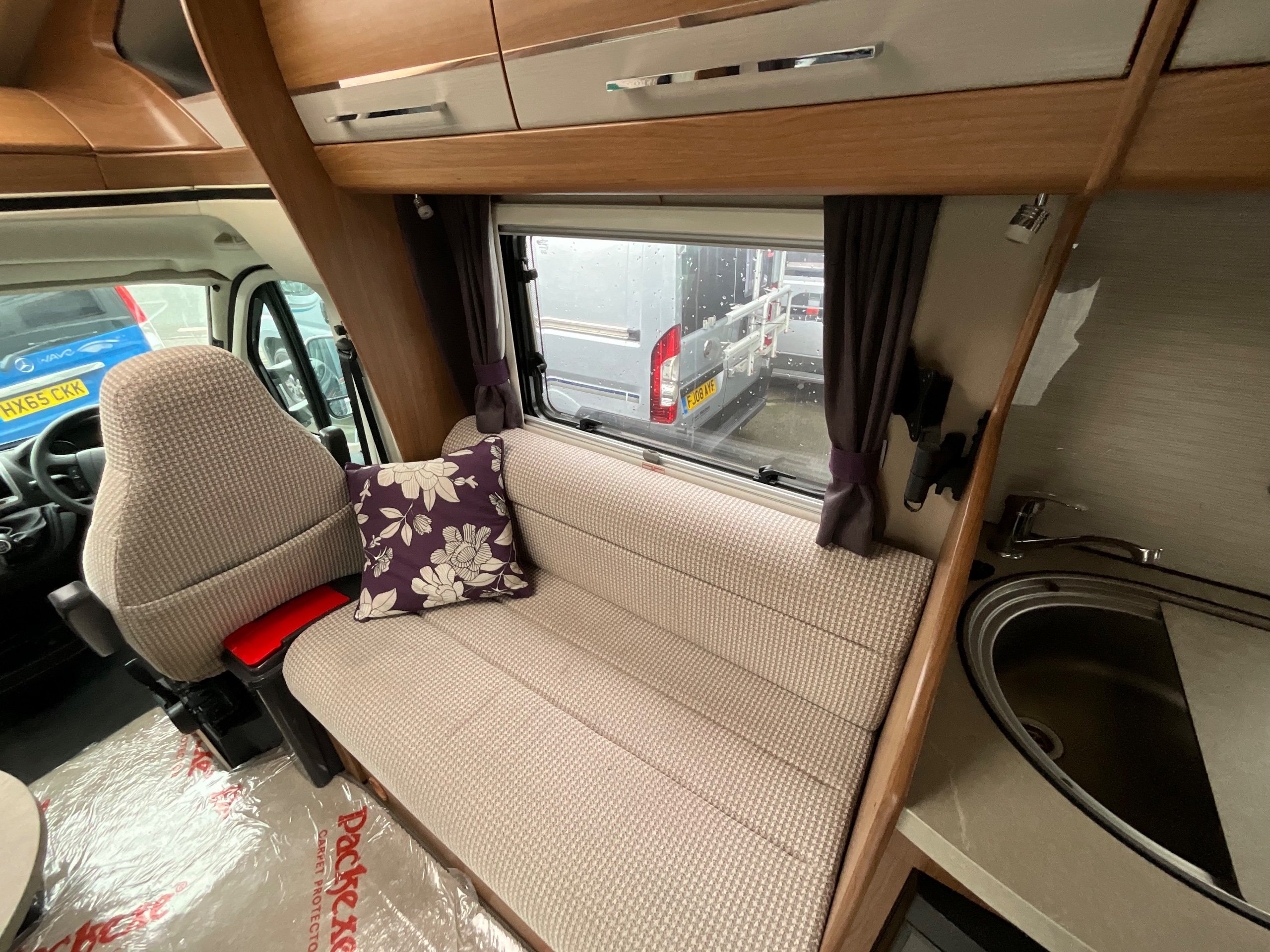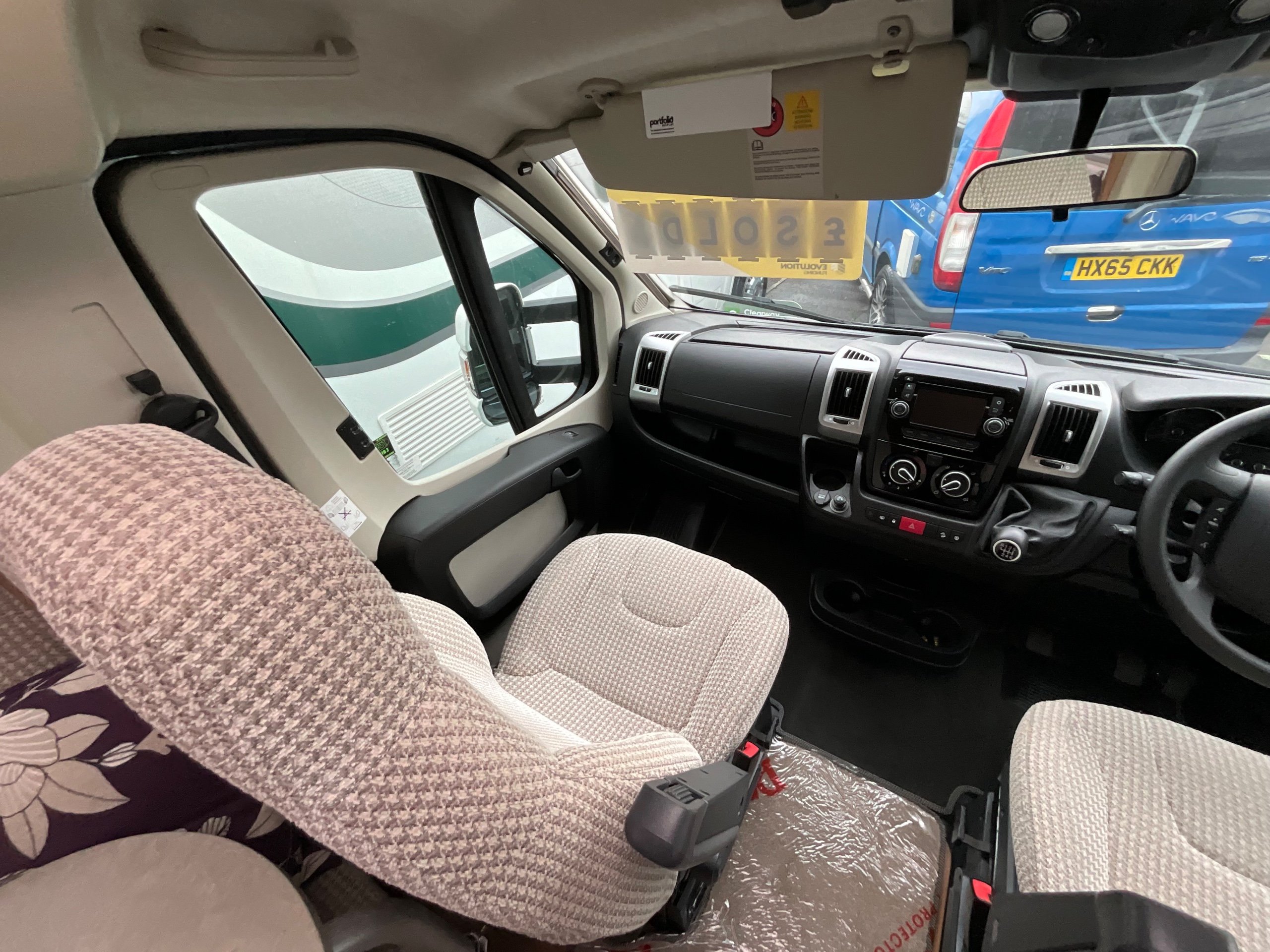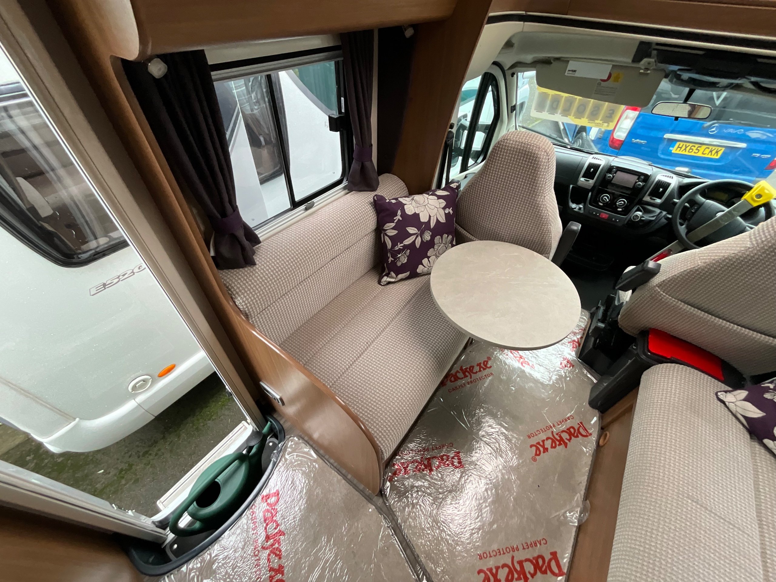 The additional extras fitted are Awning, Cab air-conditioning, TV + TV aerial, Cruise control, central locking, upgraded touch radio system (Bluetooth hands free for phone, music and DAB radio), steering wheel audio controls, microwave, extra cup holders, built in Sat Nav, solar panel, Tow bar (complete metal frame width of the motorhome) with electrics fitted, External Gas BBQ + Shower points and built in cab blinds.