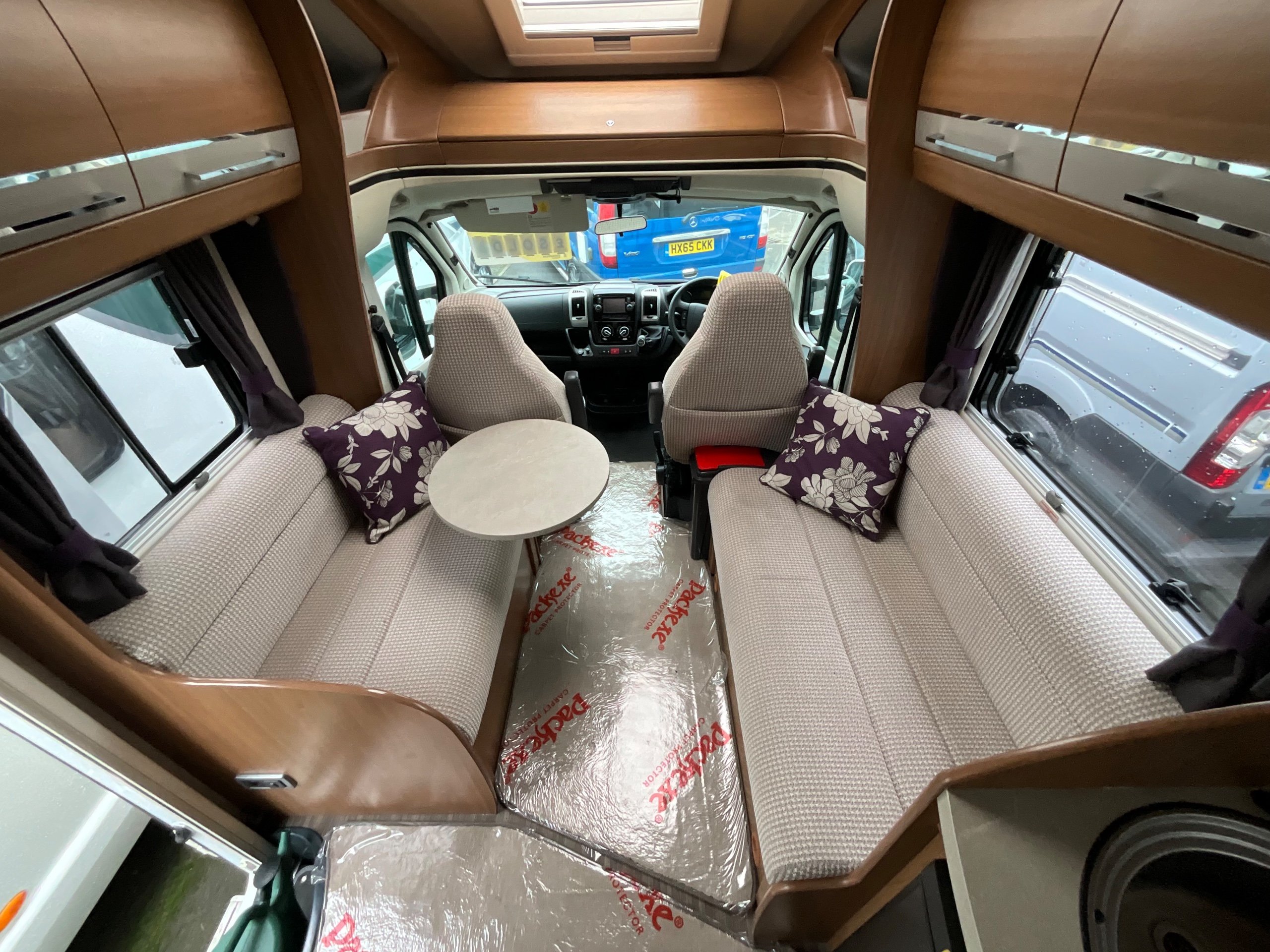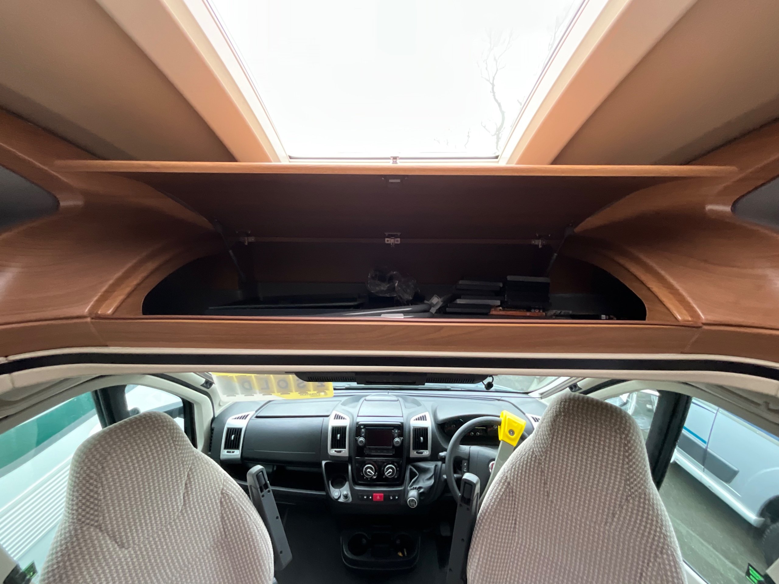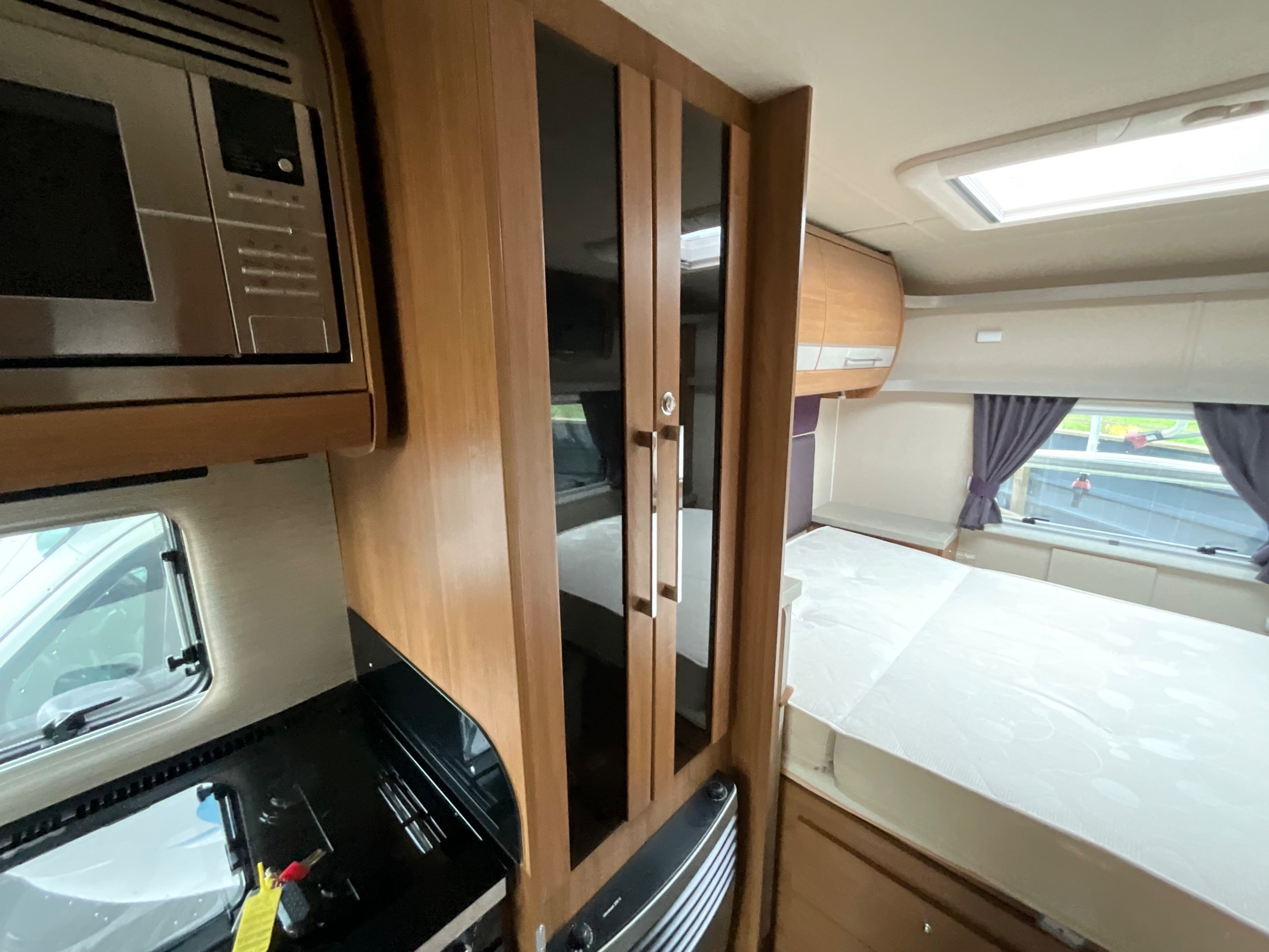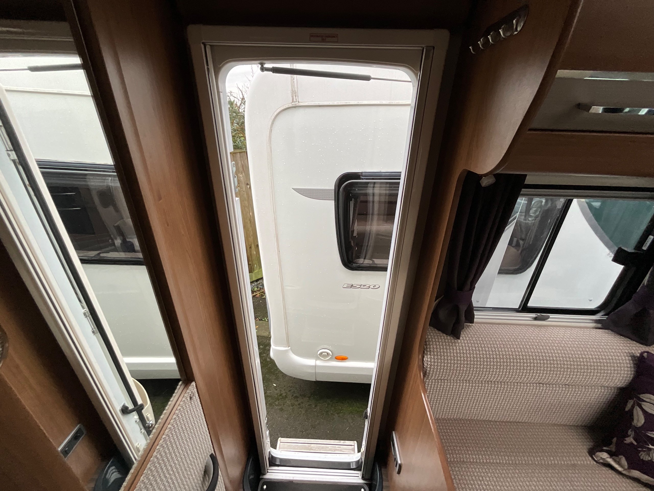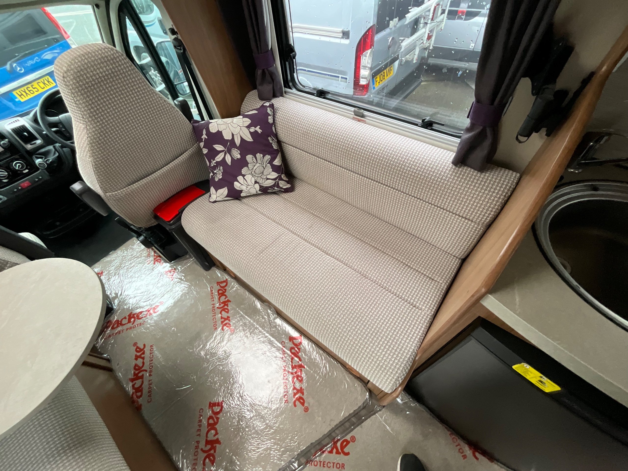 The additional extras fitted are Awning, Cab air-conditioning, TV + TV aerial, Cruise control, central locking, upgraded touch radio system (Bluetooth hands free for phone, music and DAB radio), steering wheel audio controls, microwave, extra cup holders, built in Sat Nav, solar panel, Tow bar (complete metal frame width of the motorhome) with electrics fitted, External Gas BBQ + Shower points and built in cab blinds.