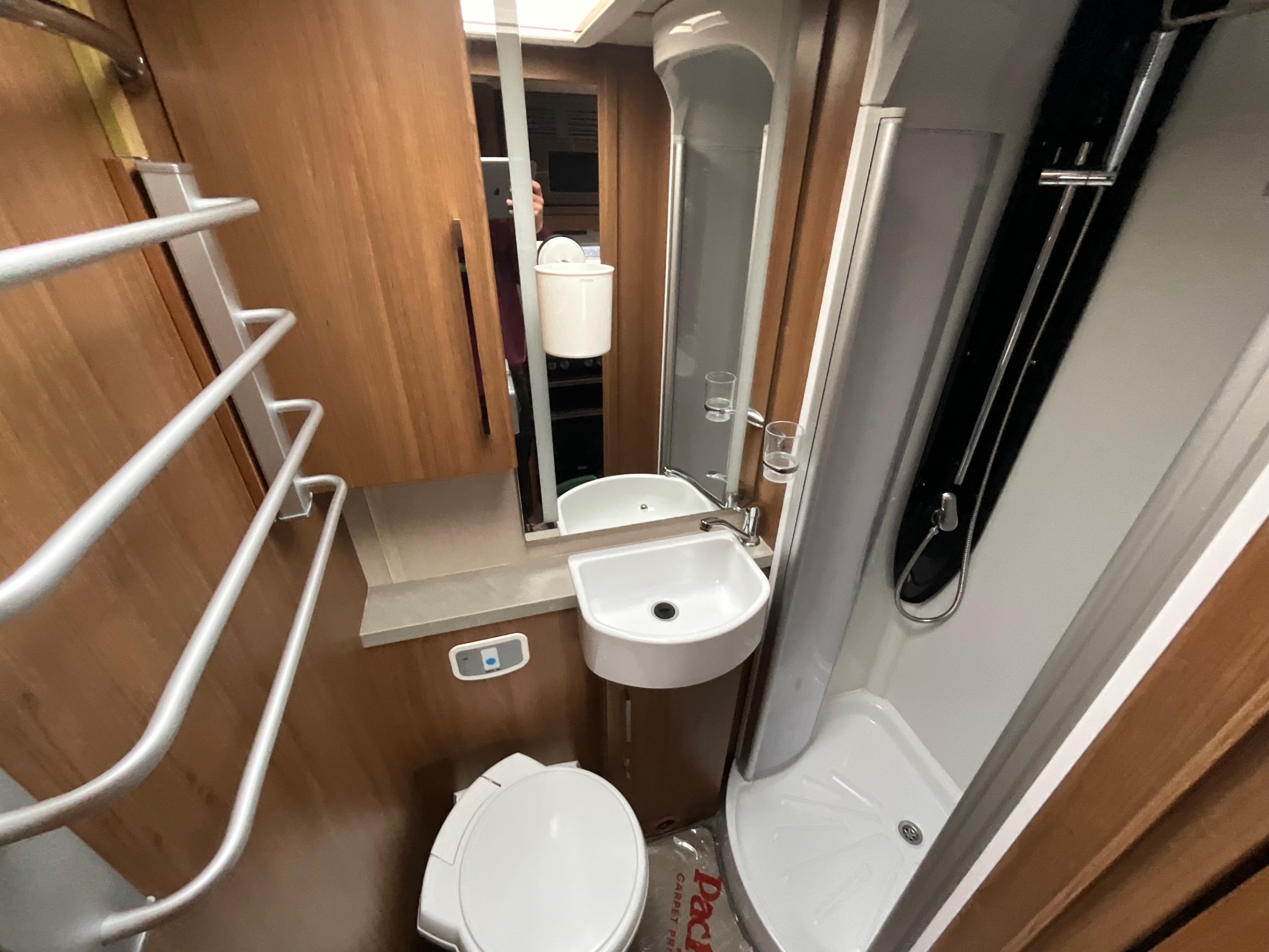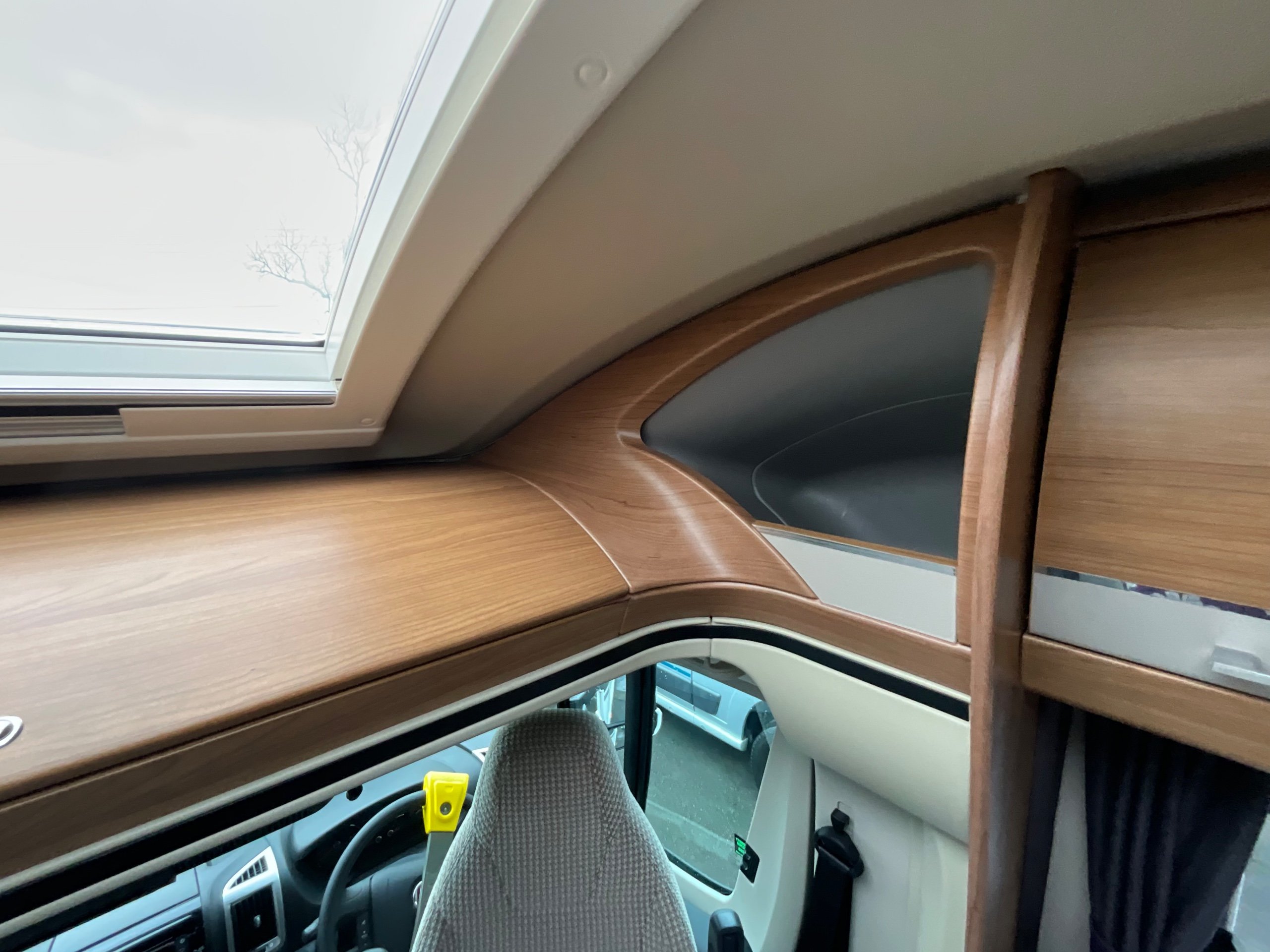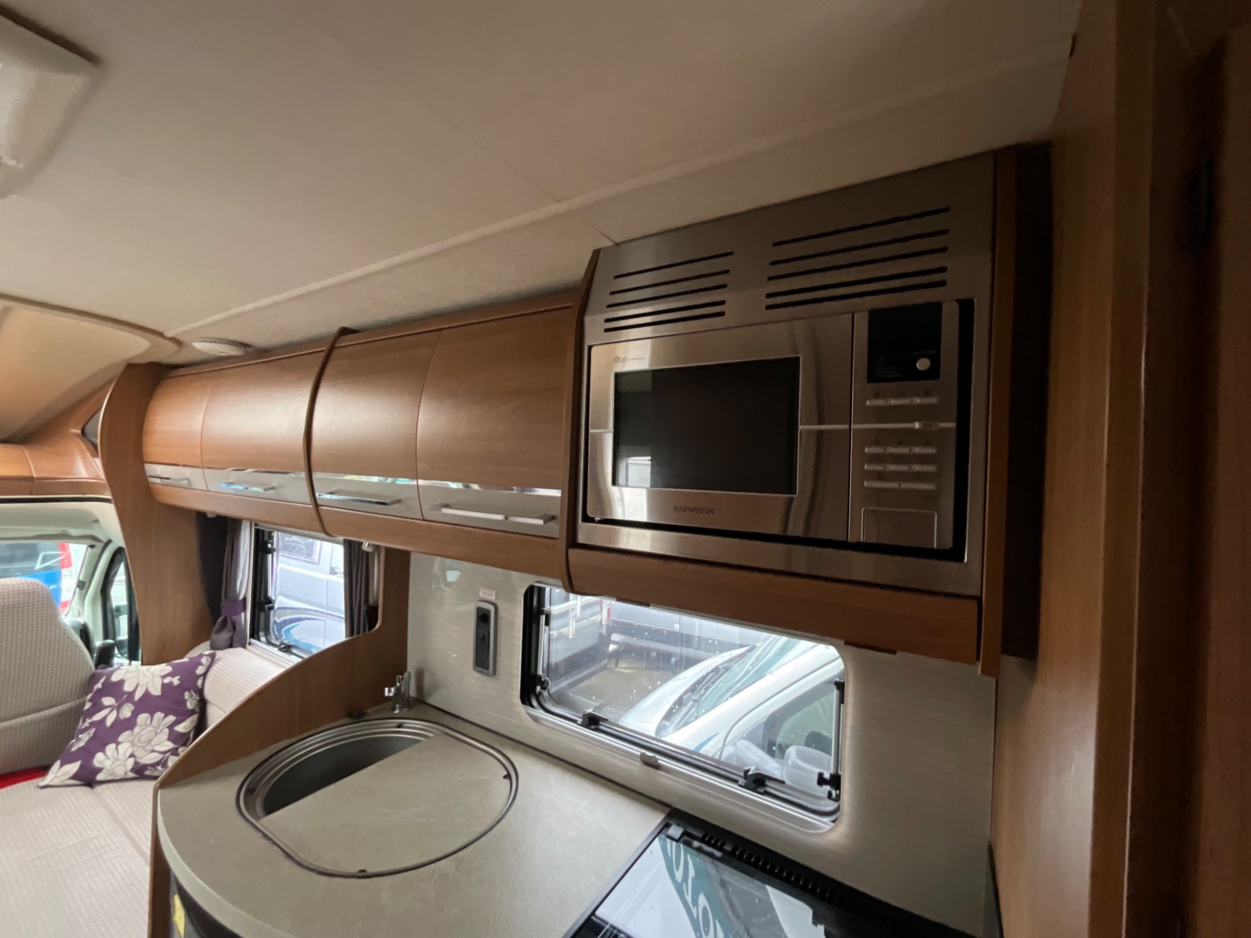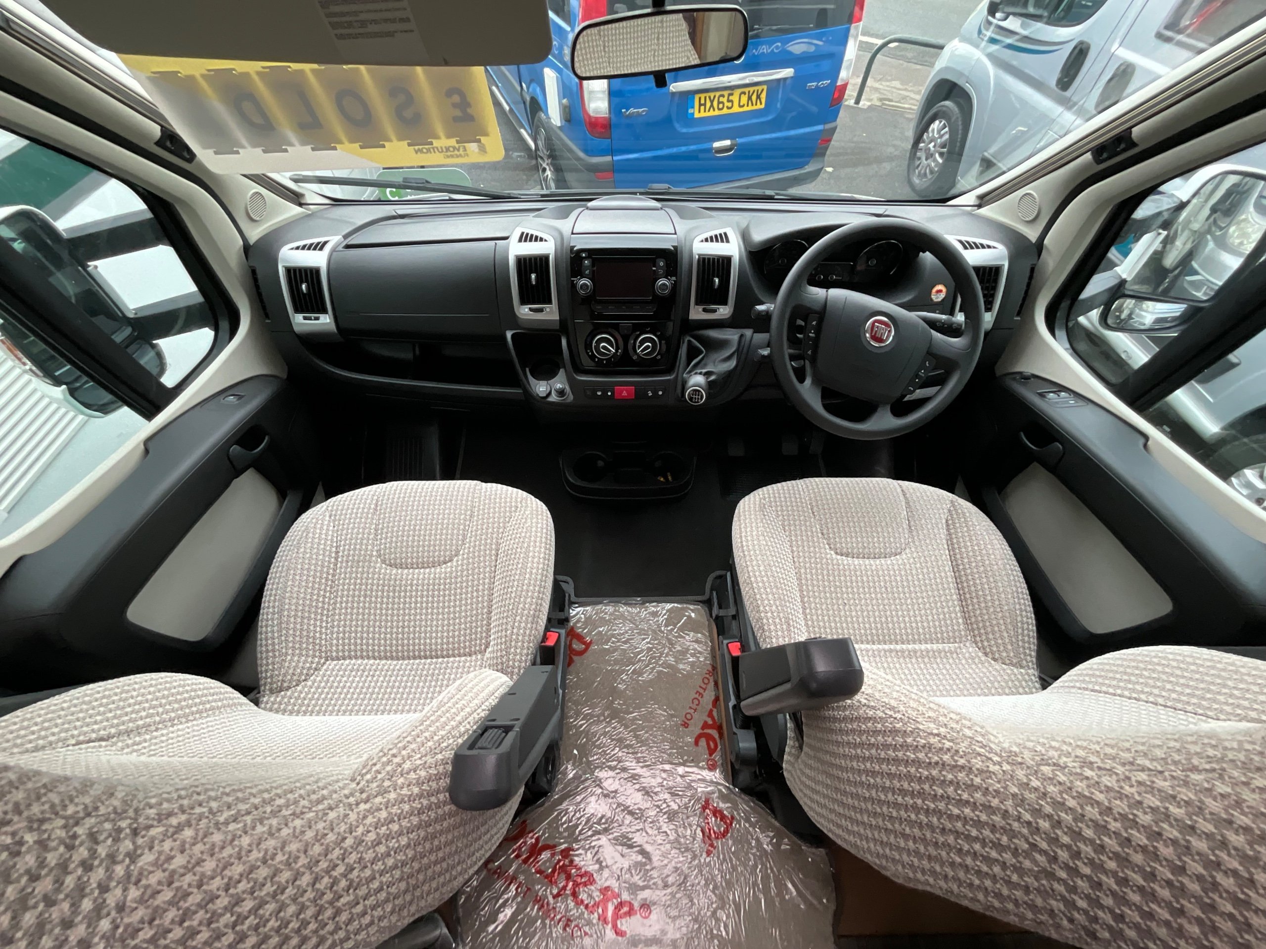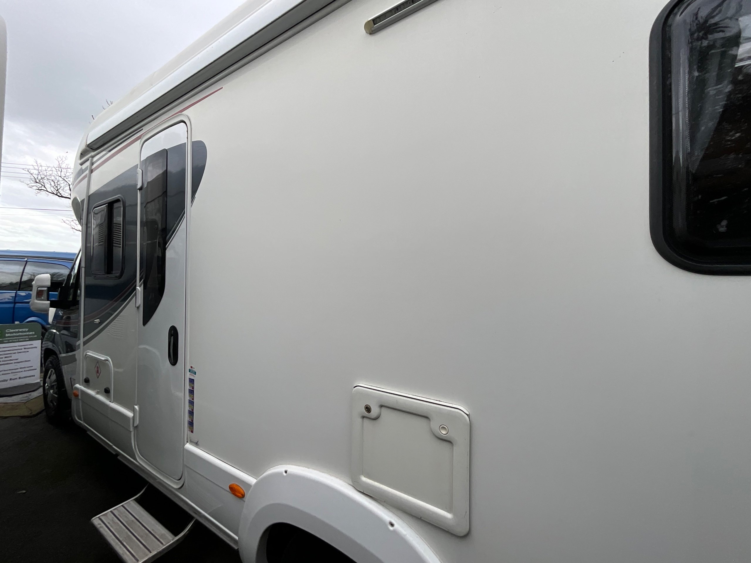 The additional extras fitted are Awning, Cab air-conditioning, TV + TV aerial, Cruise control, central locking, upgraded touch radio system (Bluetooth hands free for phone, music and DAB radio), steering wheel audio controls, microwave, extra cup holders, built in Sat Nav, solar panel, Tow bar (complete metal frame width of the motorhome) with electrics fitted, External Gas BBQ + Shower points and built in cab blinds.