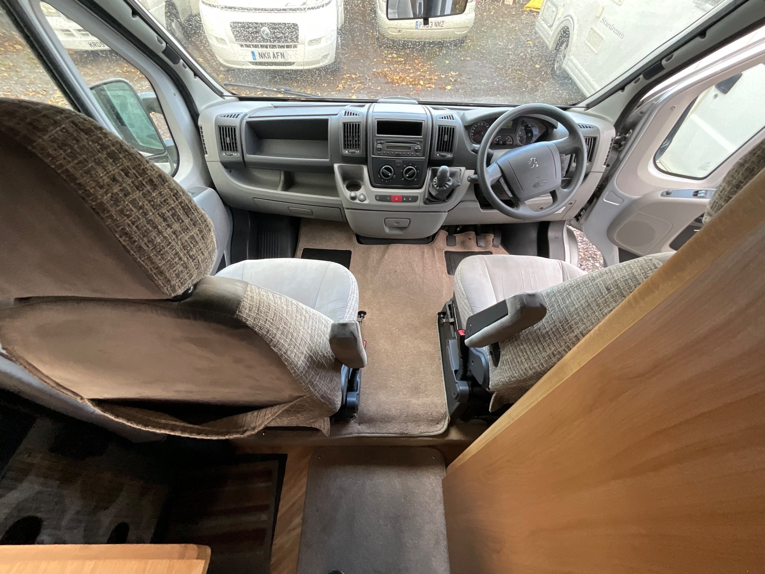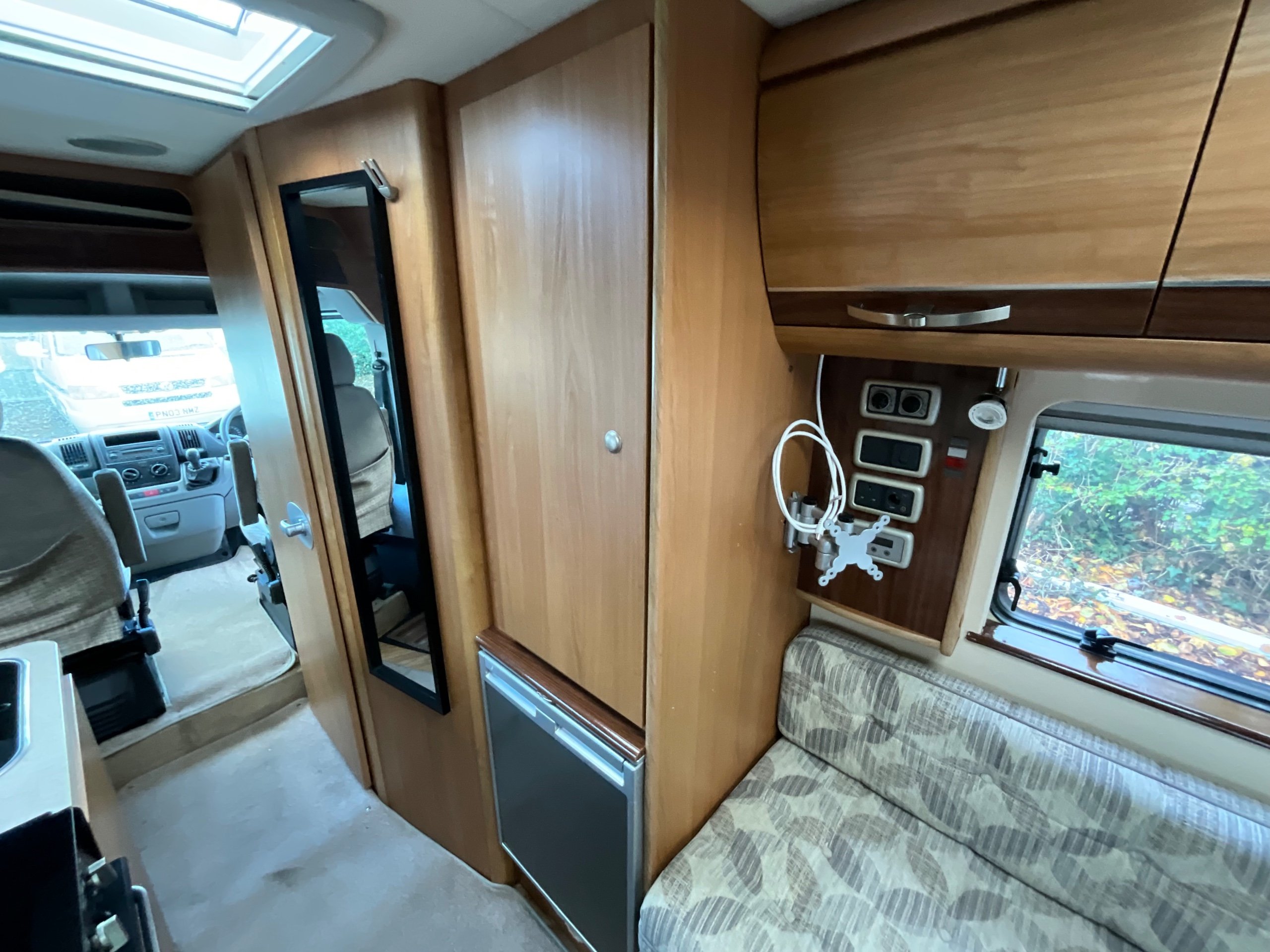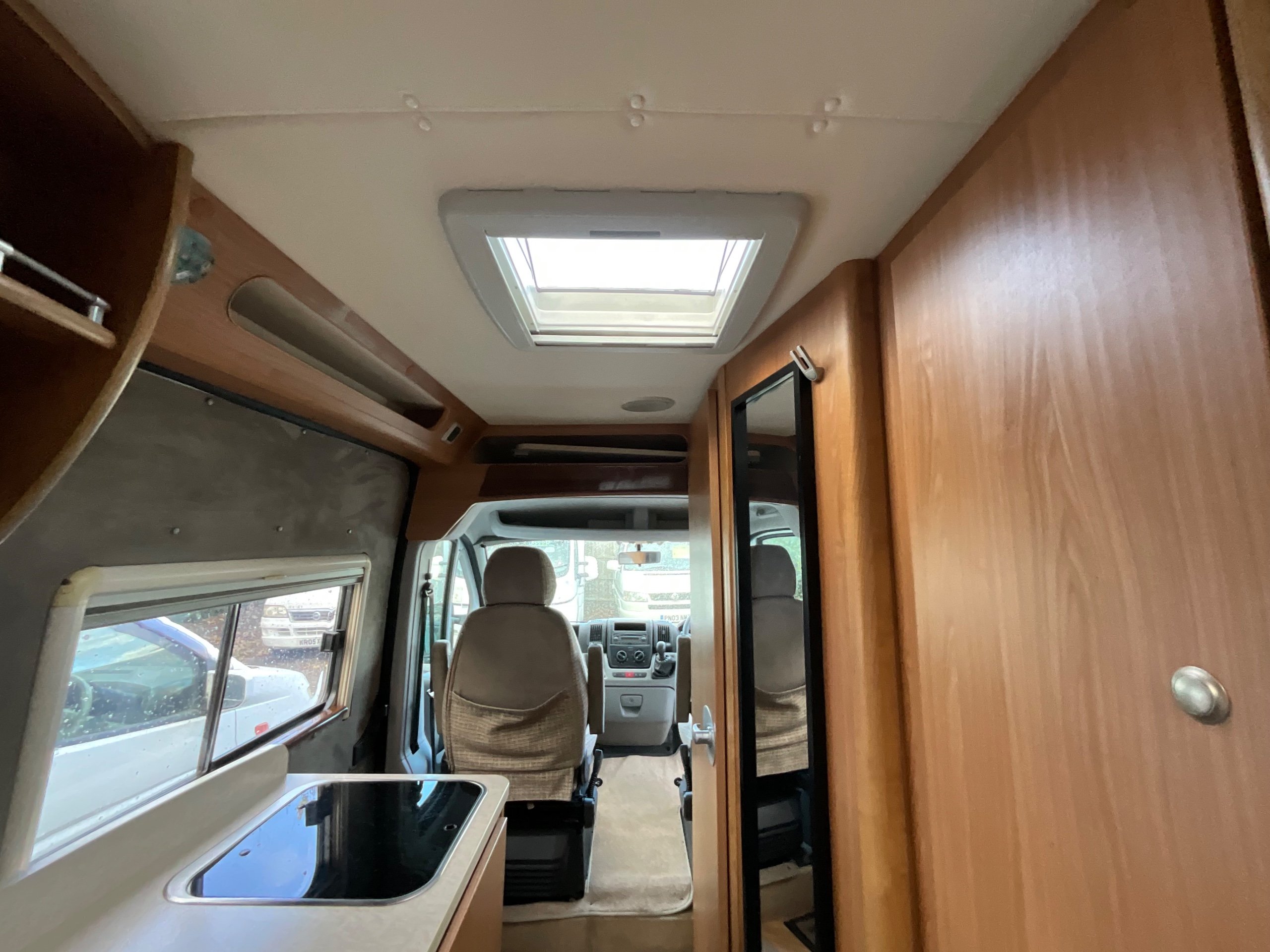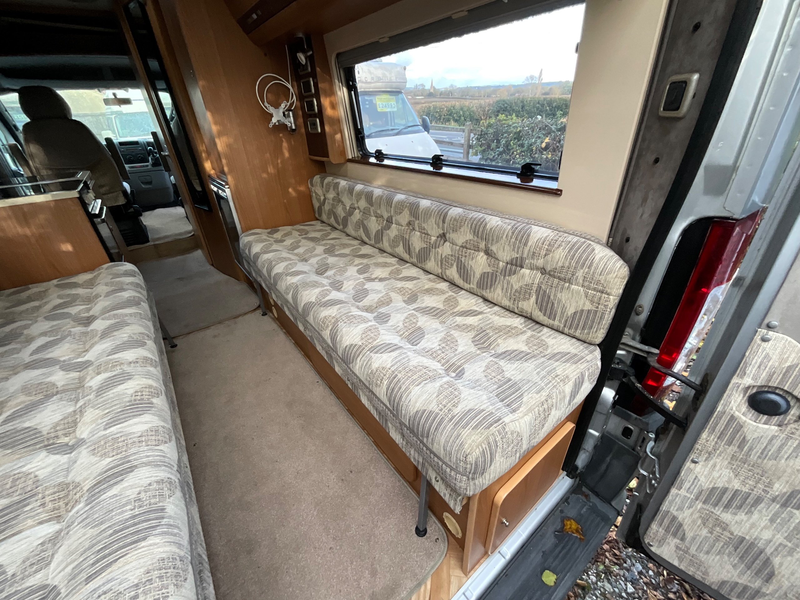 The additional extras fitted to the Autocruise Rhythm are an Awning, bike rack, 6 speed gear box, central locking, tow bar, under-slung refillable gas system, sigma immobiliser, TV aerial, cruise control, solar panel, cab air-conditioning, build in cab blind and radio controls on the steering wheel.