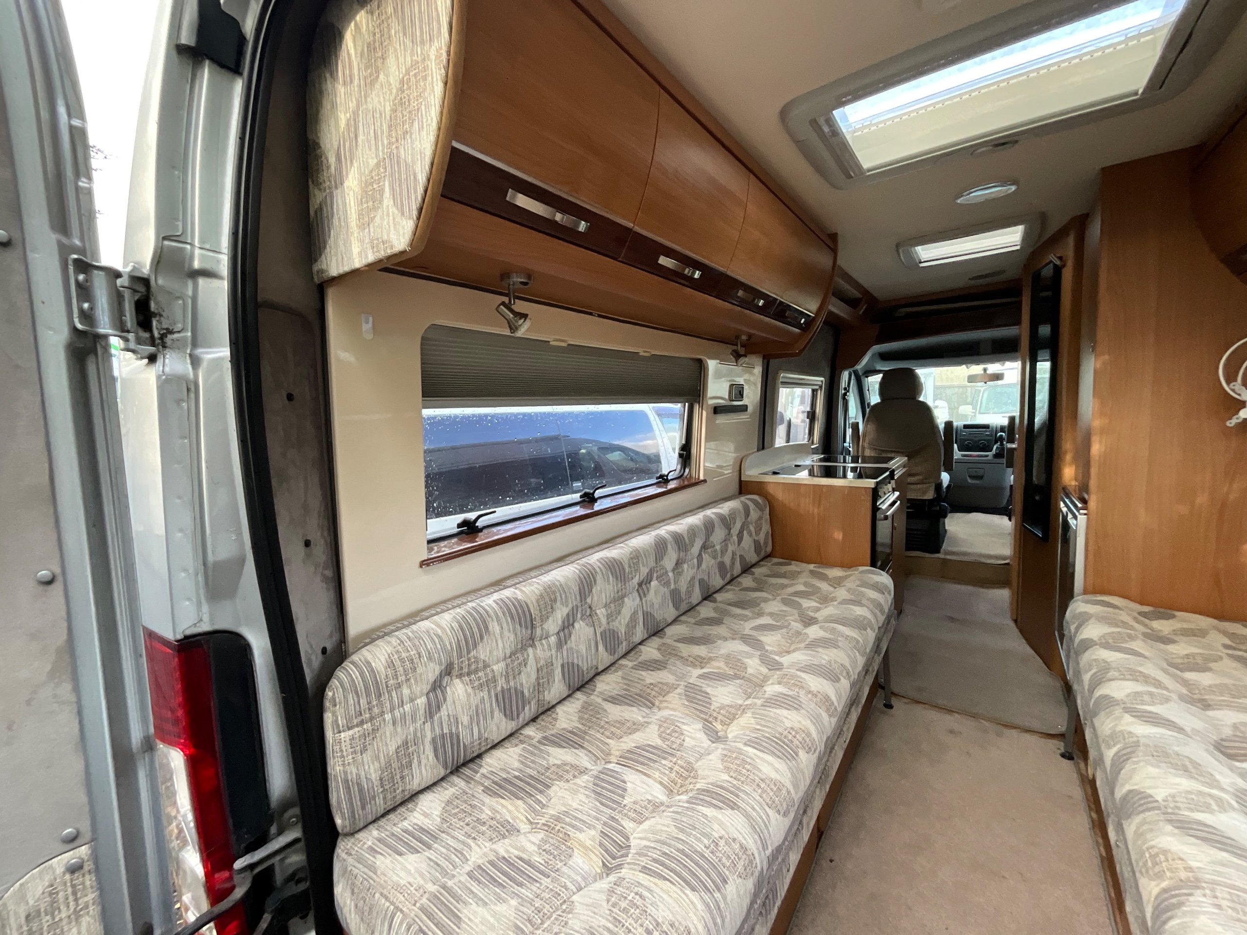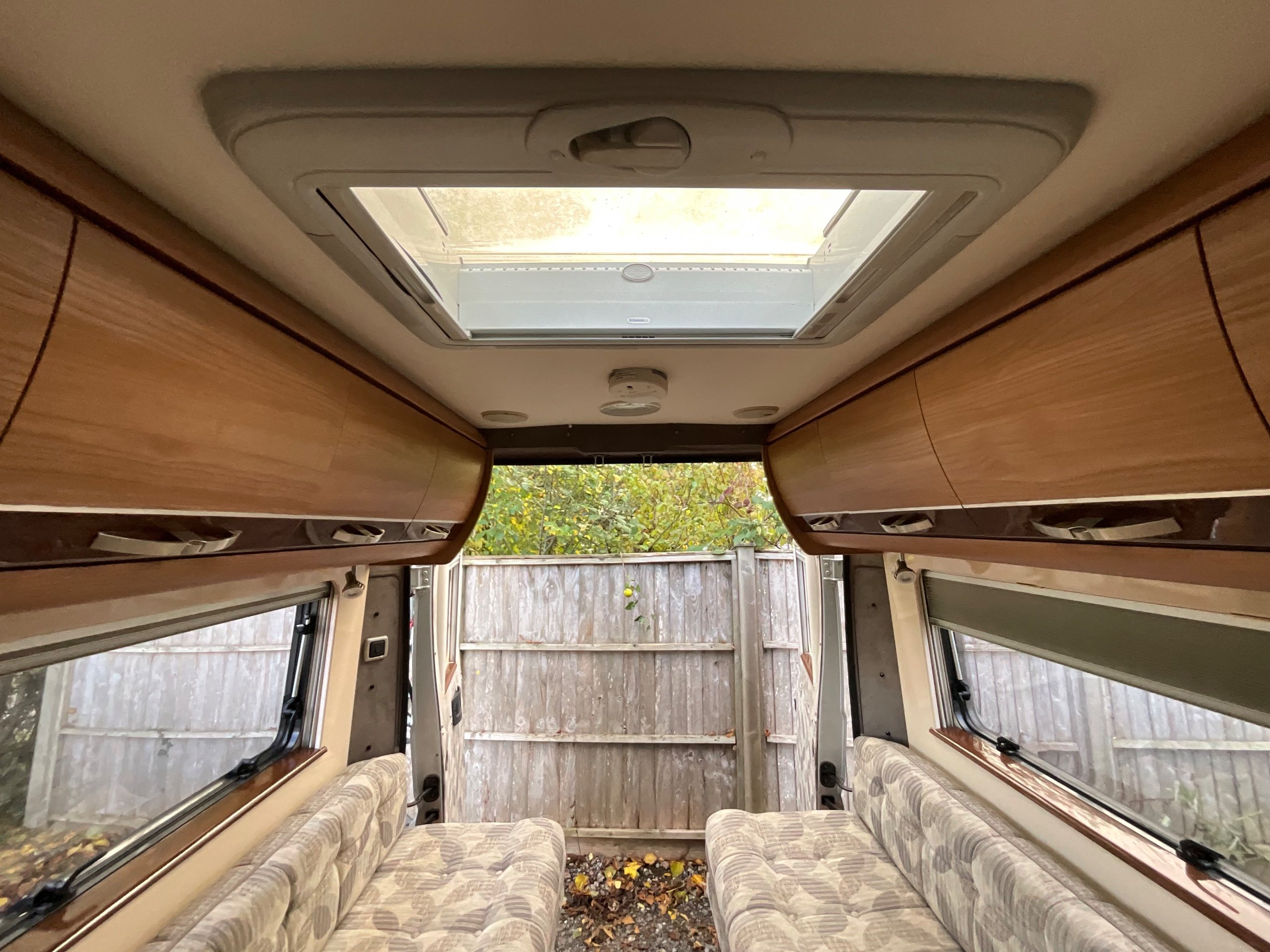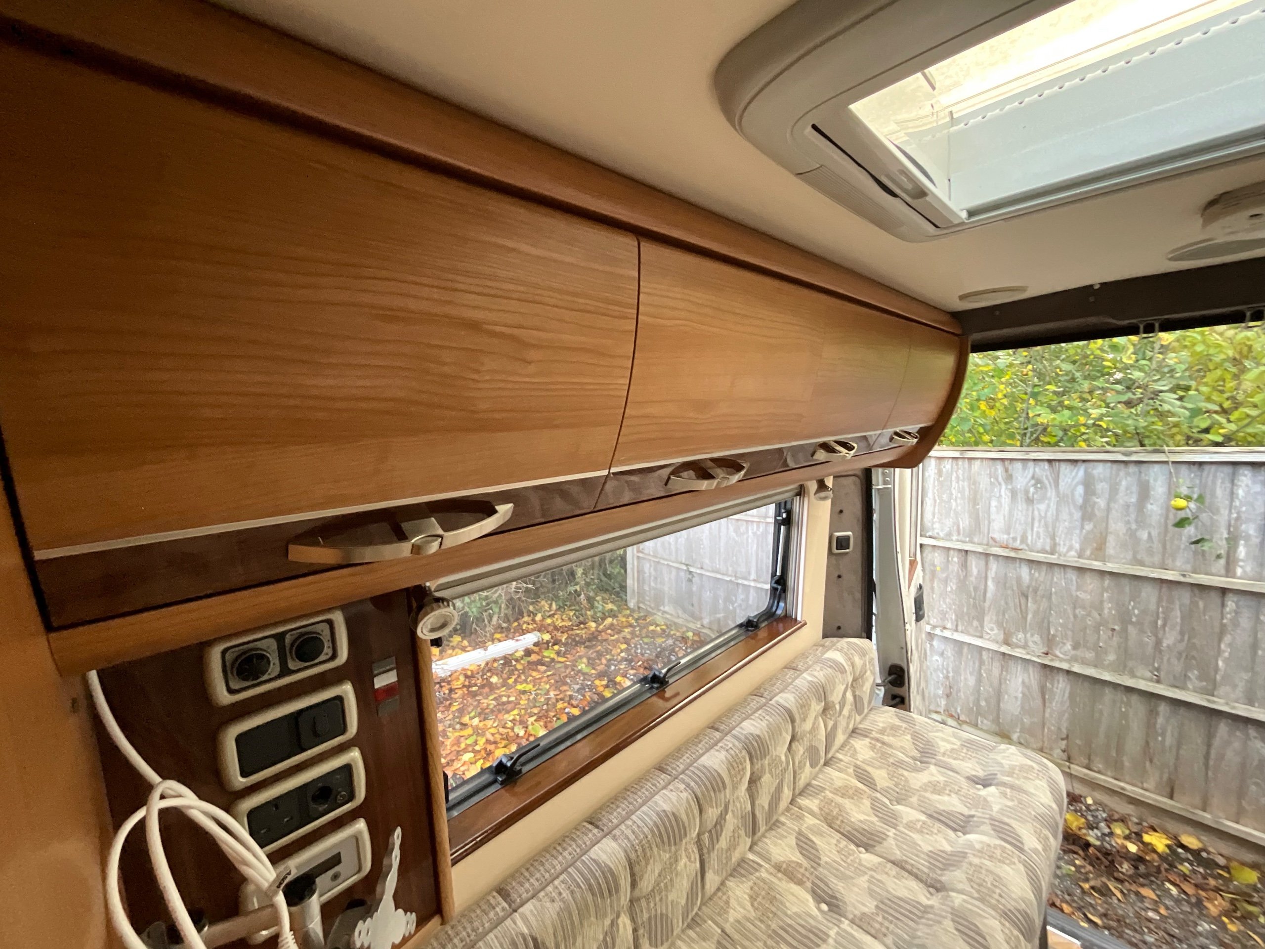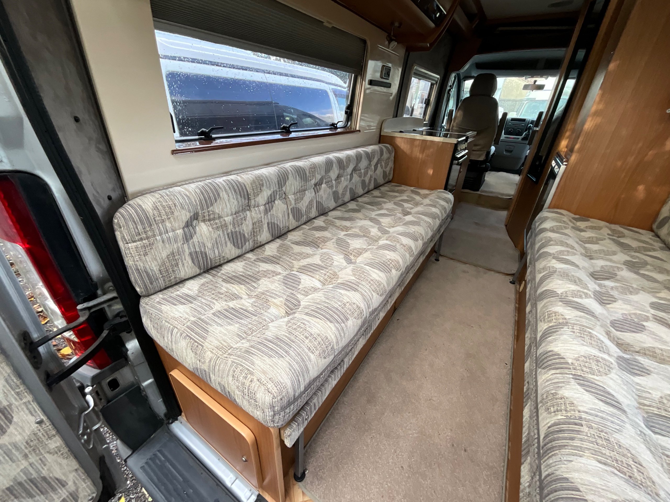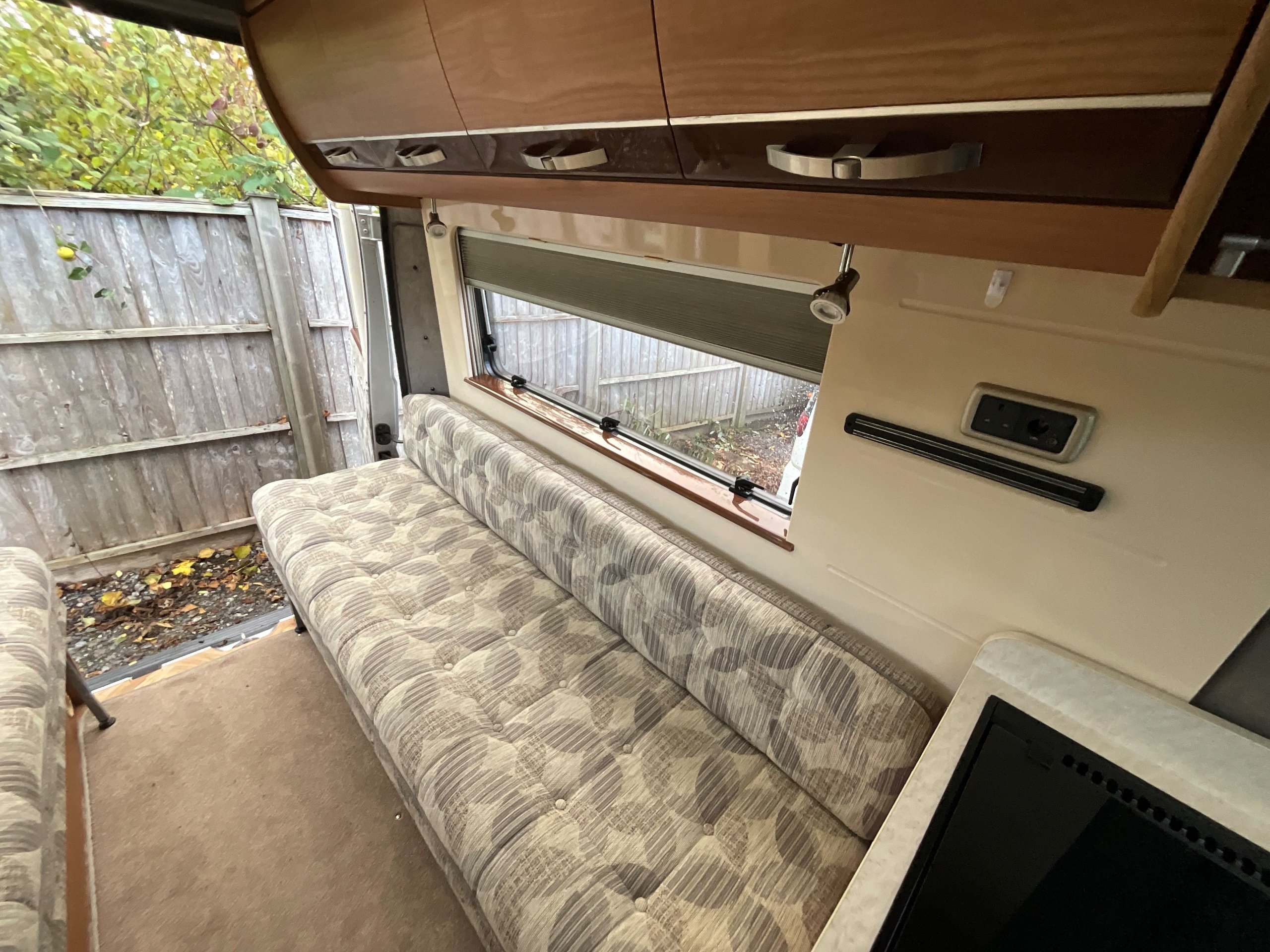 The additional extras fitted to the Autocruise Rhythm are an Awning, bike rack, 6 speed gear box, central locking, tow bar, under-slung refillable gas system, sigma immobiliser, TV aerial, cruise control, solar panel, cab air-conditioning, build in cab blind and radio controls on the steering wheel.