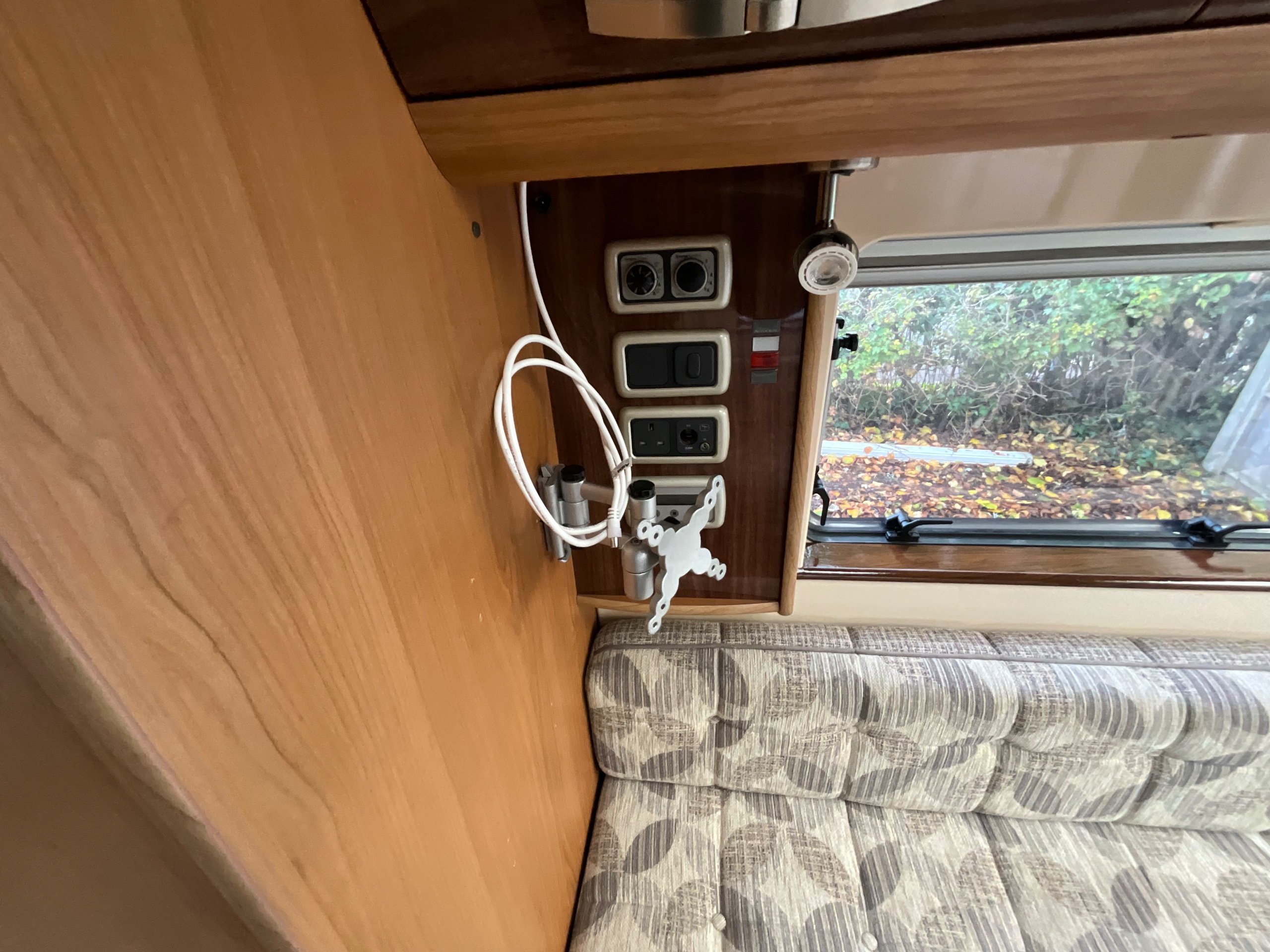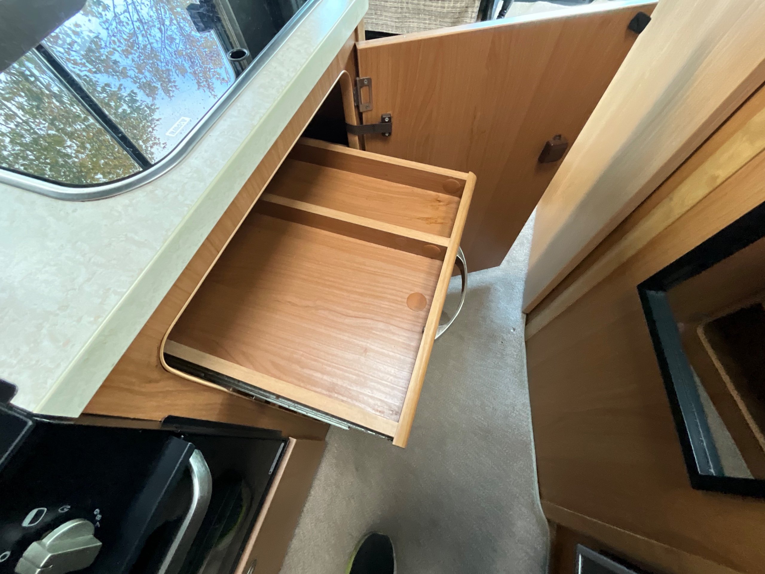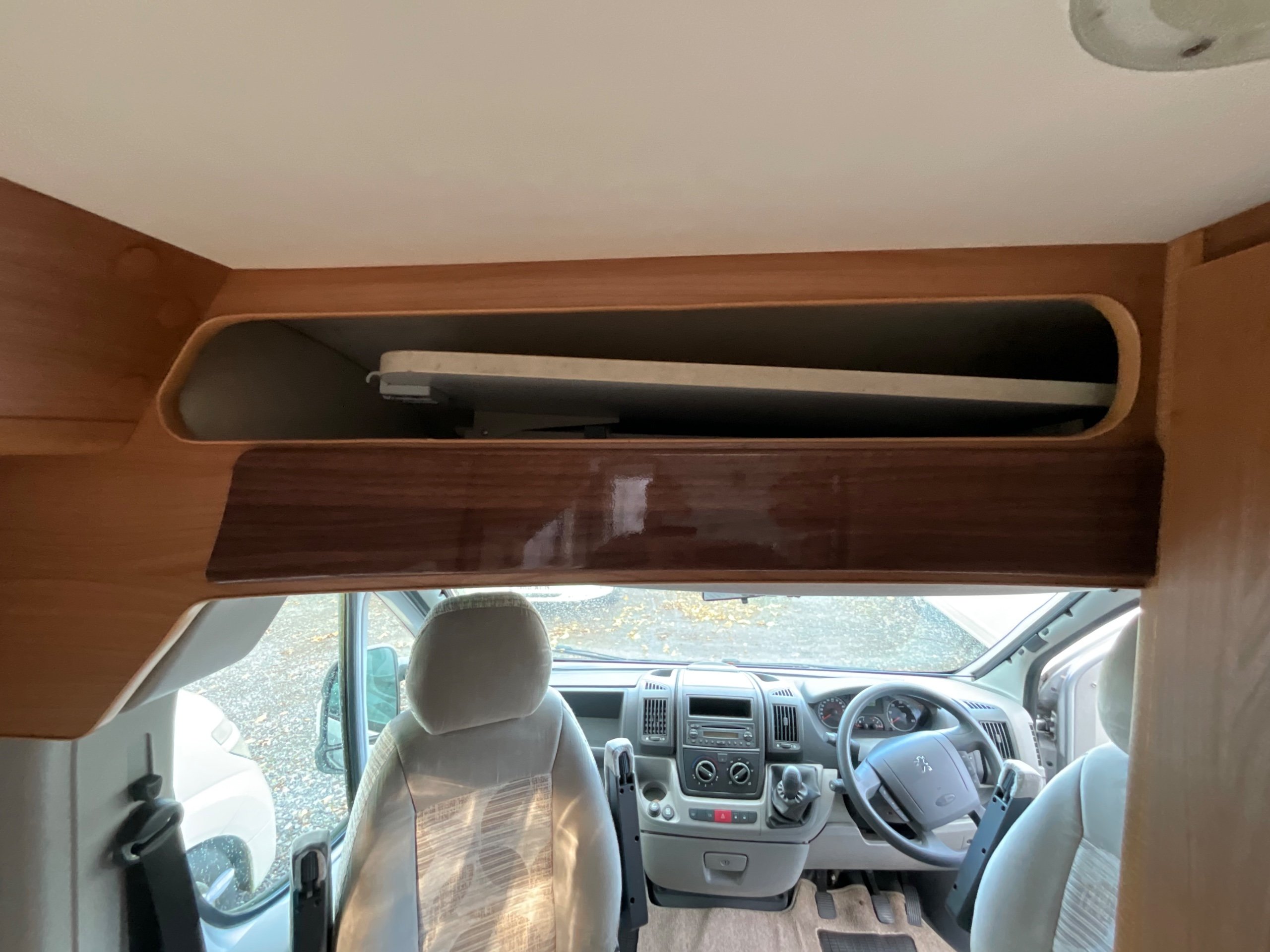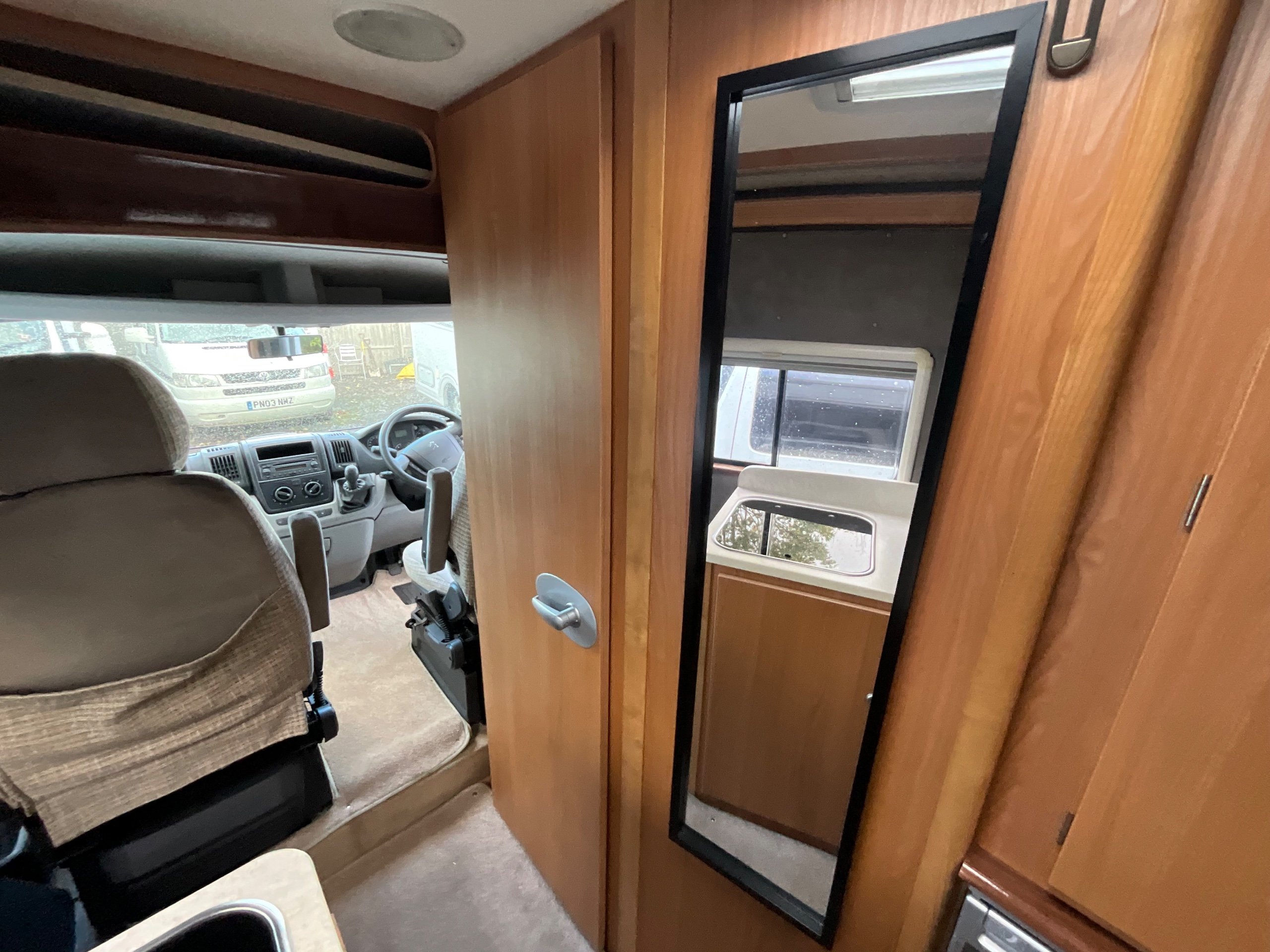 The additional extras fitted to the Autocruise Rhythm are an Awning, bike rack, 6 speed gear box, central locking, tow bar, under-slung refillable gas system, sigma immobiliser, TV aerial, cruise control, solar panel, cab air-conditioning, build in cab blind and radio controls on the steering wheel.