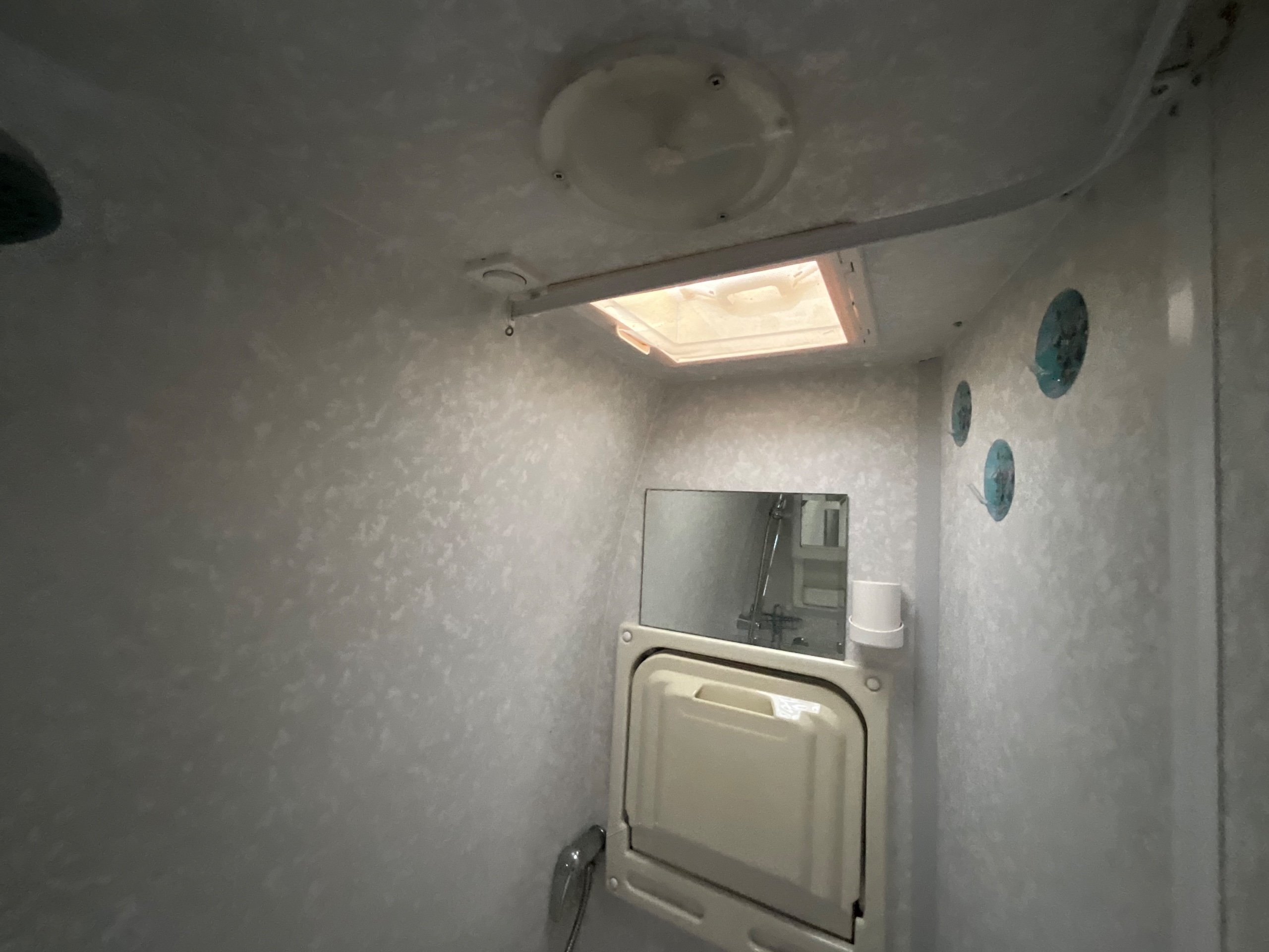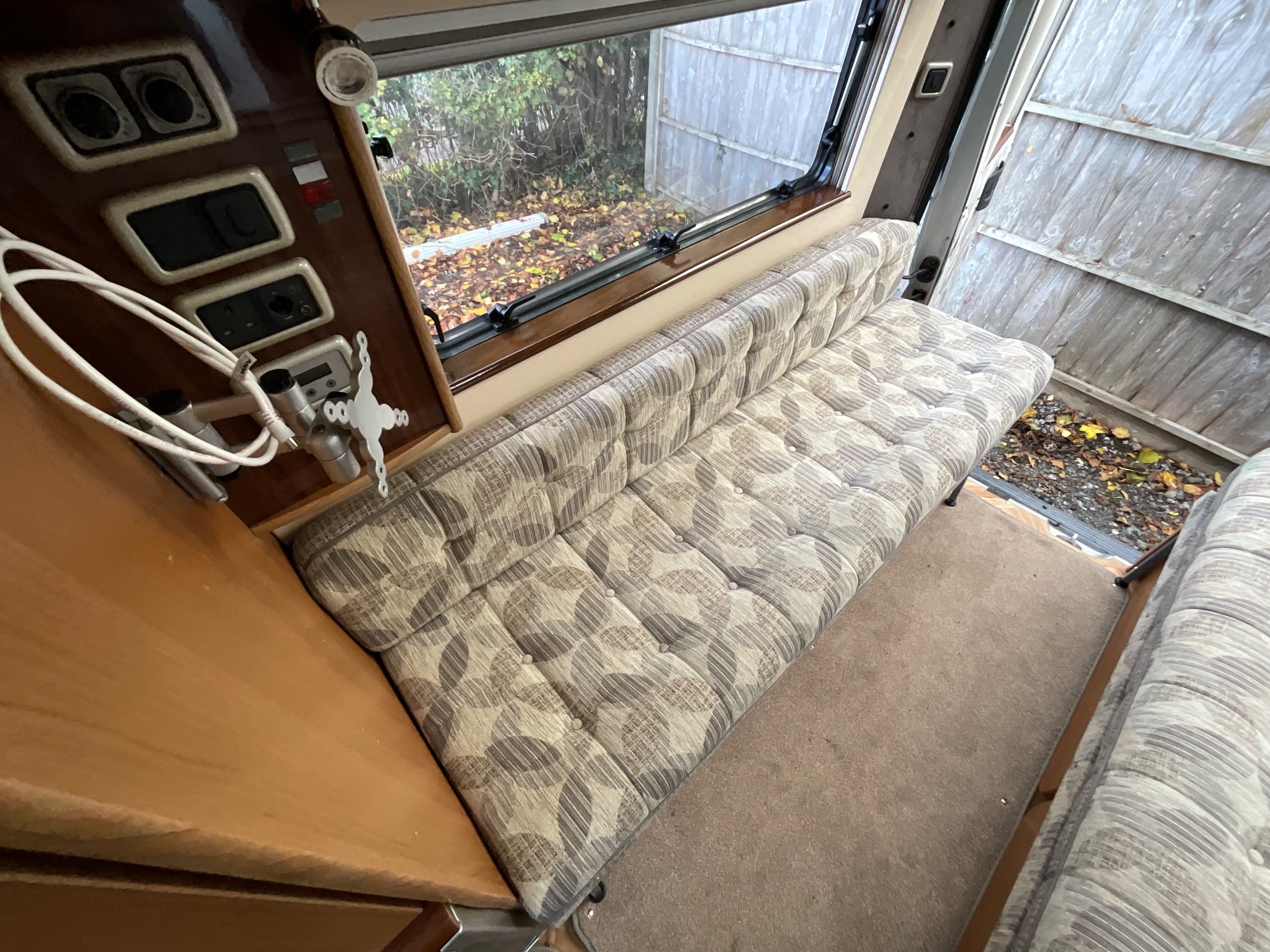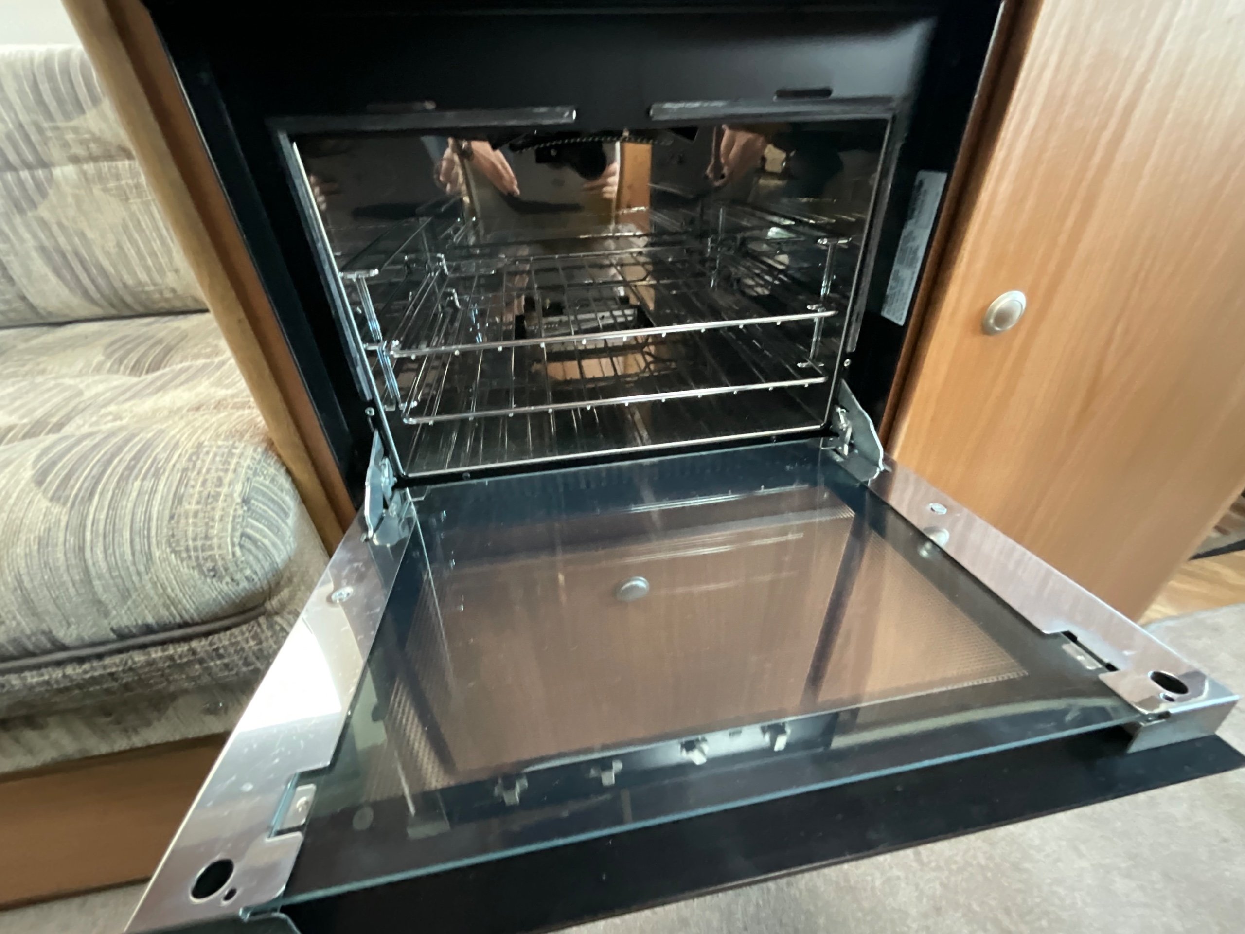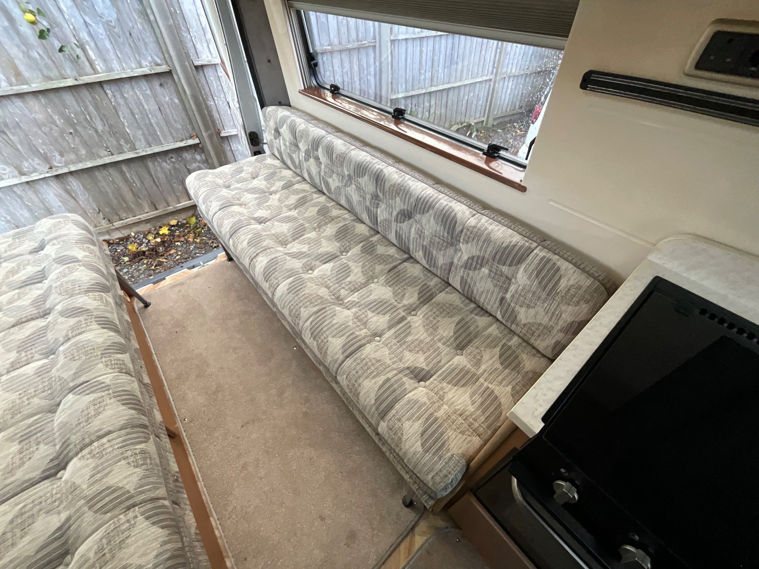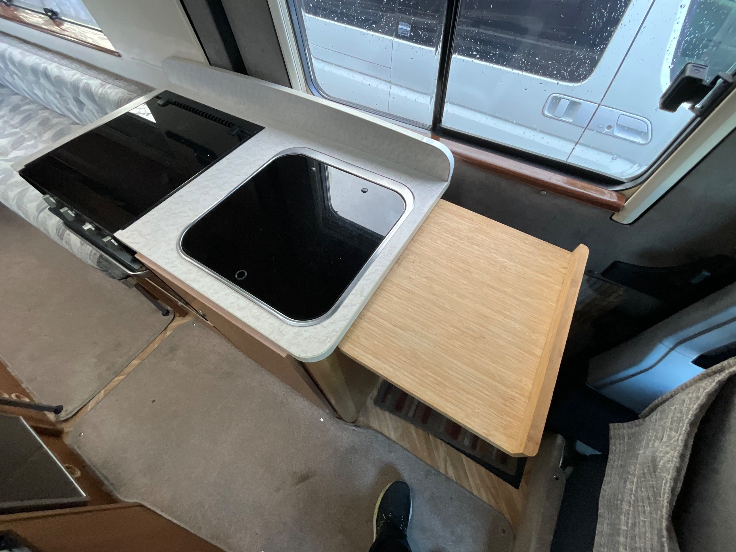 Inside there is all the comforts that you would expect, 3 Gas Hobs, Gas Grill and oven, 12 V Fridge with freezer compartment and a Sink. The bathroom is complete with basin, toilet and shower. Onboard there is Fresh and wastewater tanks, Gas / Electrical operated heating and hot water via the well renowned Whale heating/ hot water system. The electrical element only works when plugged in on 240V power.