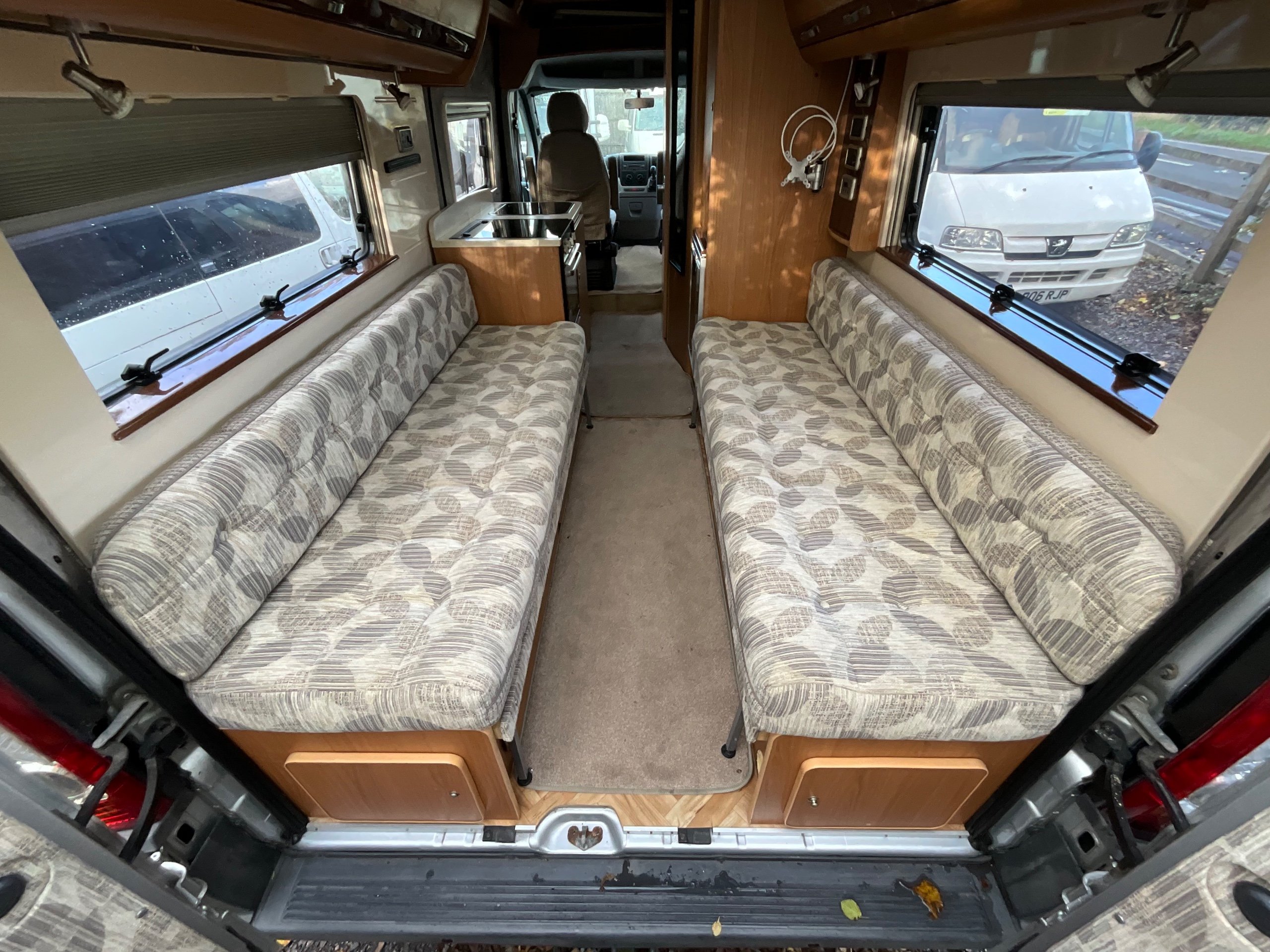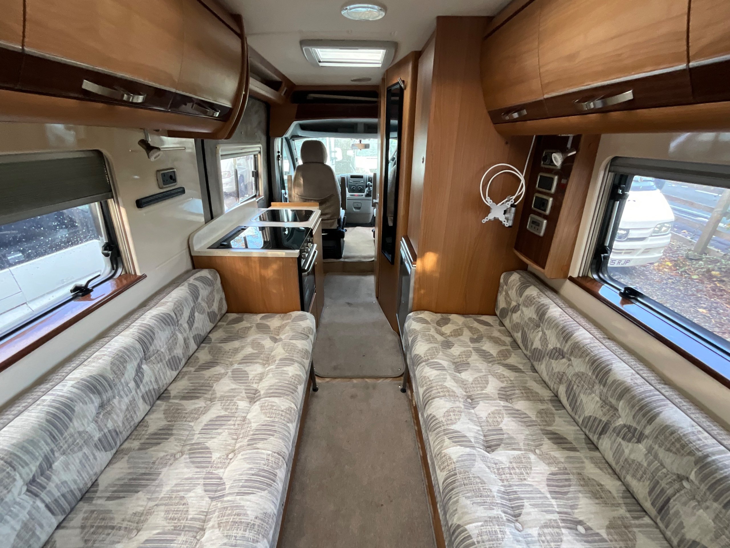 This Autocruise Rhythm has the ability to sleep 2 and travel with 2 people. The Autocurise Rhythm is a 2 Berth motorhome. It has a rear Twin settee layout offering plenty of storage and the added benefit of two single beds over 6 ft in length or a massive double bed. This area is very comfortable for touring when parked up. The central area offers all the living parts of the motorhome such as shower room, kitchen etc. This area can also be used while touring with the use of a single swivel seat (passenger and drivers seat), above the cab is a little storage