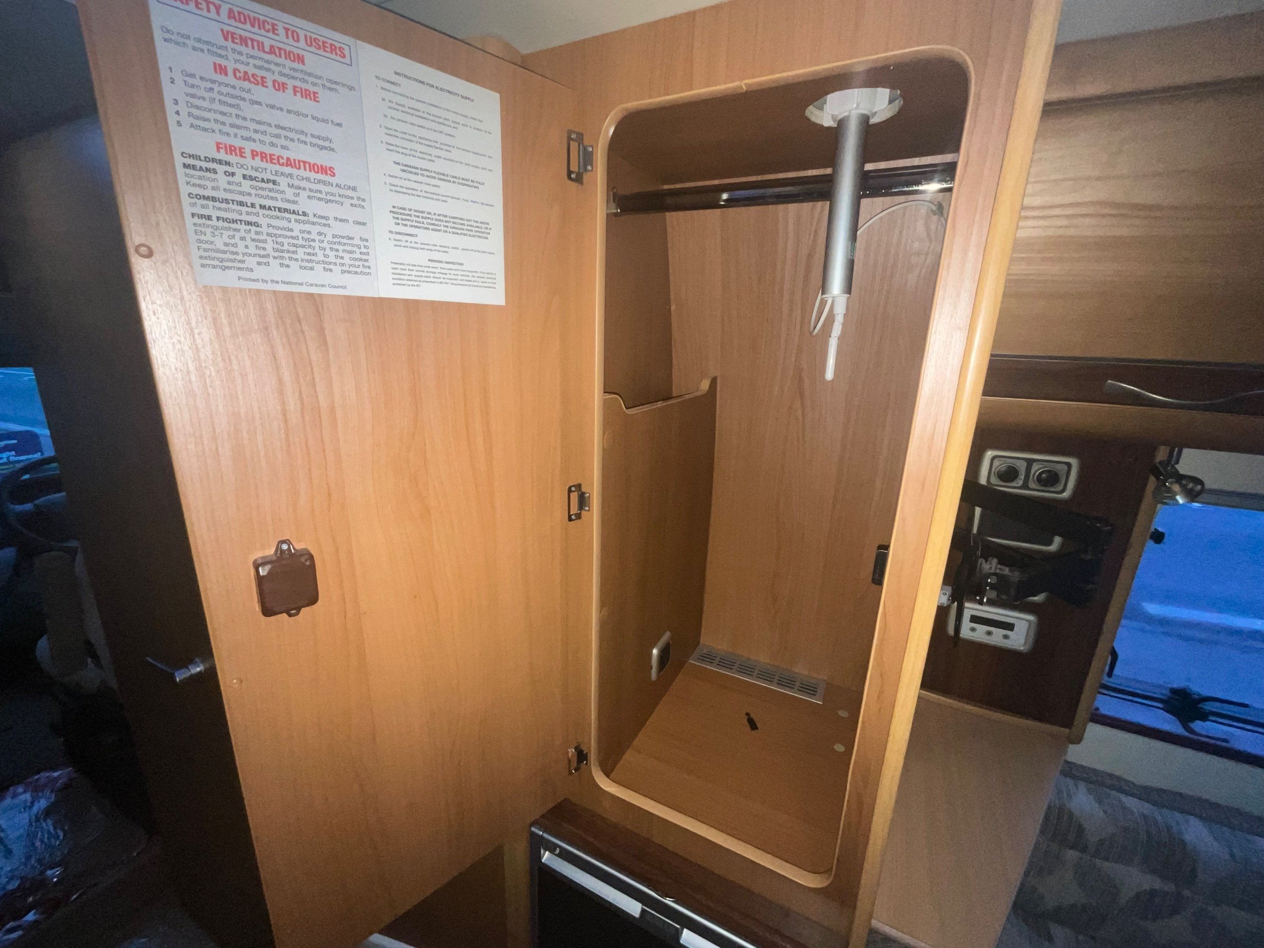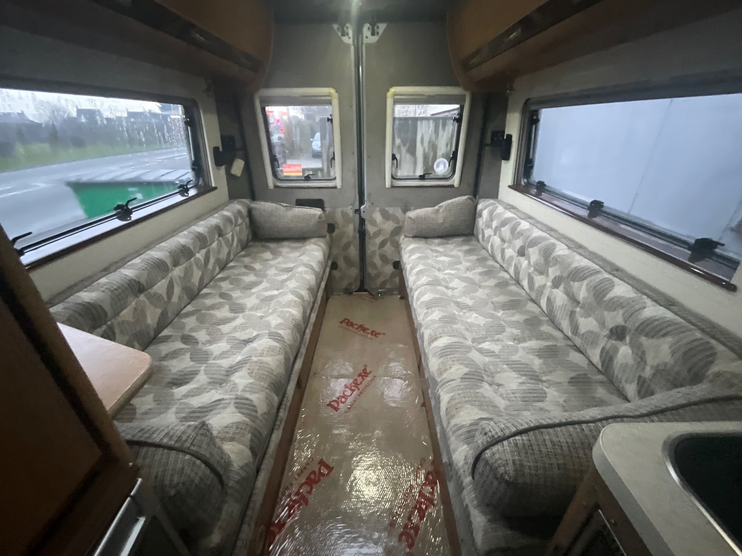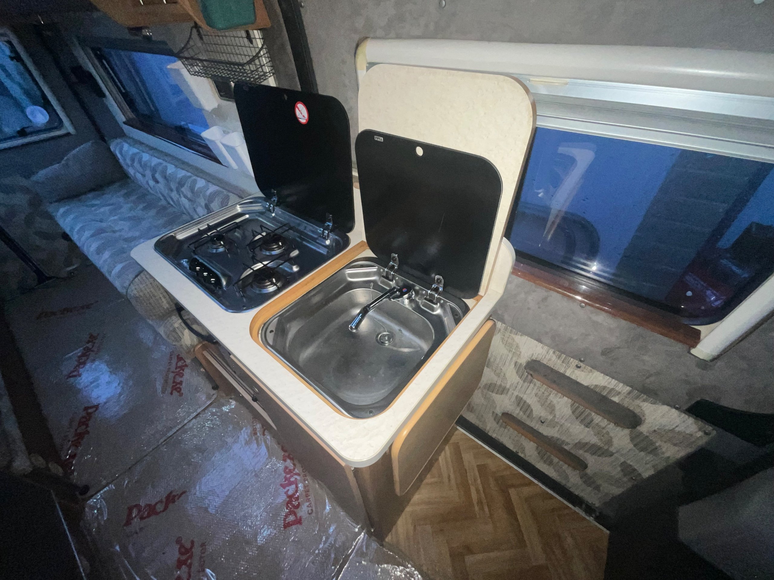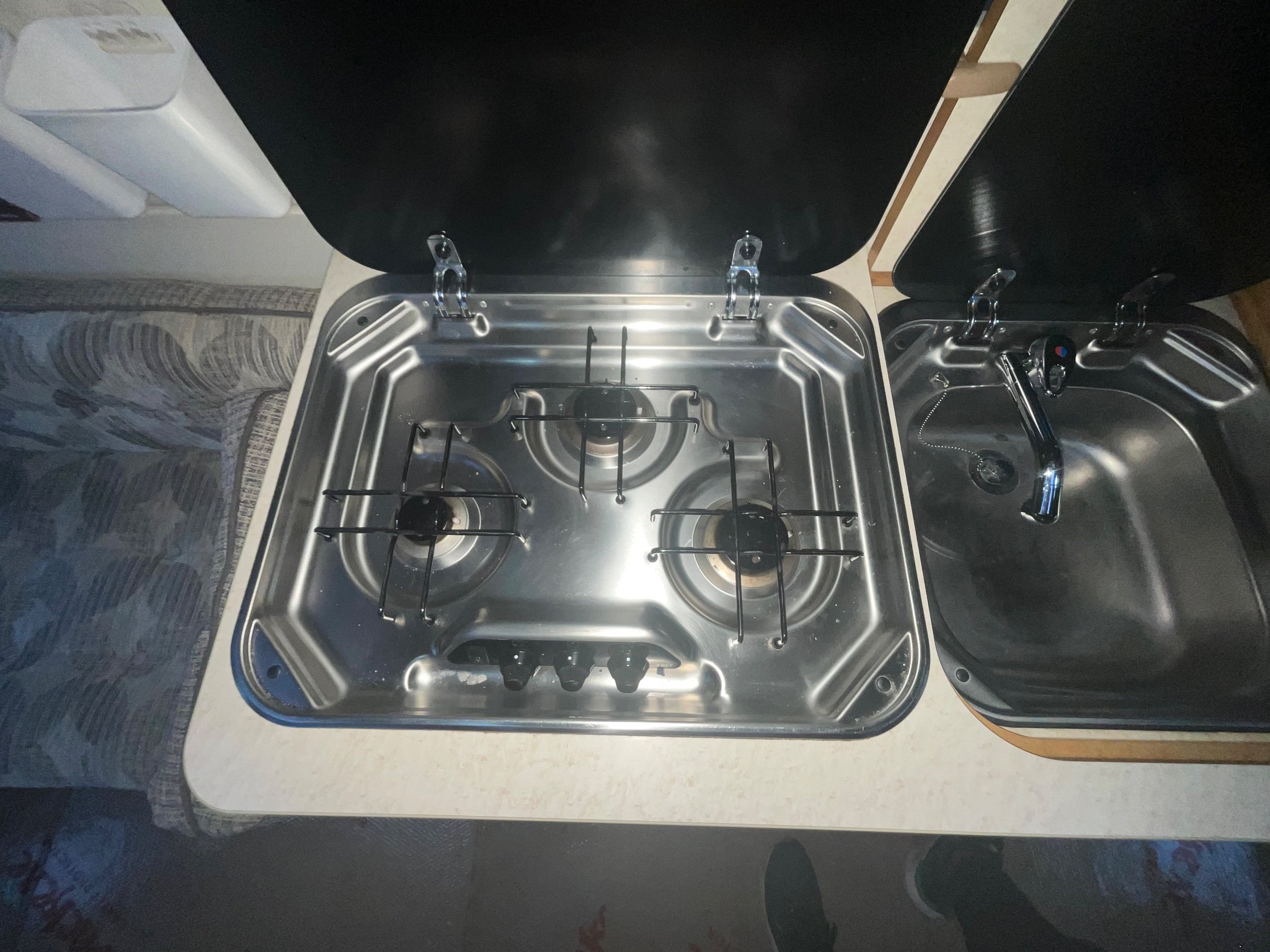 Inside there is all the comforts that you would expect, 3 Gas Hobs, Gas Grill and oven, 12 V Fridge with freezer compartment and a Sink. The bathroom is complete with basin, toilet and shower. Onboard there is Fresh and wastewater tanks, Gas / Electrical operated heating and hot water via the well renowned Whale heating/ hot water system. The electrical element only works when plugged in on 240V power.