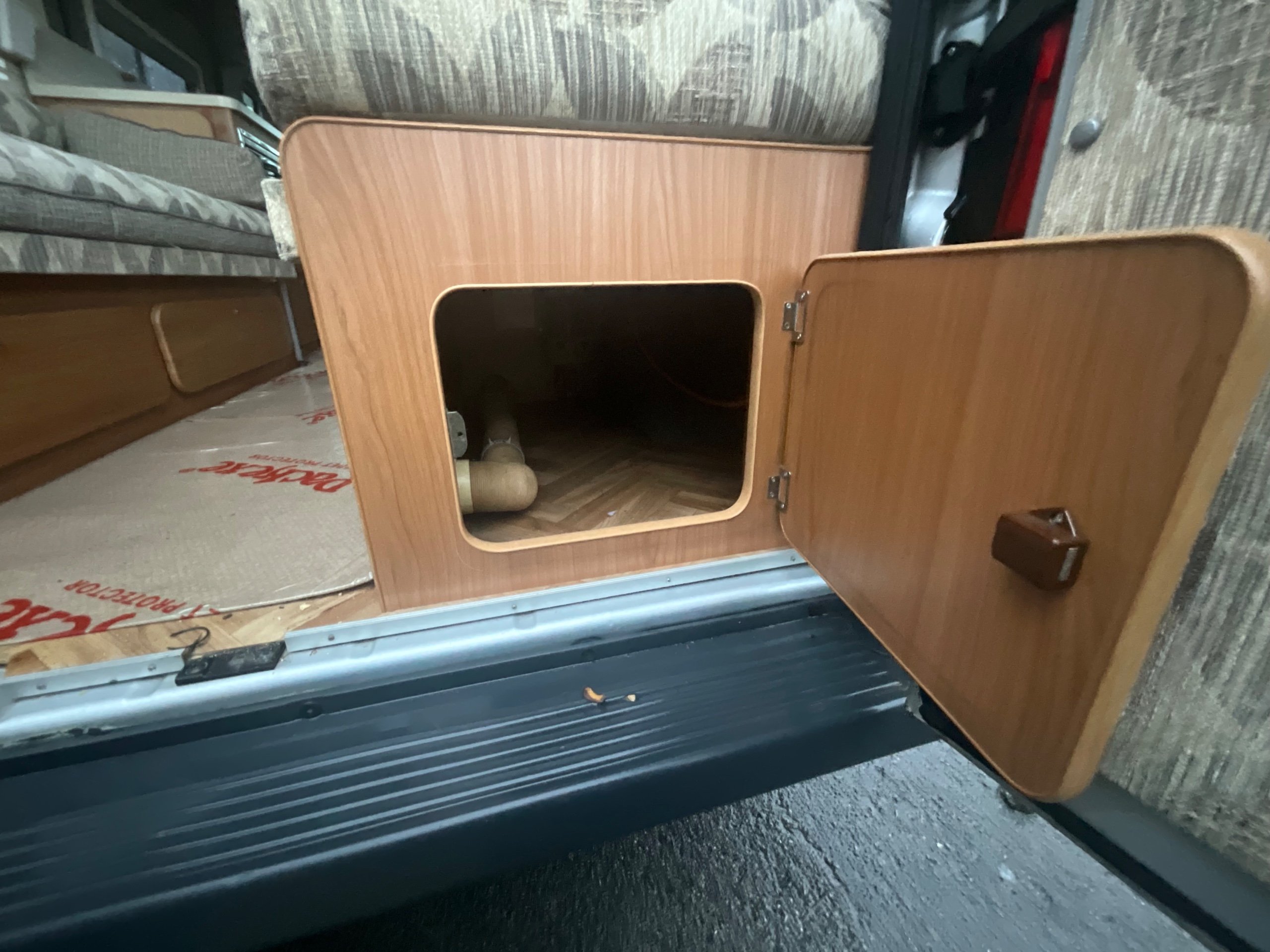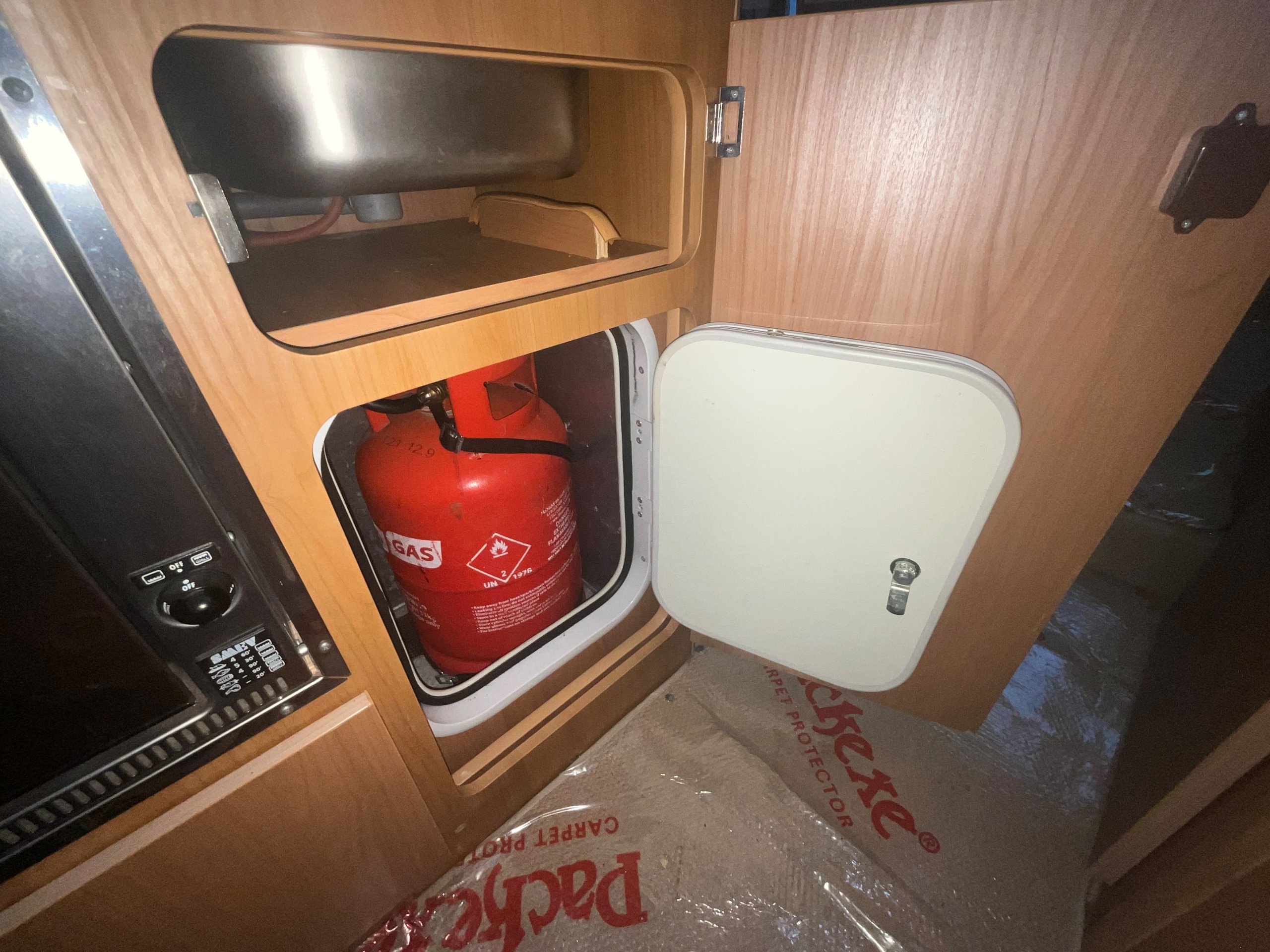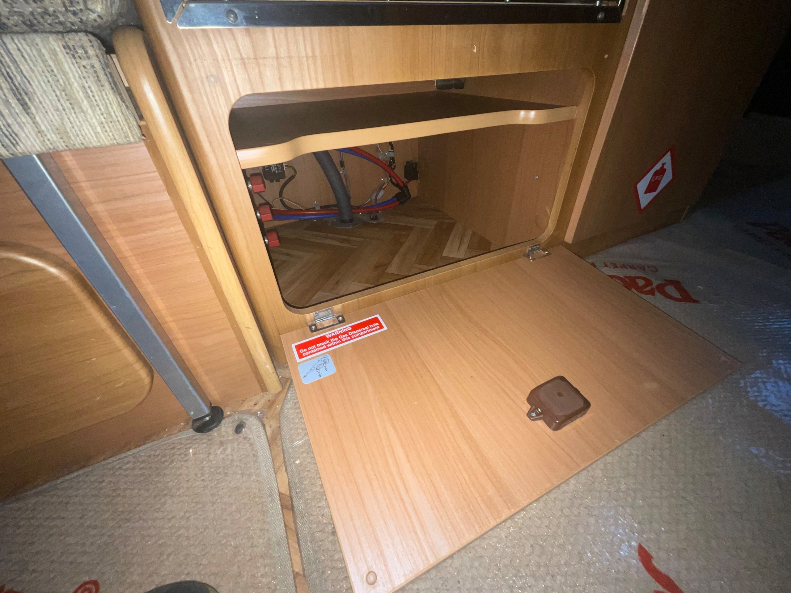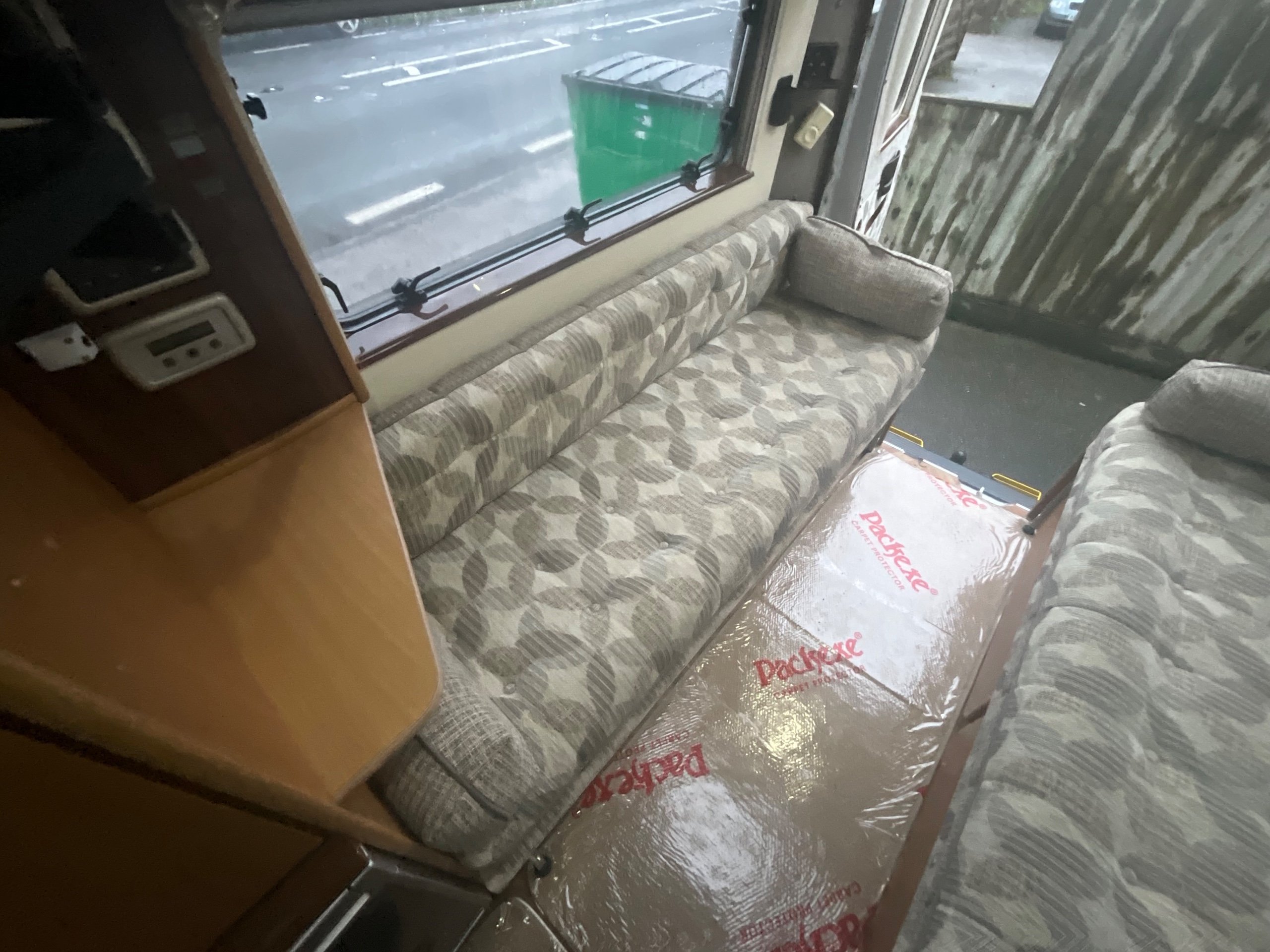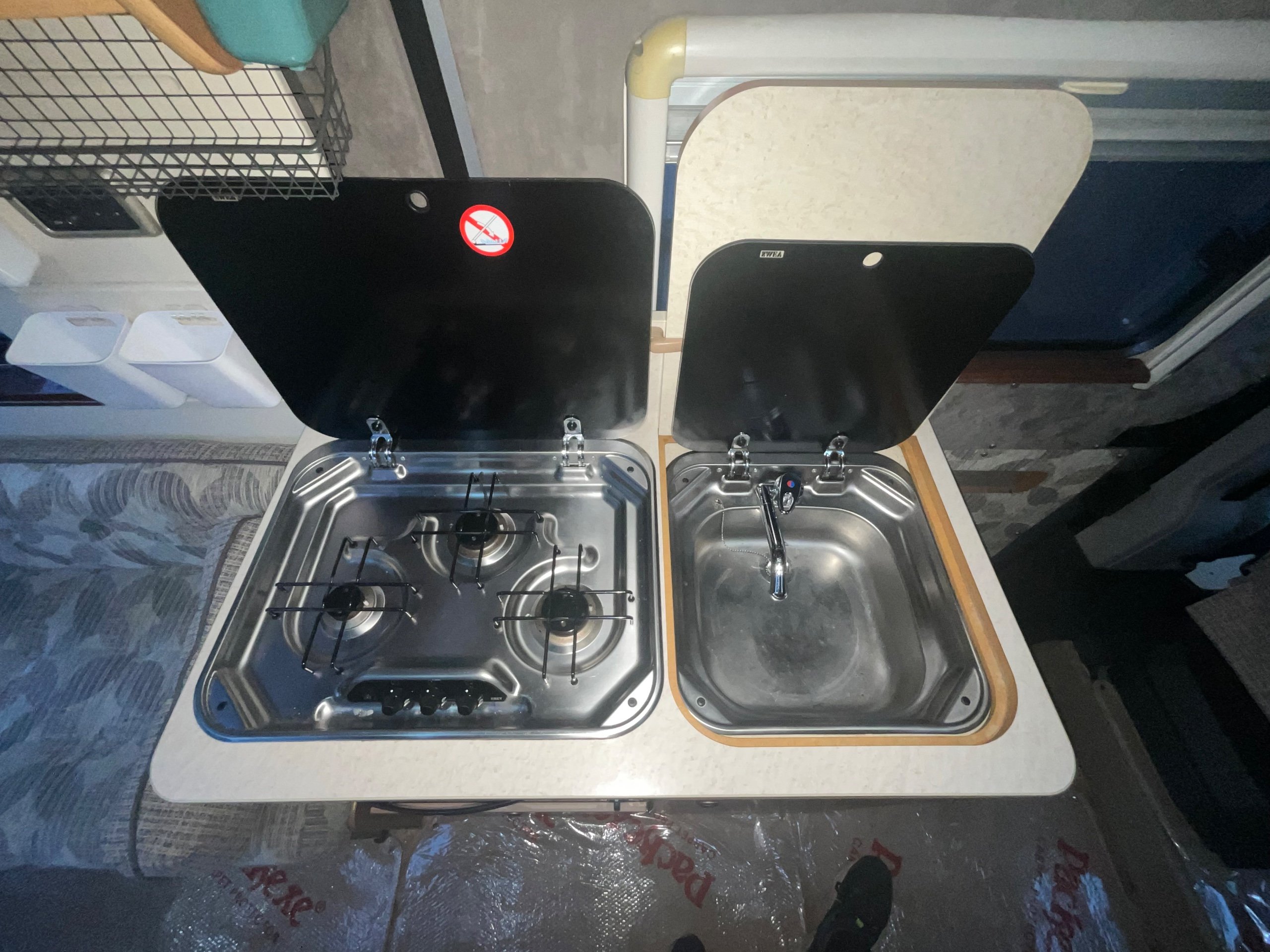 Inside there is all the comforts that you would expect, 3 Gas Hobs, Gas Grill and oven, 12 V Fridge with freezer compartment and a Sink. The bathroom is complete with basin, toilet and shower. Onboard there is Fresh and wastewater tanks, Gas / Electrical operated heating and hot water via the well renowned Whale heating/ hot water system. The electrical element only works when plugged in on 240V power.