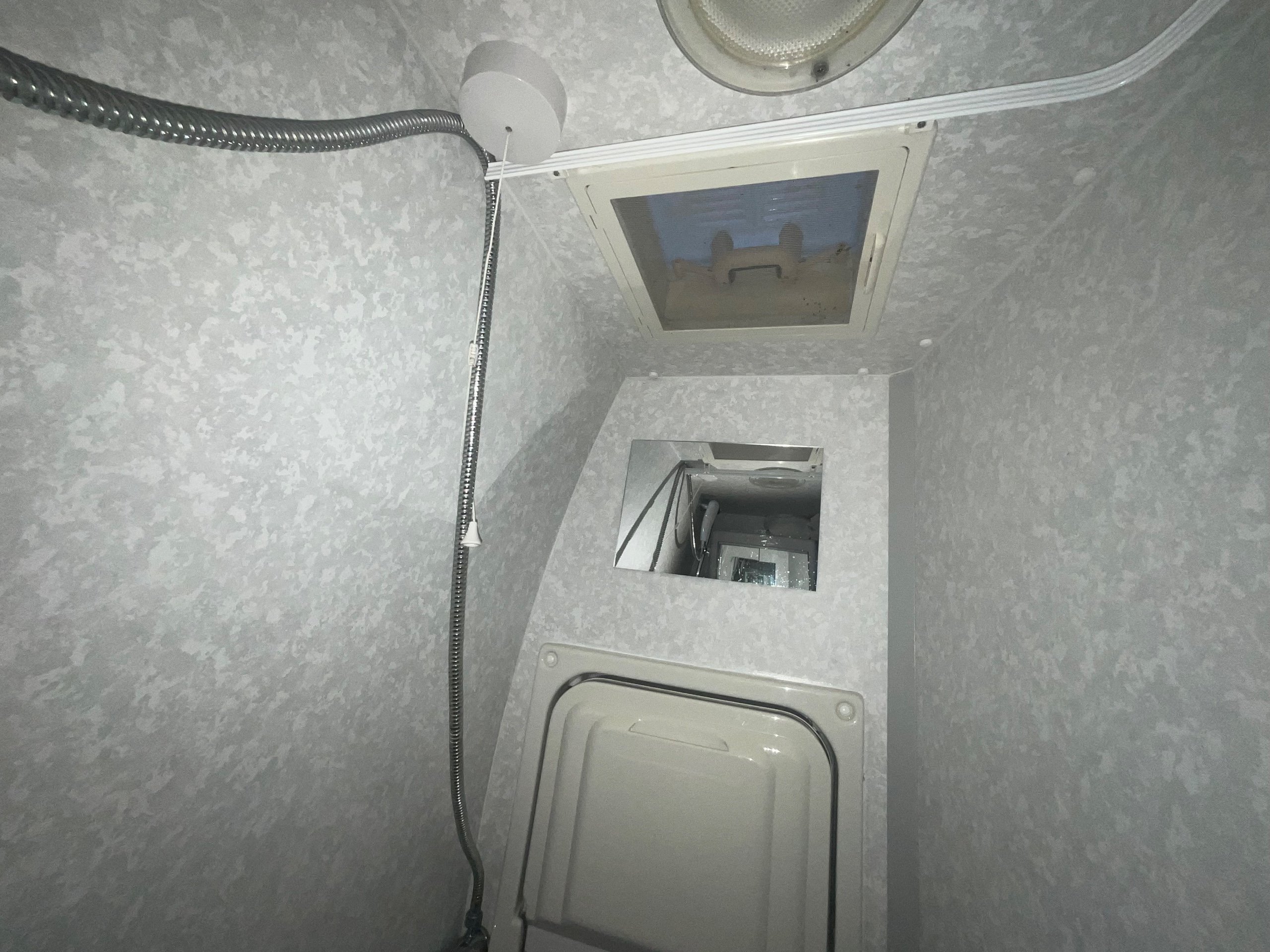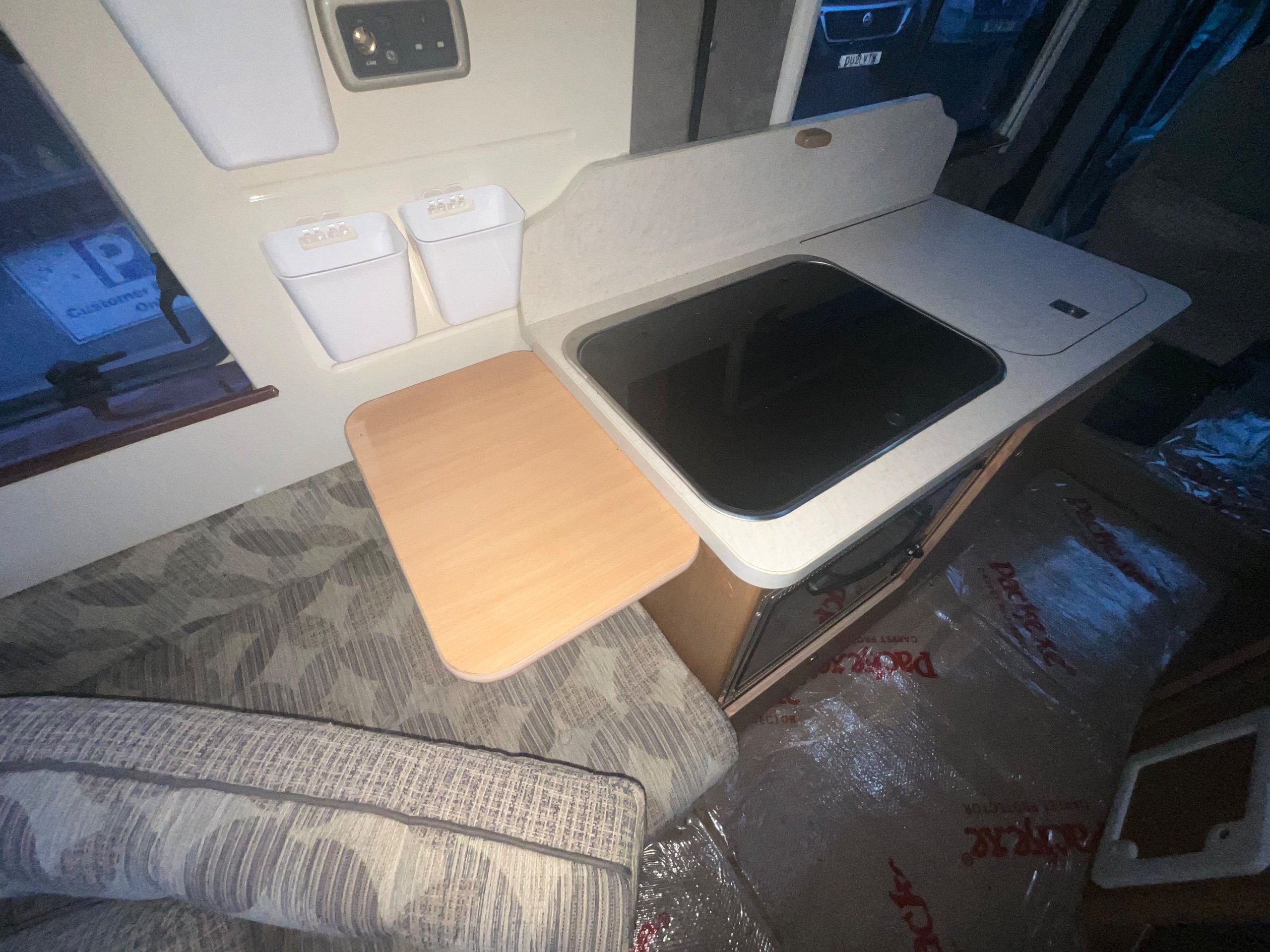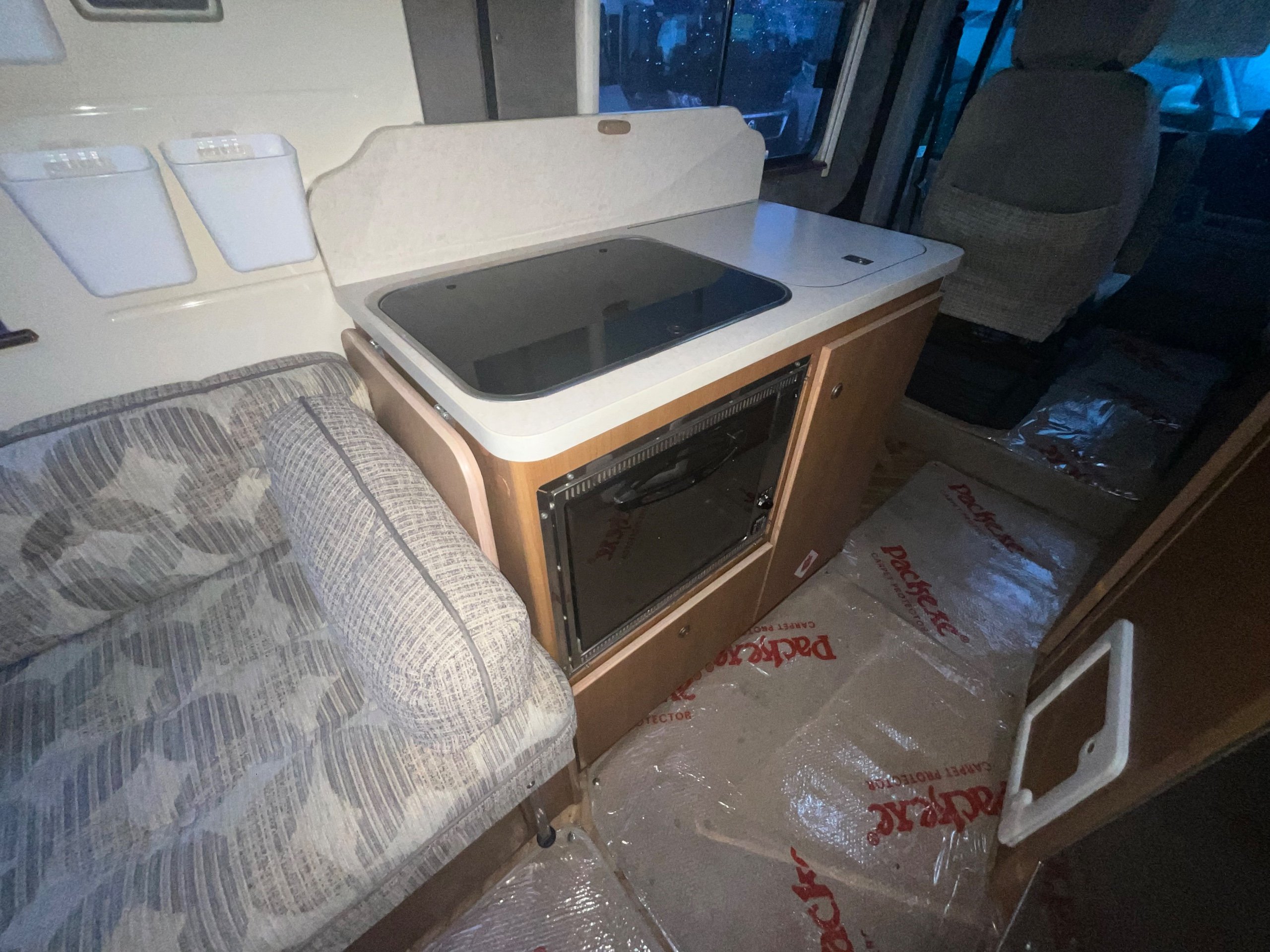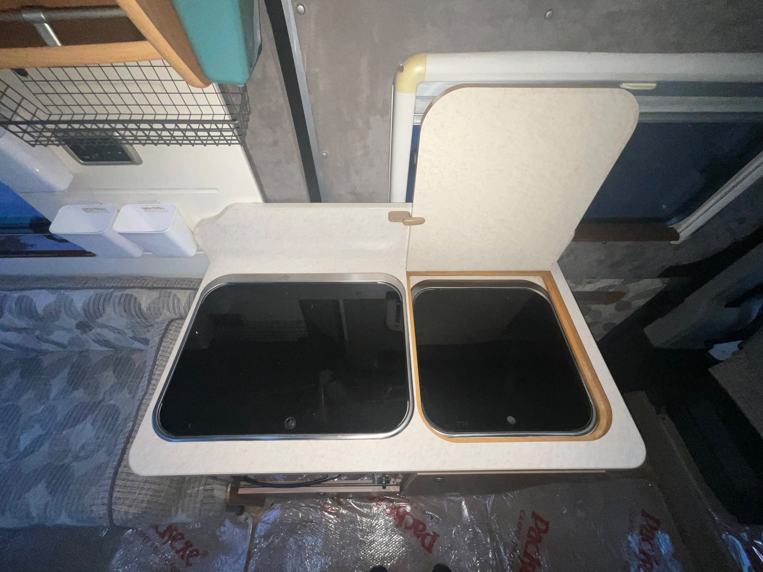 Inside there is all the comforts that you would expect, 3 Gas Hobs, Gas Grill and oven, 12 V Fridge with freezer compartment and a Sink. The bathroom is complete with basin, toilet and shower. Onboard there is Fresh and wastewater tanks, Gas / Electrical operated heating and hot water via the well renowned Whale heating/ hot water system. The electrical element only works when plugged in on 240V power.