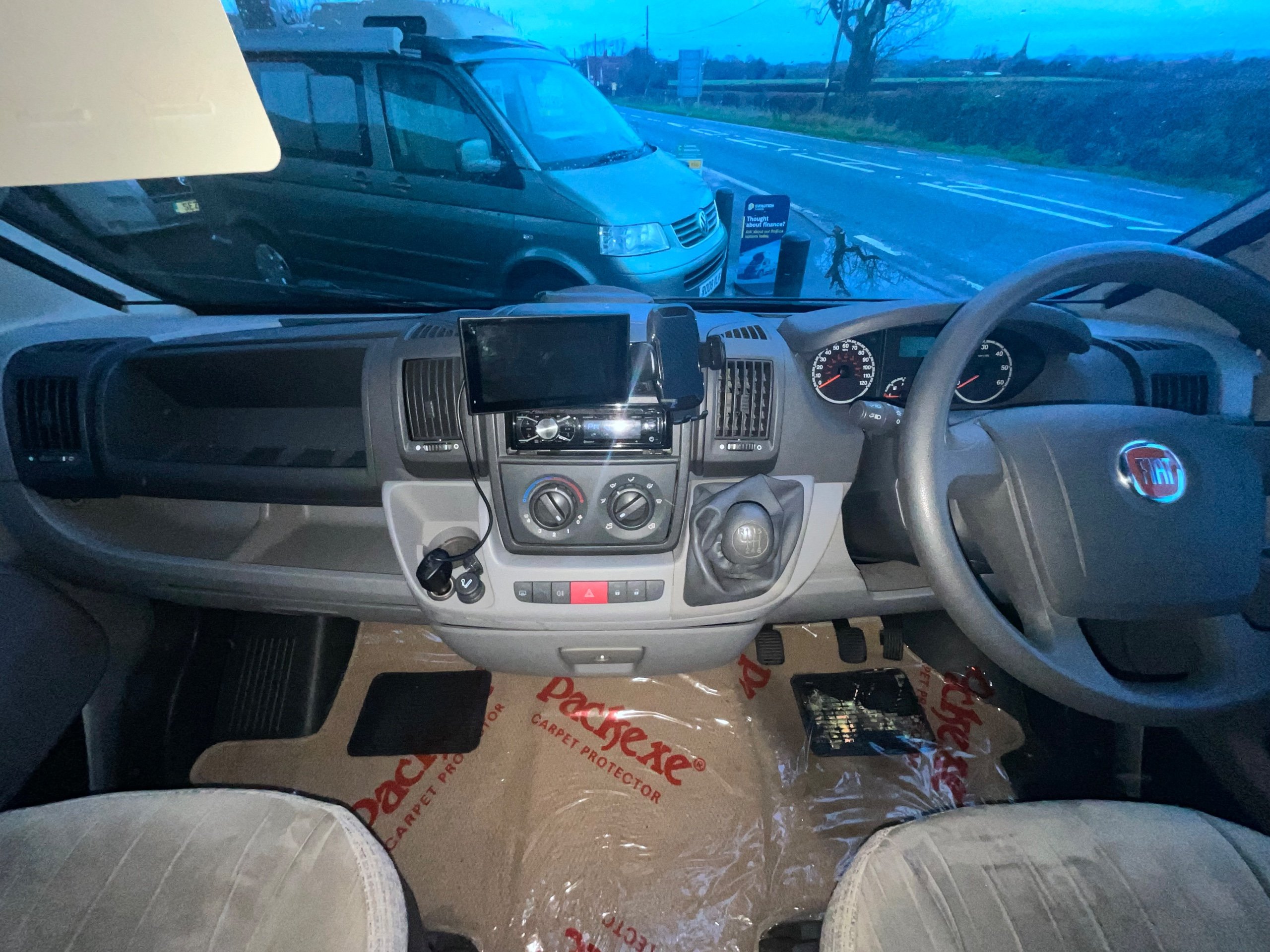 The additional extras fitted to the Autocruise Rhythm are an Awning, 6 speed gear box, central locking, tow bar with steps & electrics, TV aerial, dual solar panels, cab build in cab blind, upgraded radio system, reversing camera and a built in motorhome satnav.