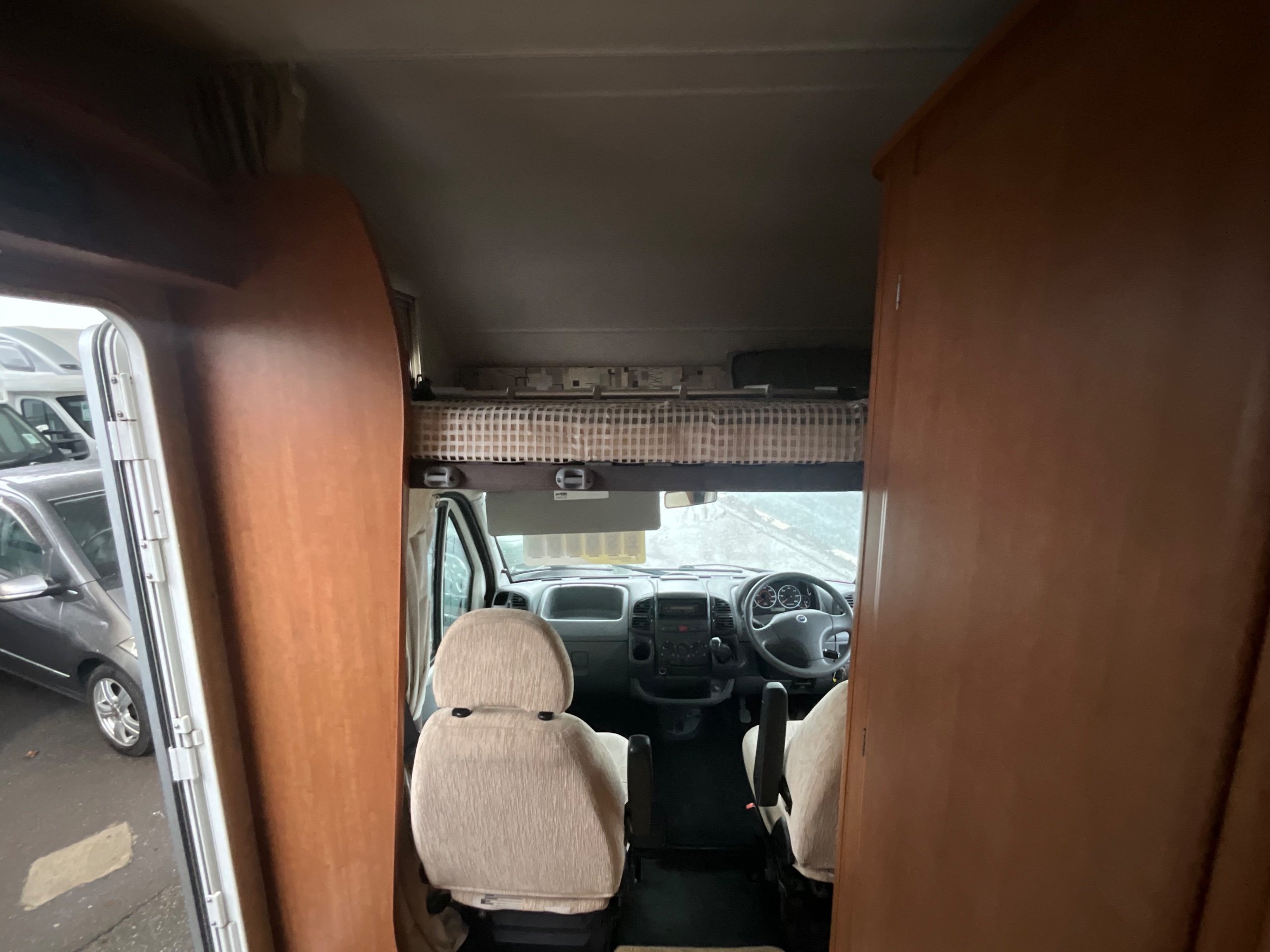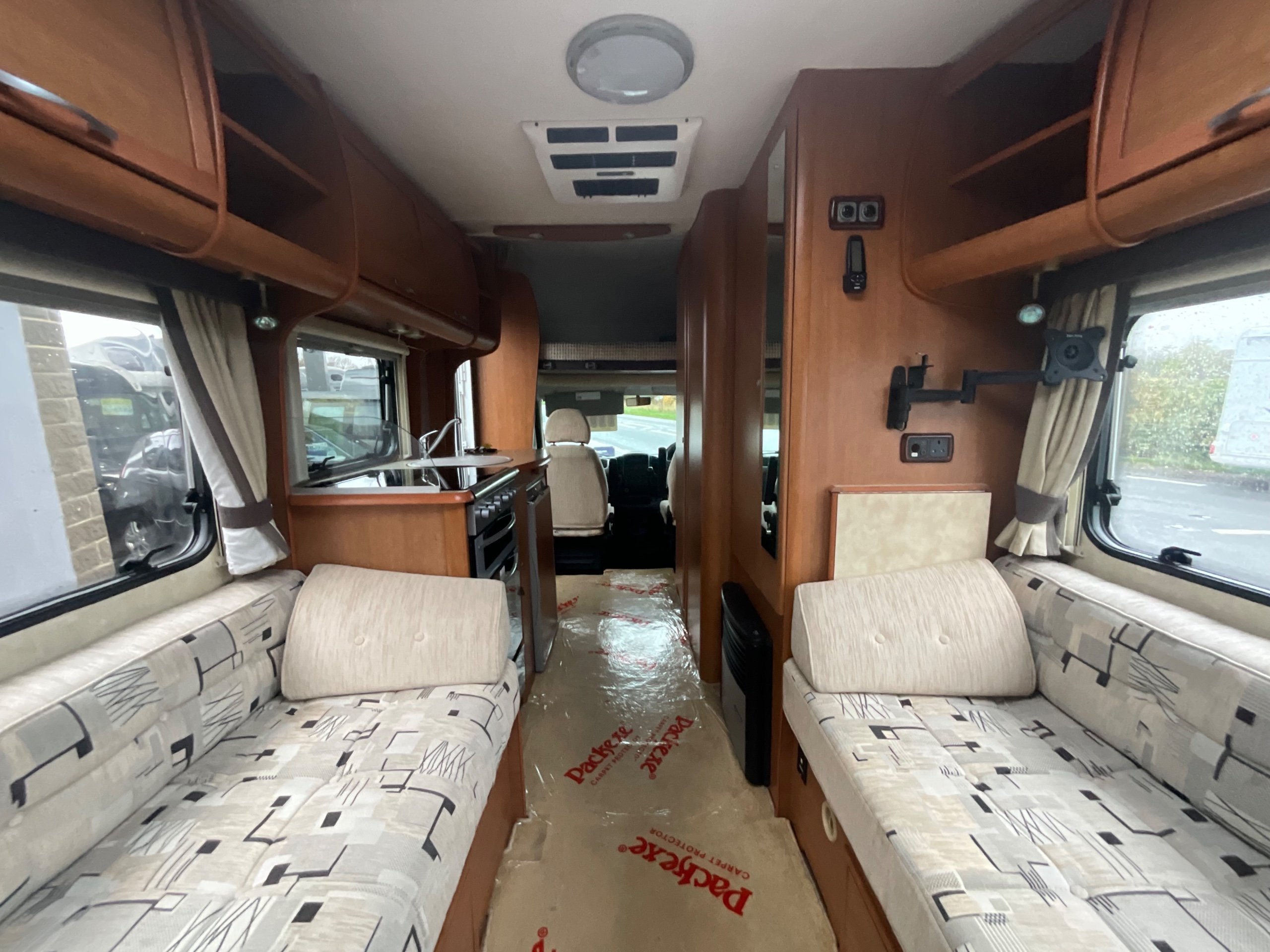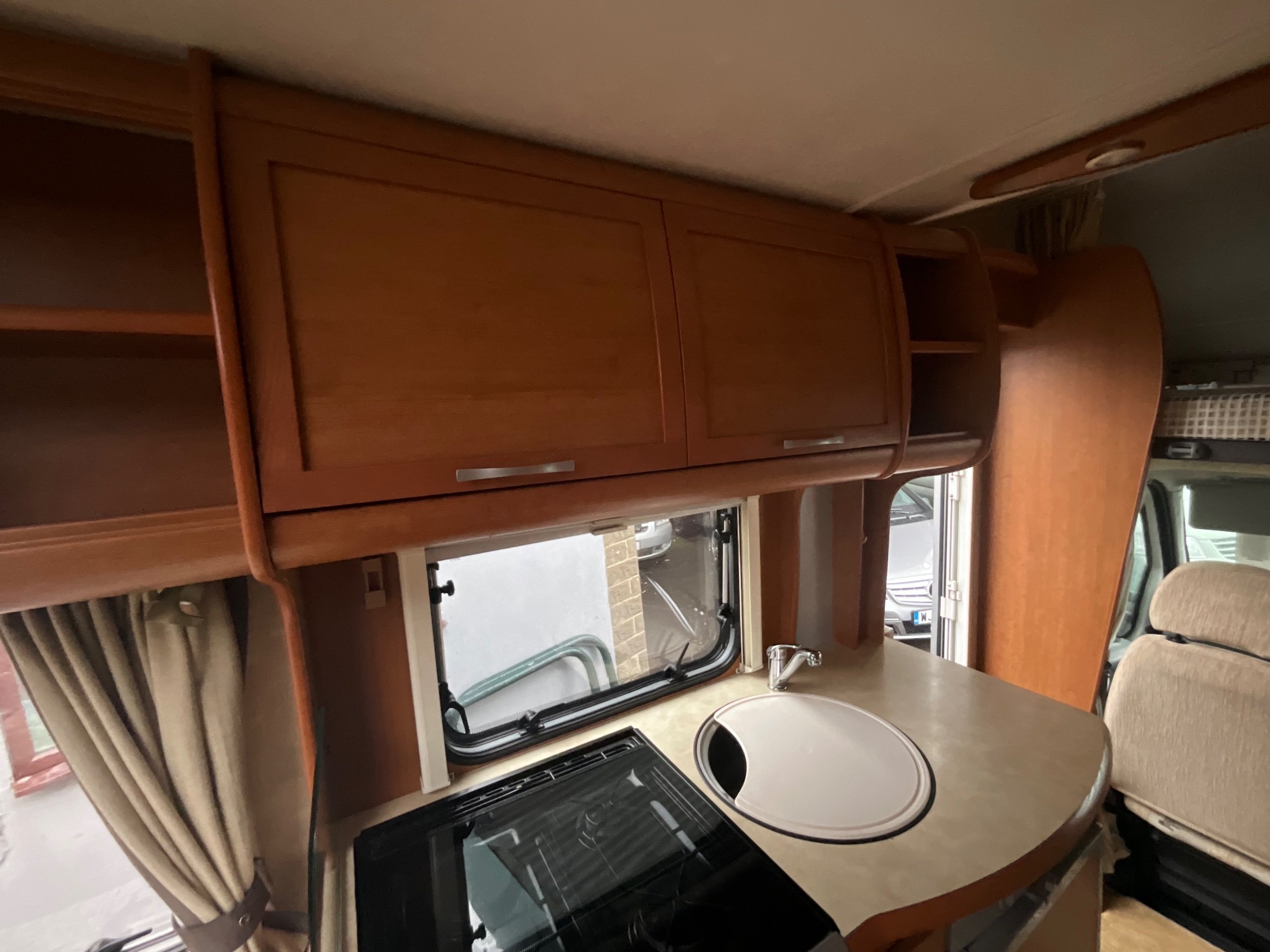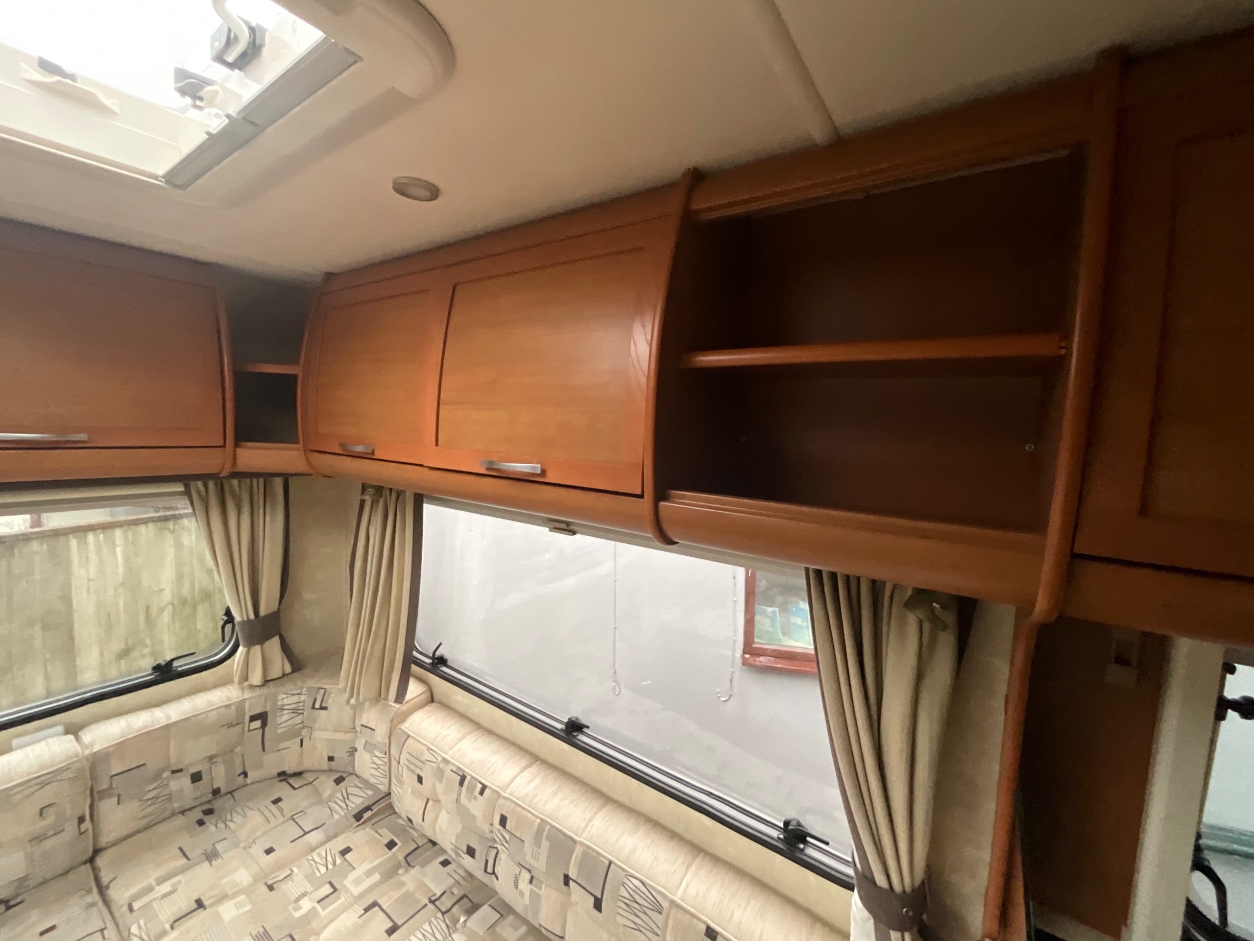 Bessacarr E465 is a 4 Berth motorhome which has a large U-shaped lounge at the rear. With an extra large Bathroom complete with shower, hand basin and toilet situated in the middle of the motorhome. Opposite the bathroom in the motorhome is the fully equipped motorhome kitchen. Then towards the front you have the large overhead cab with a double bed (which can fit two adults easily) offering plenty of space as well as a good storage area. This bed can be raised up on pistons to give further head room in the cab area.