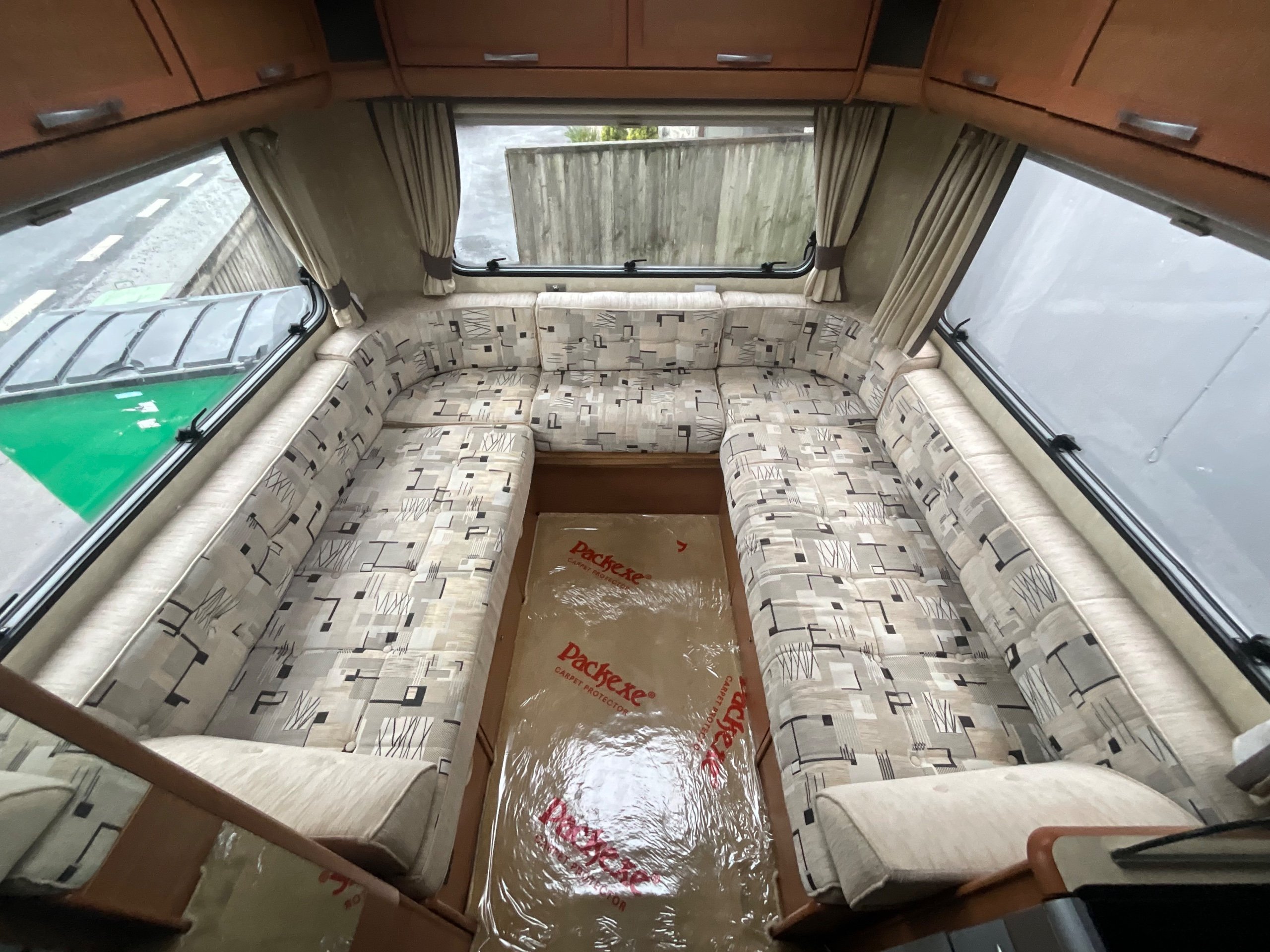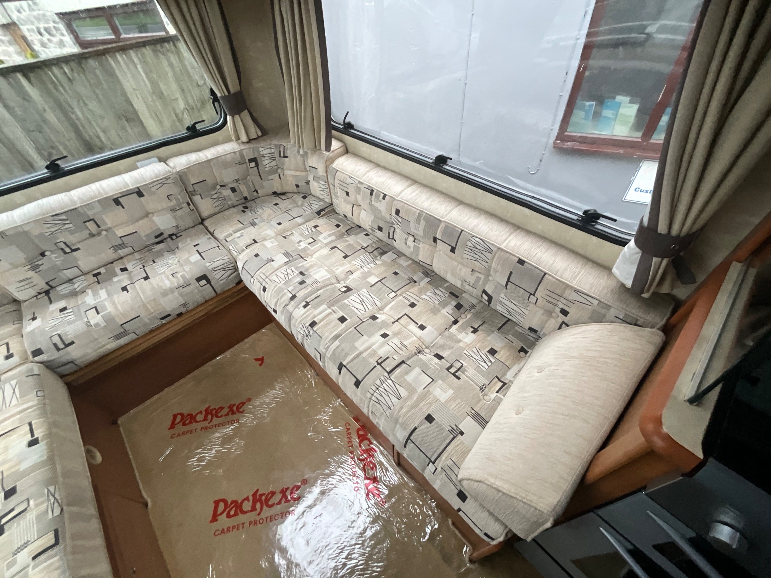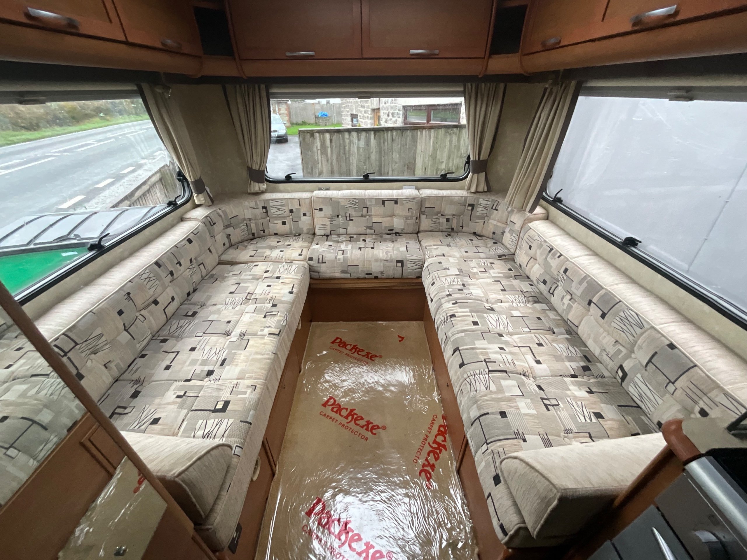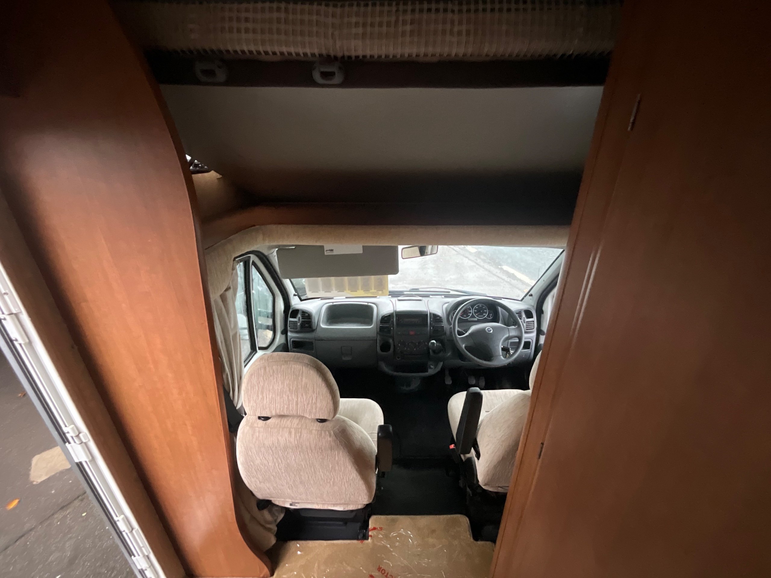 Bessacarr E465 is a 4 Berth motorhome which has a large U-shaped lounge at the rear. With an extra large Bathroom complete with shower, hand basin and toilet situated in the middle of the motorhome. Opposite the bathroom in the motorhome is the fully equipped motorhome kitchen. Then towards the front you have the large overhead cab with a double bed (which can fit two adults easily) offering plenty of space as well as a good storage area. This bed can be raised up on pistons to give further head room in the cab area.