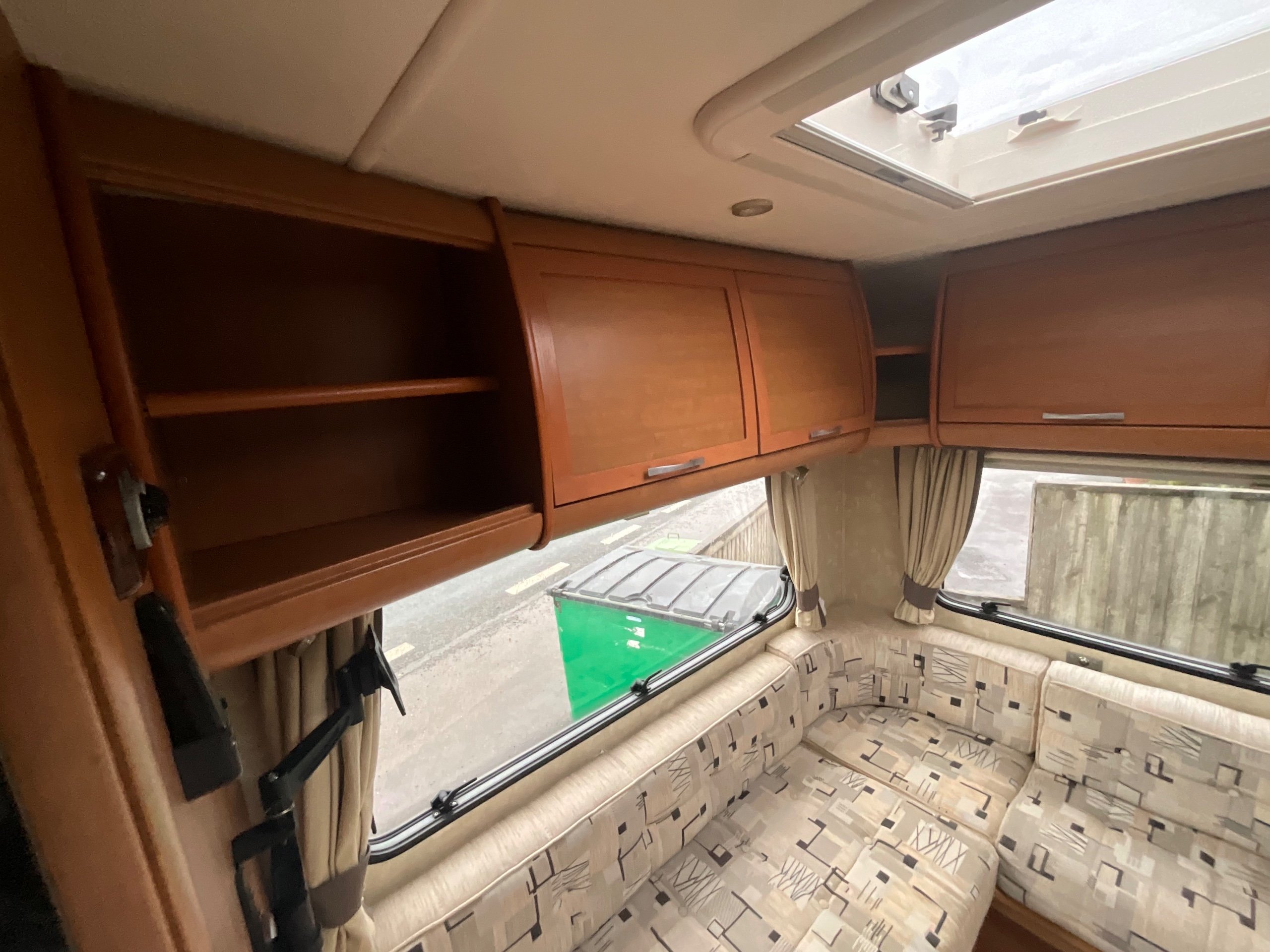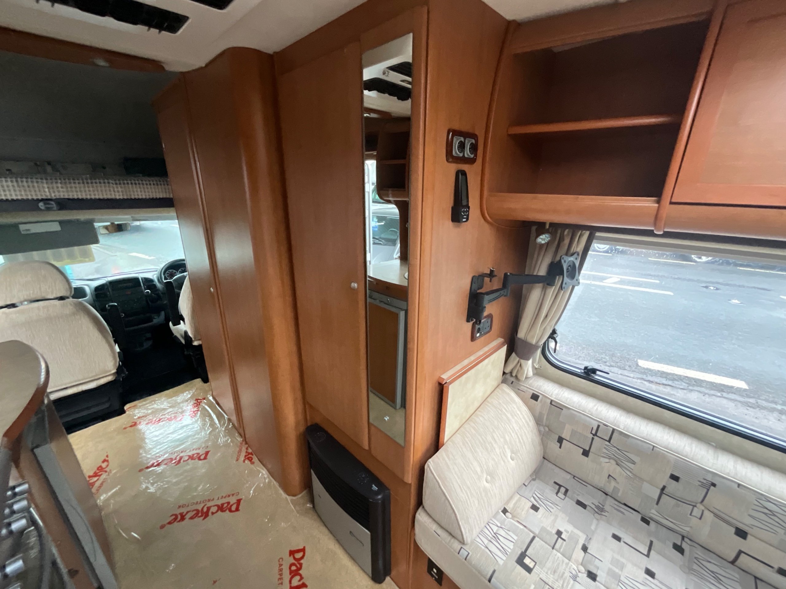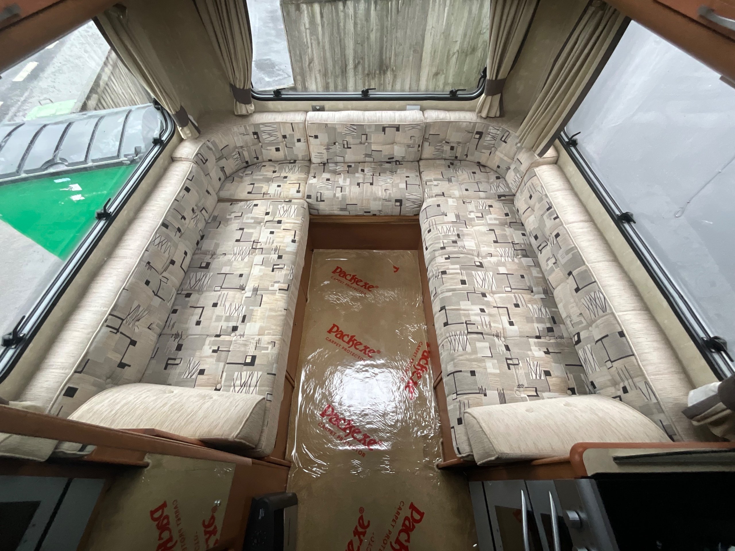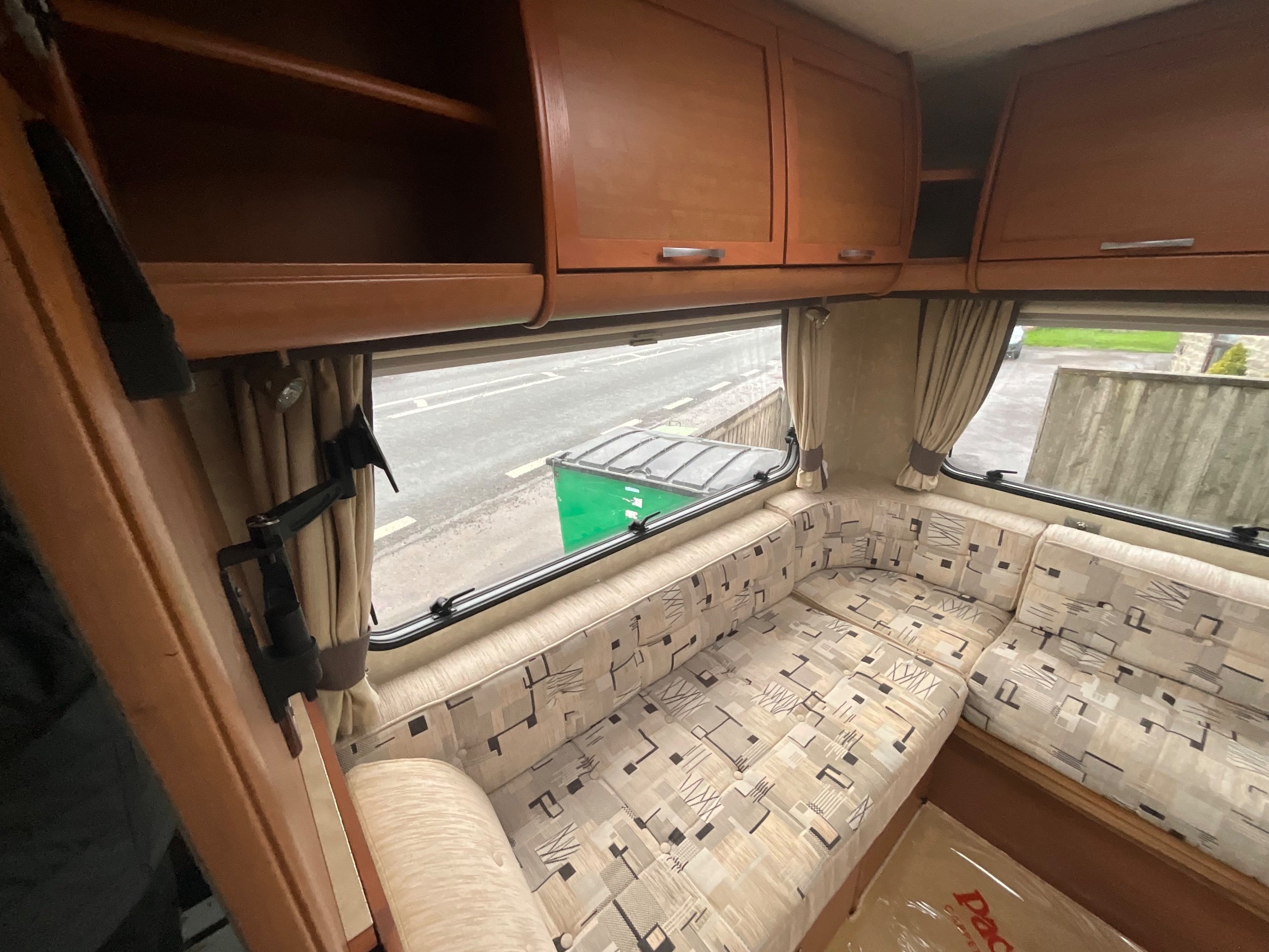 Bessacarr E465 is a 4 Berth motorhome which has a large U-shaped lounge at the rear. With an extra large Bathroom complete with shower, hand basin and toilet situated in the middle of the motorhome. Opposite the bathroom in the motorhome is the fully equipped motorhome kitchen. Then towards the front you have the large overhead cab with a double bed (which can fit two adults easily) offering plenty of space as well as a good storage area. This bed can be raised up on pistons to give further head room in the cab area.
