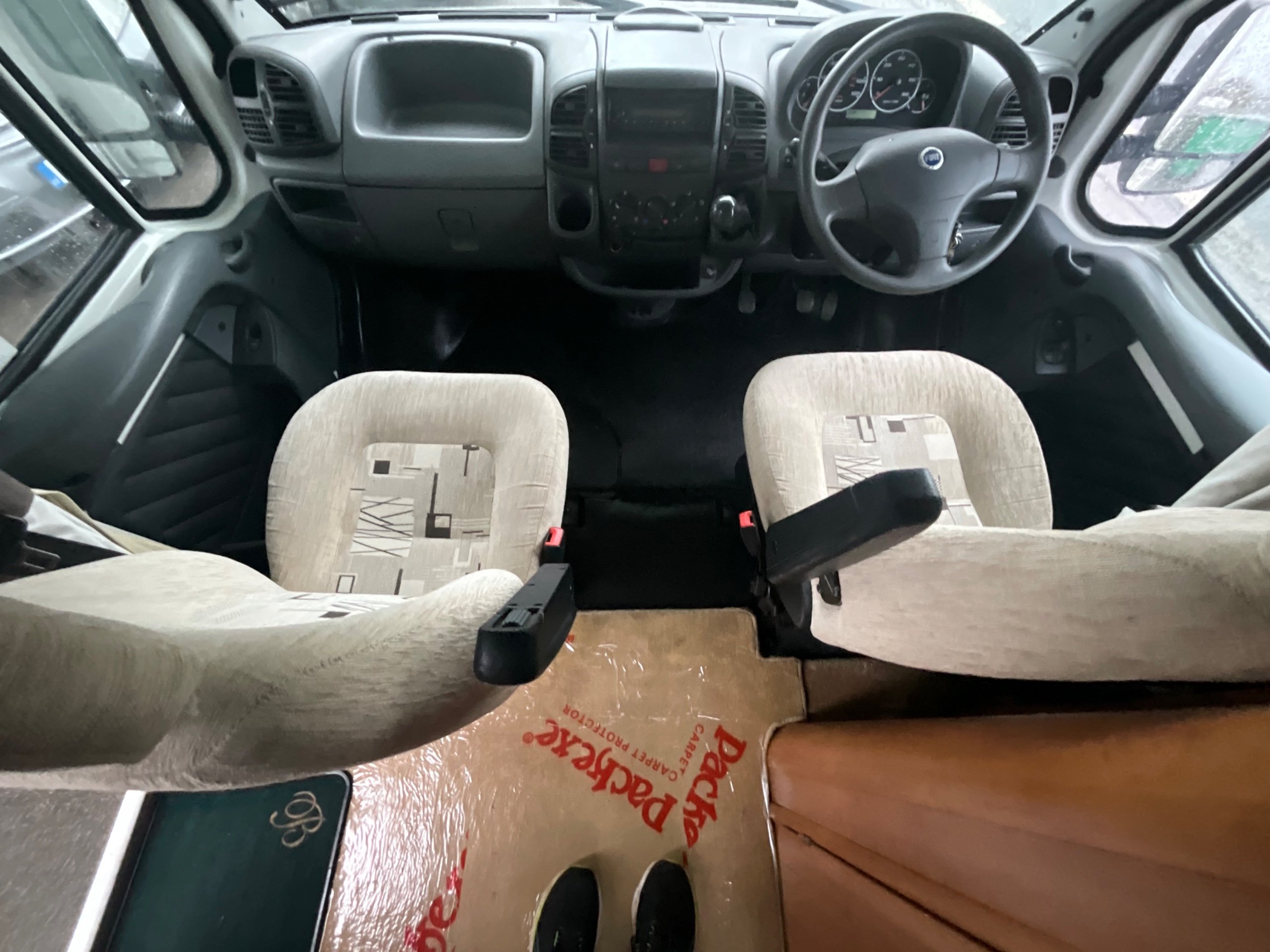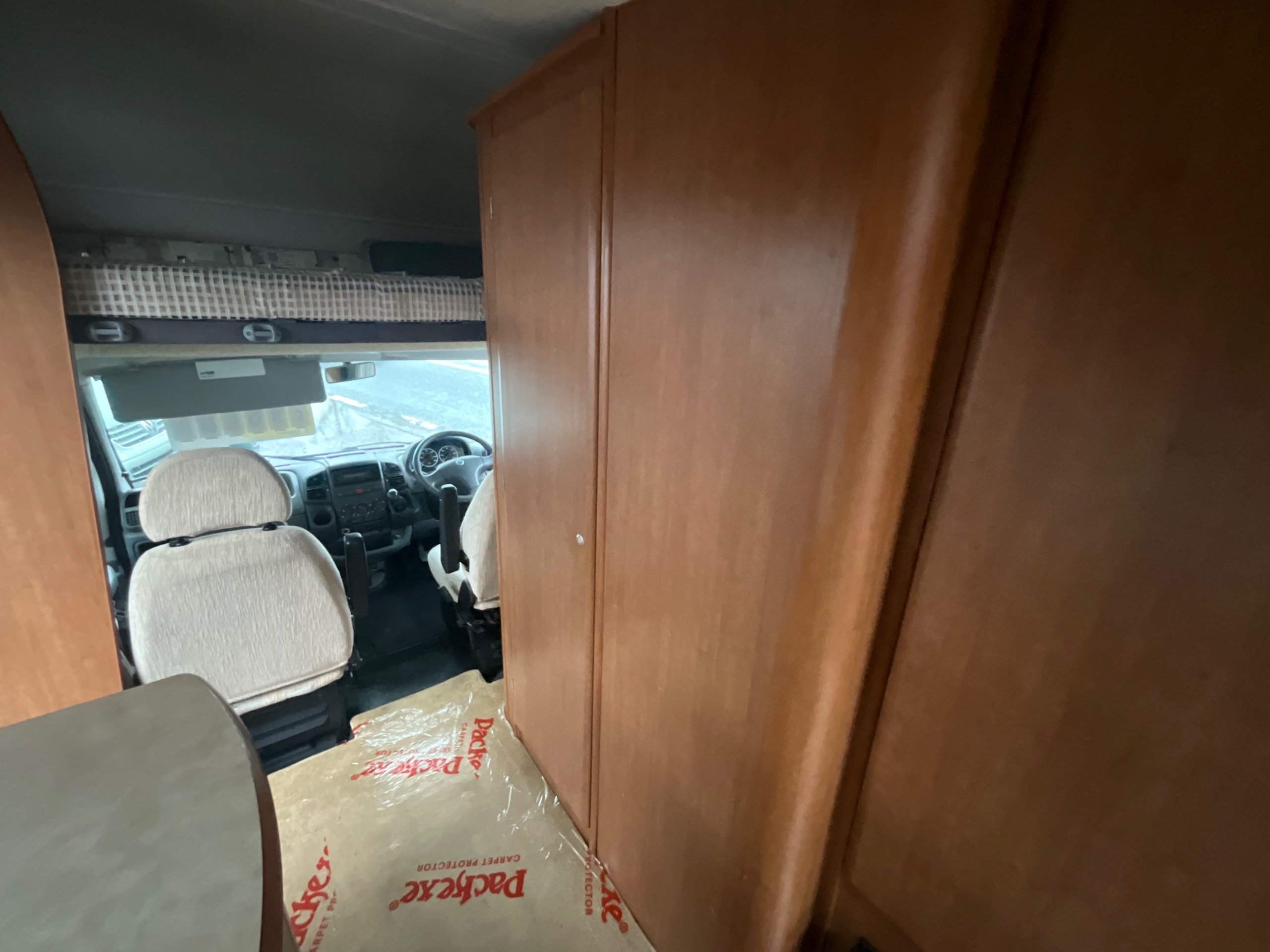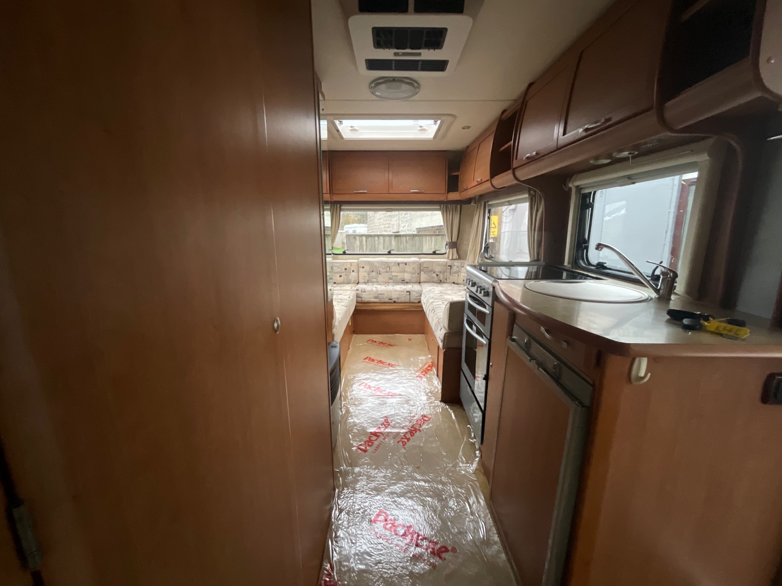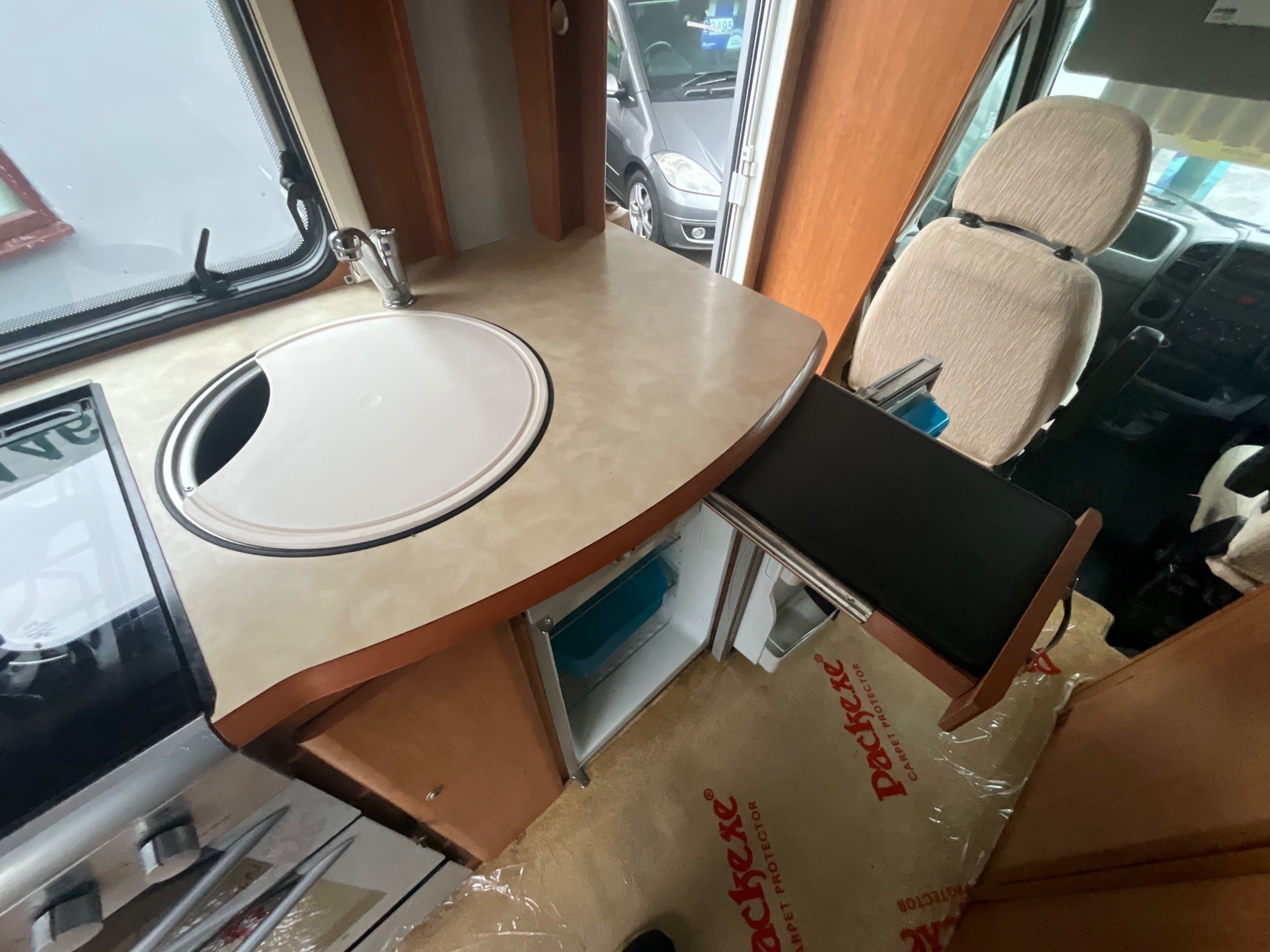 Bessacarr E465 is a 4 Berth motorhome which has a large U-shaped lounge at the rear. With an extra large Bathroom complete with shower, hand basin and toilet situated in the middle of the motorhome. Opposite the bathroom in the motorhome is the fully equipped motorhome kitchen. Then towards the front you have the large overhead cab with a double bed (which can fit two adults easily) offering plenty of space as well as a good storage area. This bed can be raised up on pistons to give further head room in the cab area.