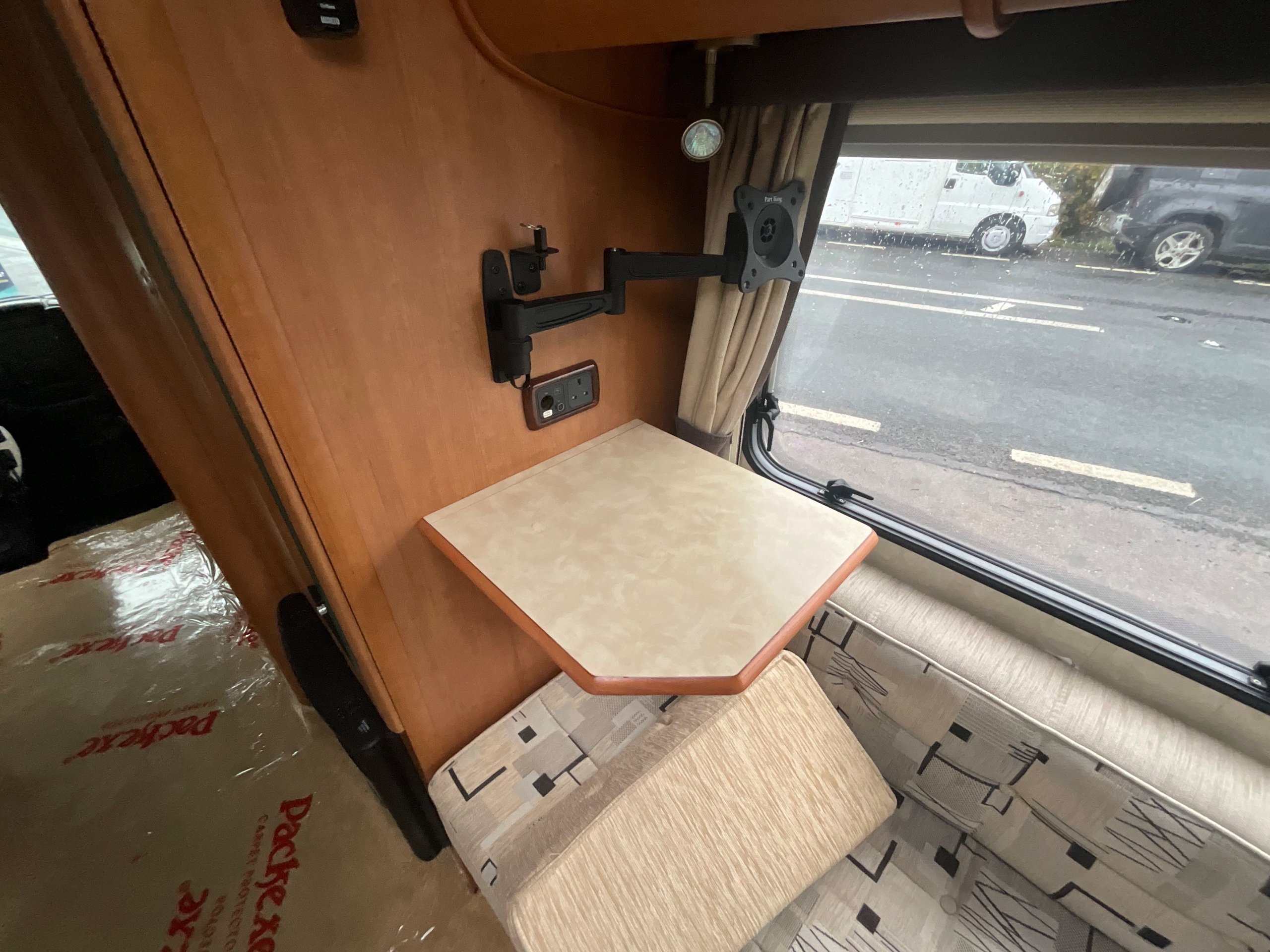 The additional extras fitted are an Awning,TV bracket, TV aerial, cobra alarm system, rear air conditioning unit (240V), 12 V inverter and a Door lock handle on the habitation door.