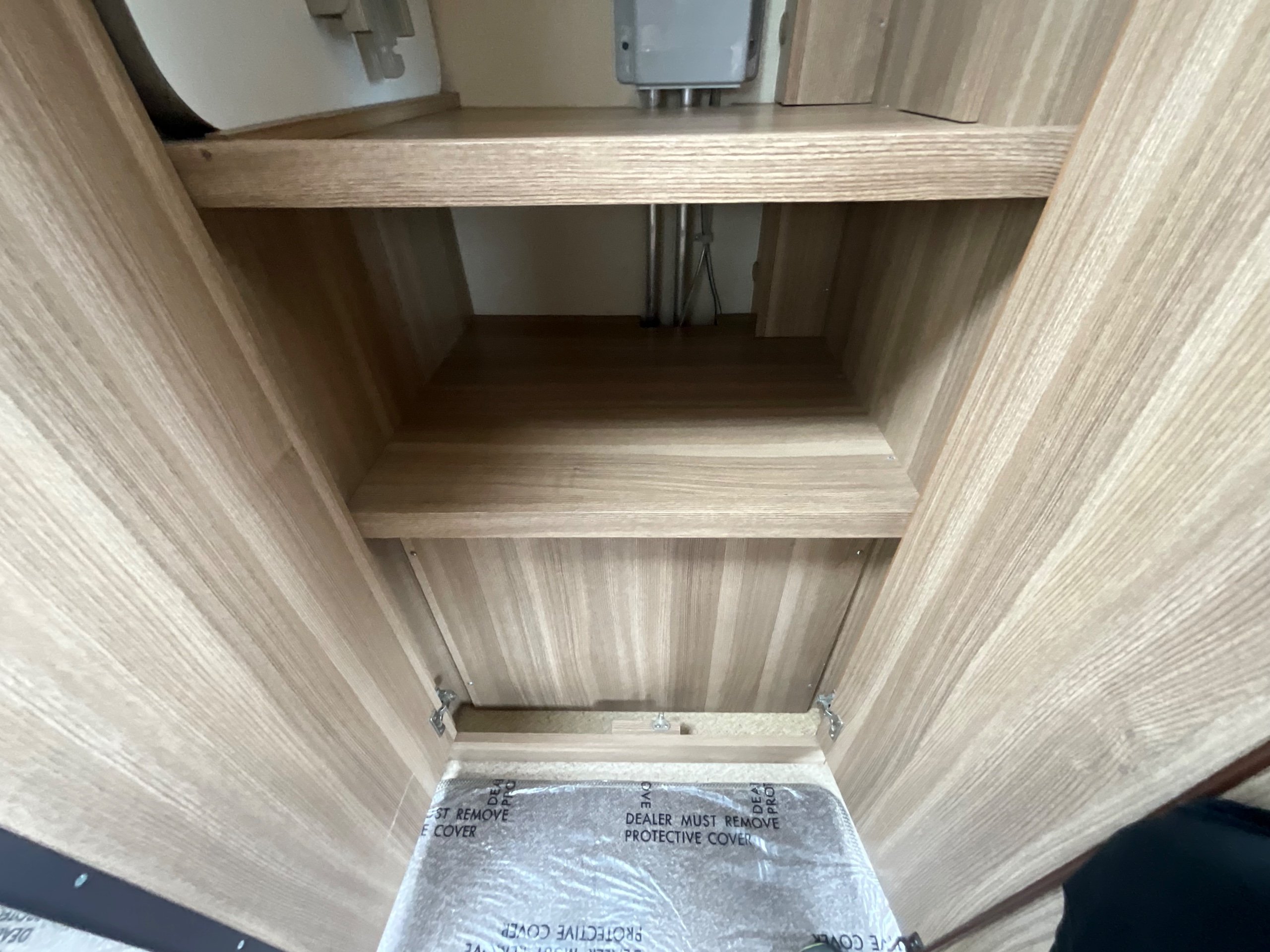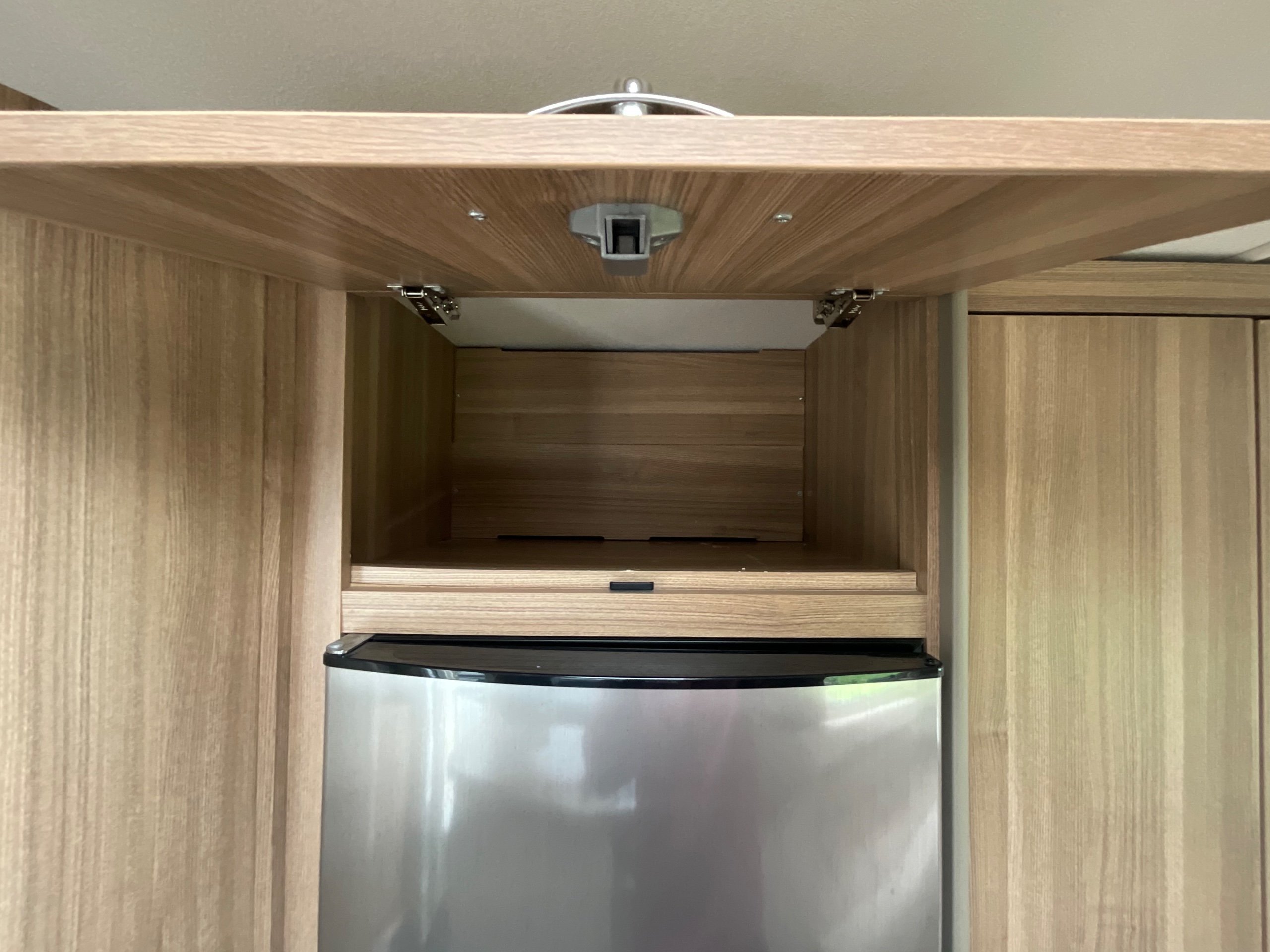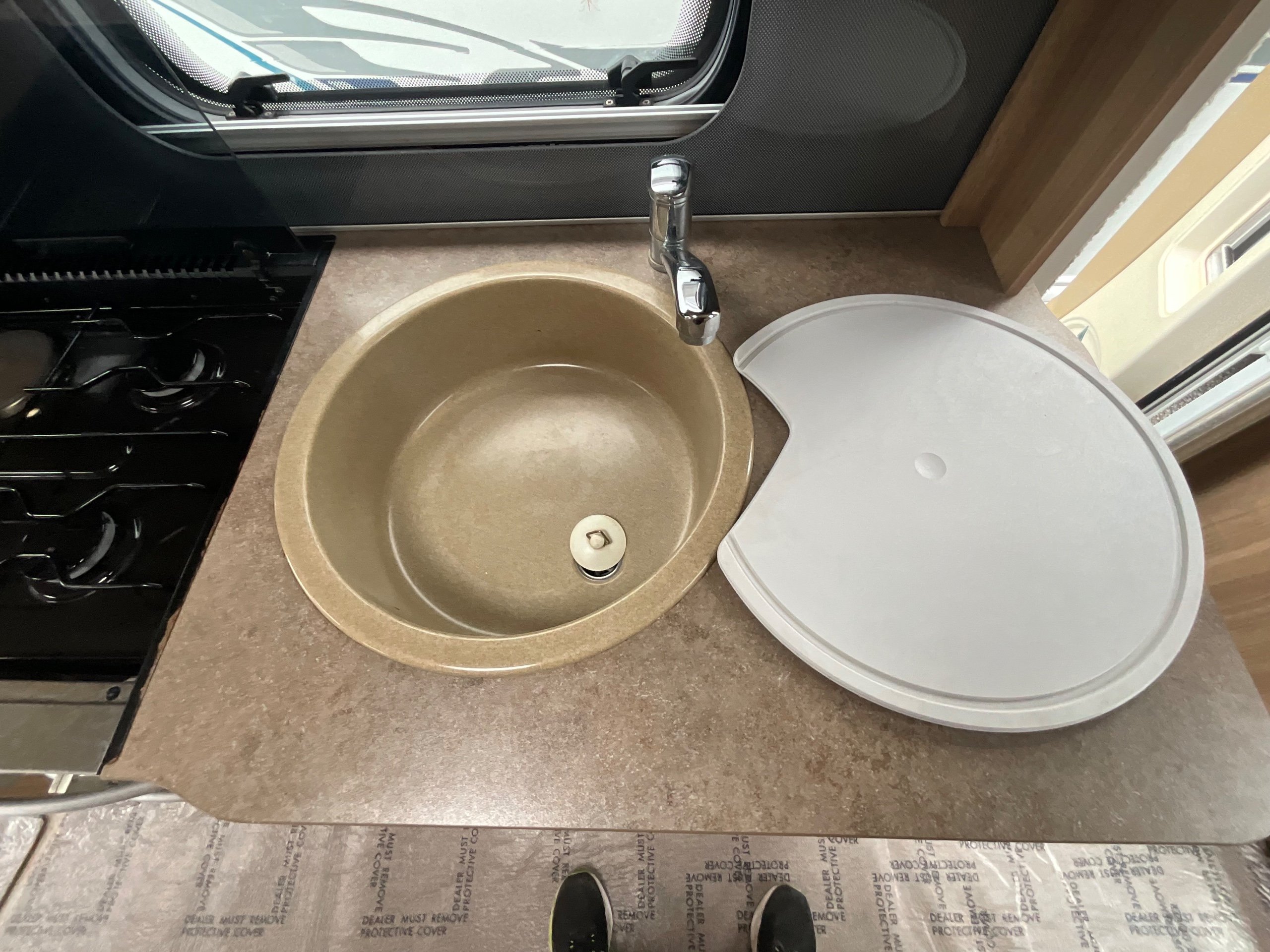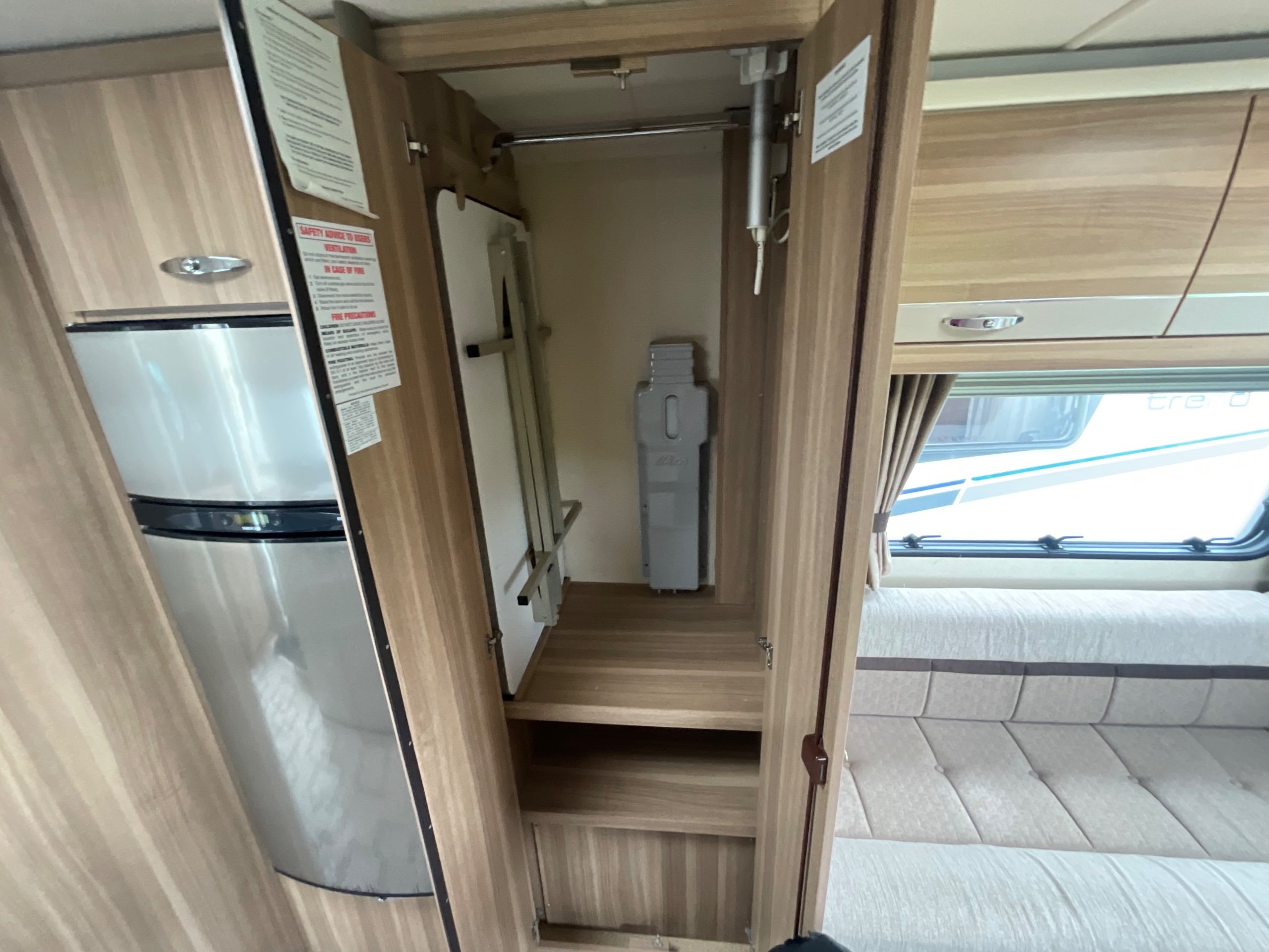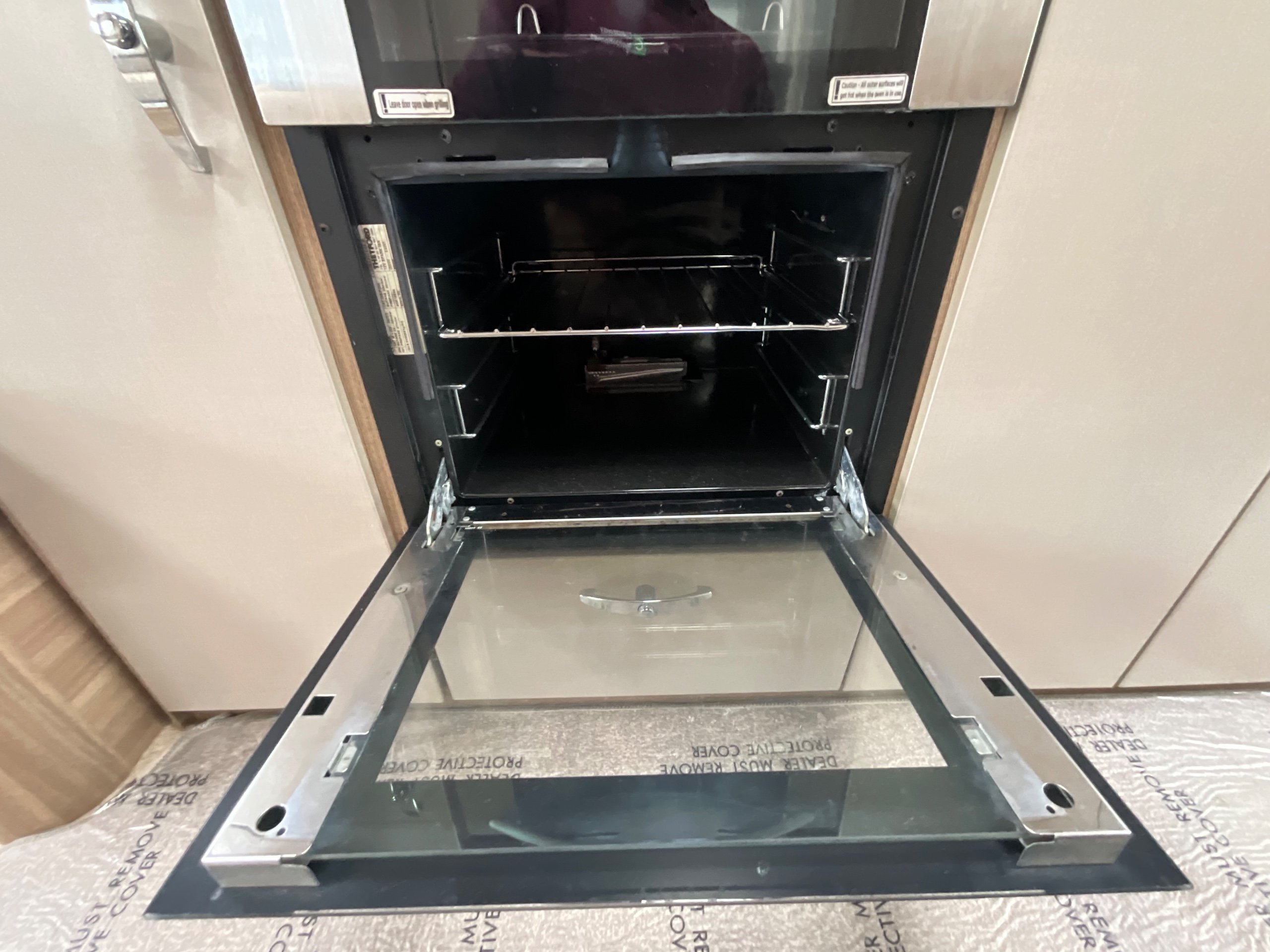 The kitchen is in the middle of the motorhome and has a Gas Oven & Grill, 3 Gas hobs, 1 Electrical hob, sink and 3-way fridge with a separate freezer compartment. The bathroom is very spacious with a separate shower, basin and toilet. Onboard there is Fresh and wastewater tanks fitted within the motorhome. There is also the modern Alde heating and hot water system which runs on Gas or 240V electric when plugged in.