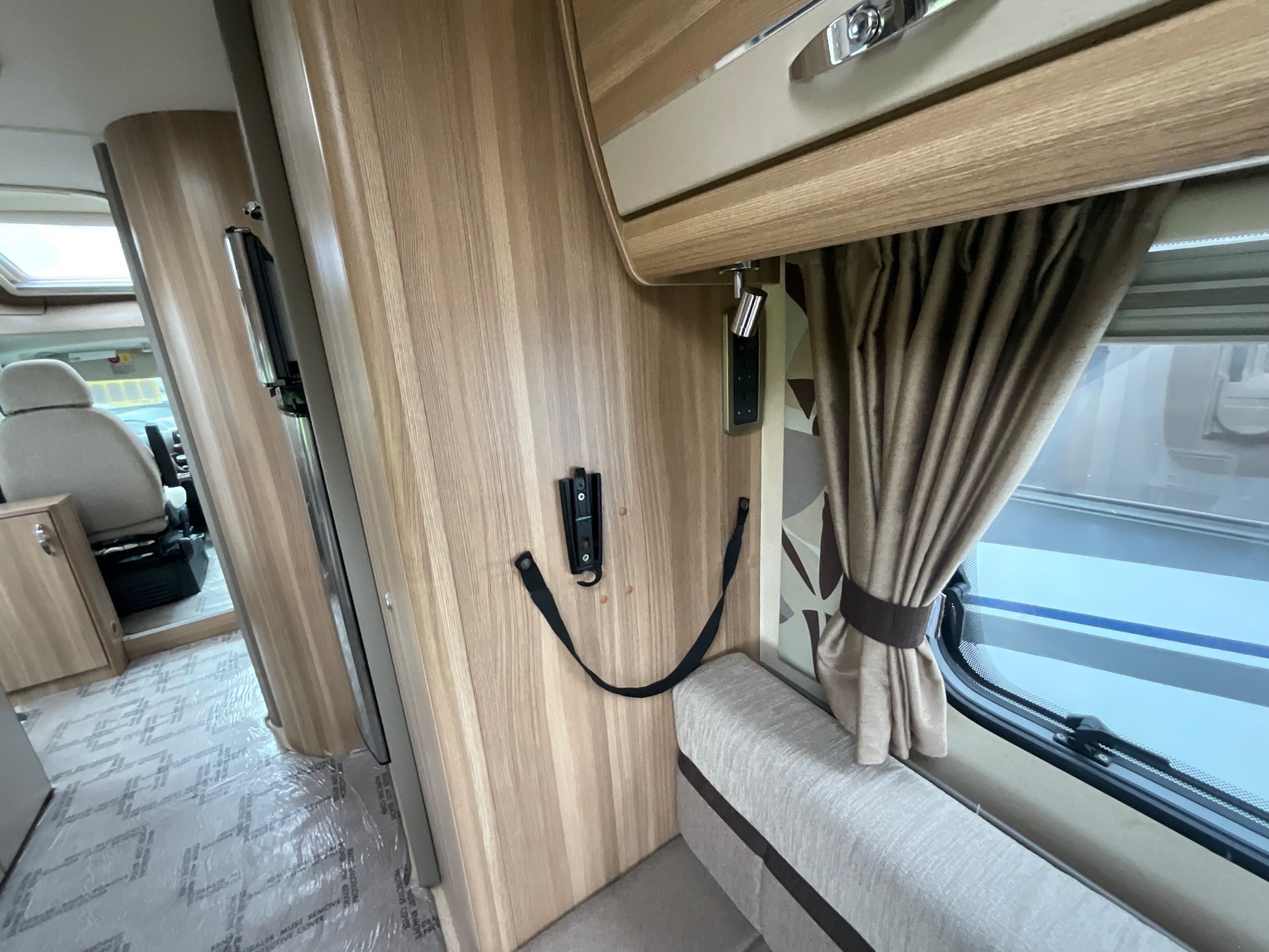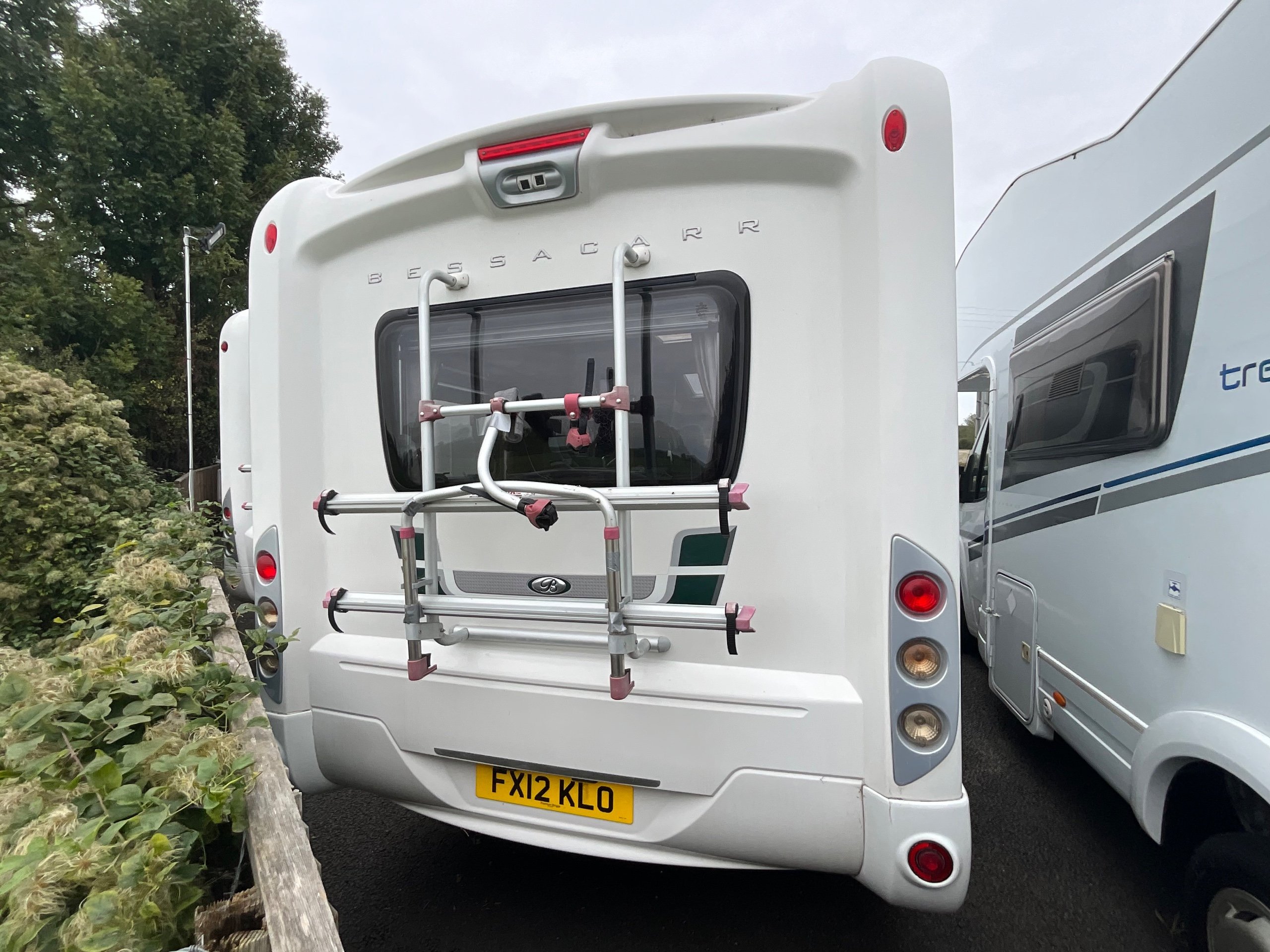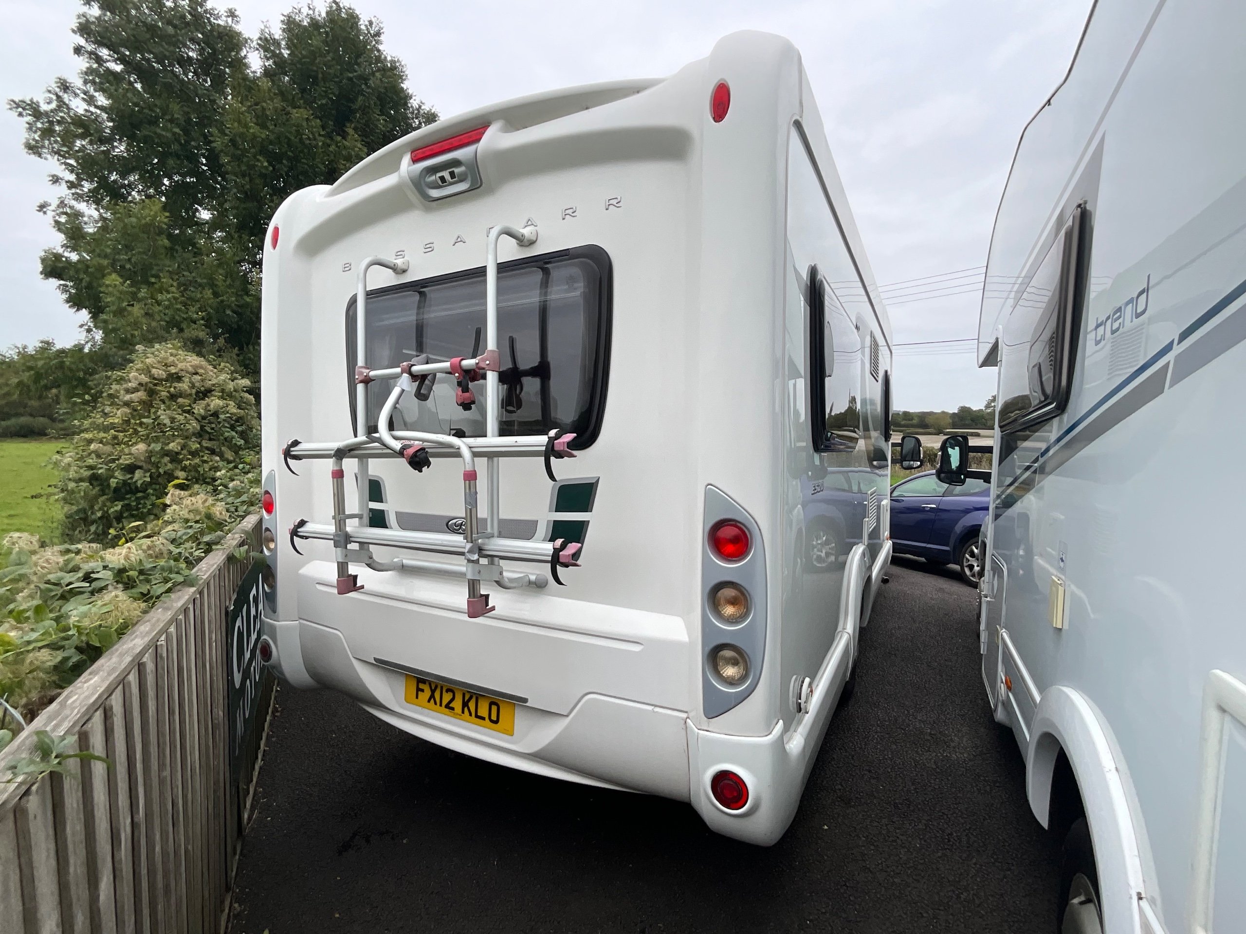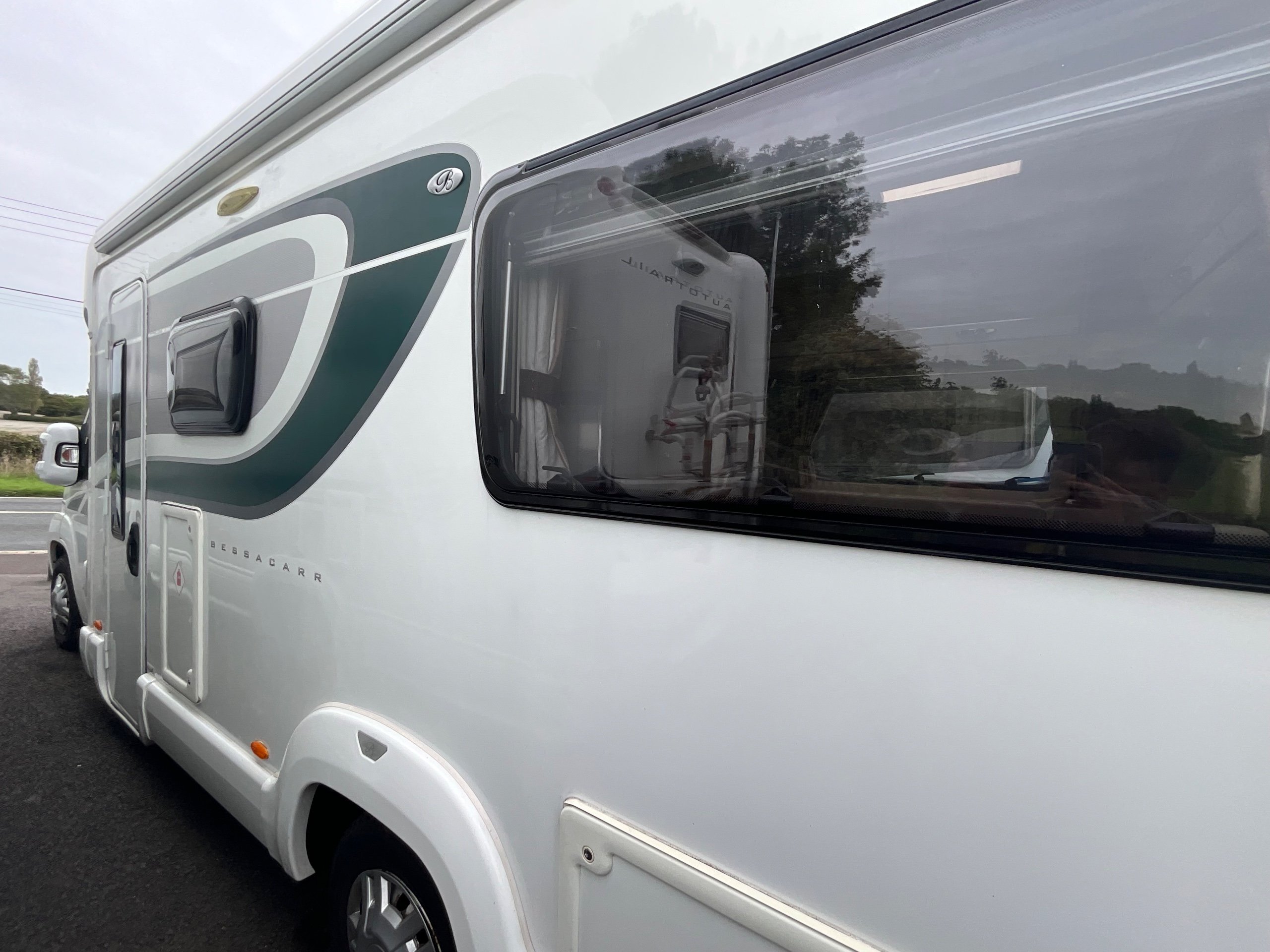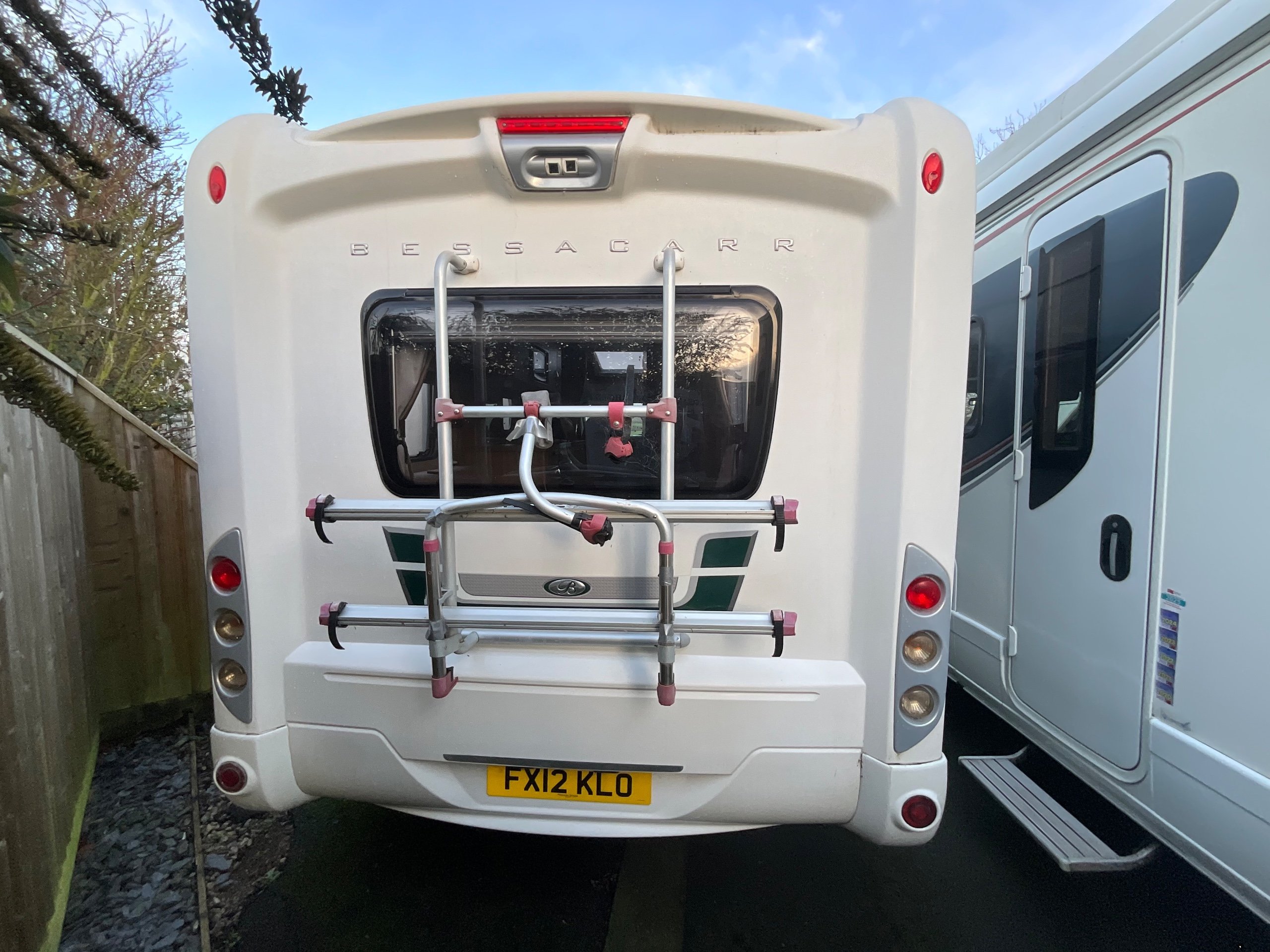 The Bessacarr E520 has had a few added features such as an Awning, TV aerial, Reversing camera, steering wheel audio controls, cab-air conditioning, built in cab blinds, microwave, drive away awning, motorhome winter cover and a bike rack.