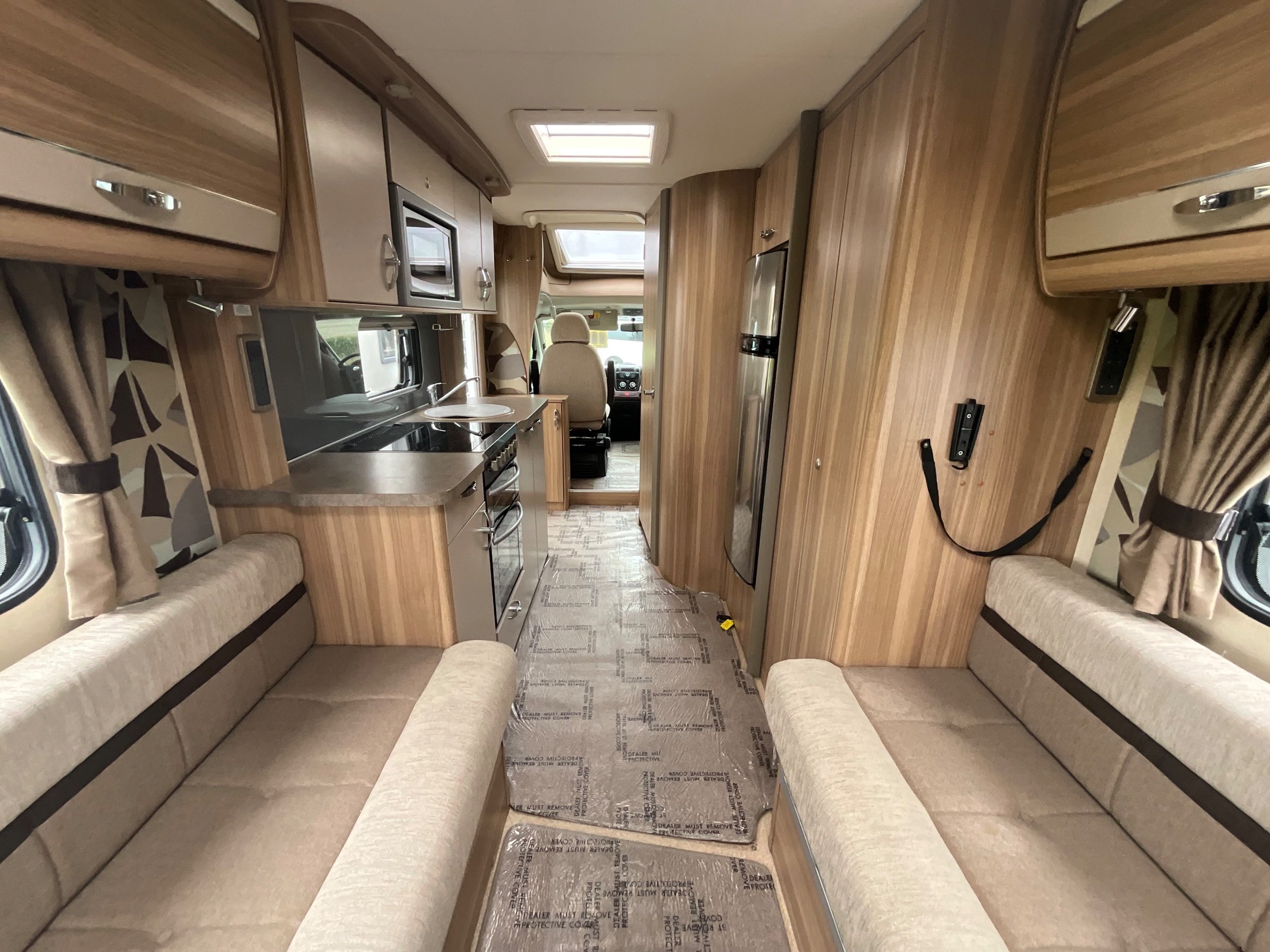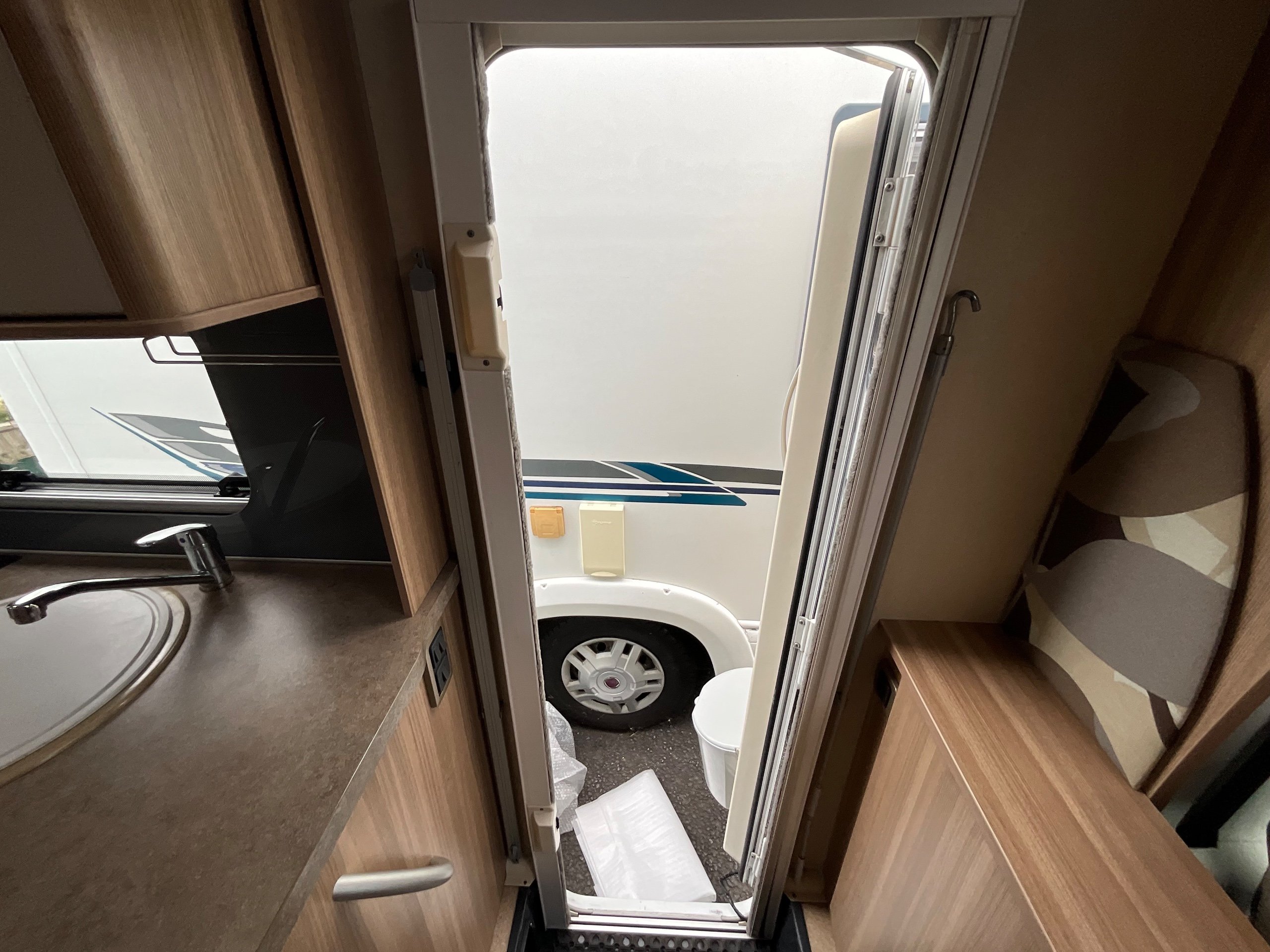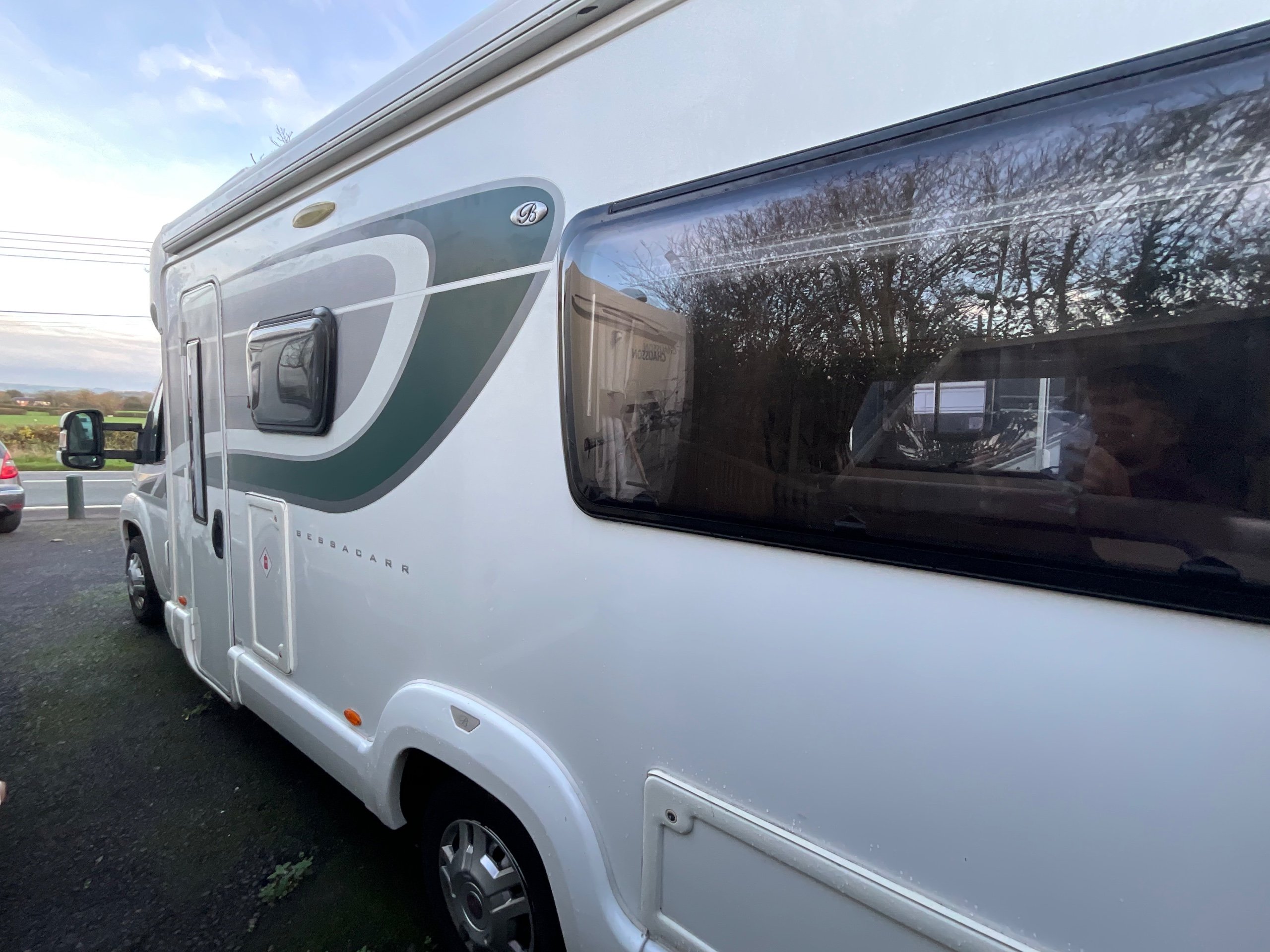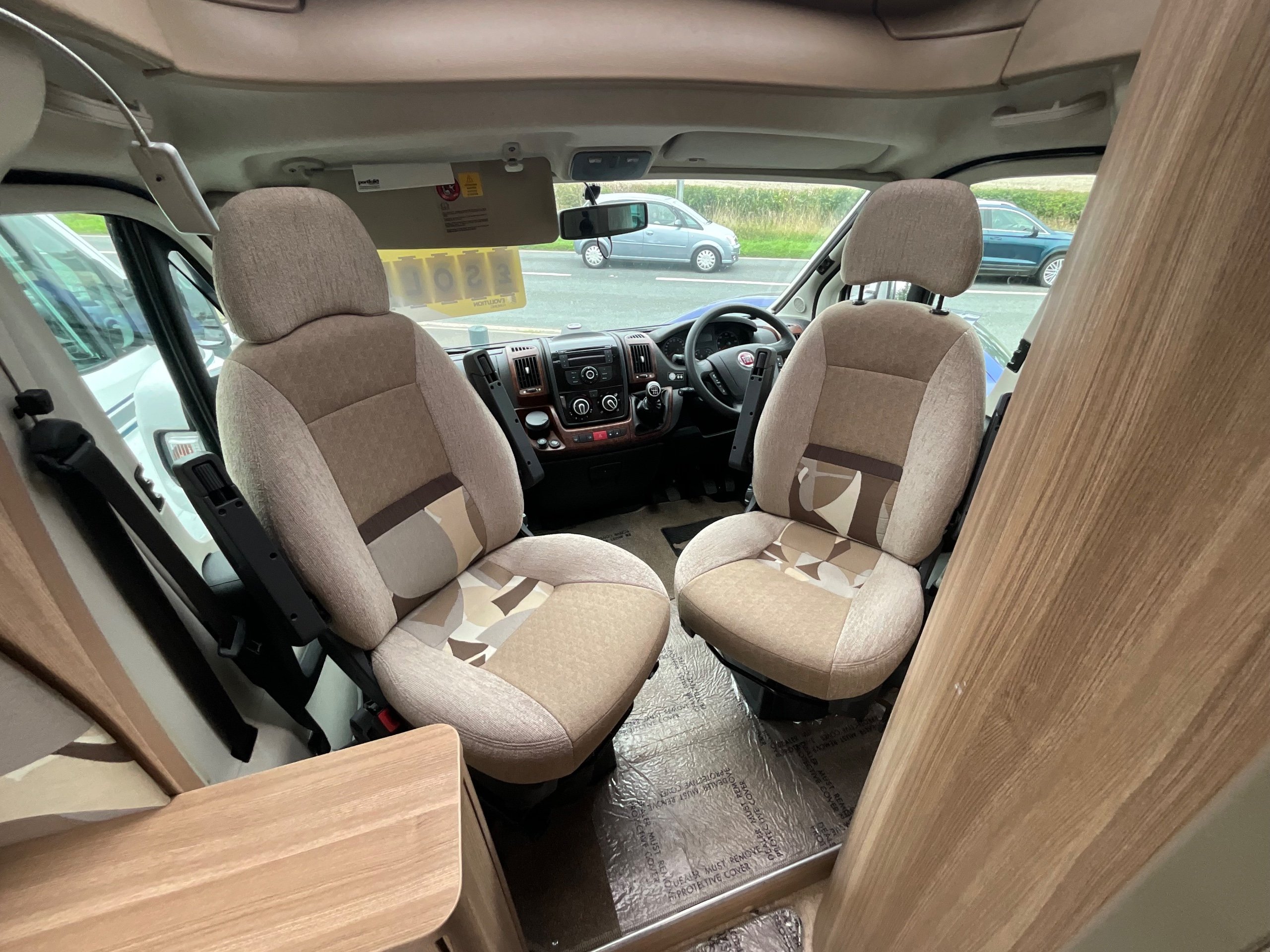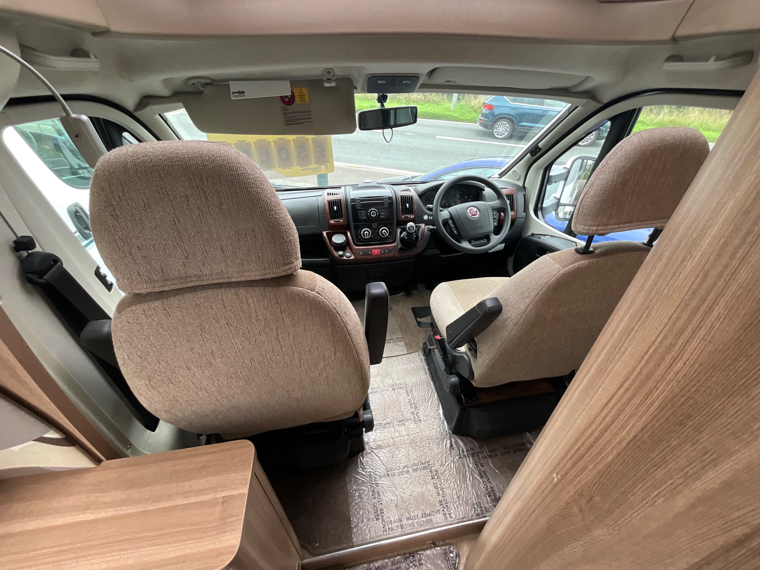 The Bessacarr E520 has had a few added features such as an Awning, TV aerial, Reversing camera, steering wheel audio controls, cab-air conditioning, built in cab blinds, microwave, drive away awning, motorhome winter cover and a bike rack.