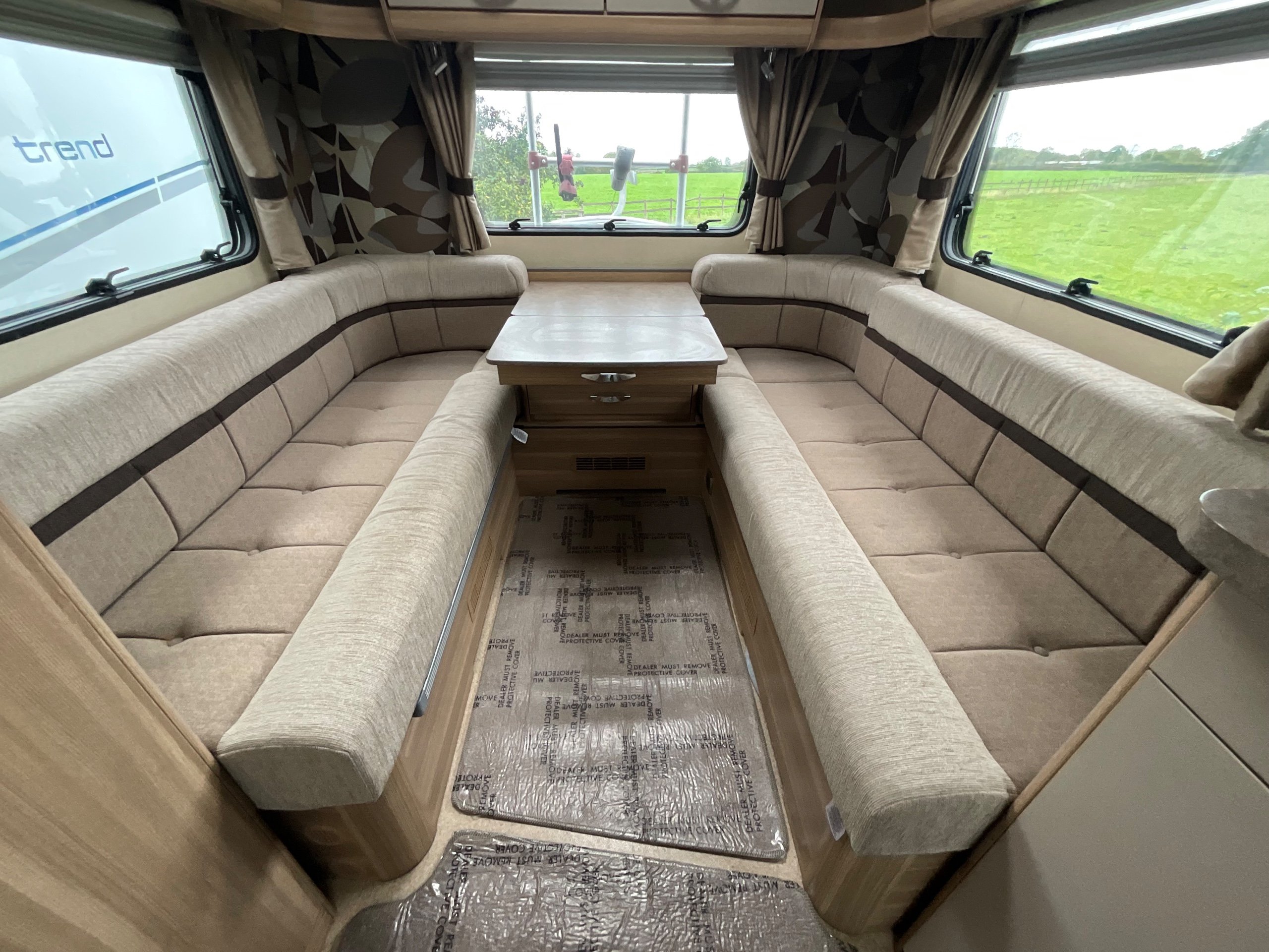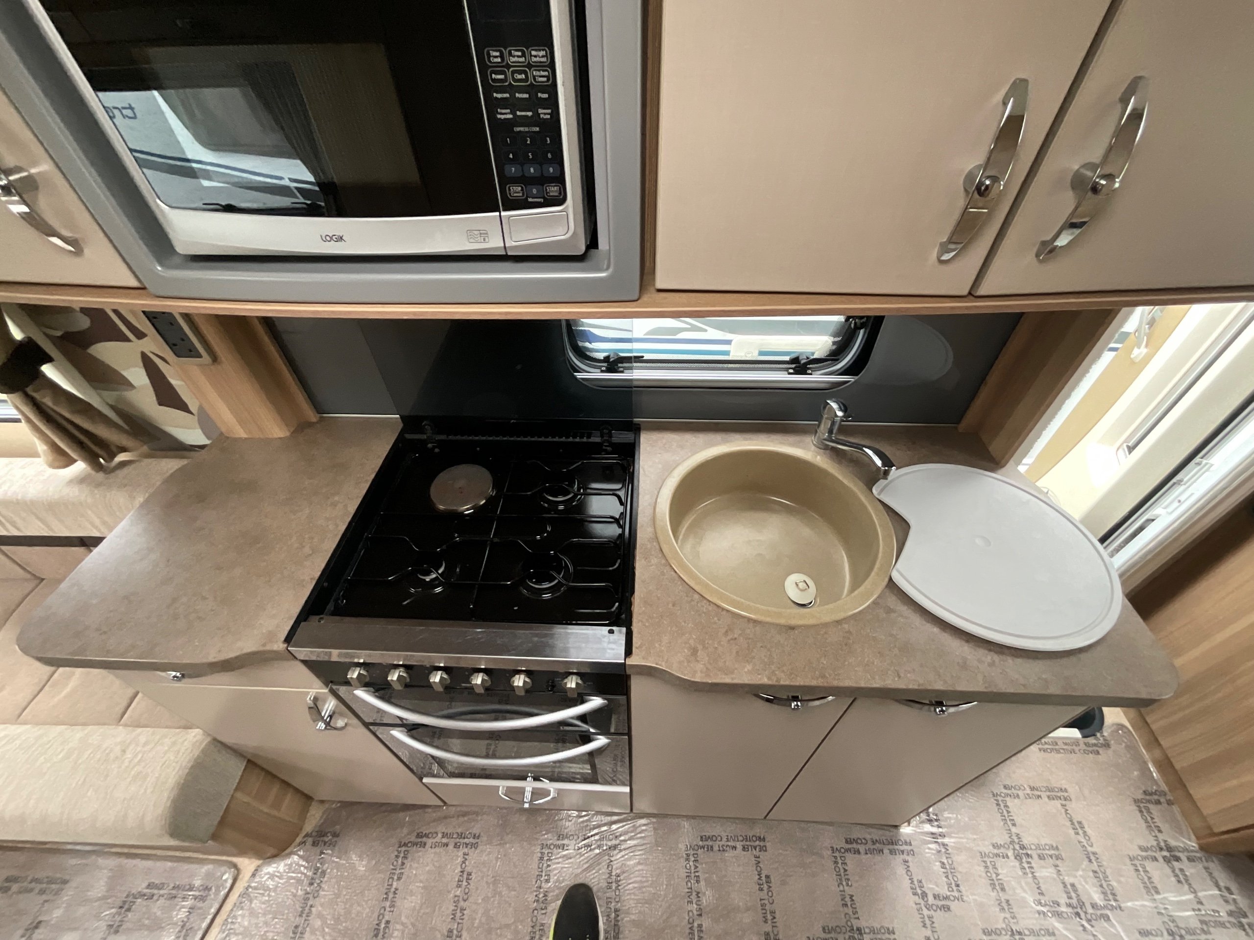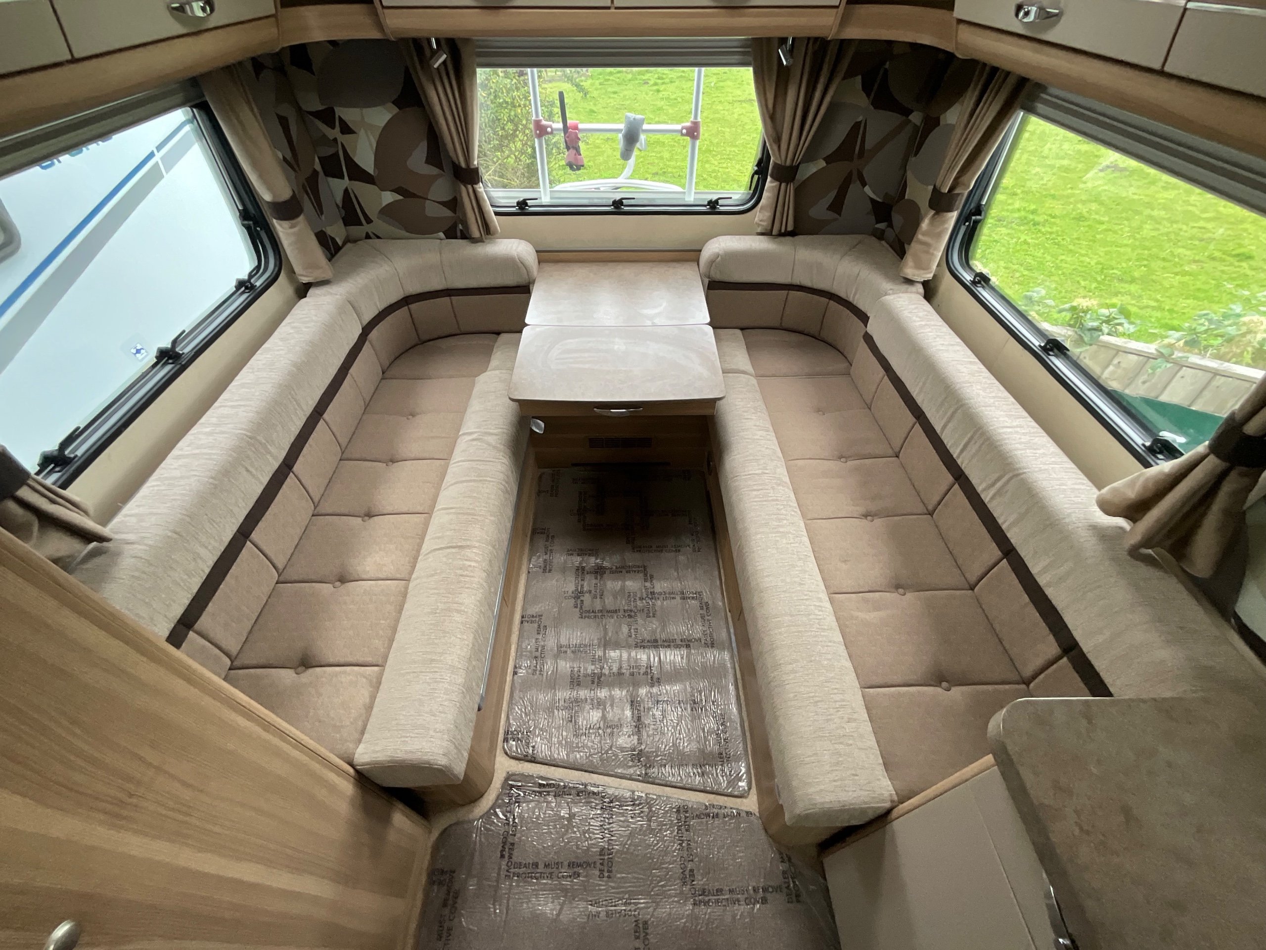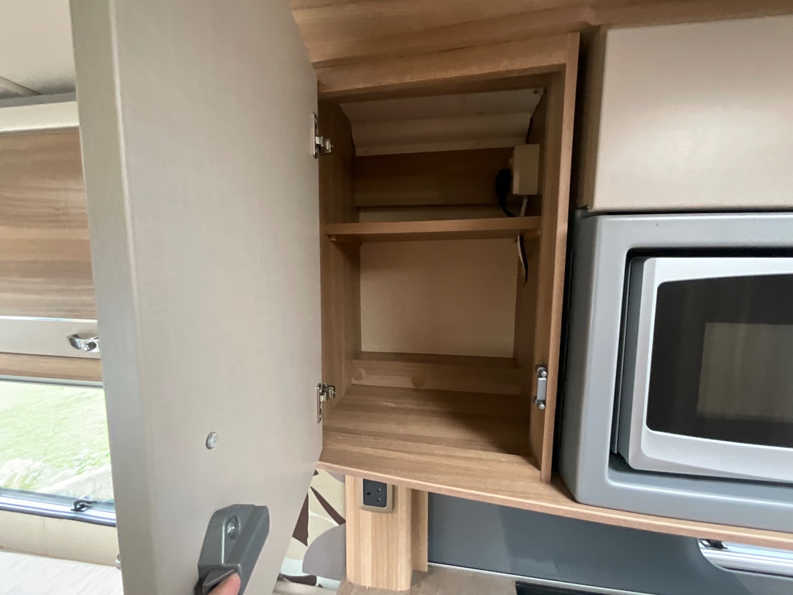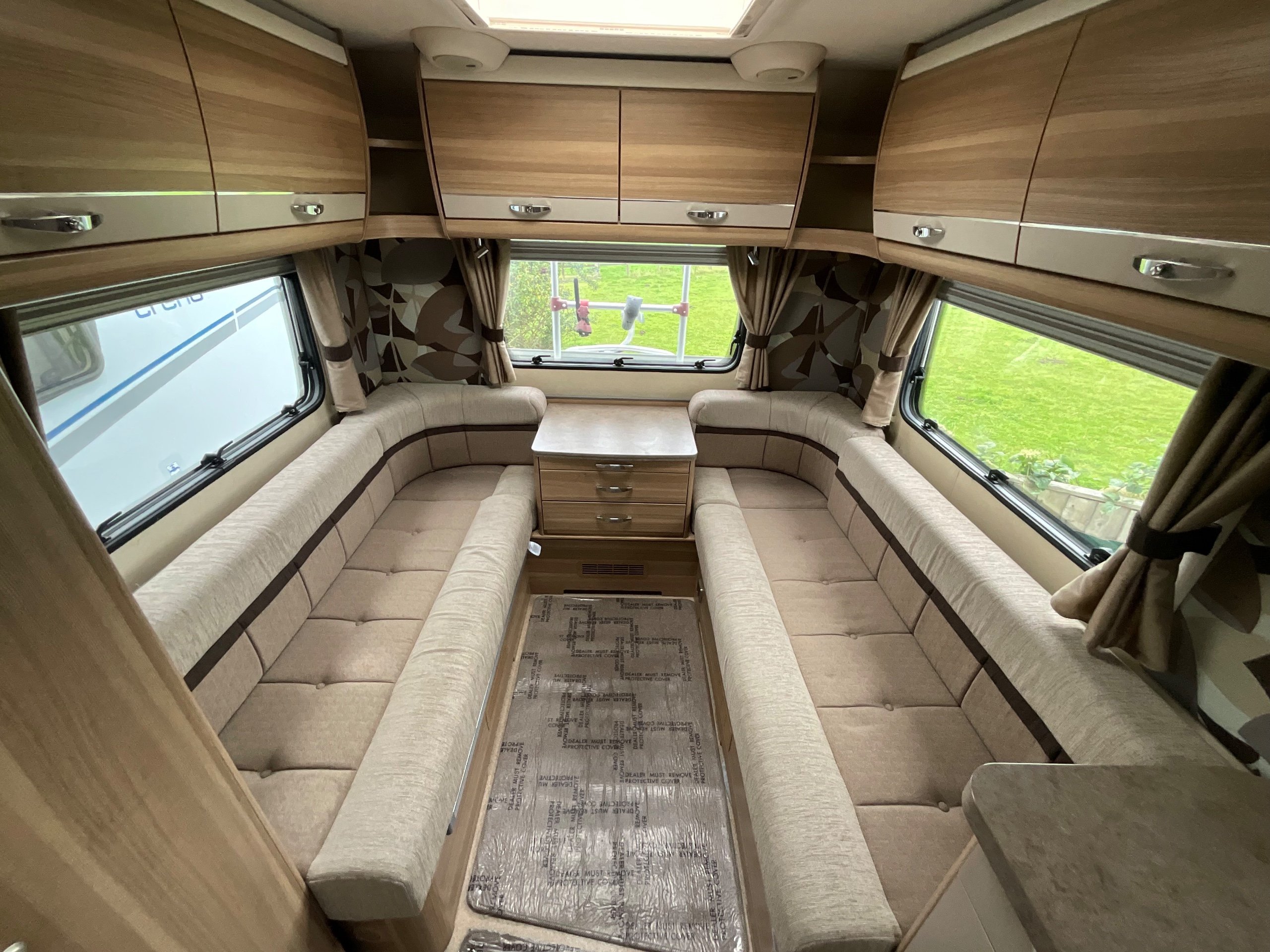 The Bessacarr E520 has had a few added features such as an Awning, TV aerial, Reversing camera, steering wheel audio controls, cab-air conditioning, built in cab blinds, microwave, drive away awning, motorhome winter cover and a bike rack.
