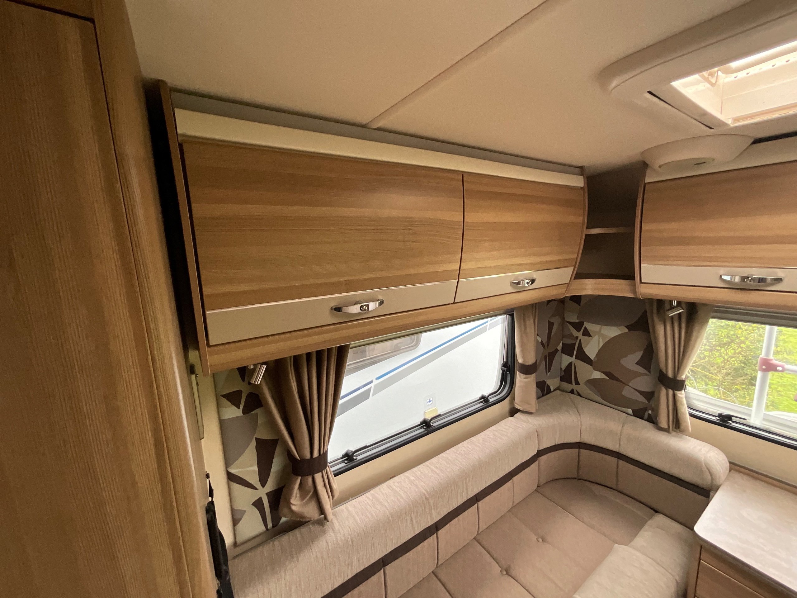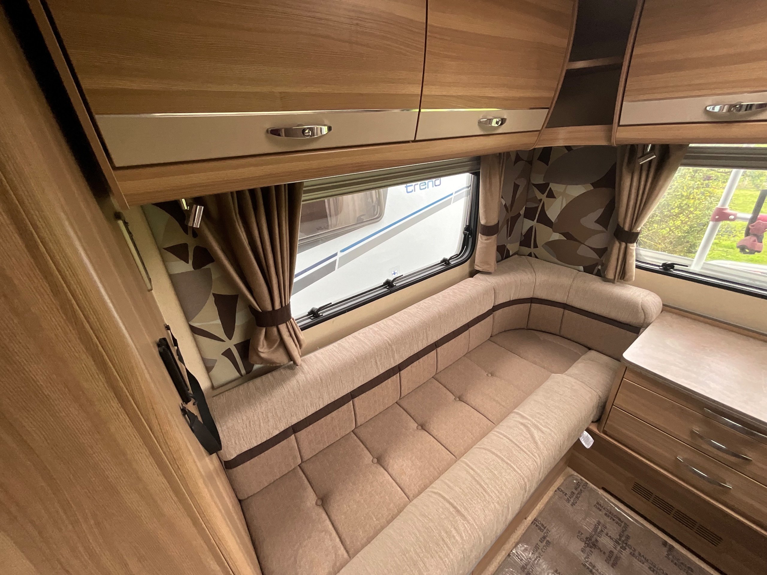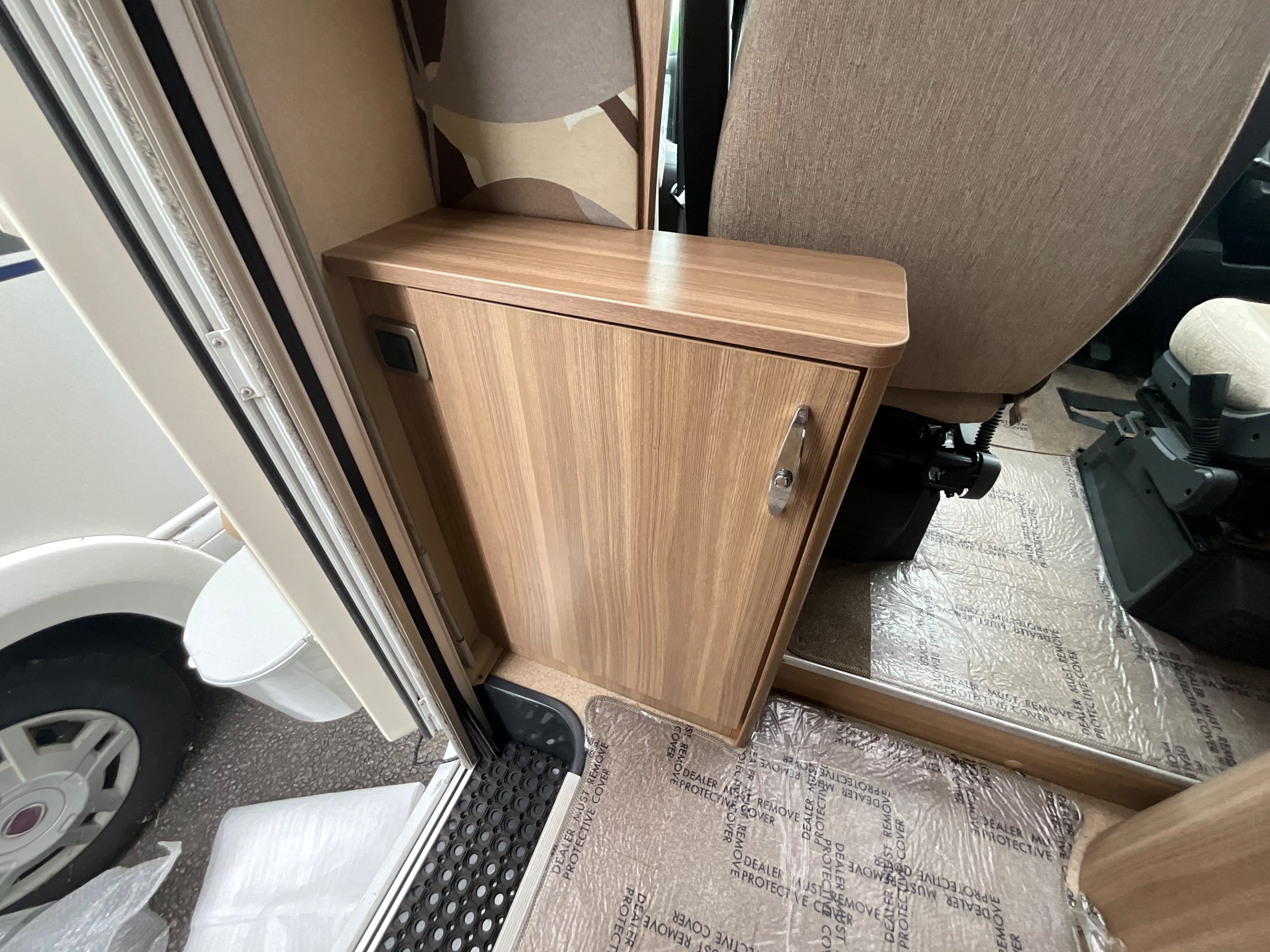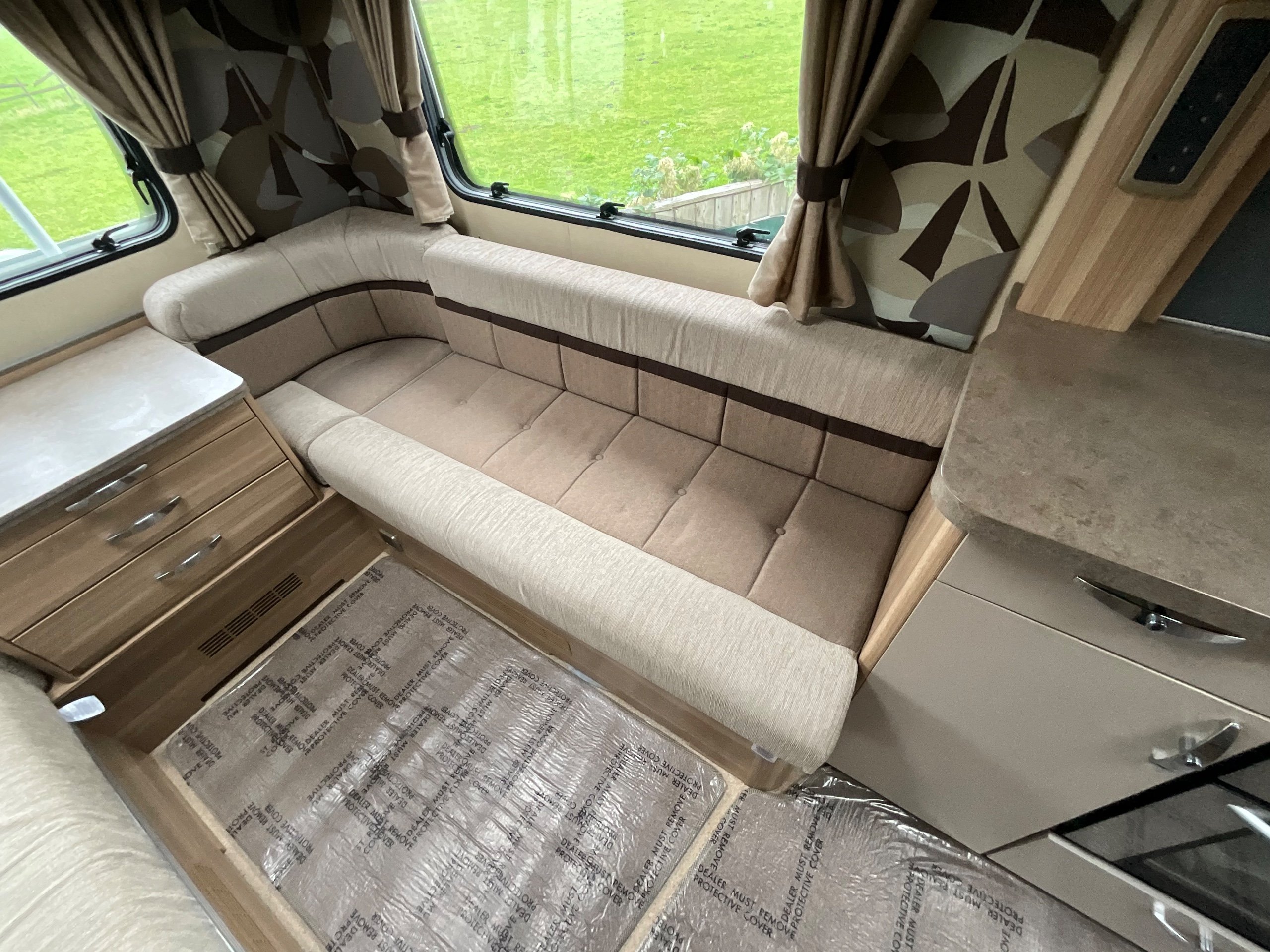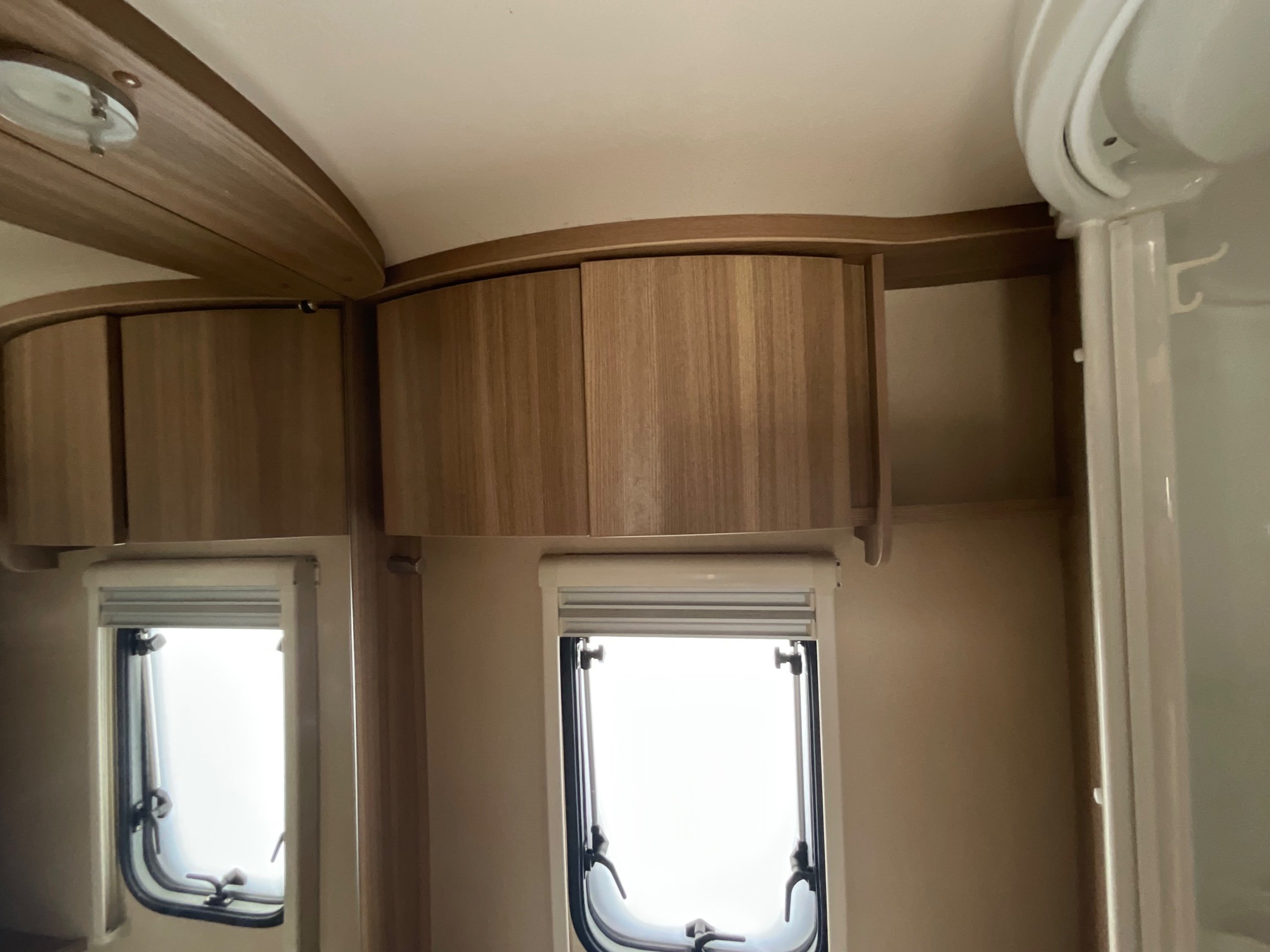 The Bessacarr E520 has had a few added features such as an Awning, TV aerial, Reversing camera, steering wheel audio controls, cab-air conditioning, built in cab blinds, microwave, drive away awning, motorhome winter cover and a bike rack.