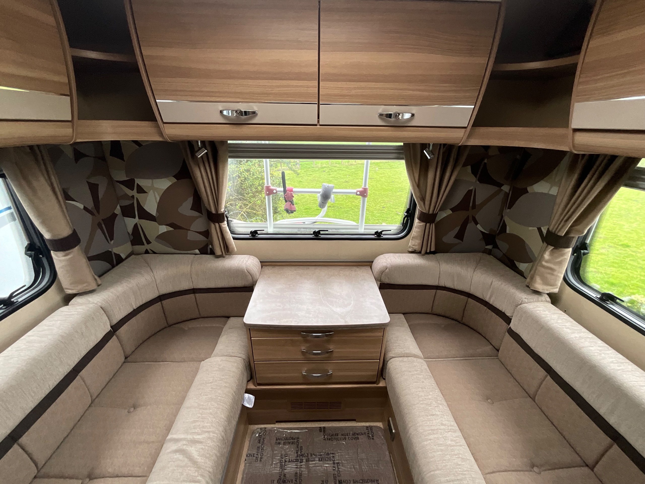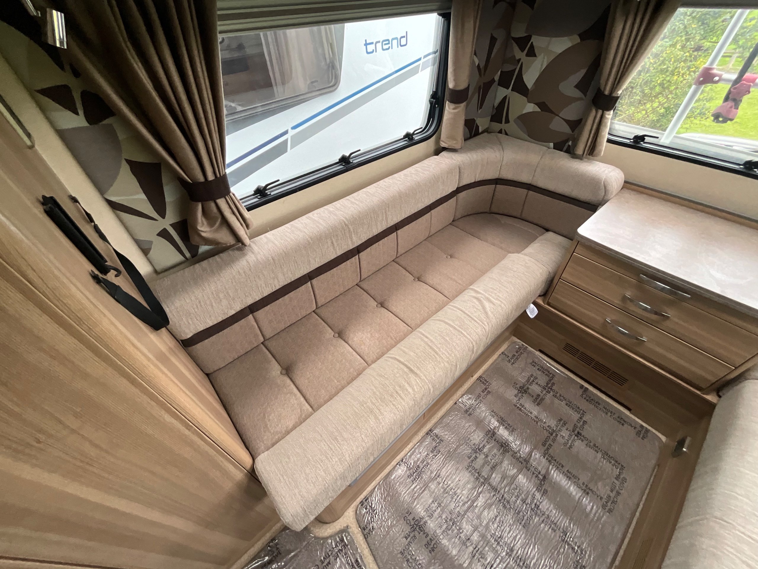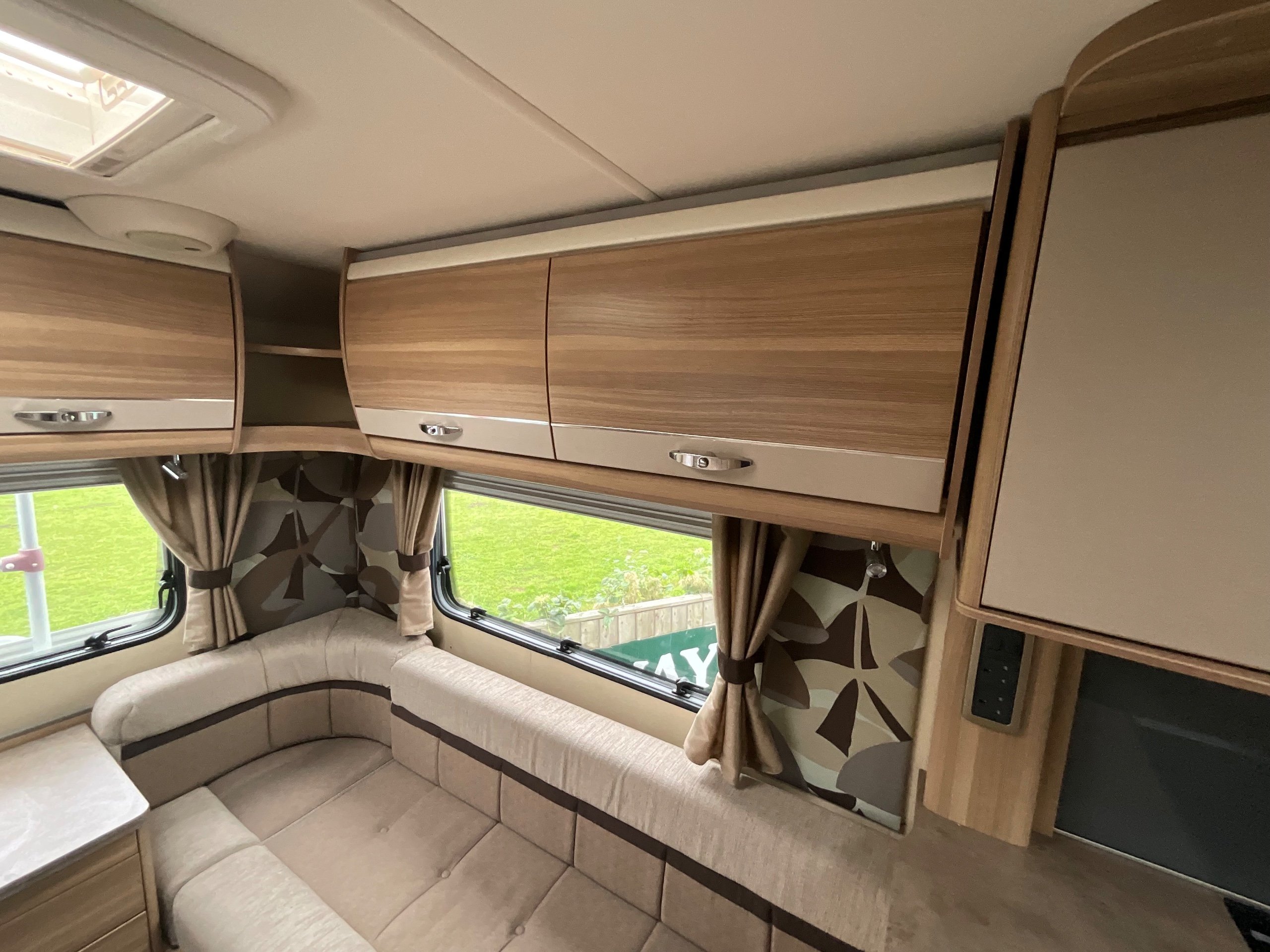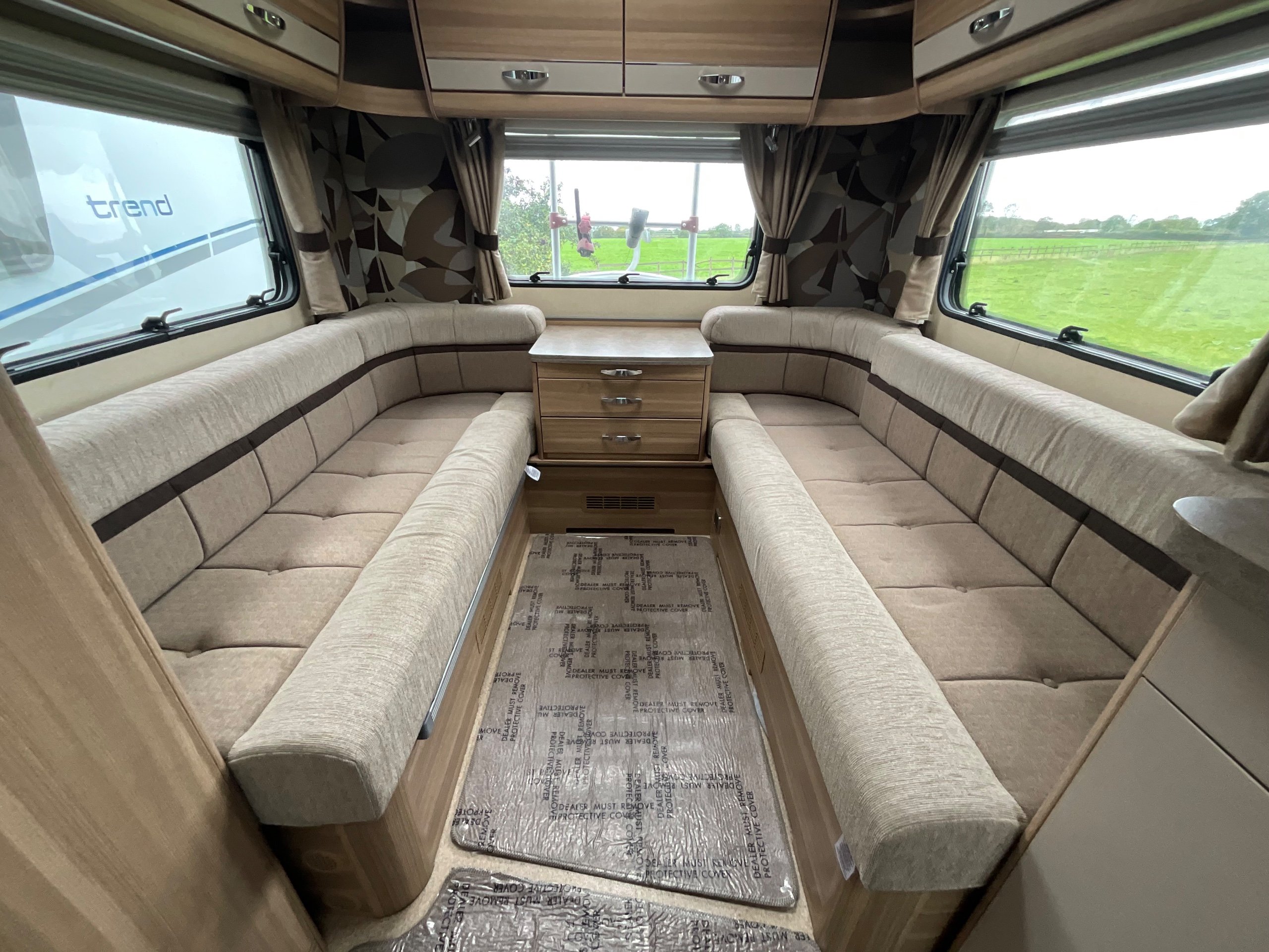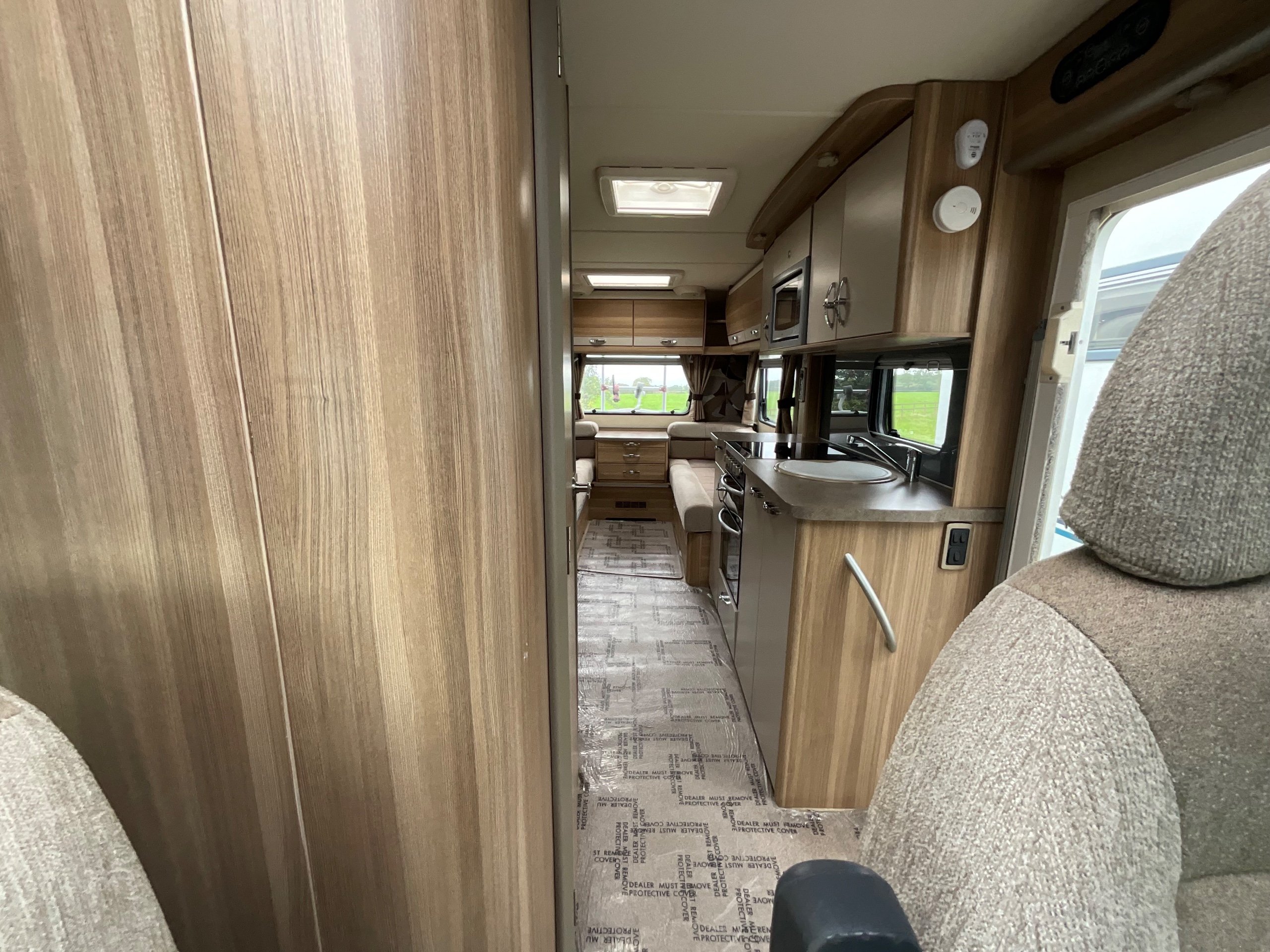 The Bessacarr E520 has had a few added features such as an Awning, TV aerial, Reversing camera, steering wheel audio controls, cab-air conditioning, built in cab blinds, microwave, drive away awning, motorhome winter cover and a bike rack.