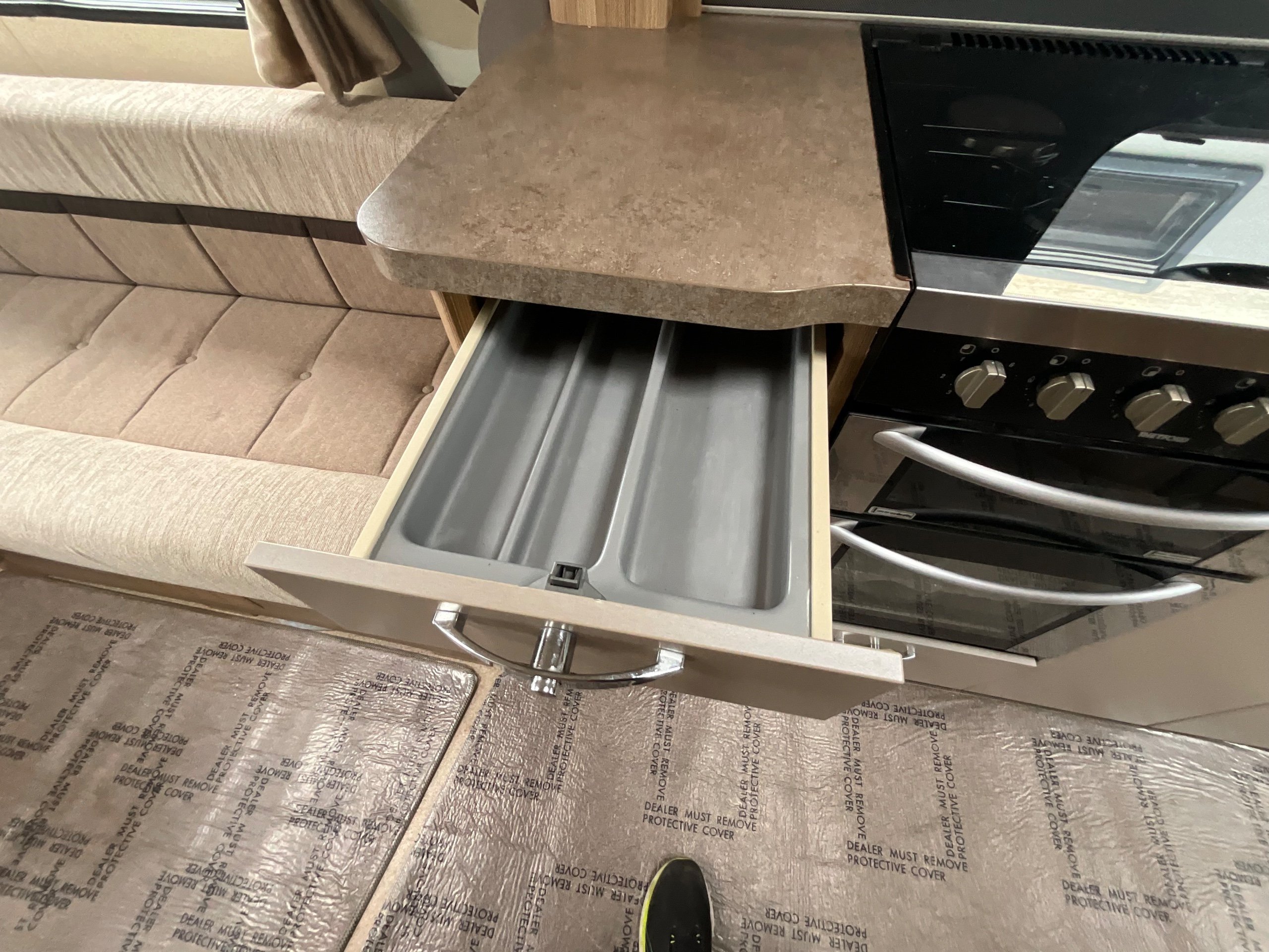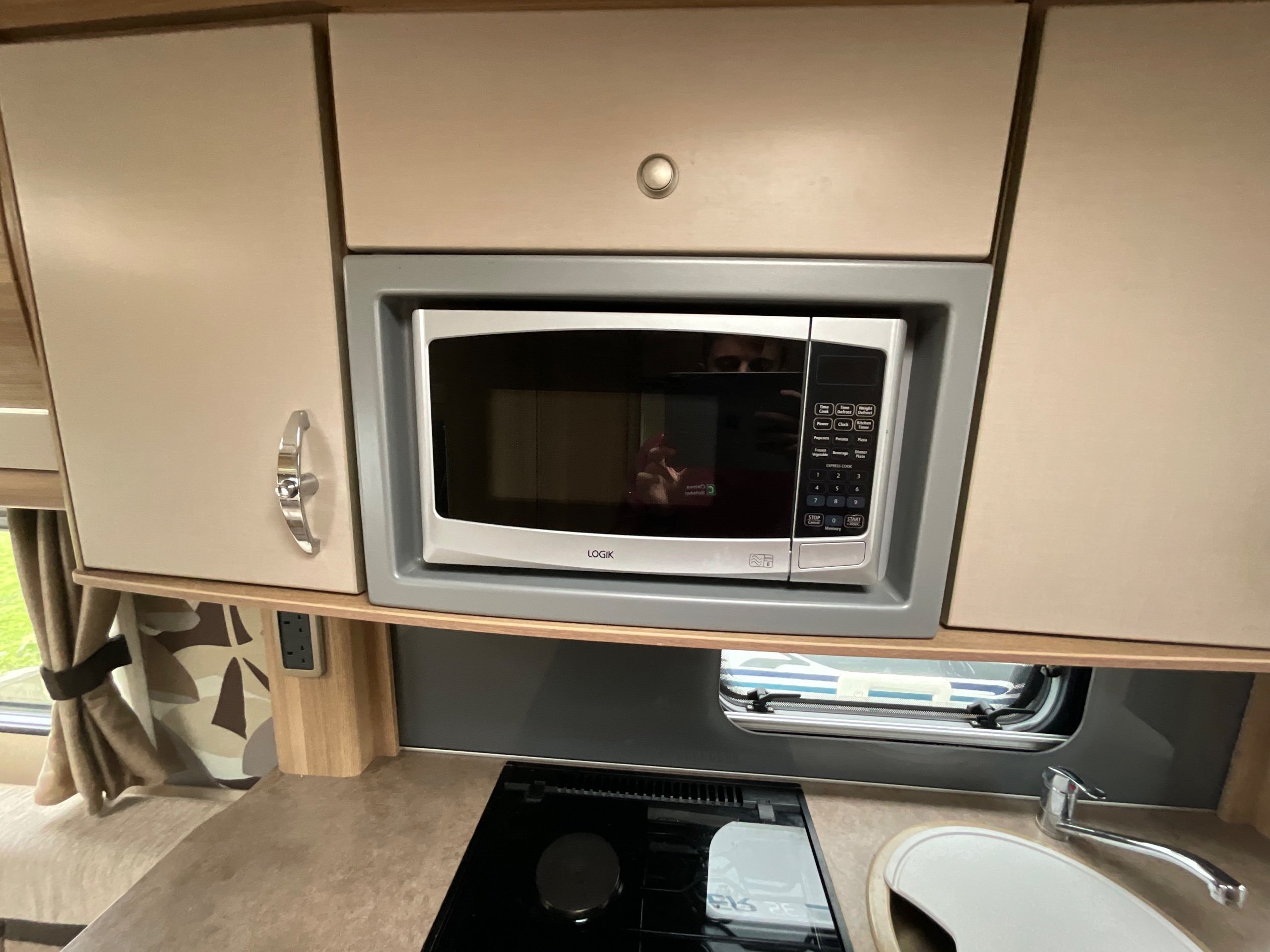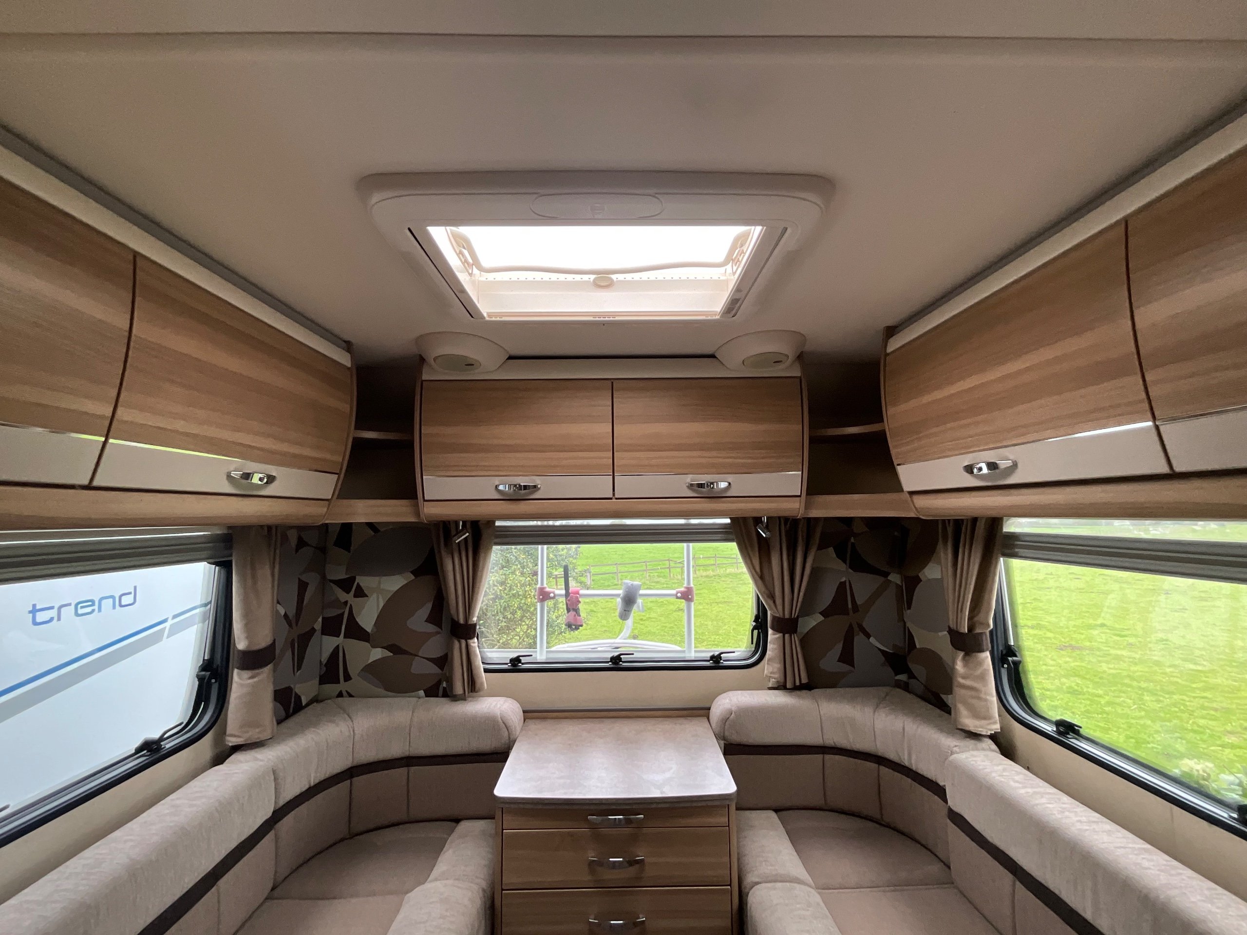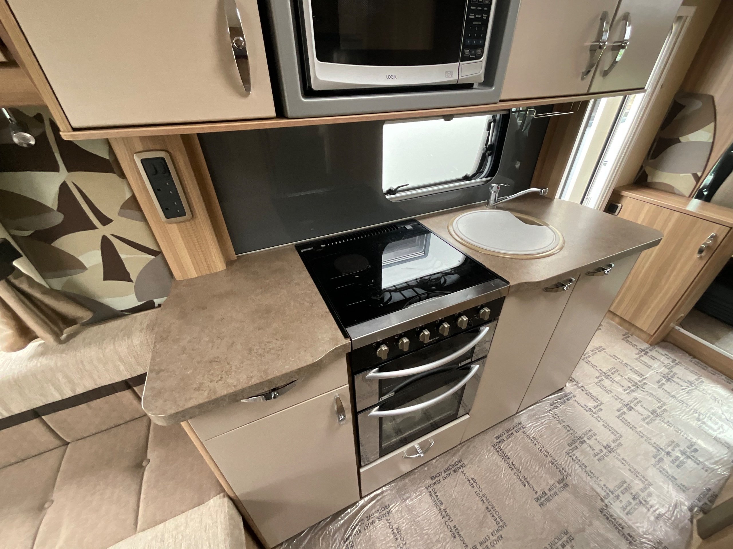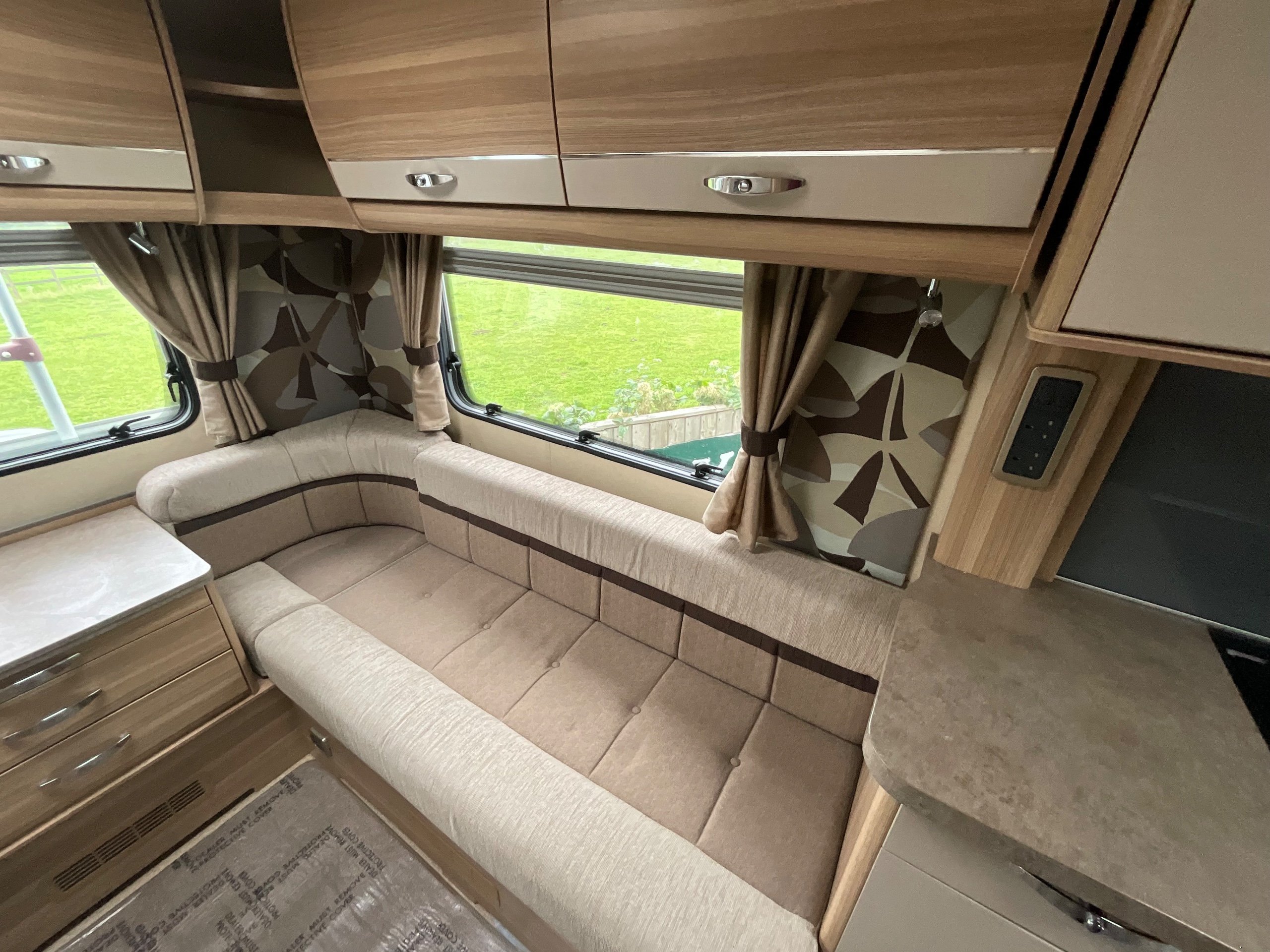 The Bessacarr E520 has had a few added features such as an Awning, TV aerial, Reversing camera, steering wheel audio controls, cab-air conditioning, built in cab blinds, microwave, drive away awning, motorhome winter cover and a bike rack.