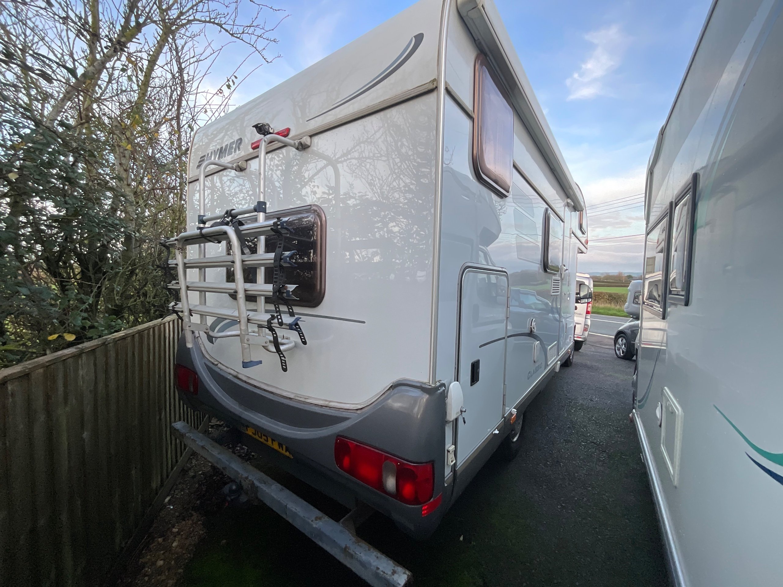 The additional extras fitted are an Awning, TV + TV aerial, Garage storage (with Bunk beds), Bike rack, External Gas BBQ point, Sigma Immobiliser, reversing camera, tow bar (metal bar the whole width) with electrics, twin leisure battery system and a upgraded radio system.